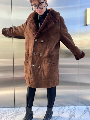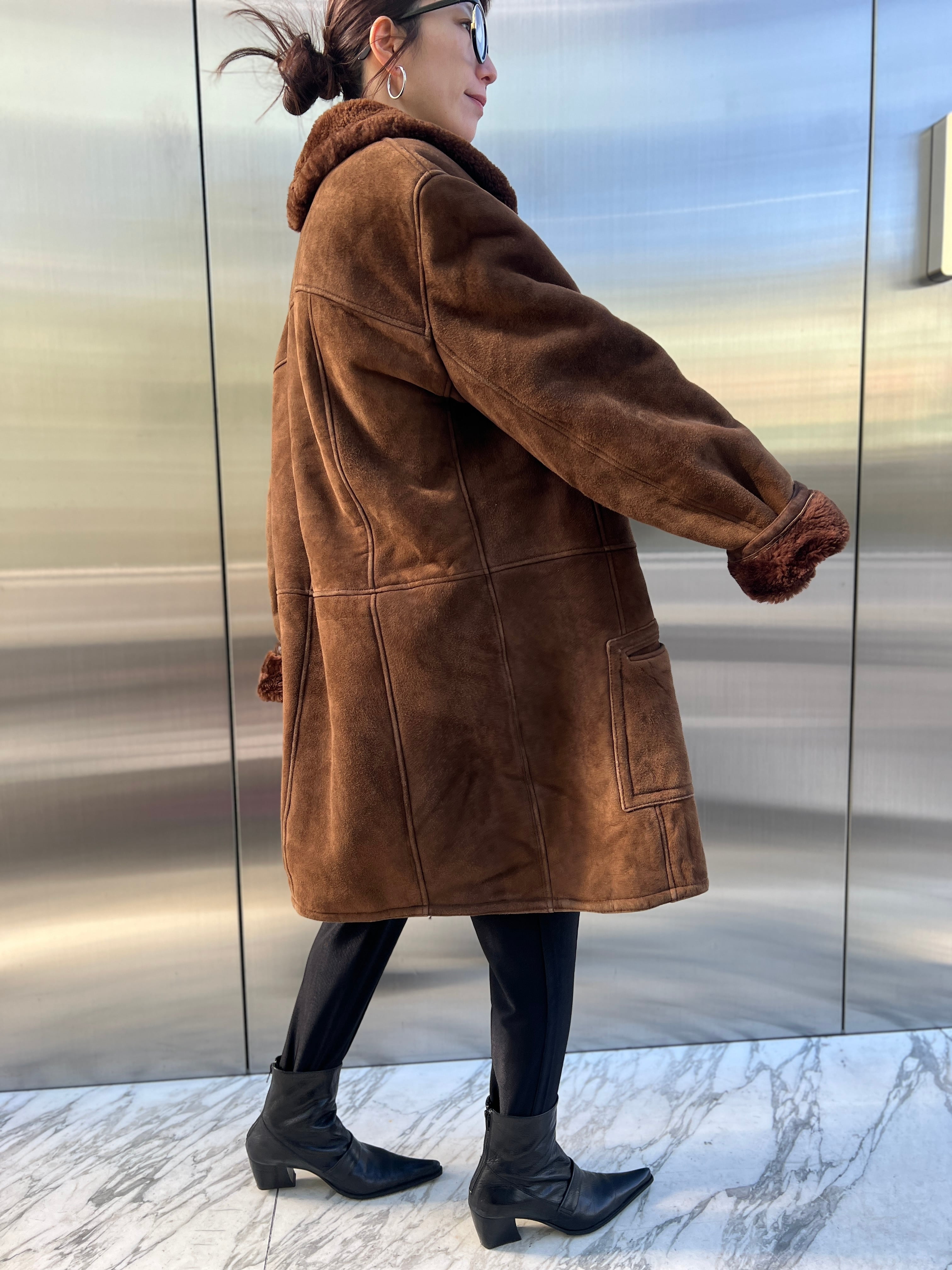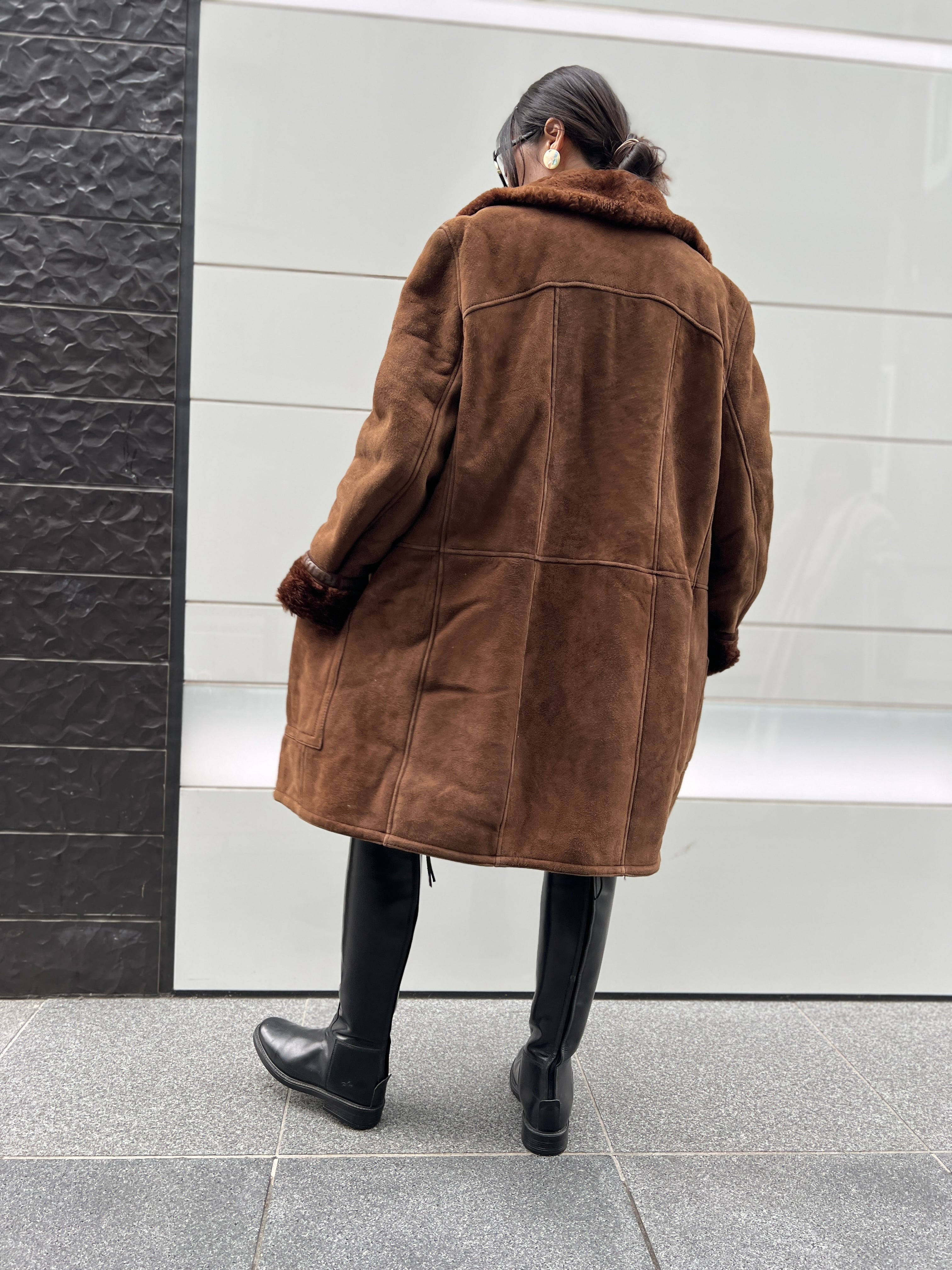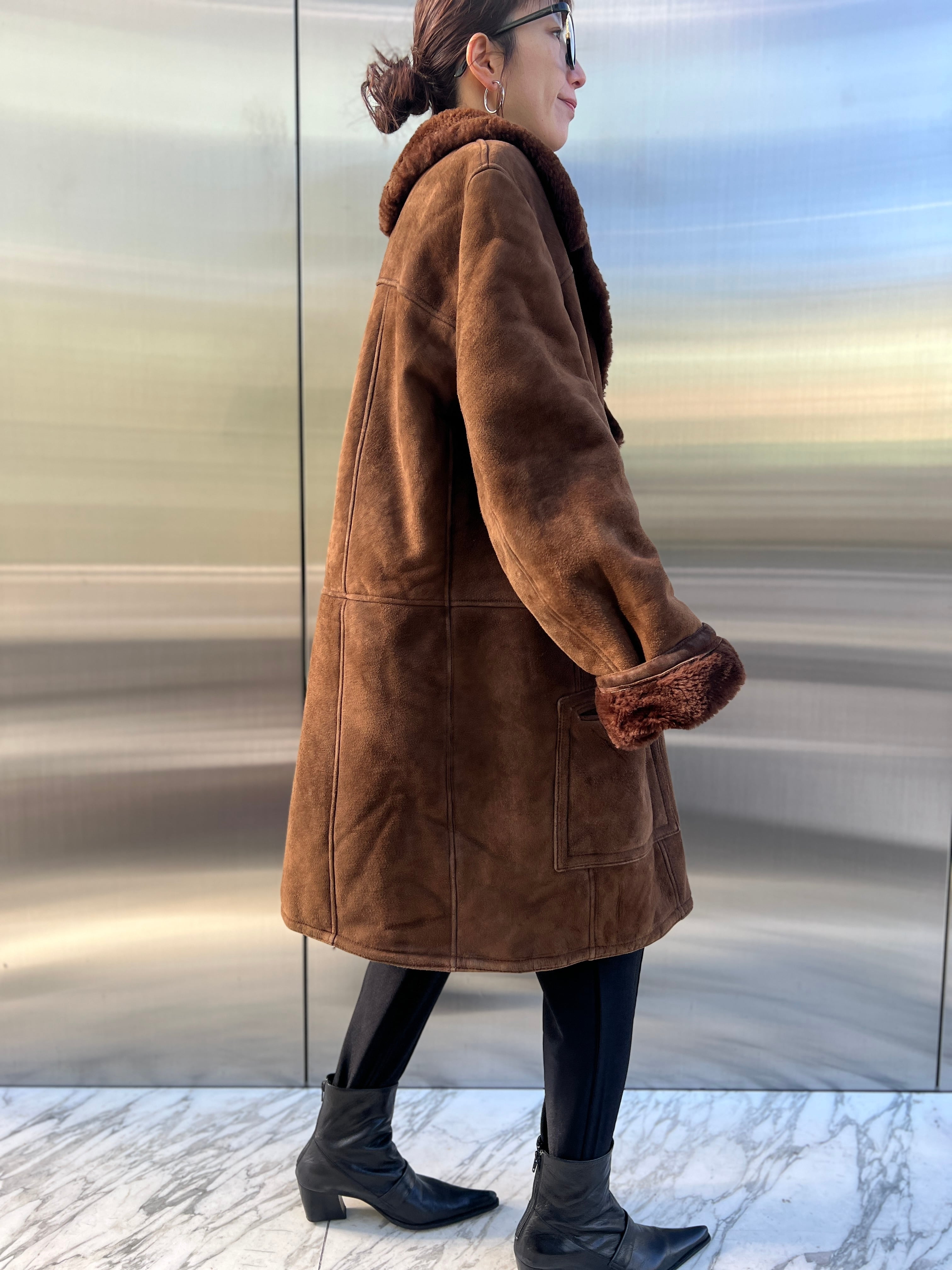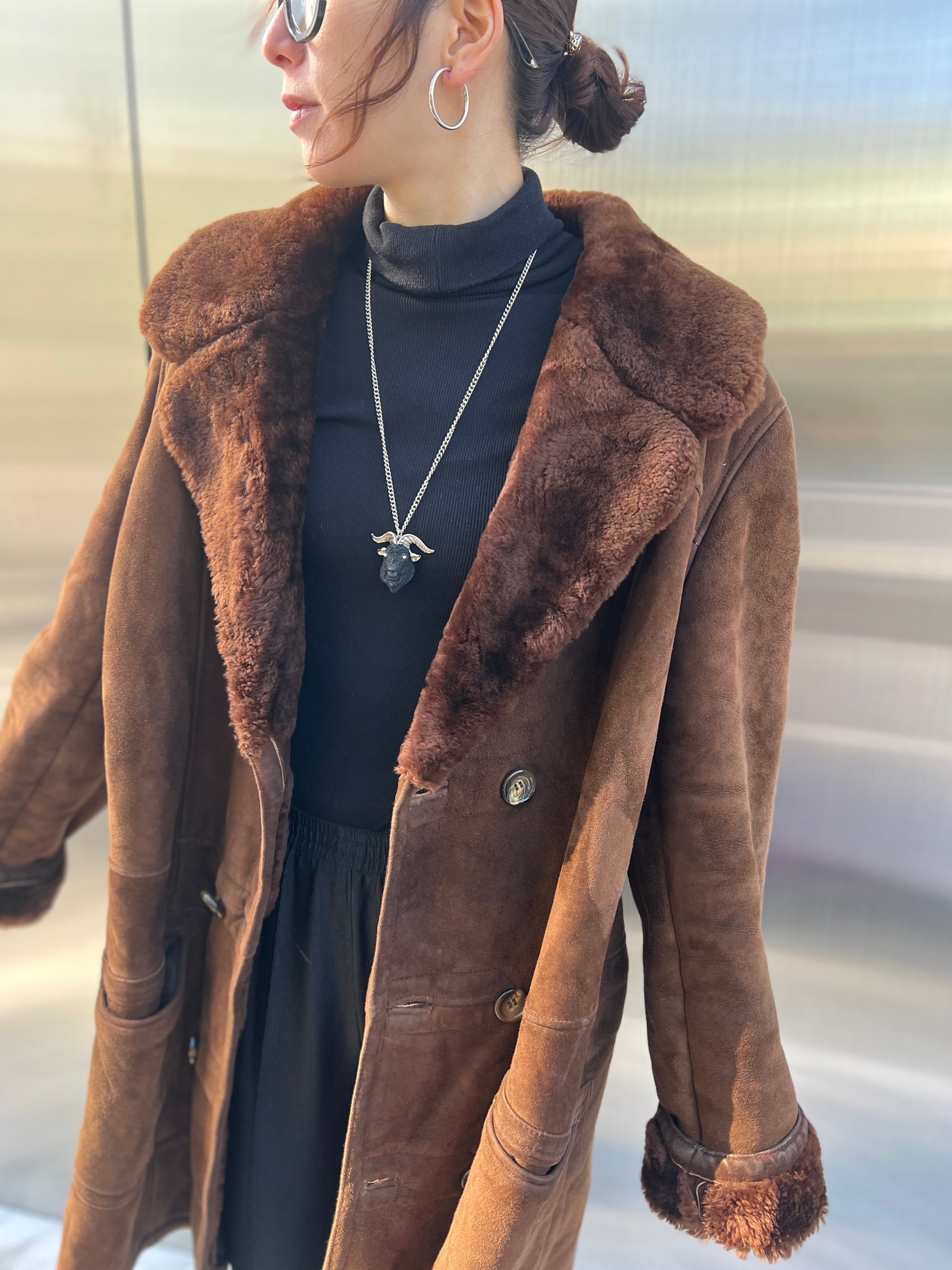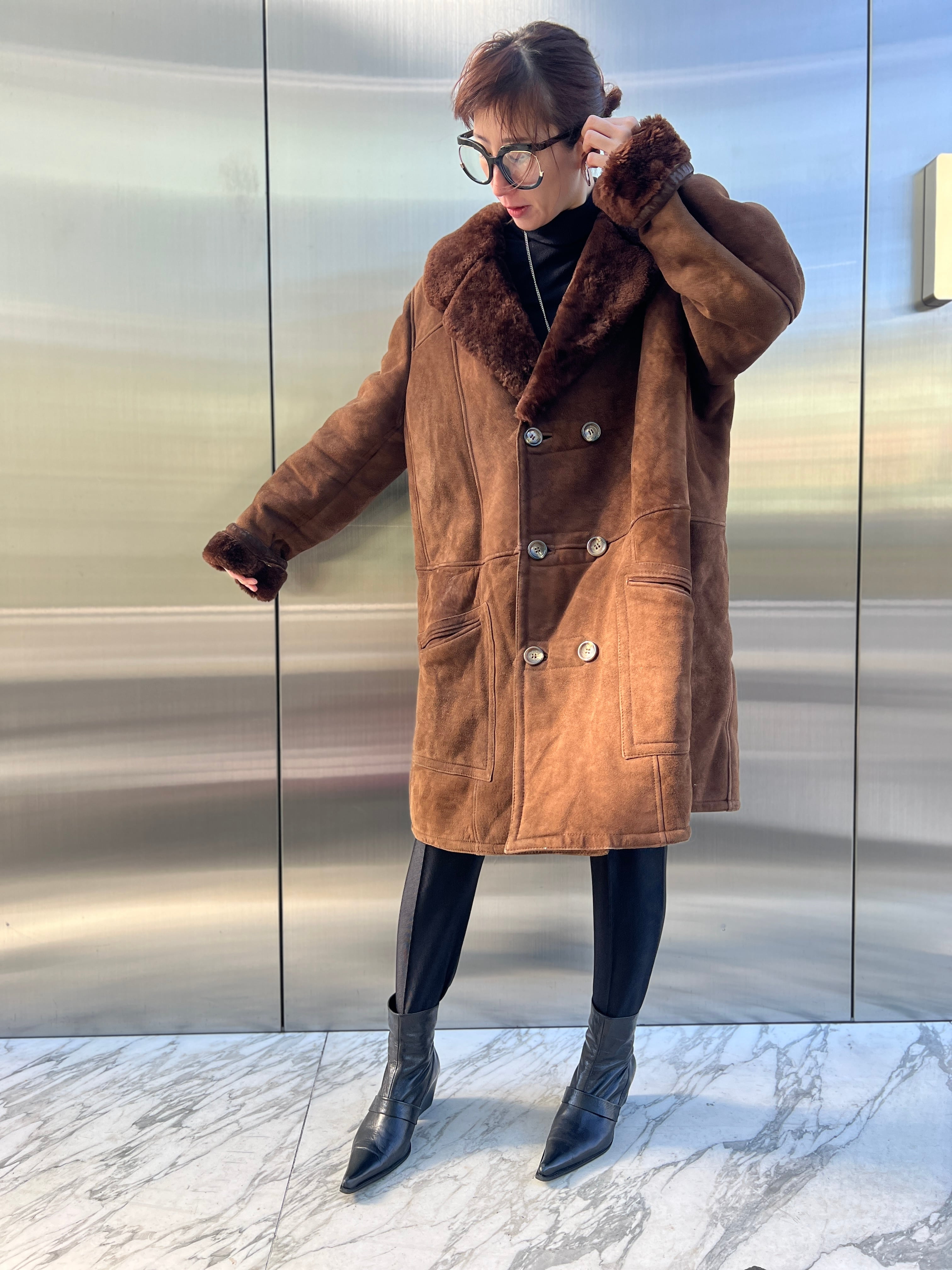 深みのあるダークブラウンと、上質なムートンならではの滑らかな質感が魅力のイタリア製ヴィンテージコート。