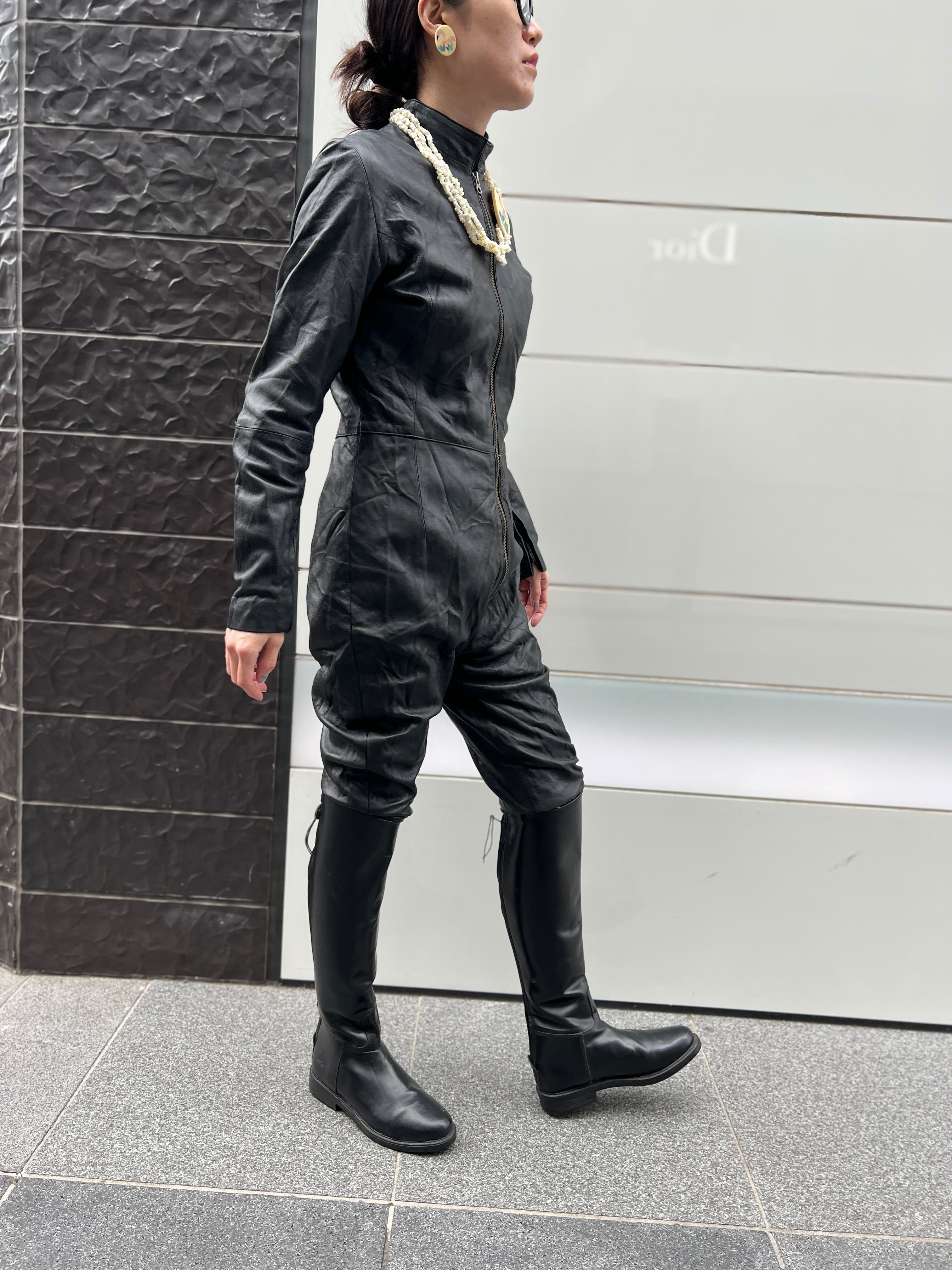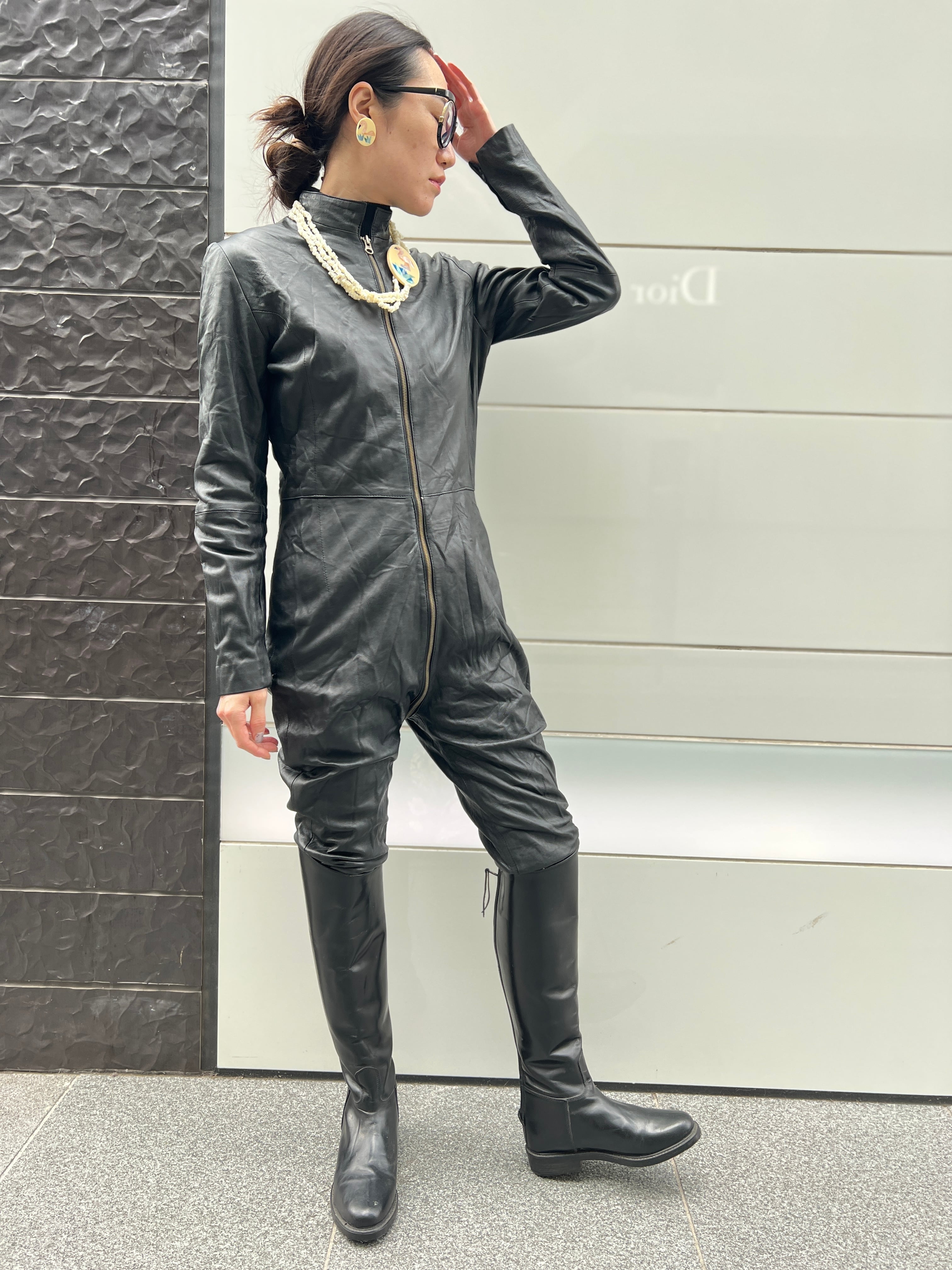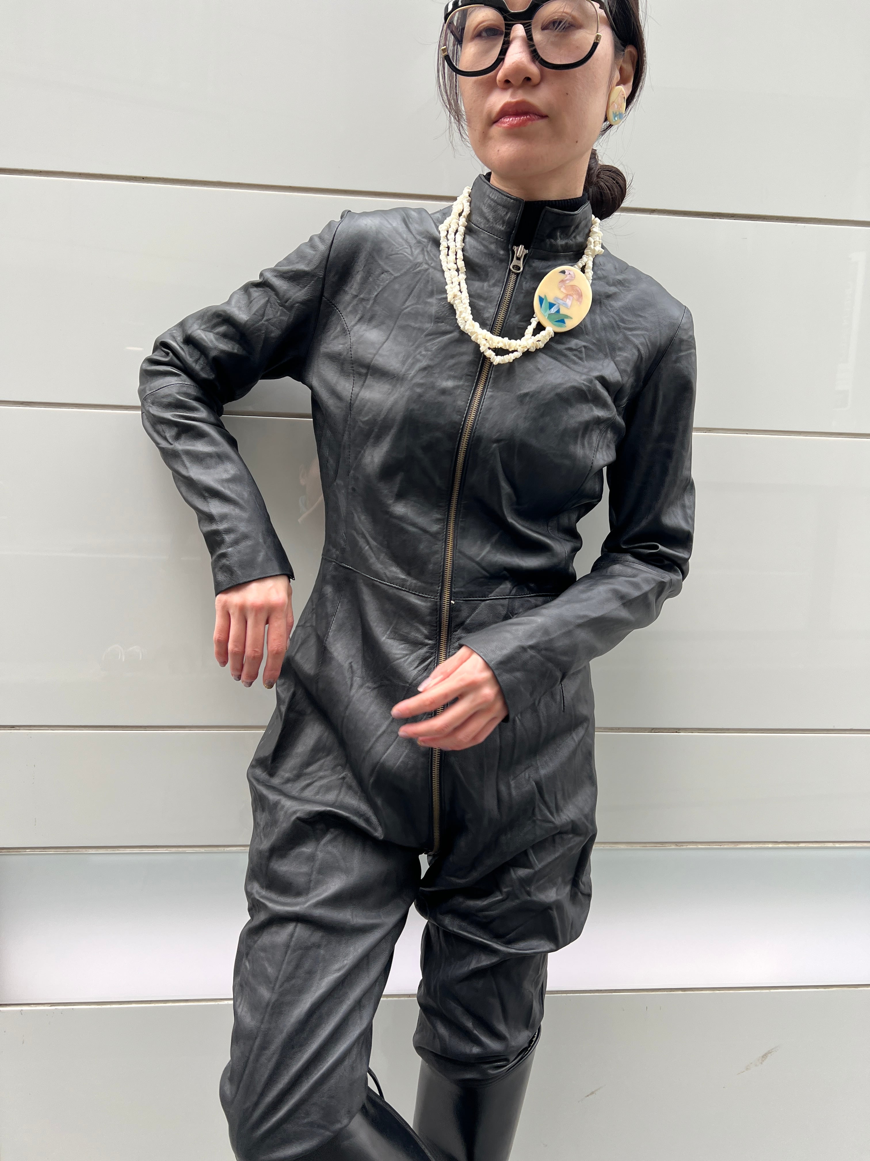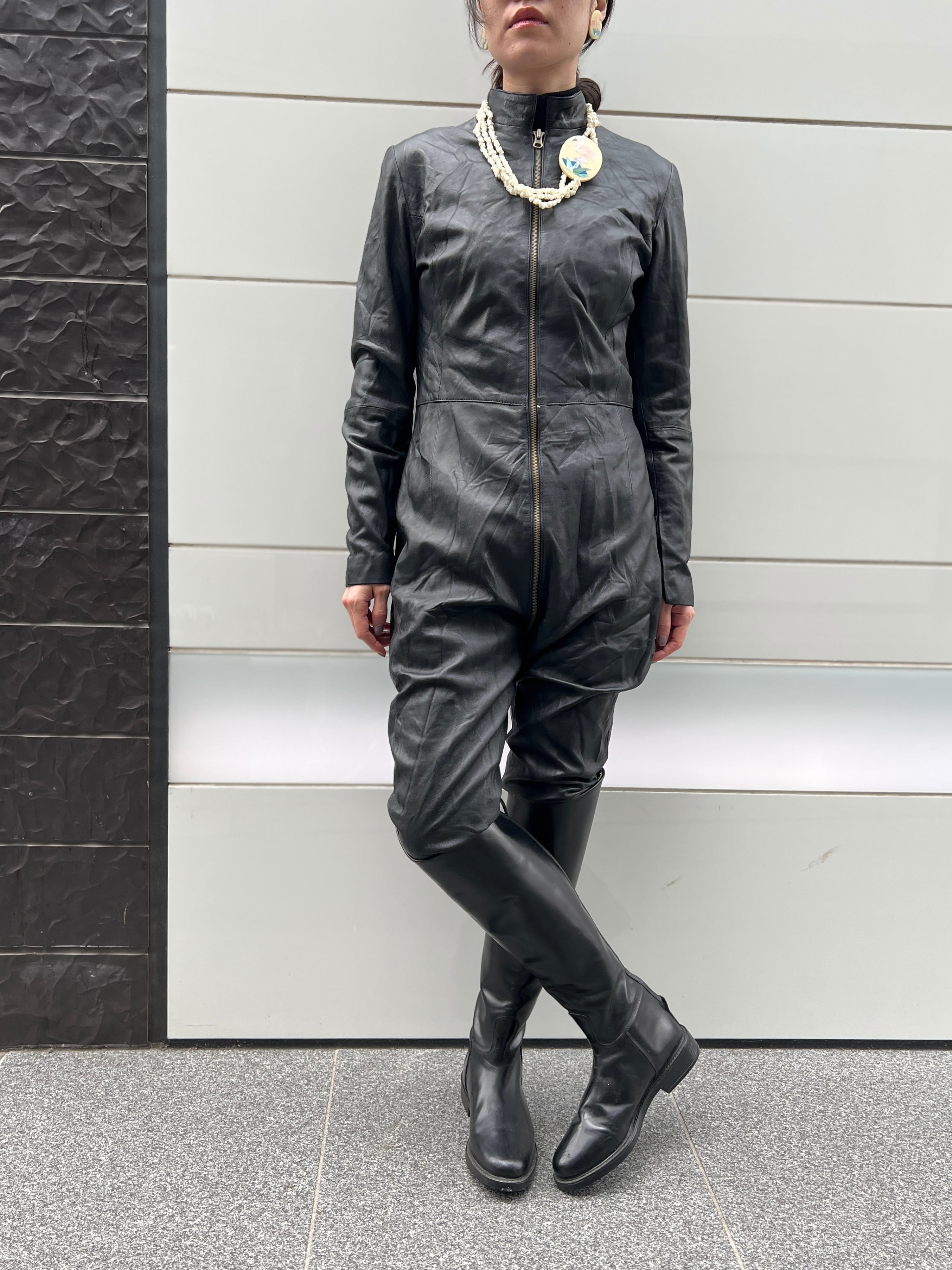 レザーの存在感で一瞬で主役になるジャンプスーツ。