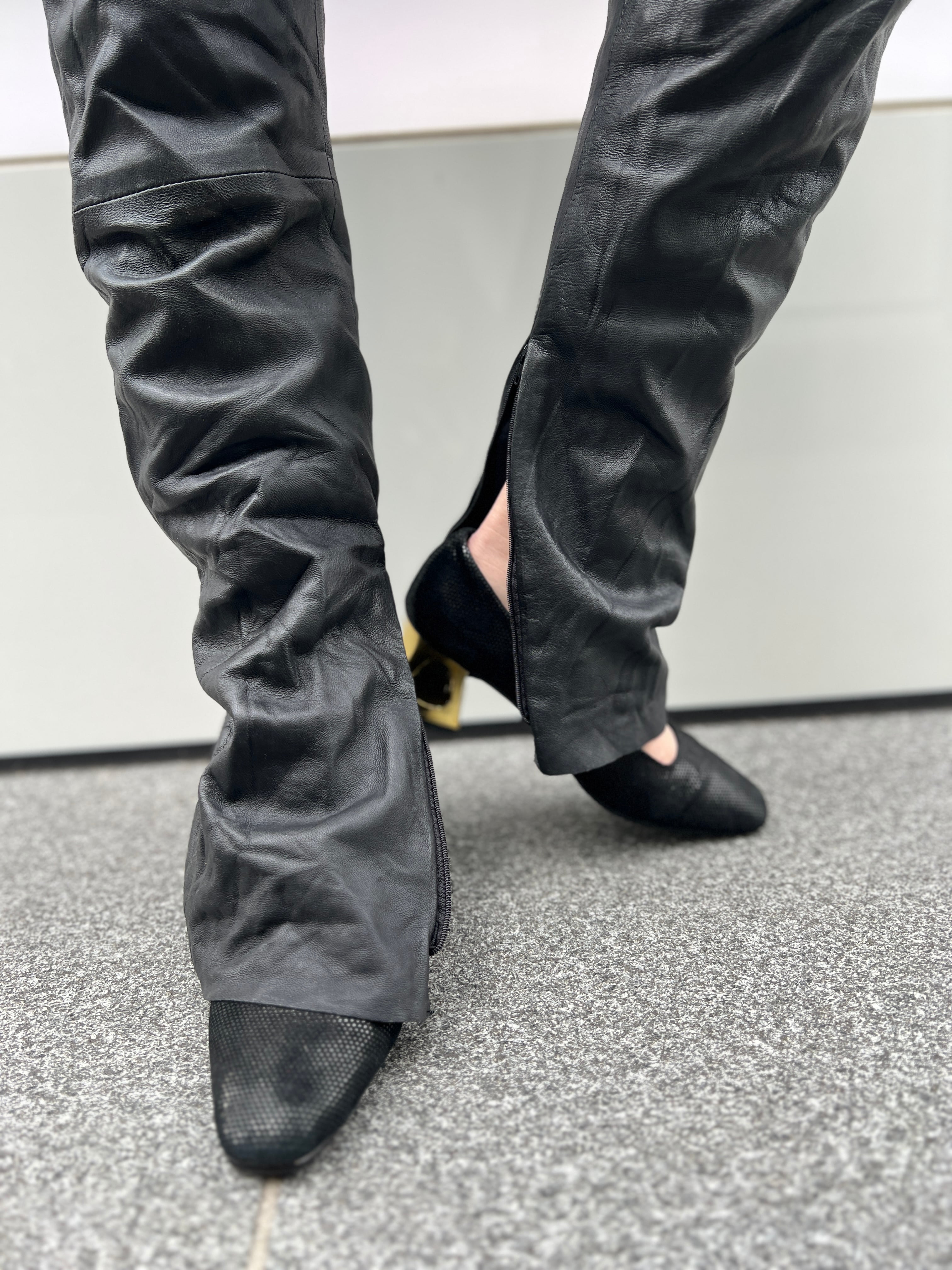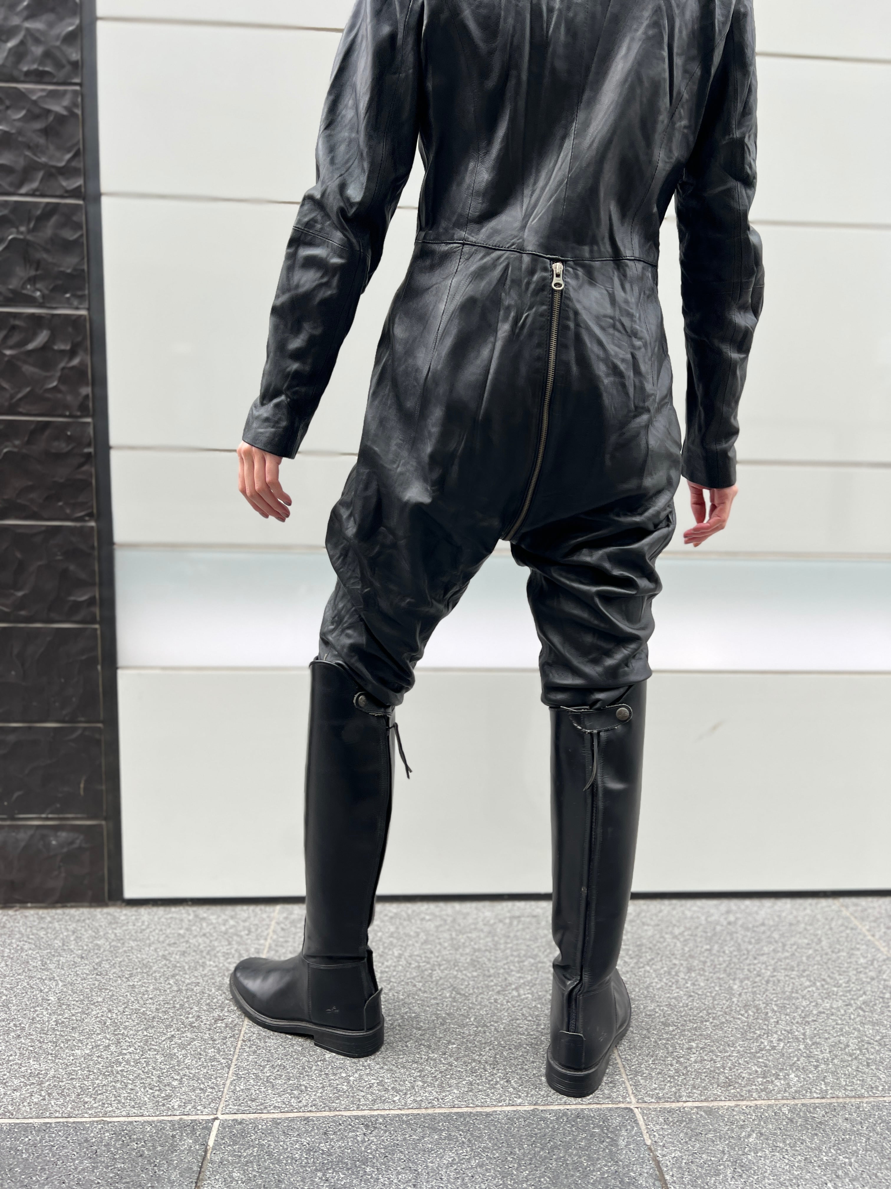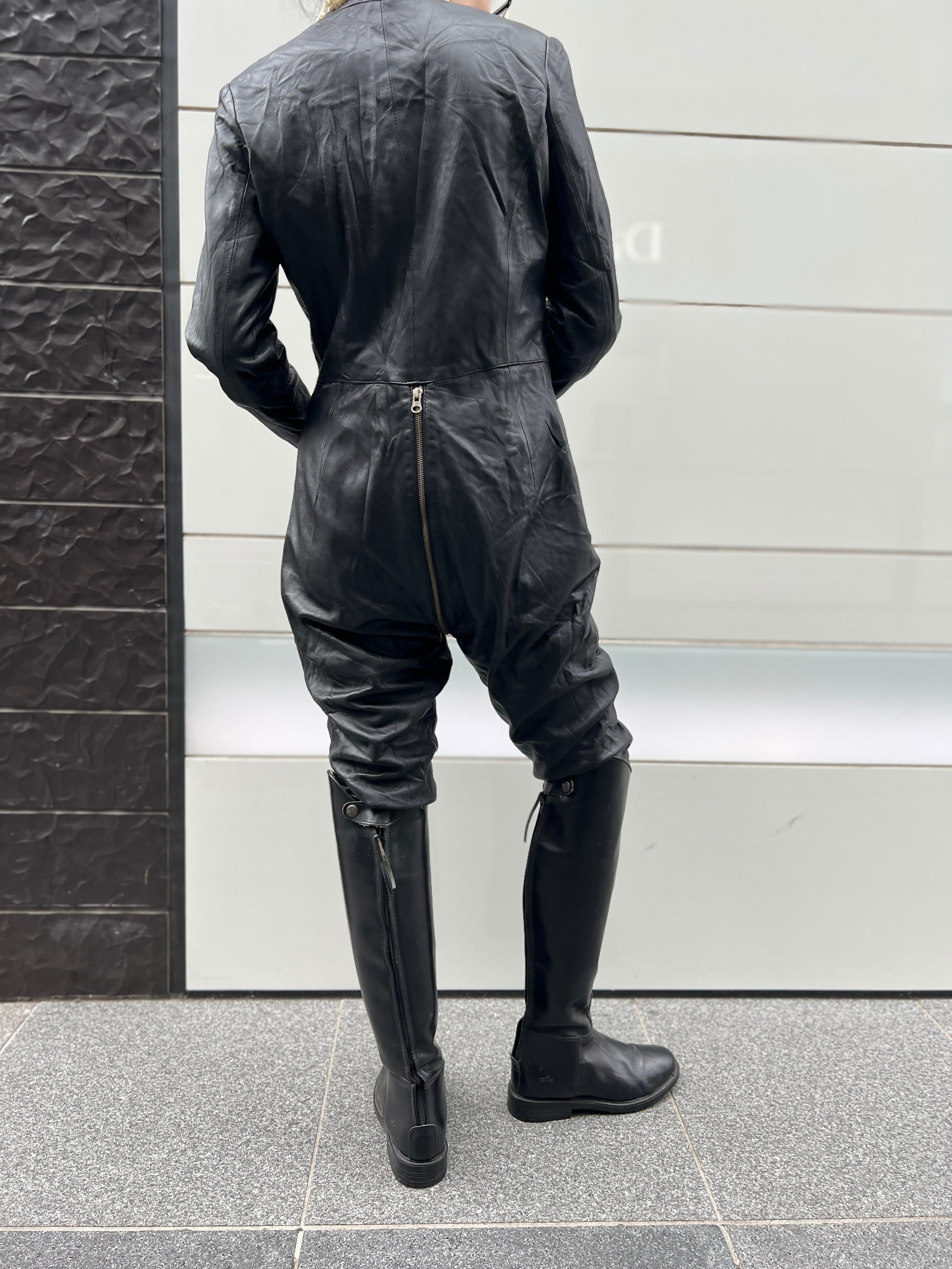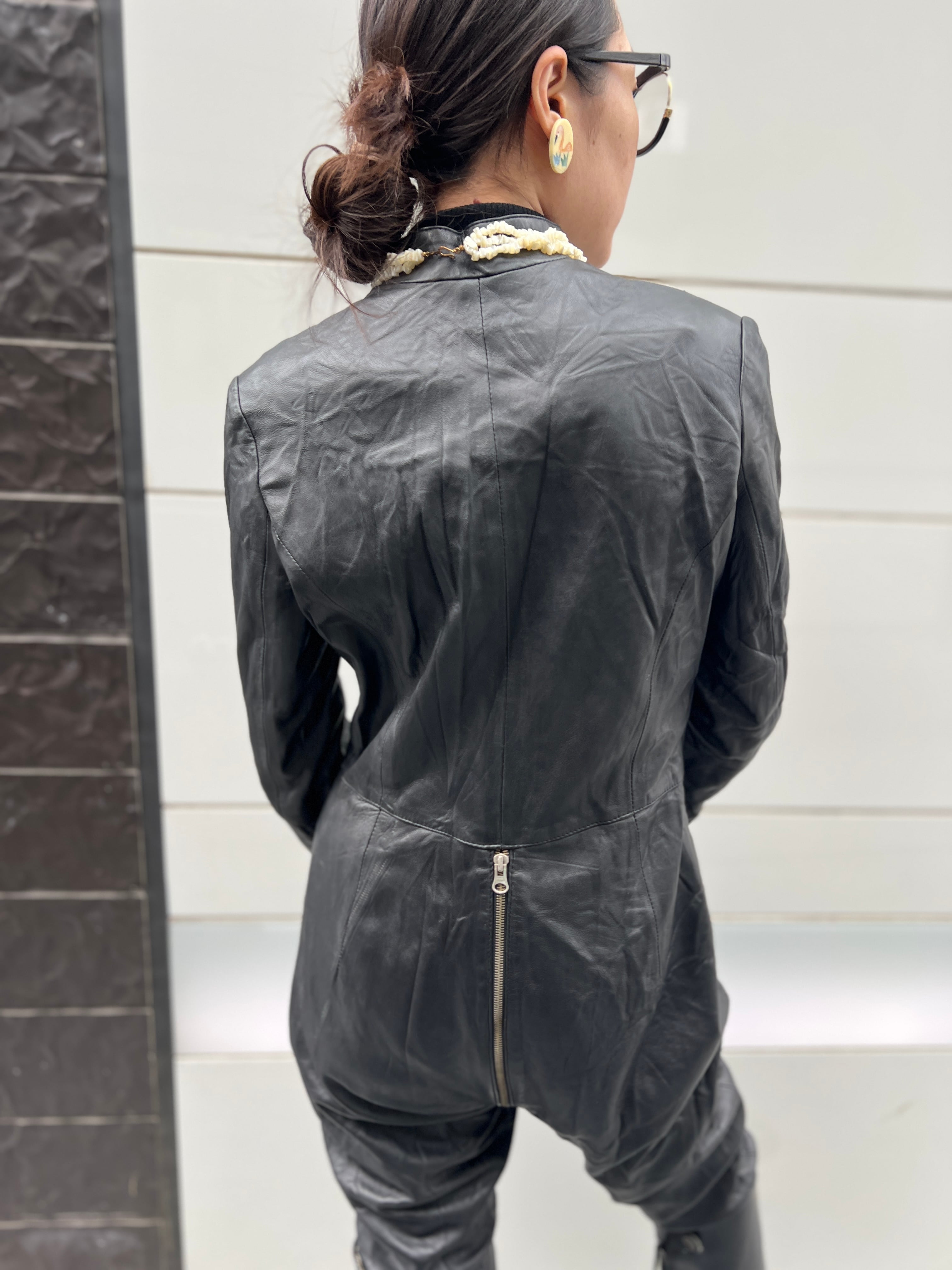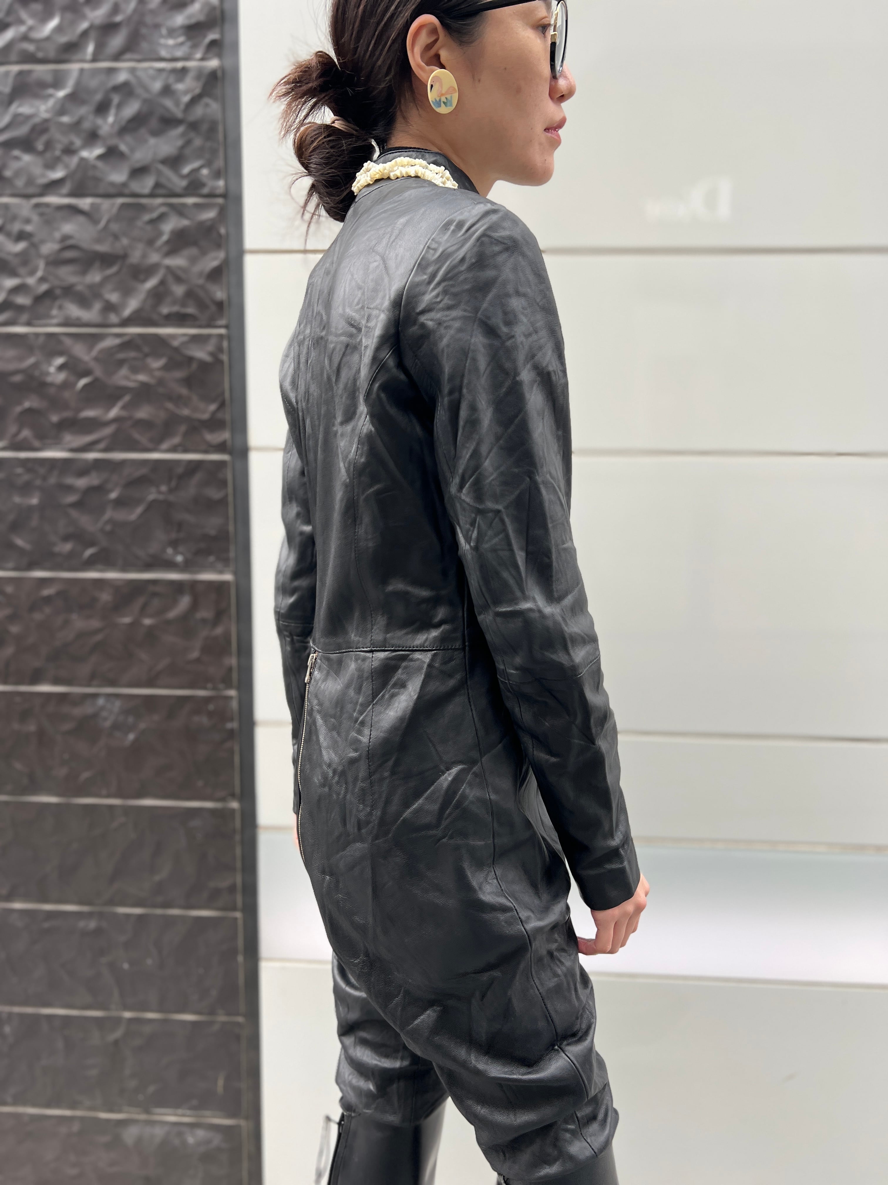 レザーの存在感で一瞬で主役になるジャンプスーツ。