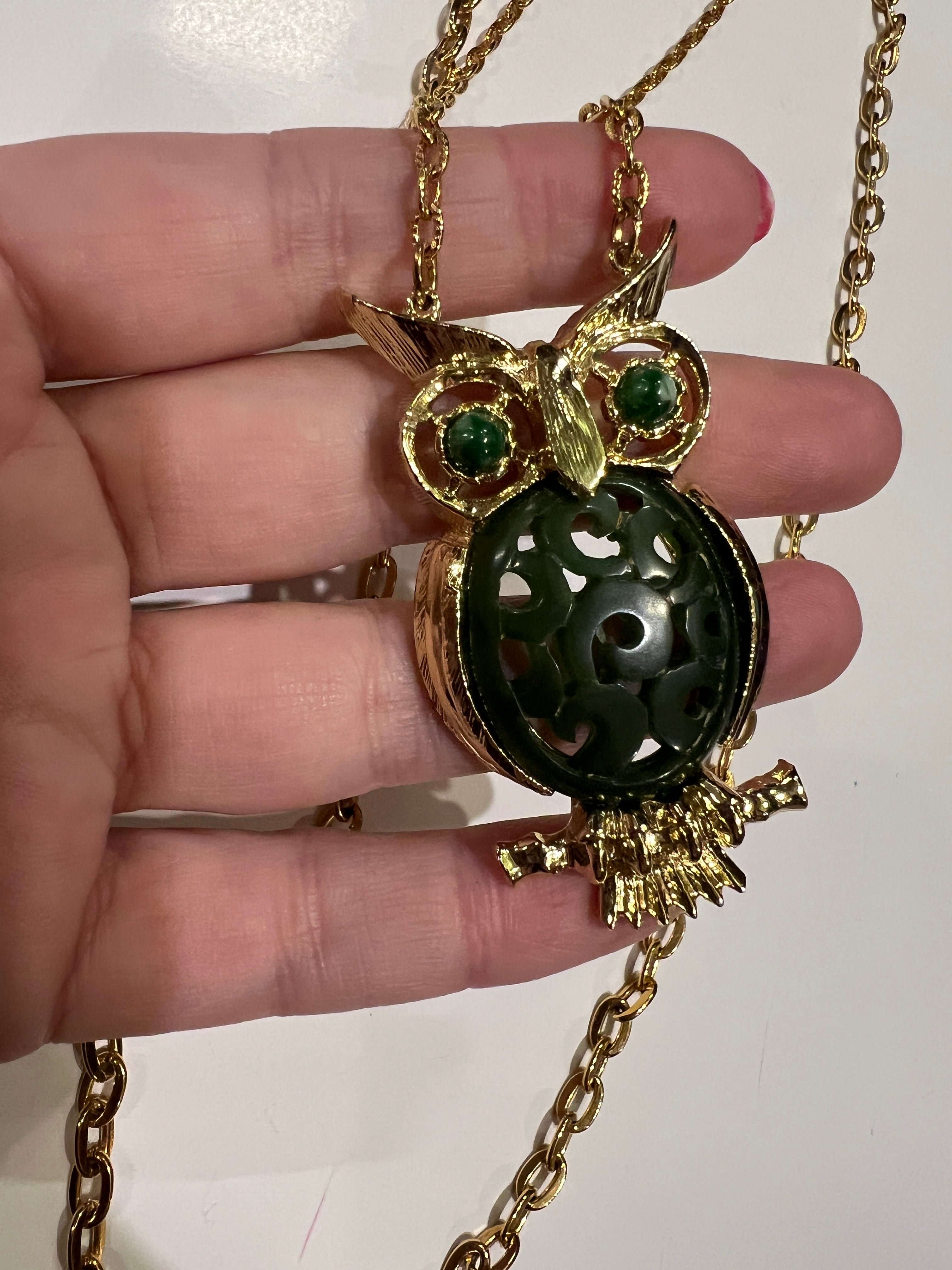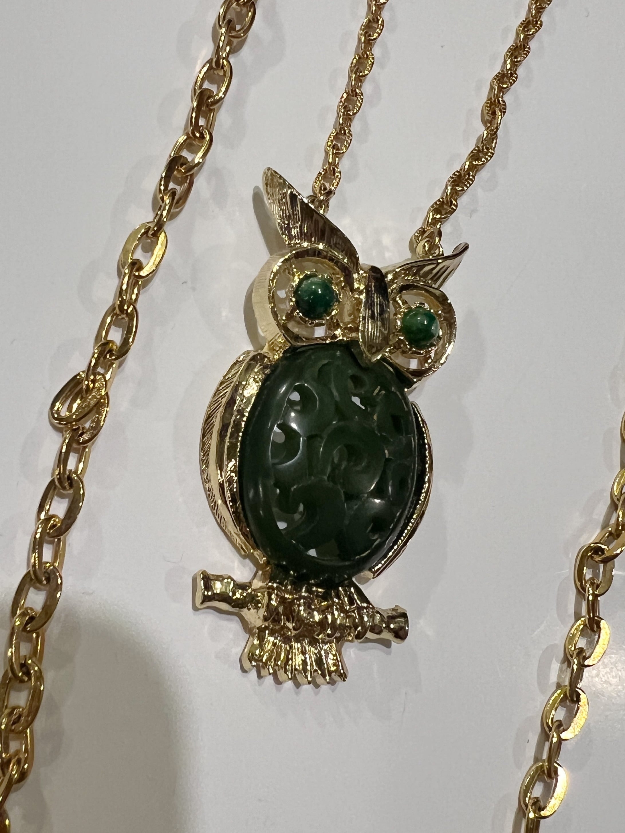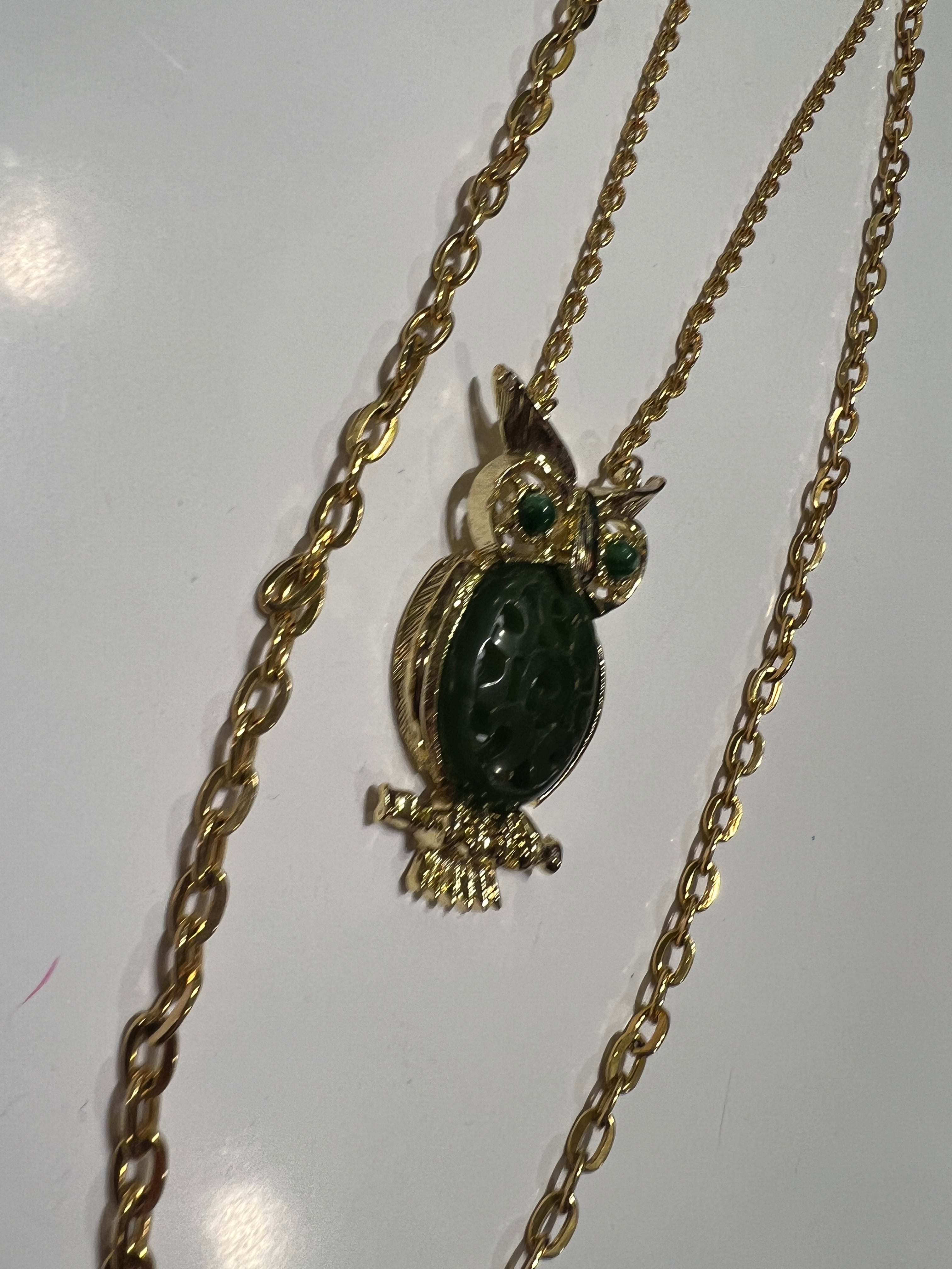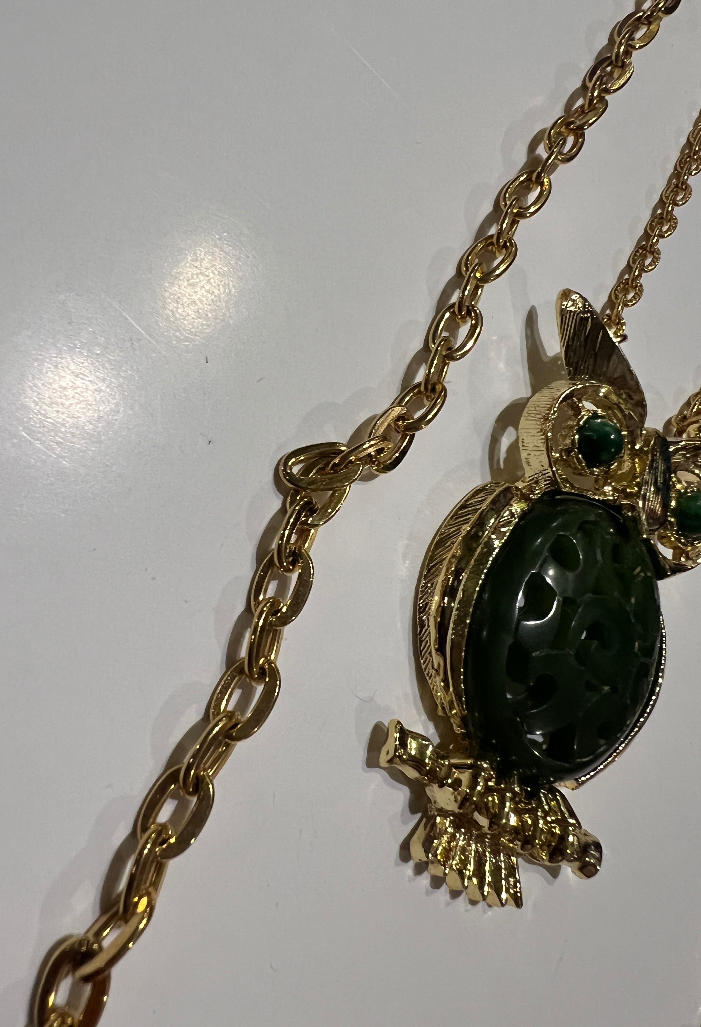Vintage gold × deepgreen owl necklace