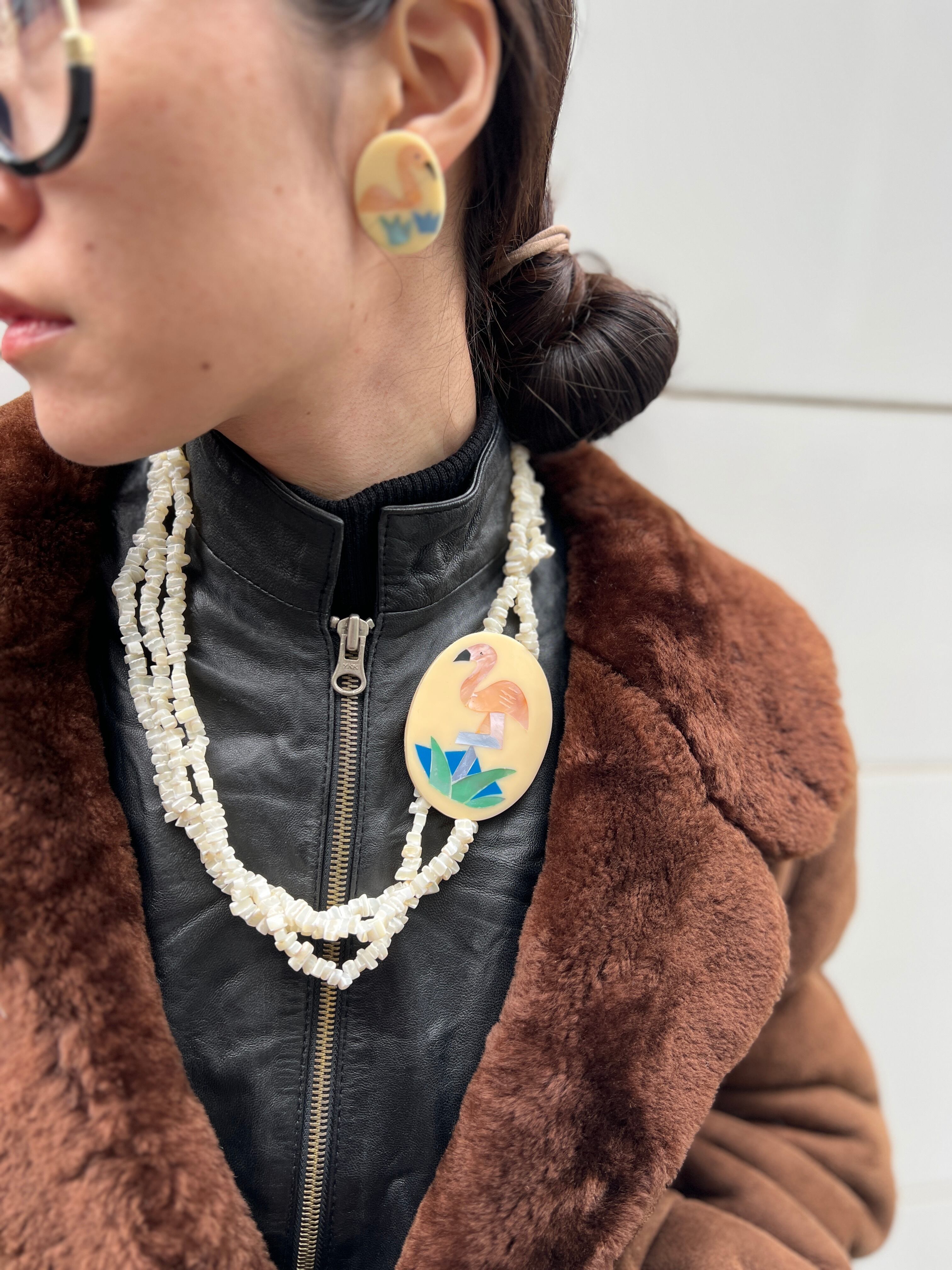 Dead stock 80s designer's Flamingo Necklace & pierced earrings ( 未使用 デザイナーズ フラミンゴ ネックレス × ピアス )