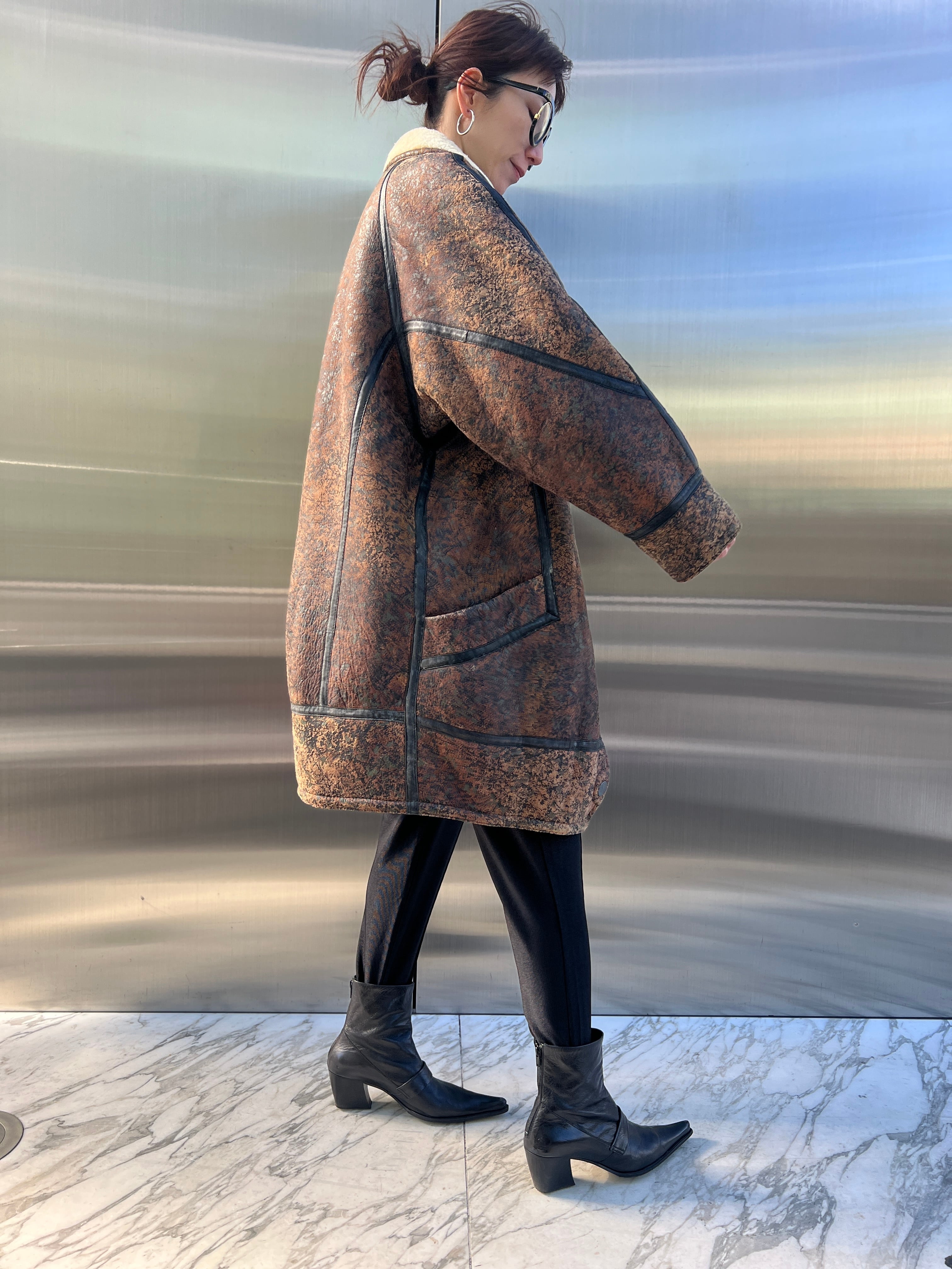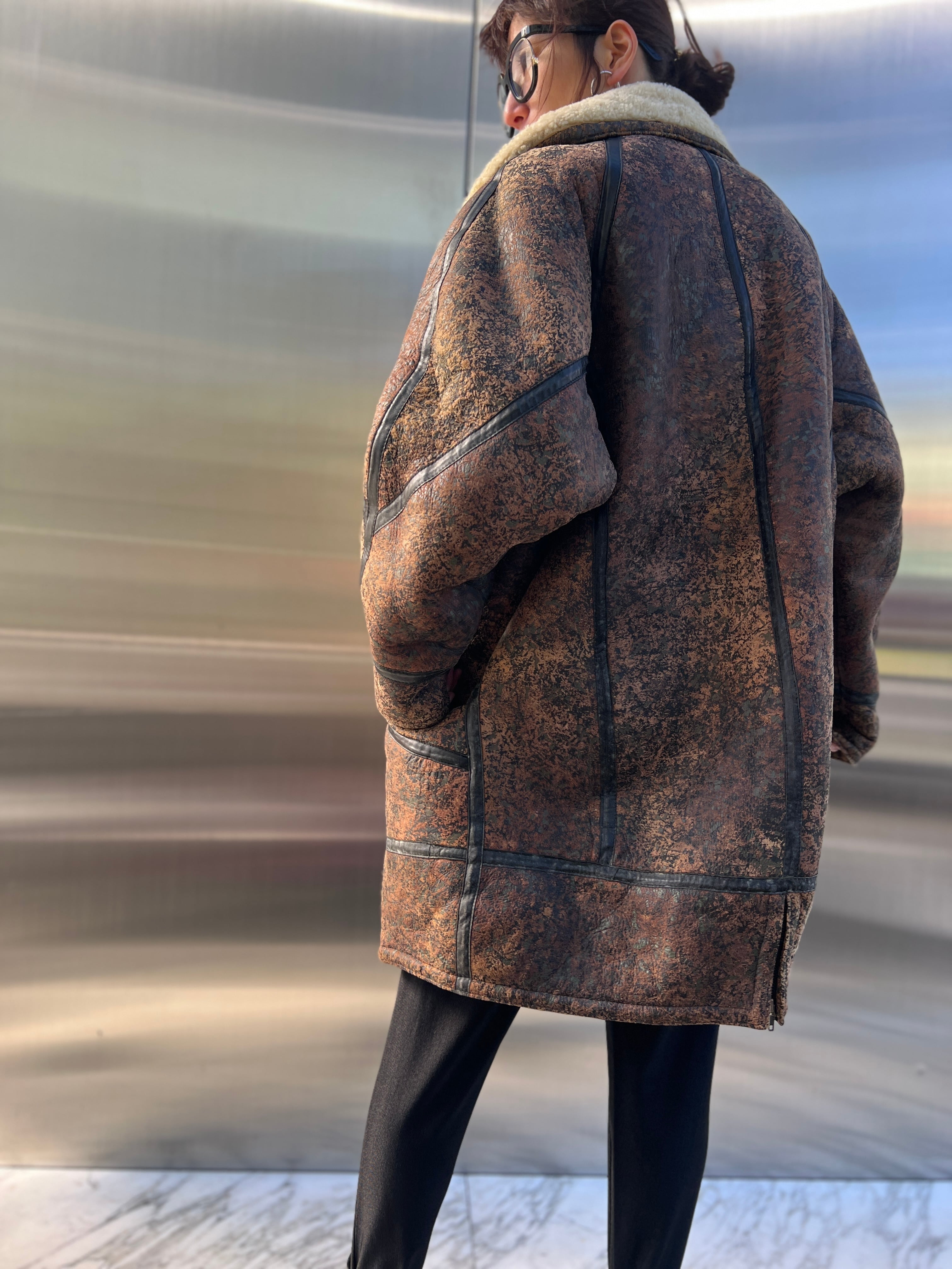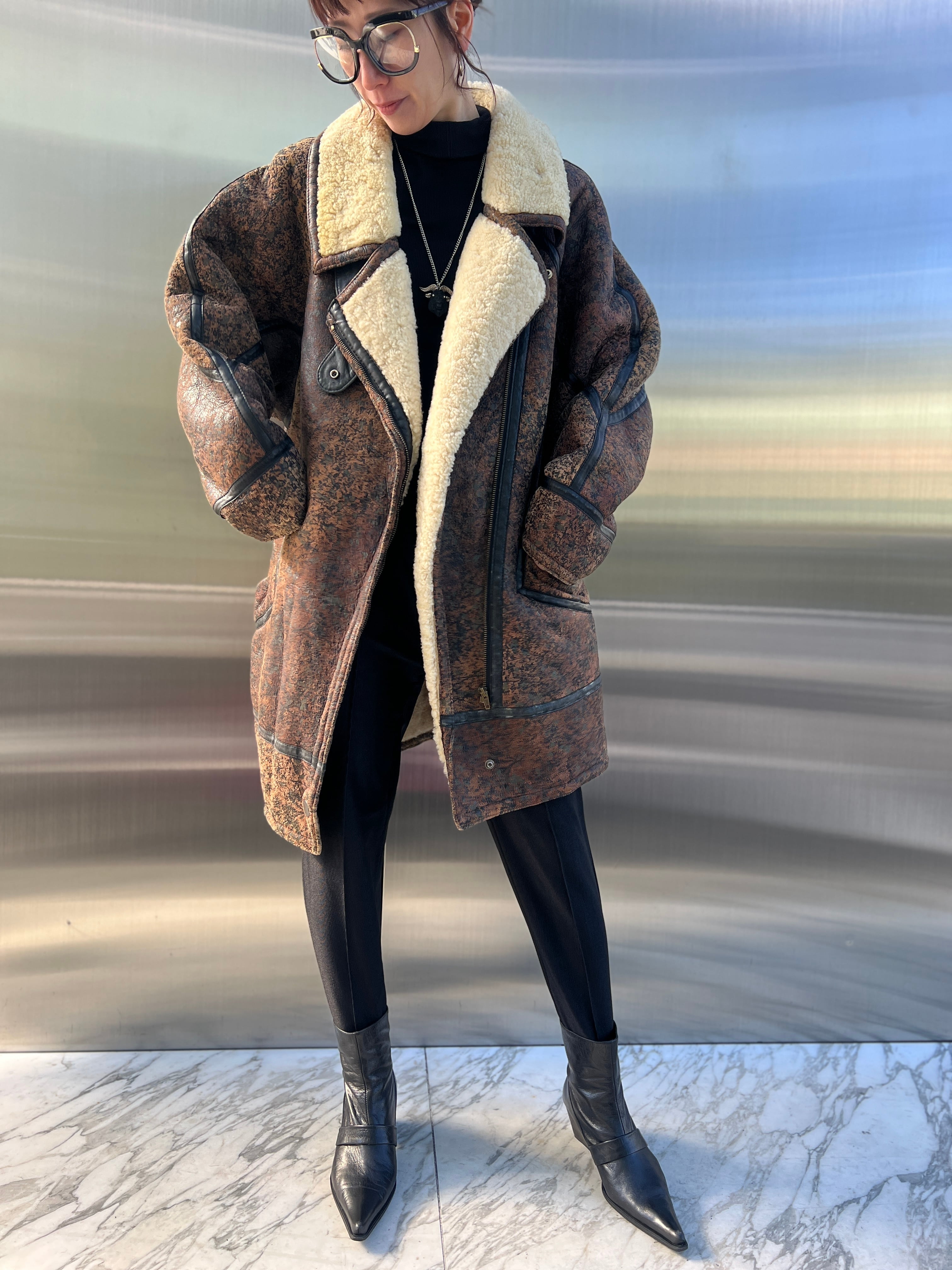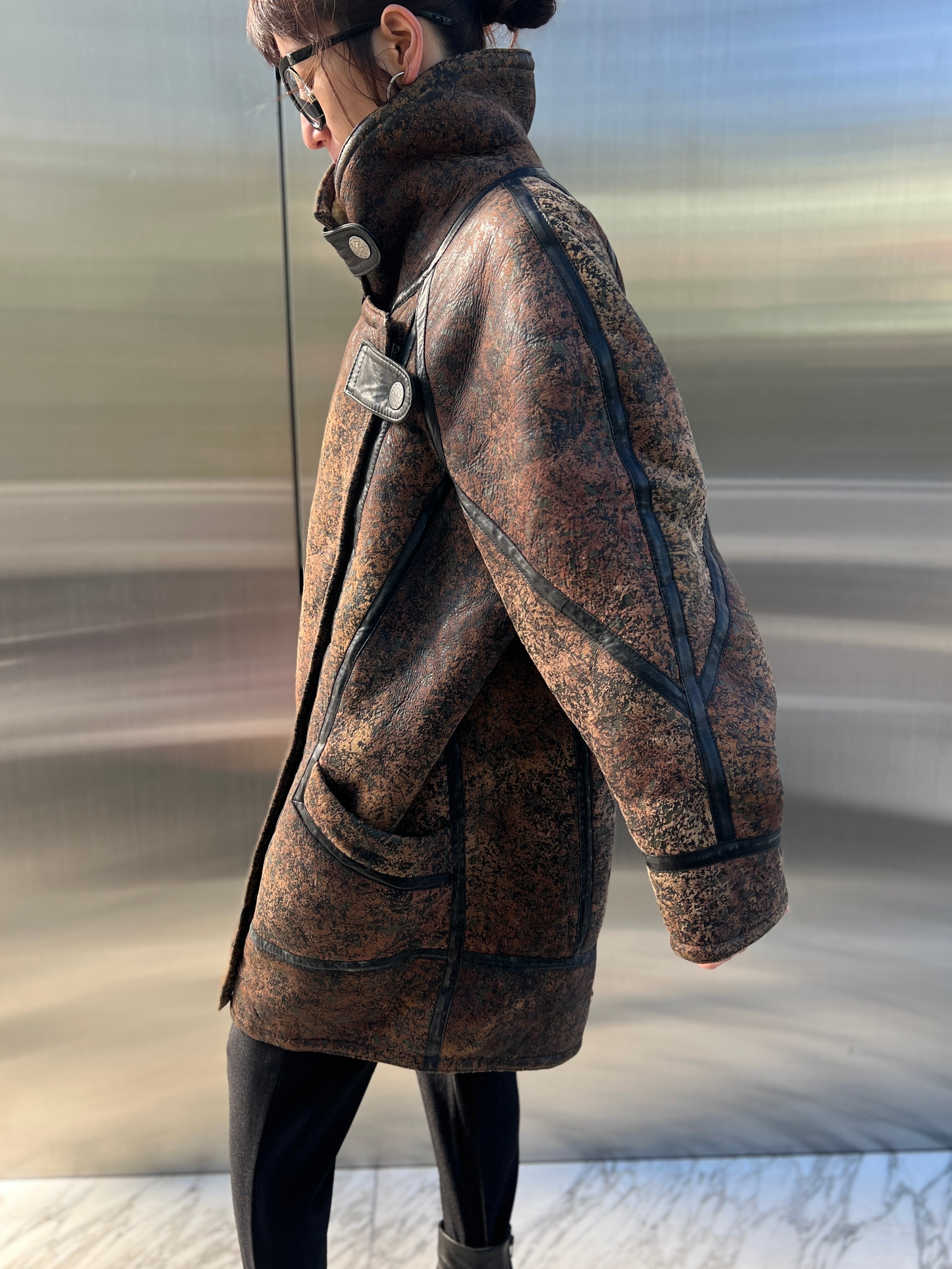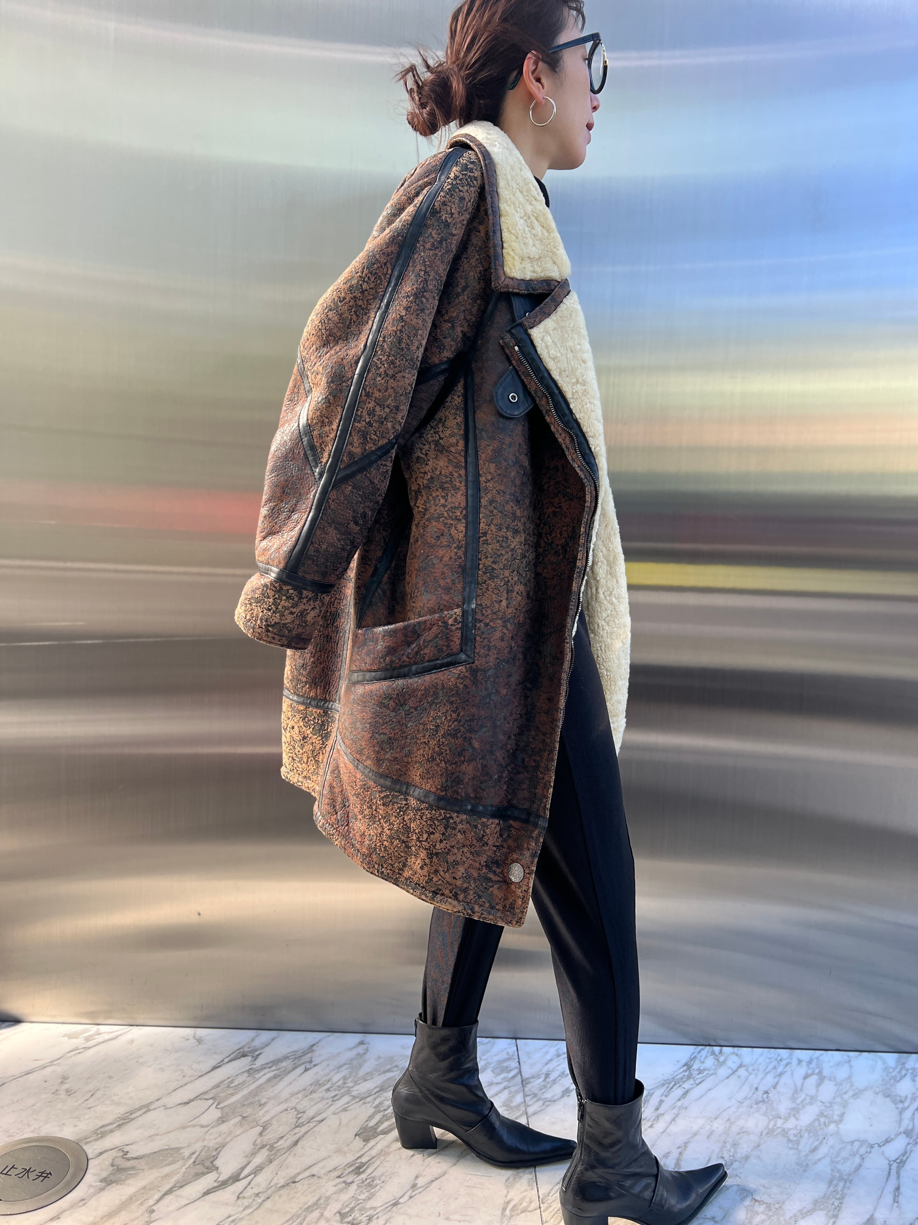 80年代 ドイツ ブラウン× カーキペイント ムートン コート。