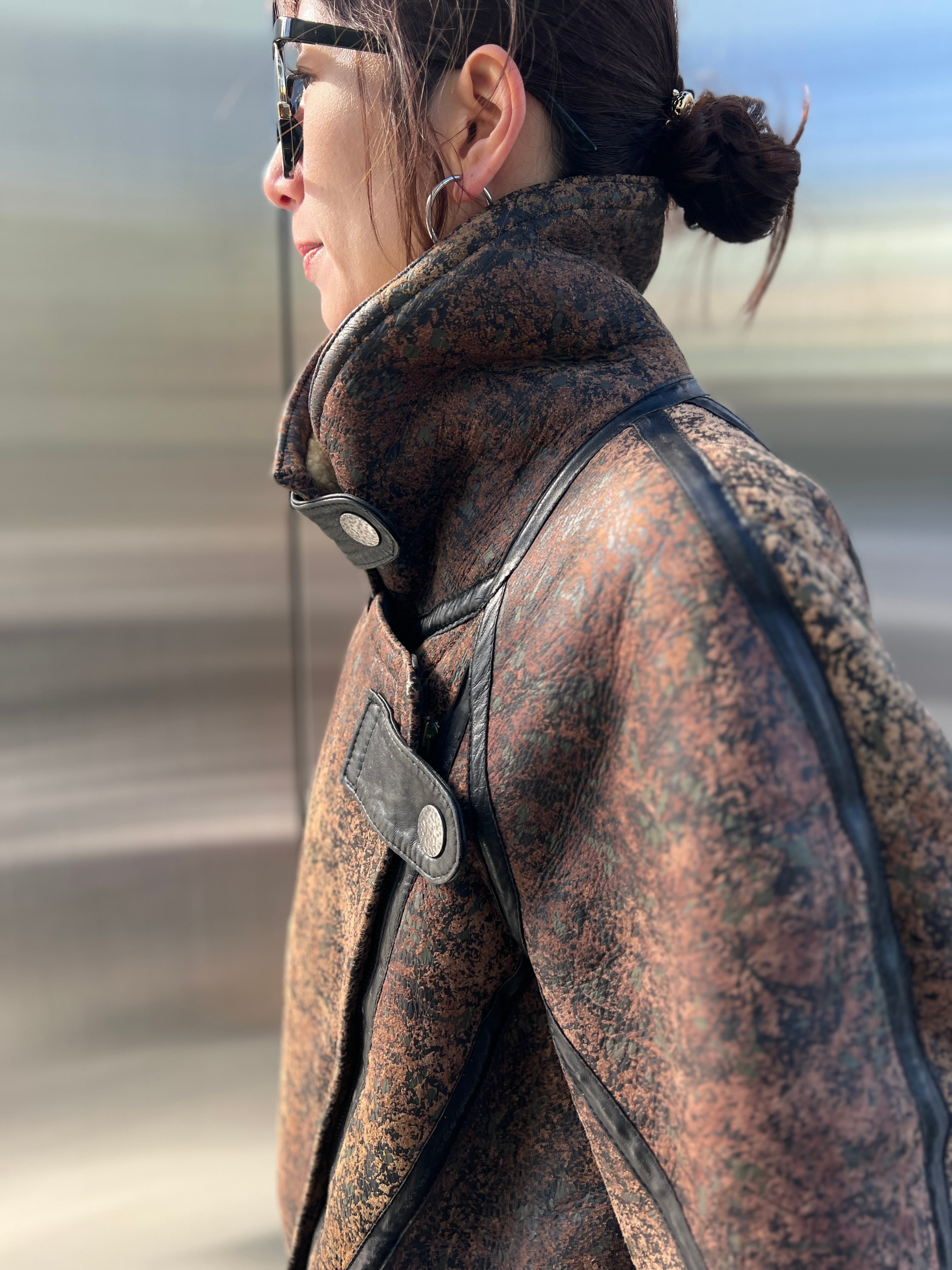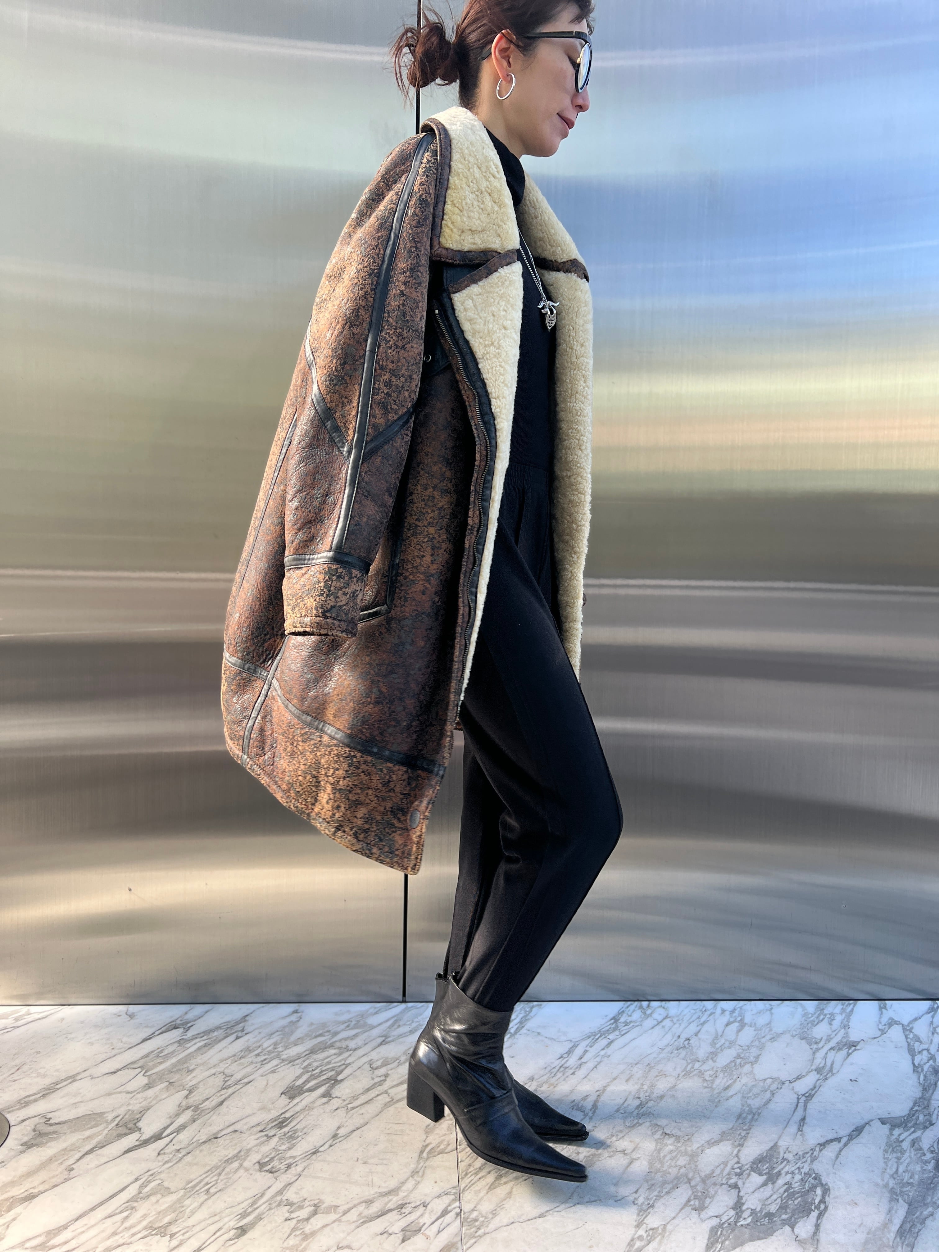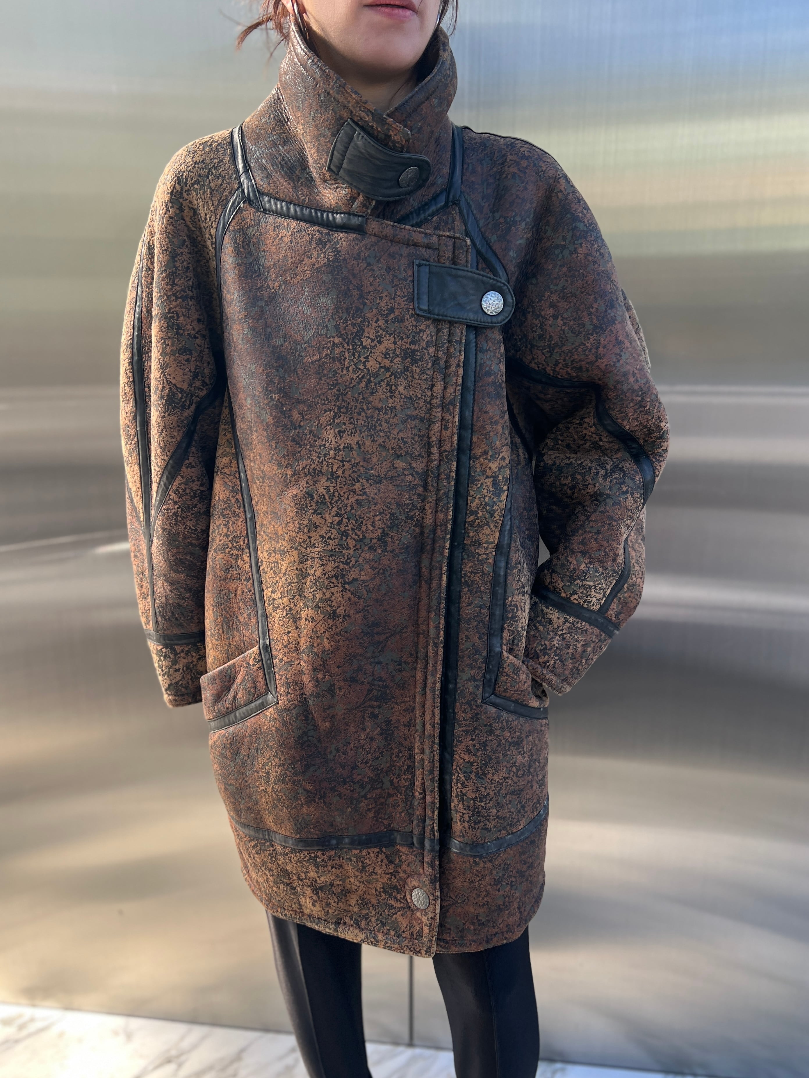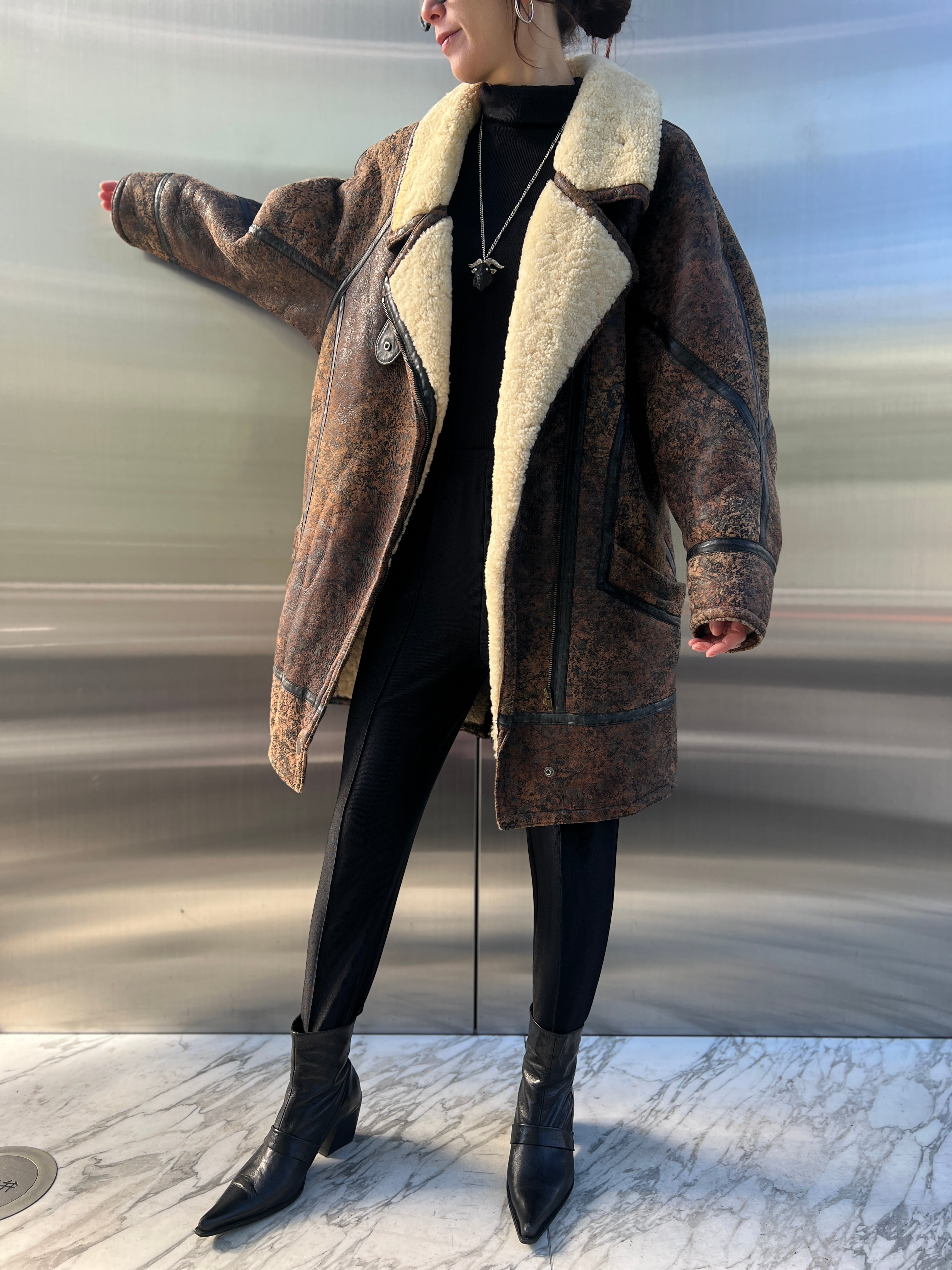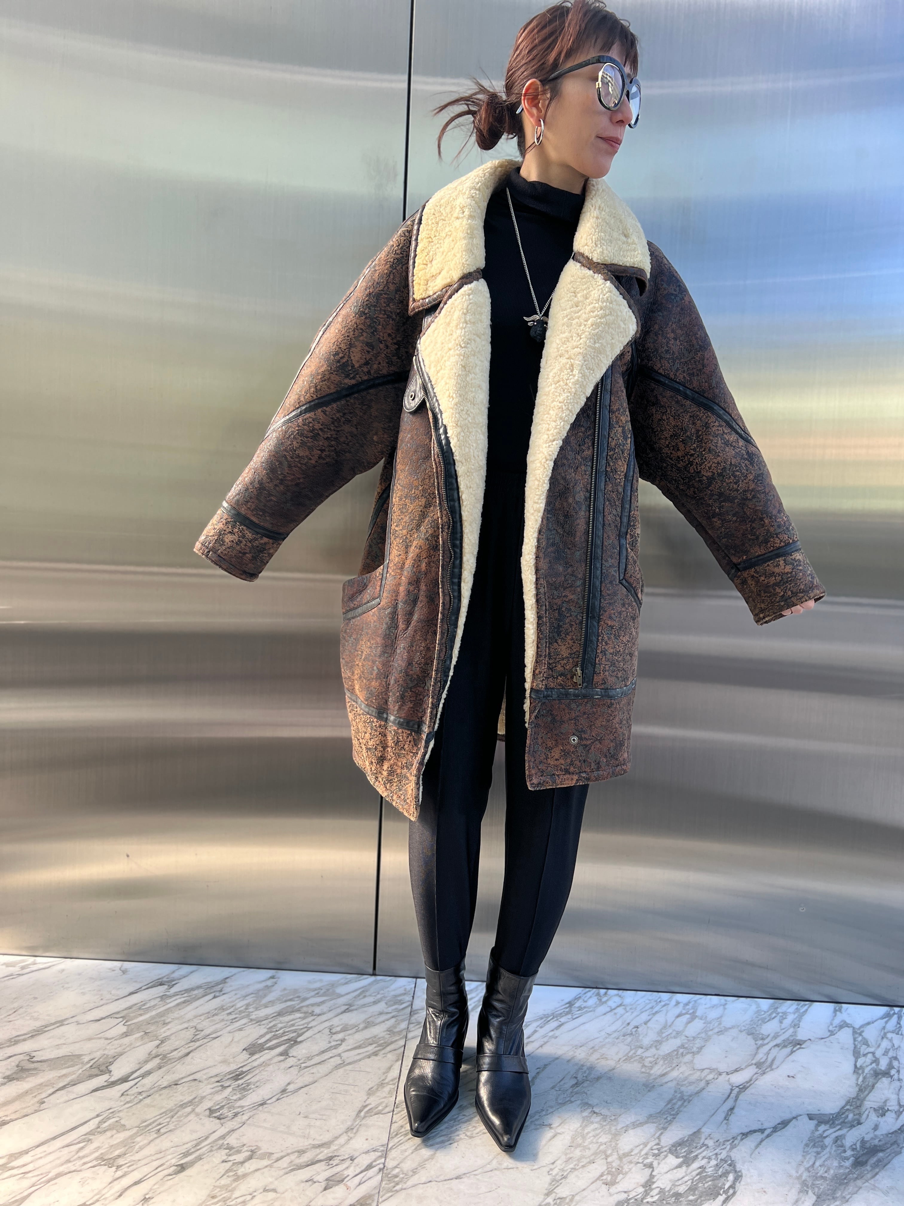 80年代 ドイツ ブラウン× カーキペイント ムートン コート。