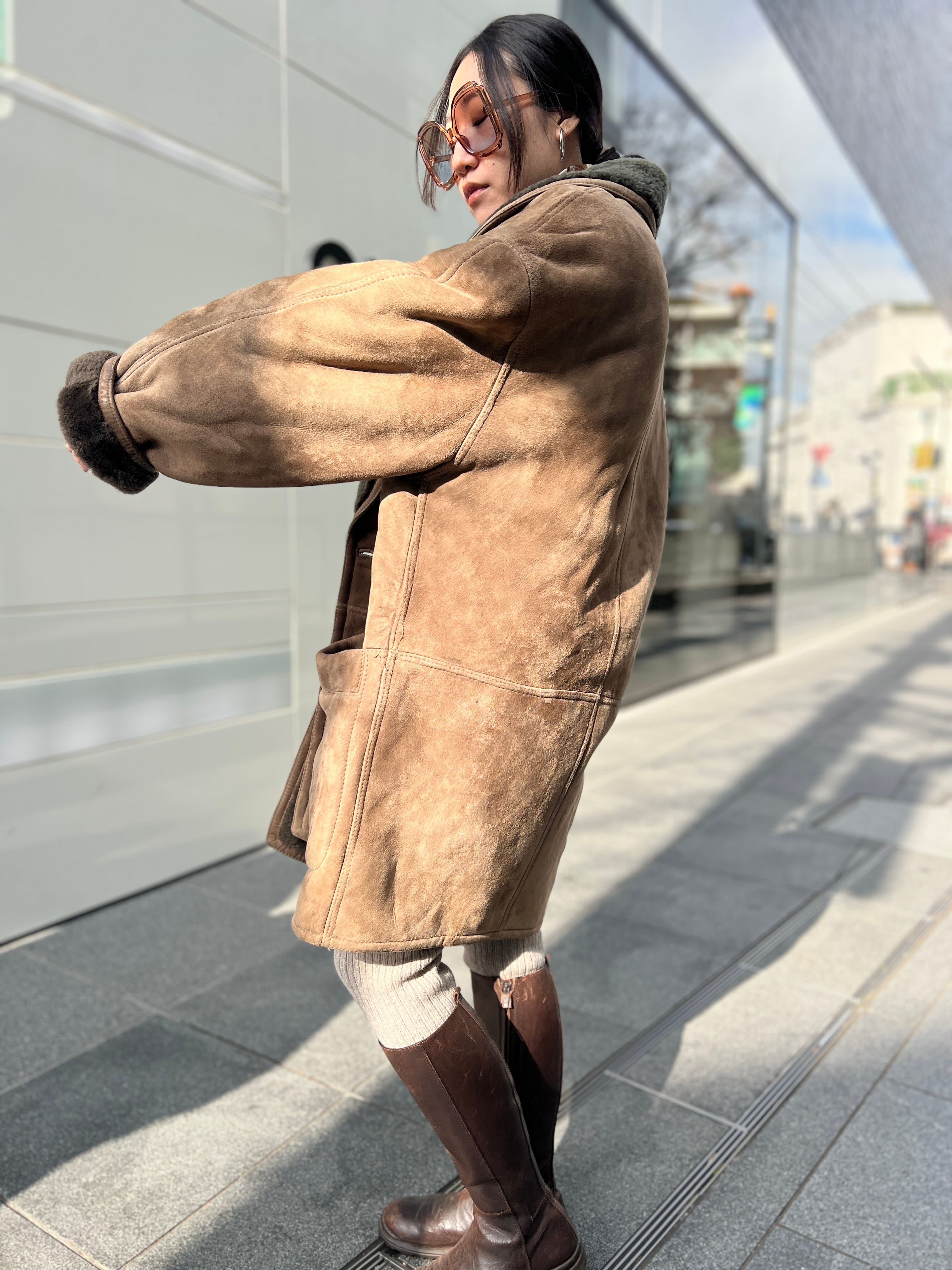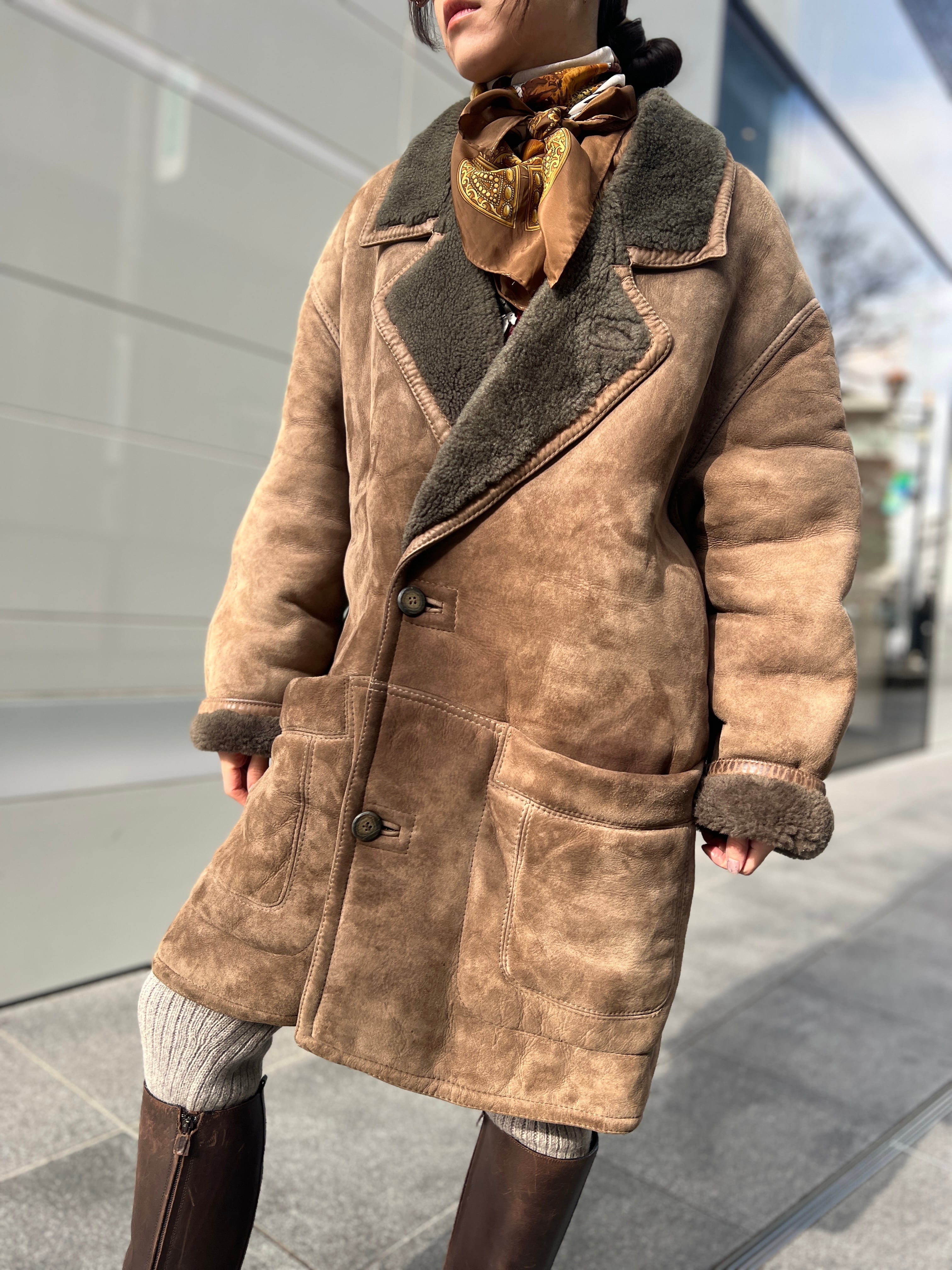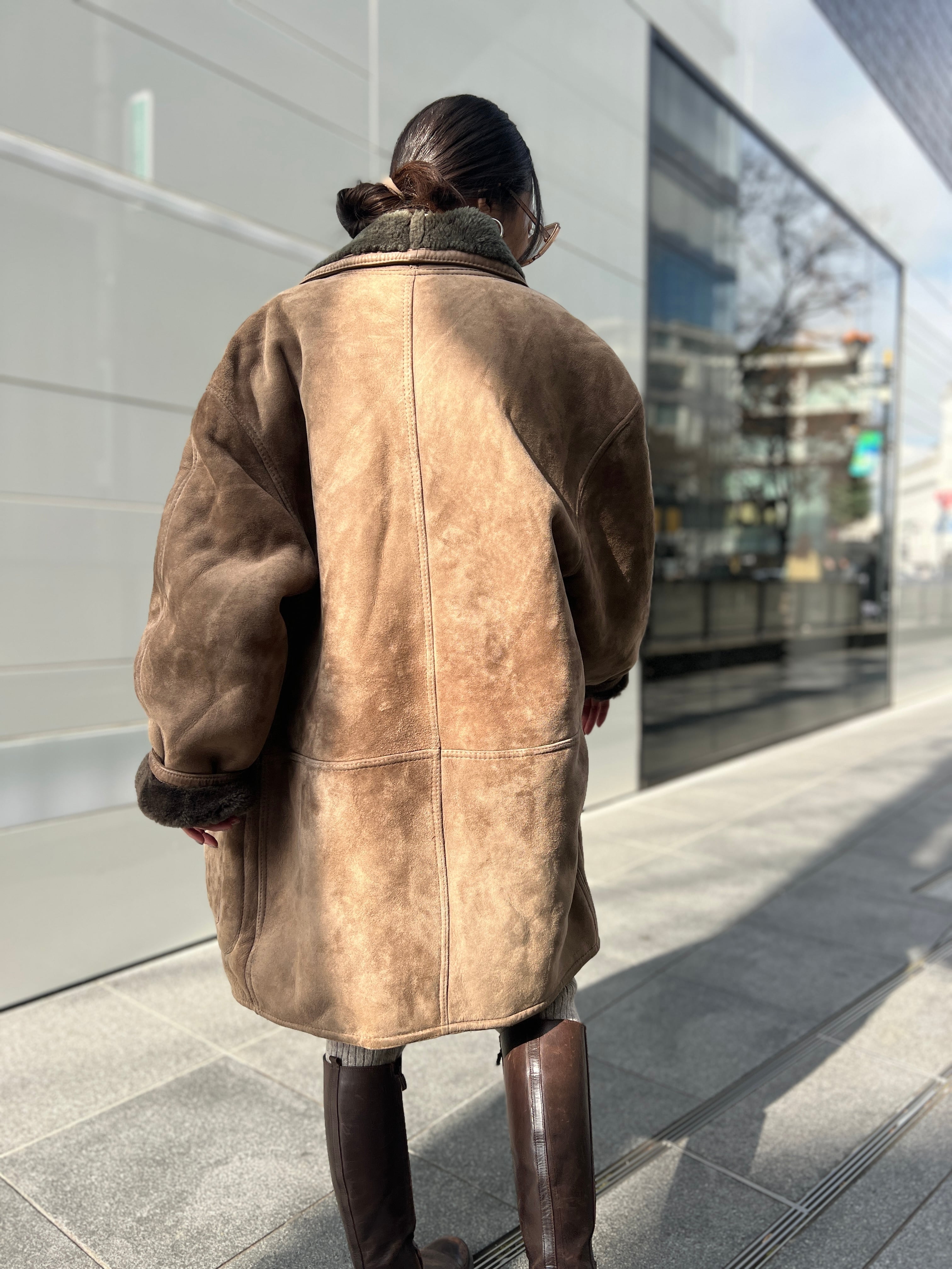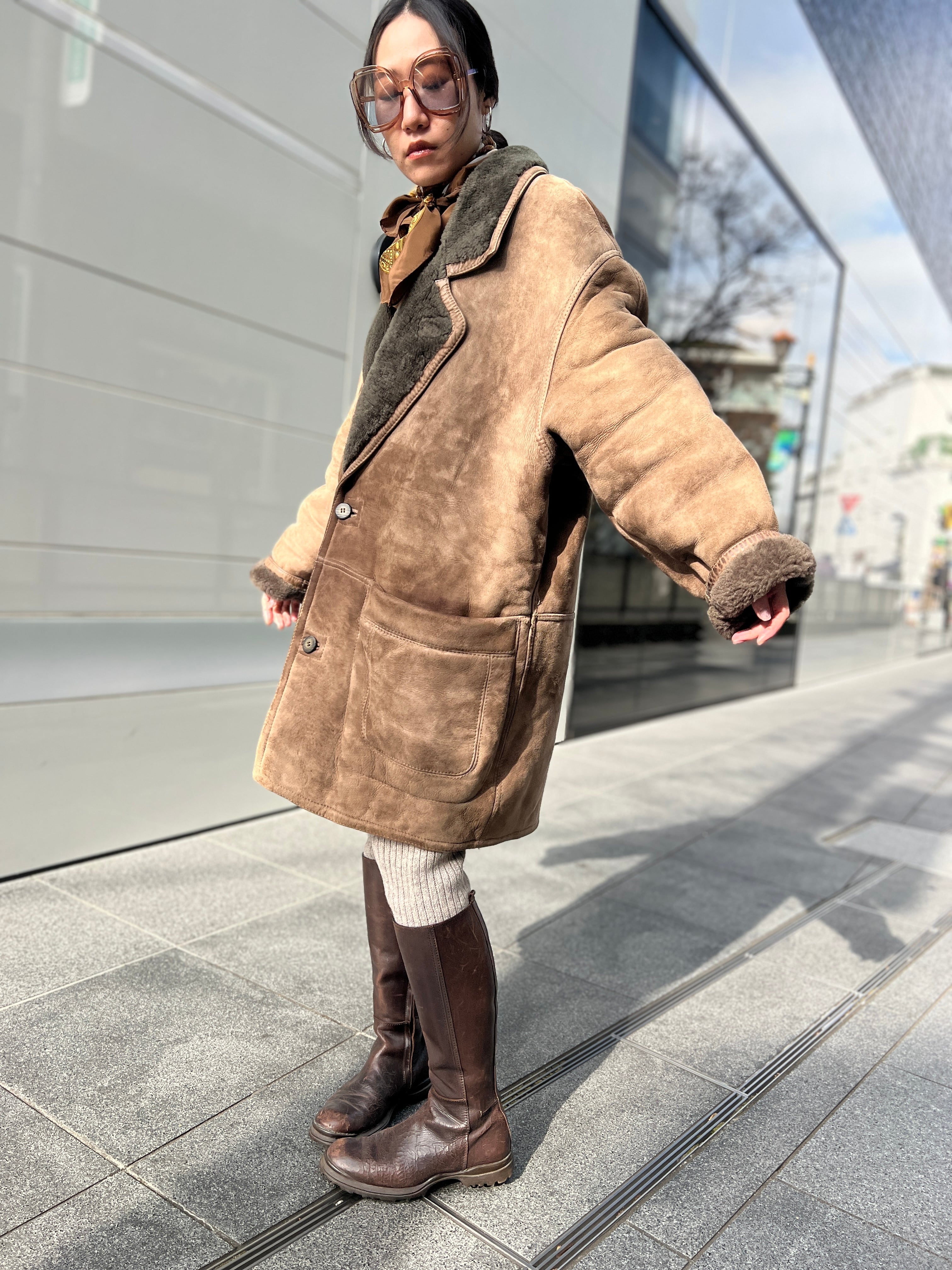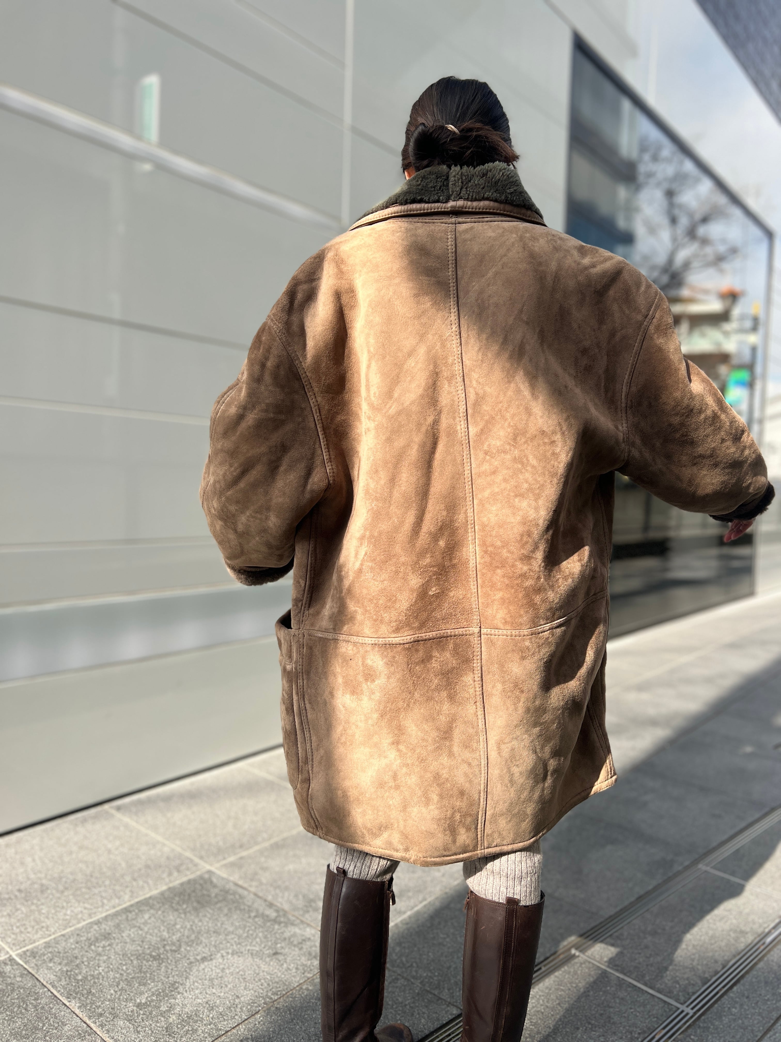 80年代 ヨーロッパ グレージュ ムートンコート。