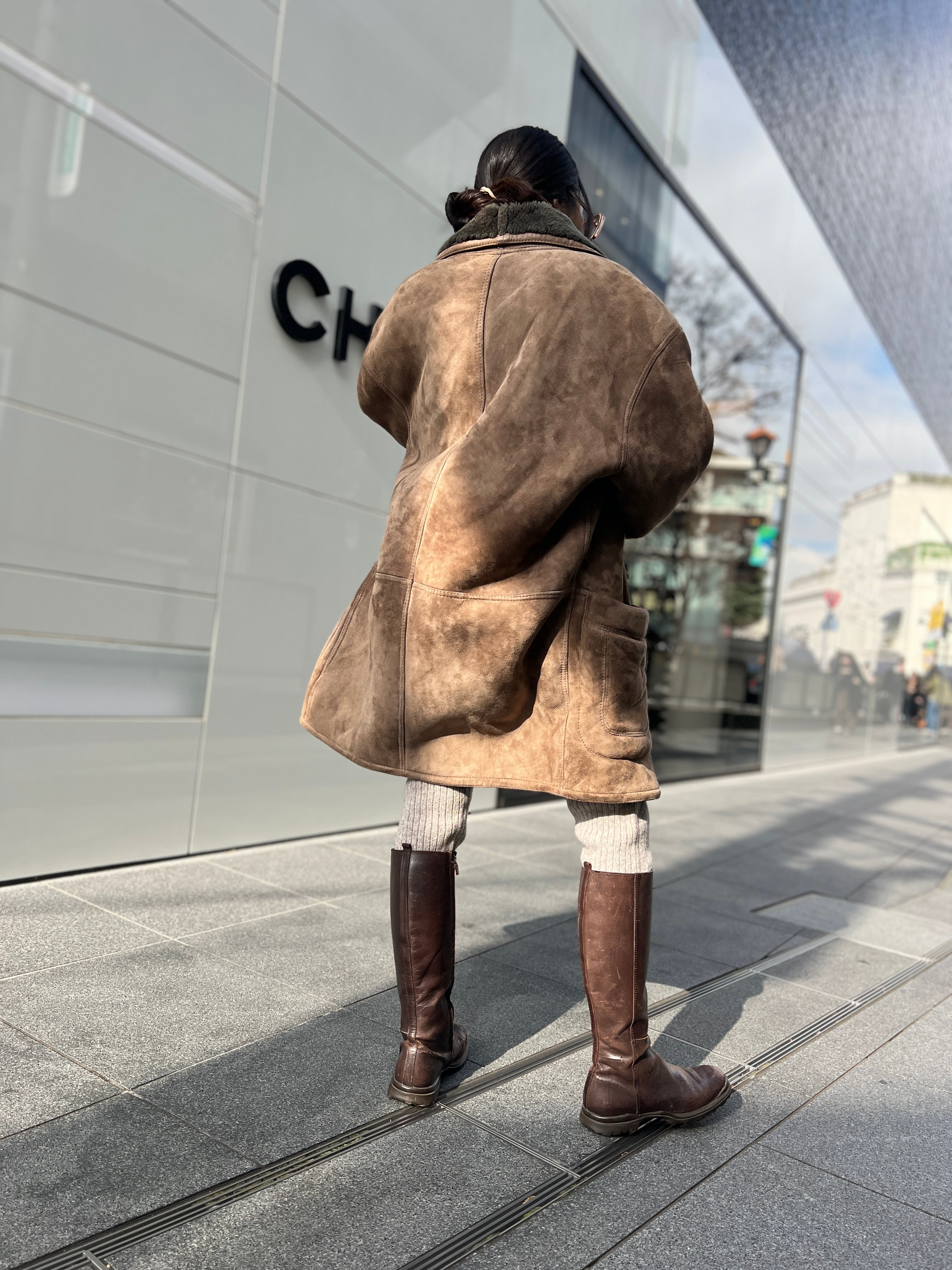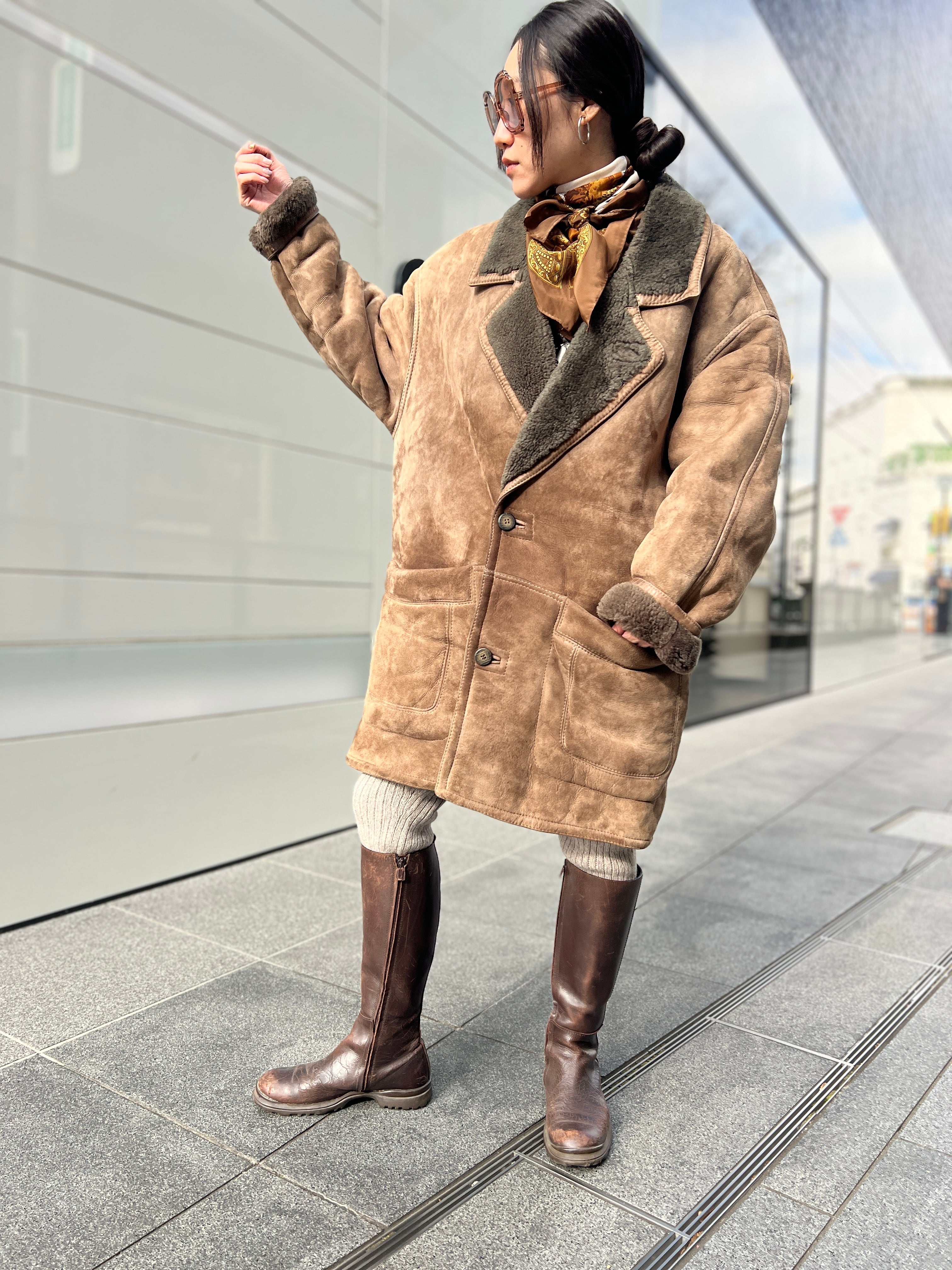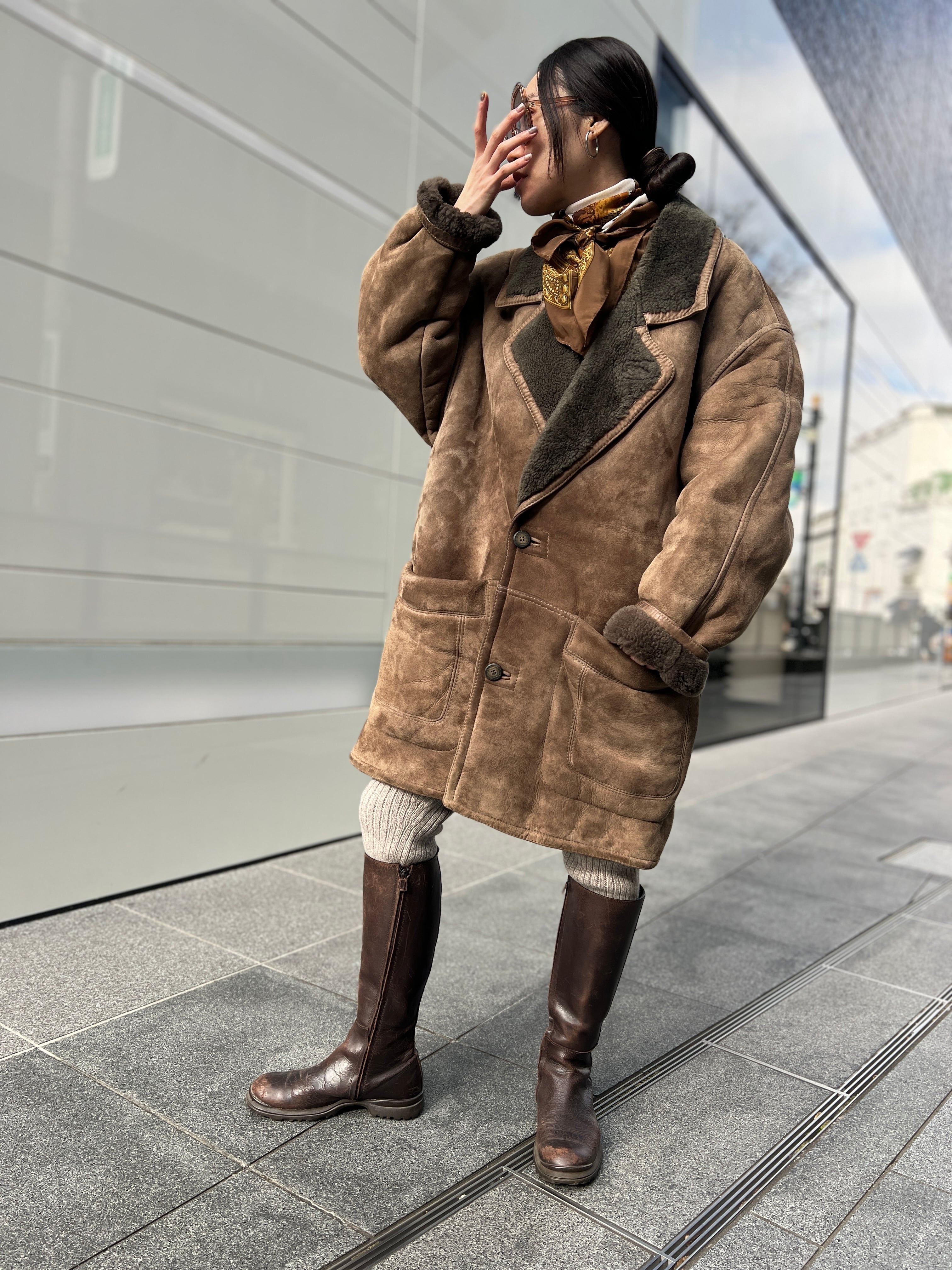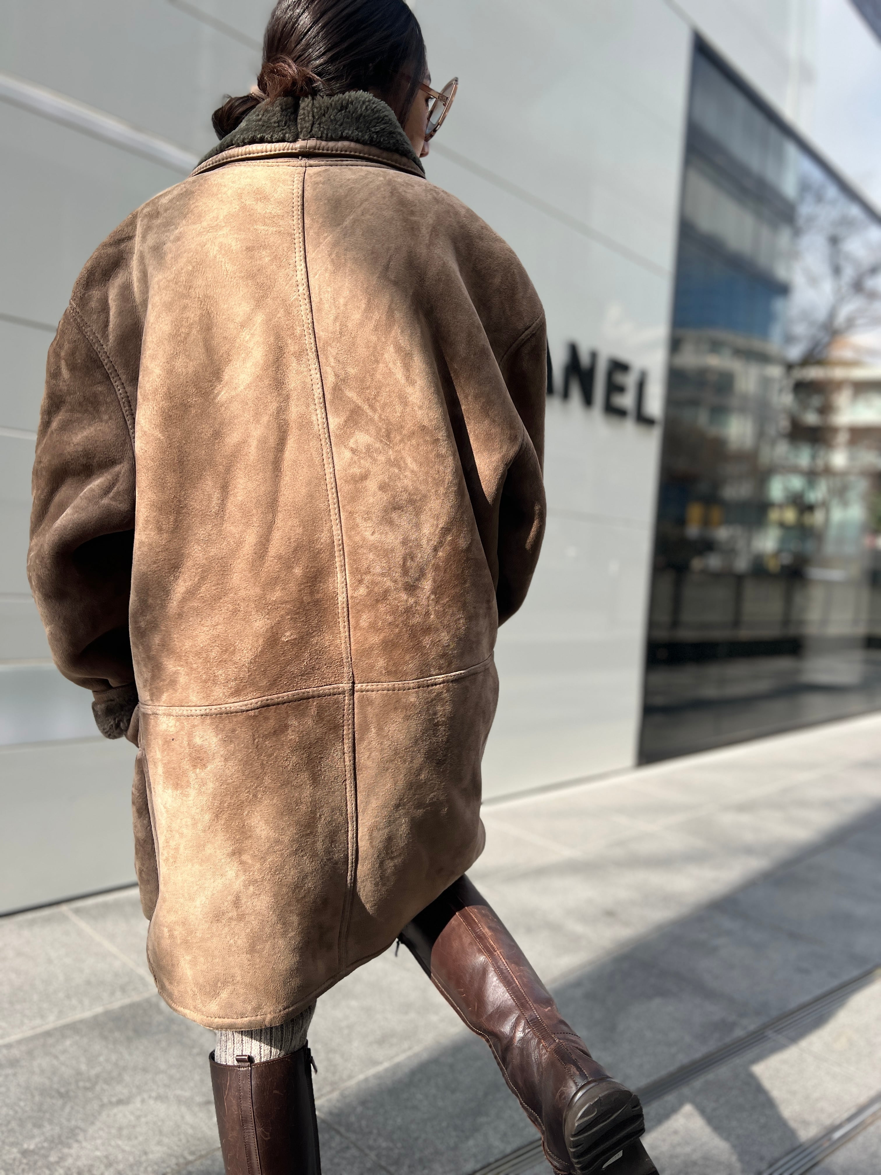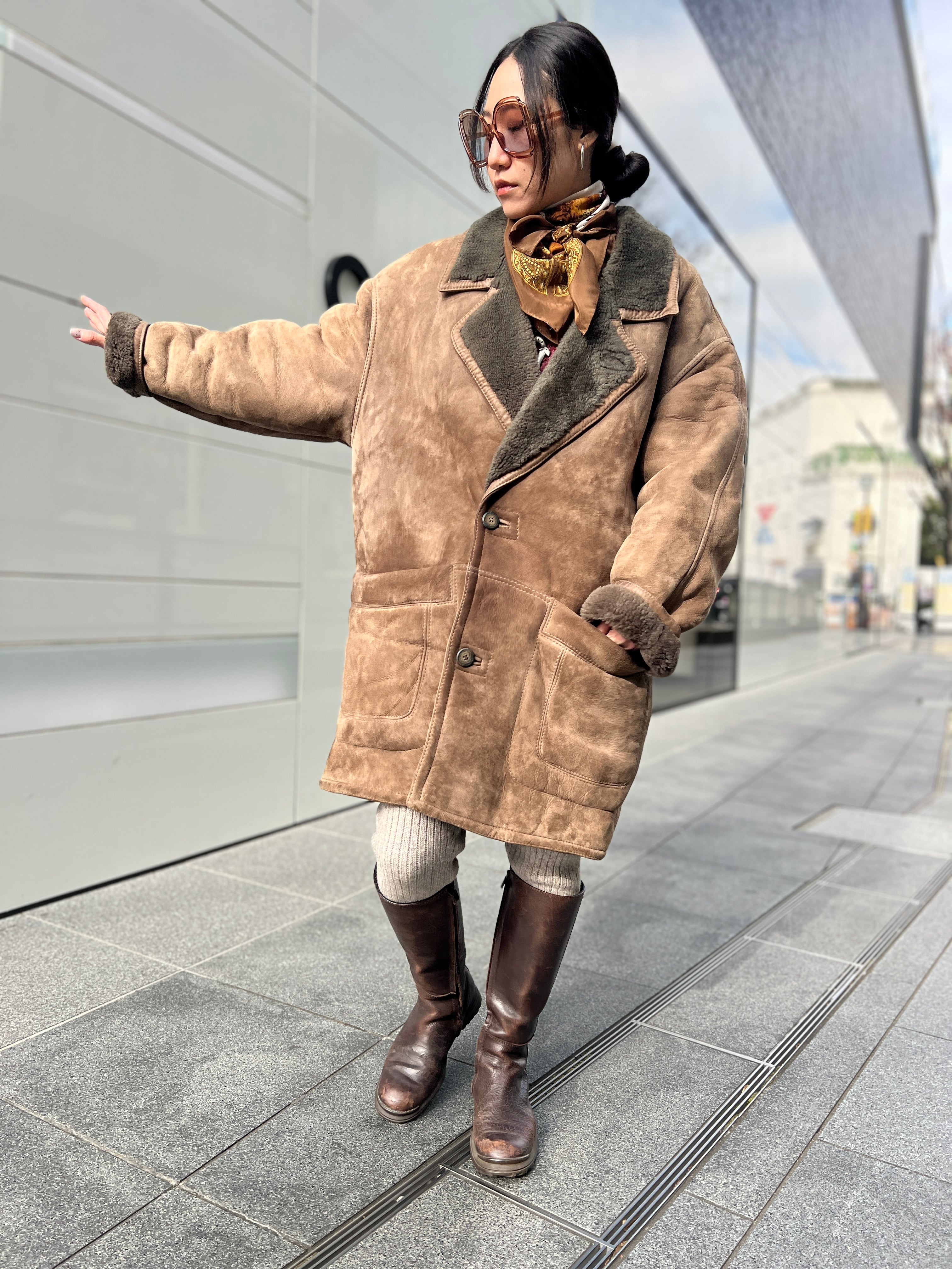 80年代 ヨーロッパ グレージュ ムートンコート。