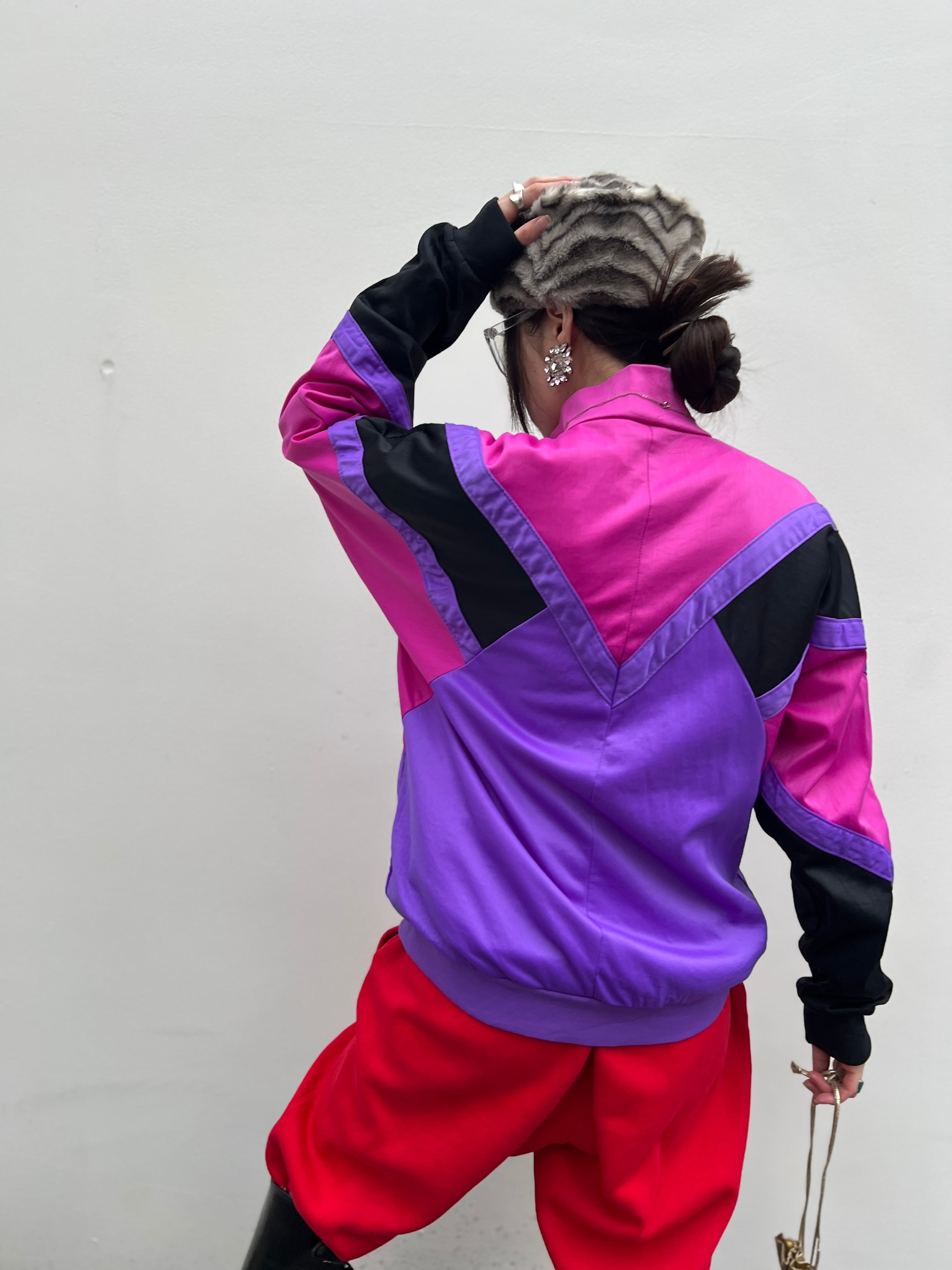 ピンク×パープル×ブラックのナイロンブルゾン。