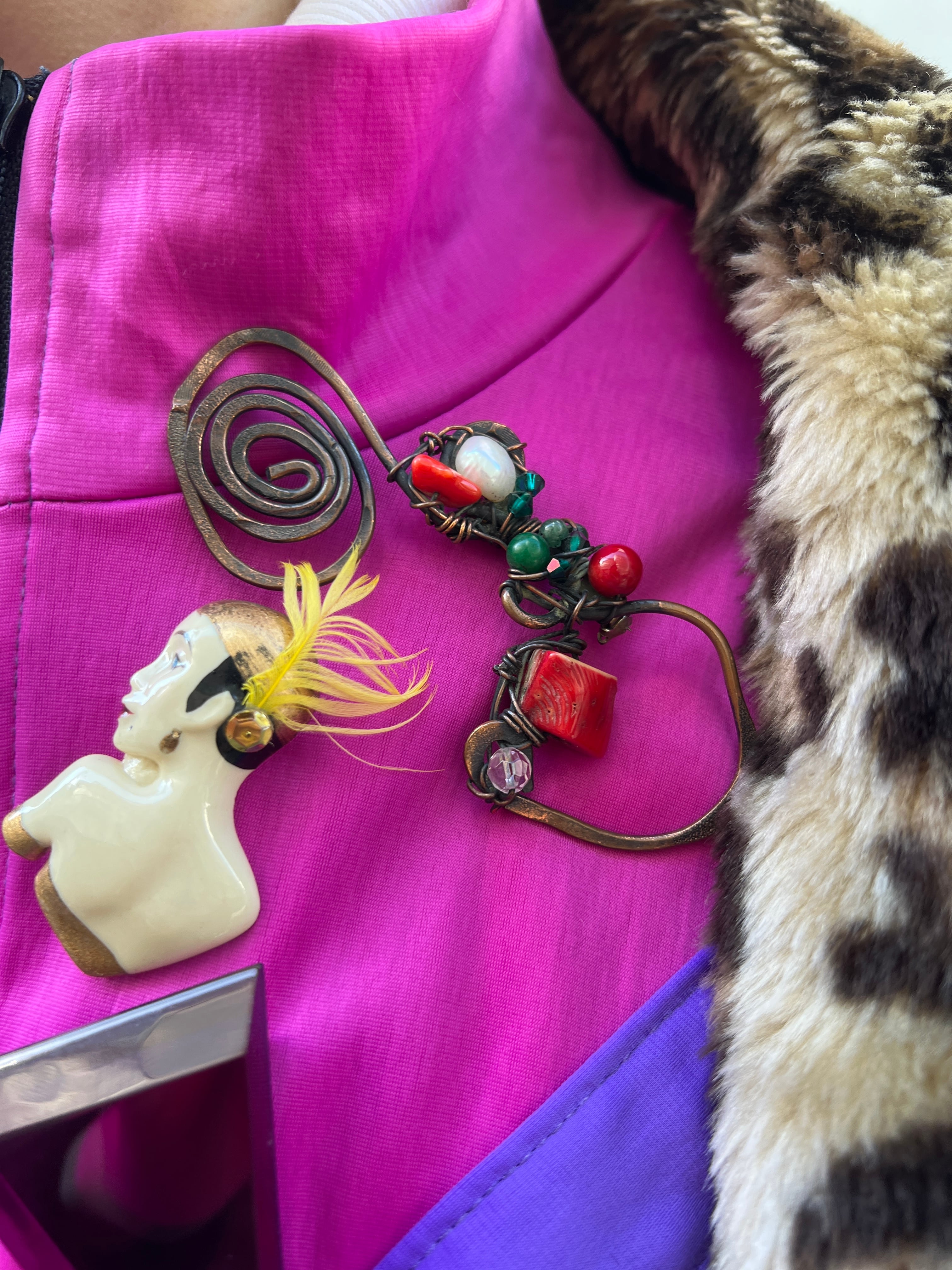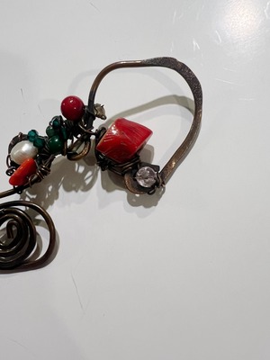 Turkey desiner's copper × stone brooch