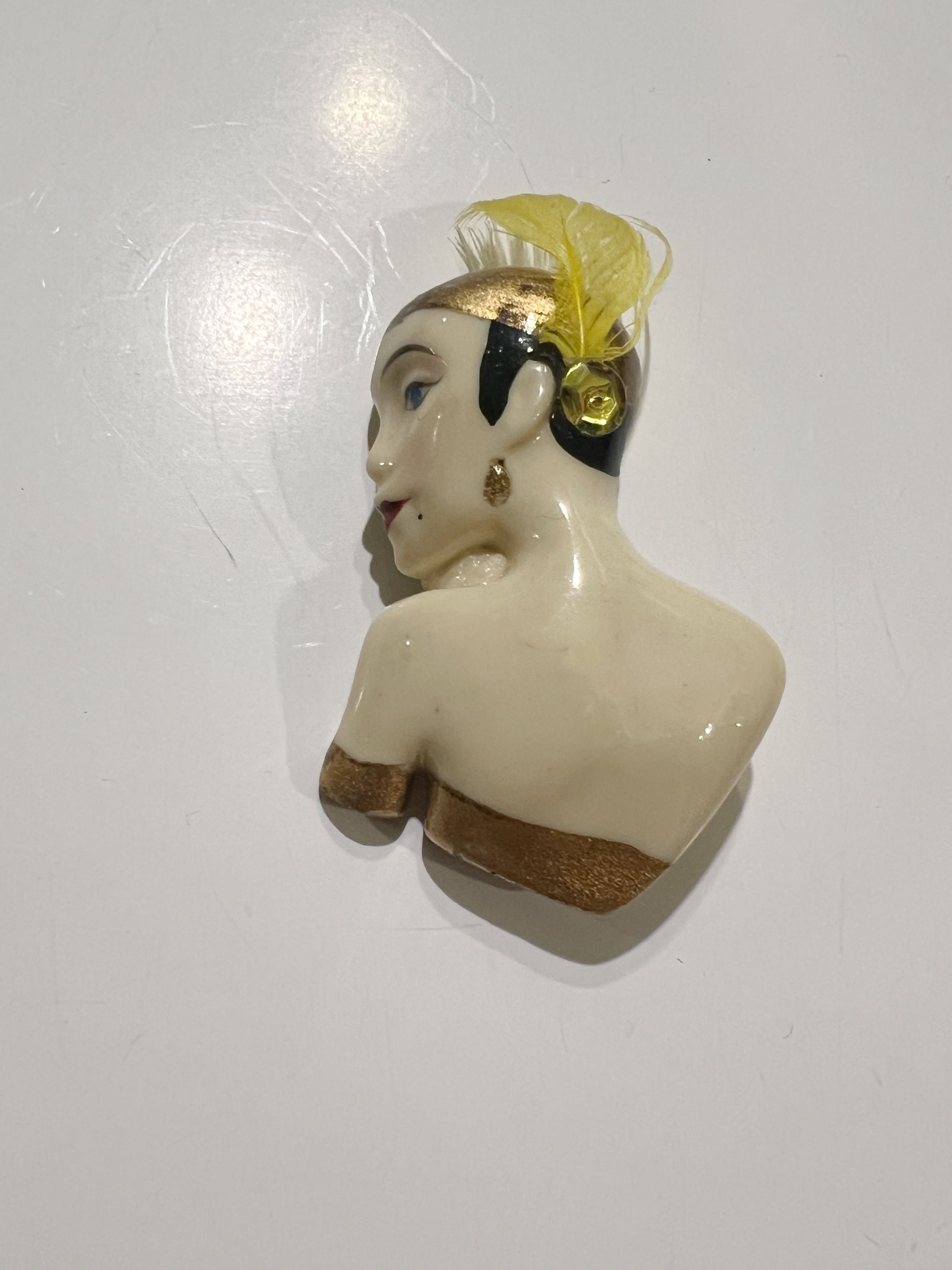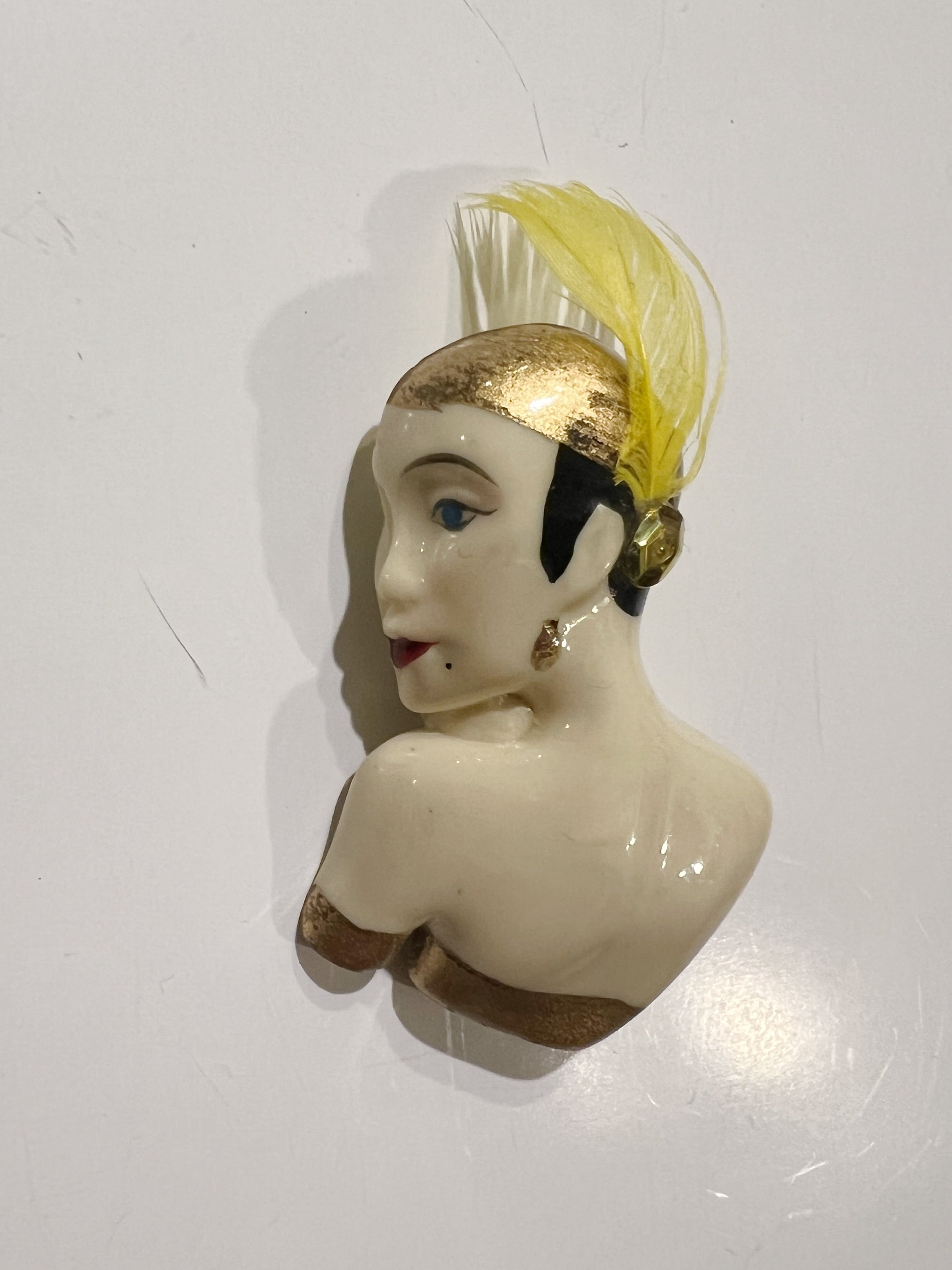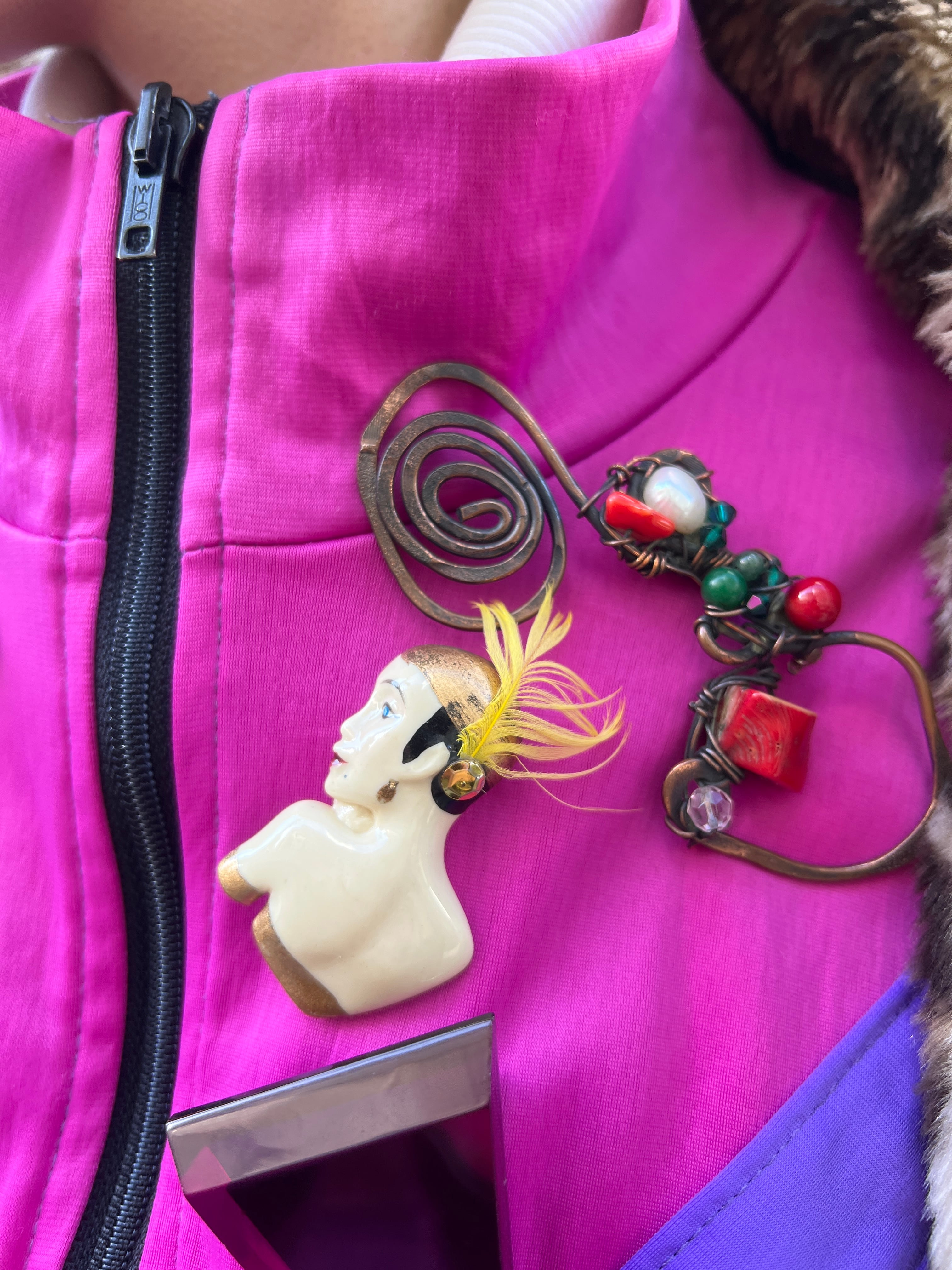 70s-80s face × feather brooch
