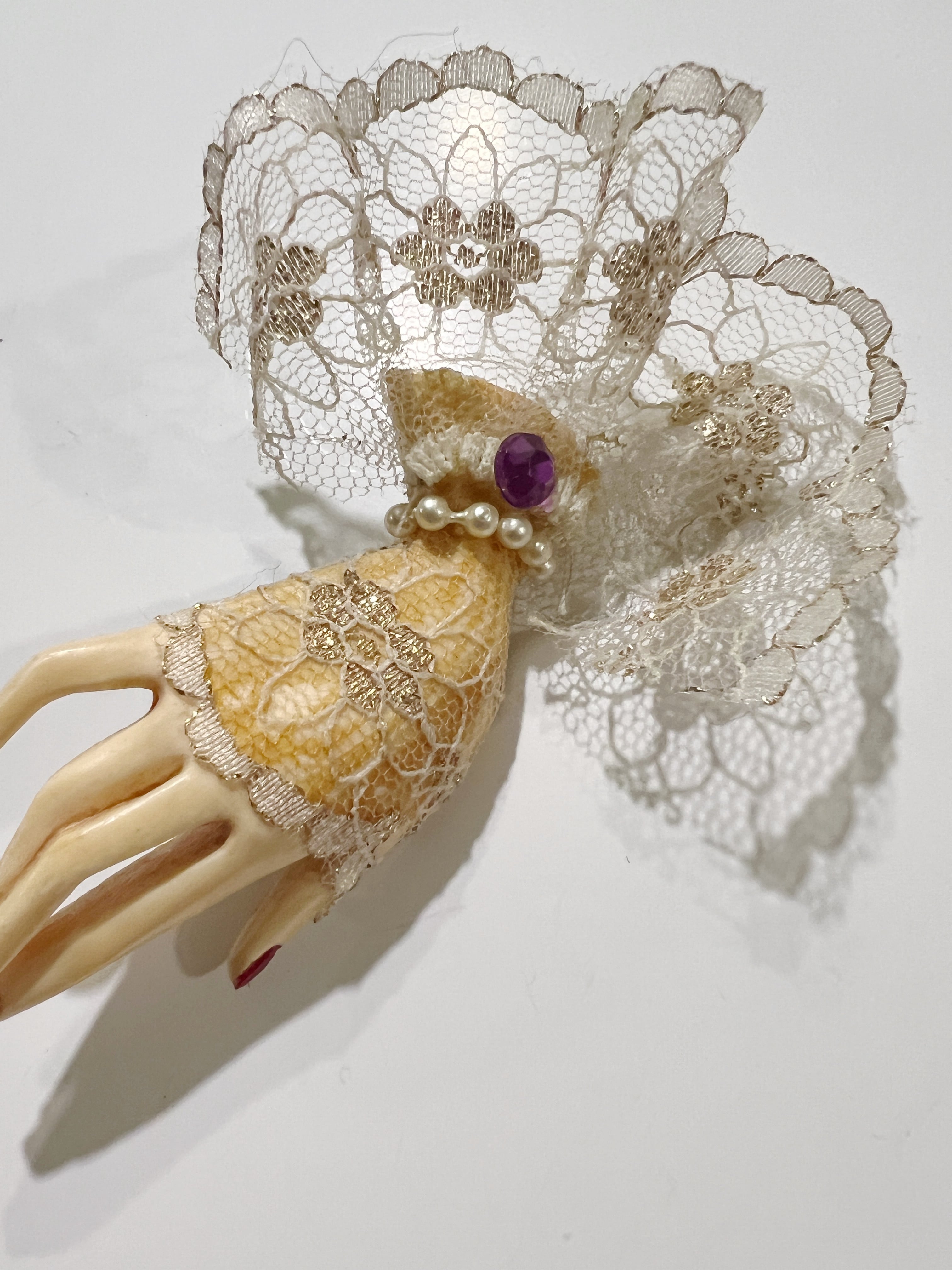 そこにレース、パール、カットストーンを組み合わせた一点物。