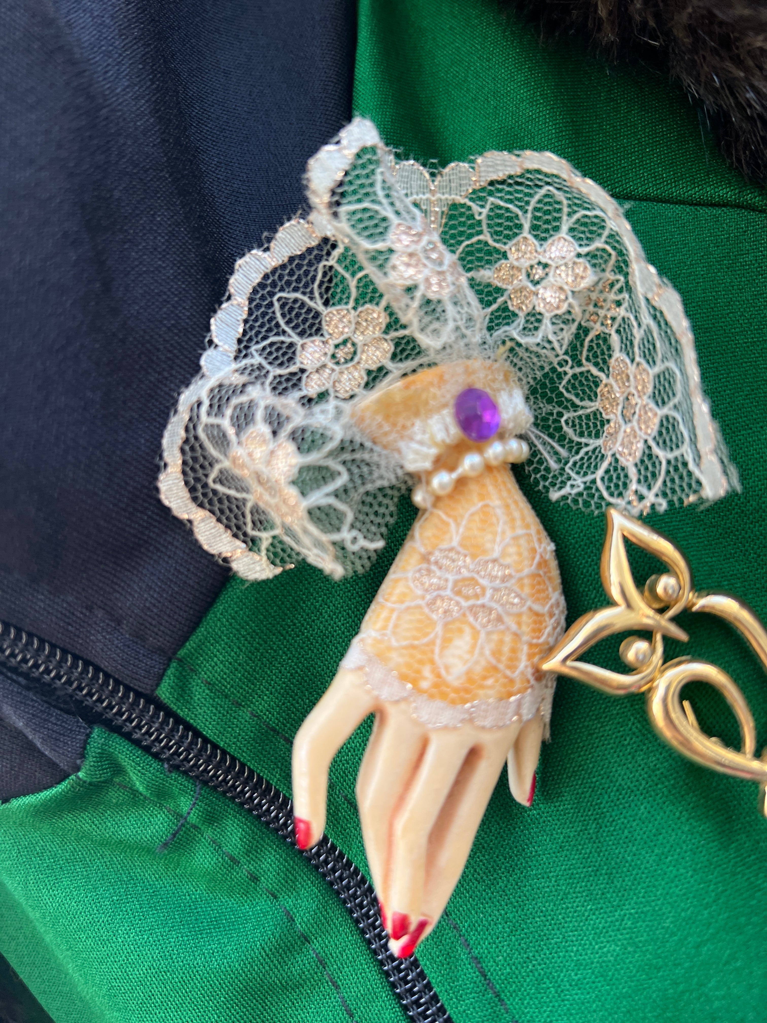 ベースは樹脂素材のヴィンテージ・ハンドモチーフ。