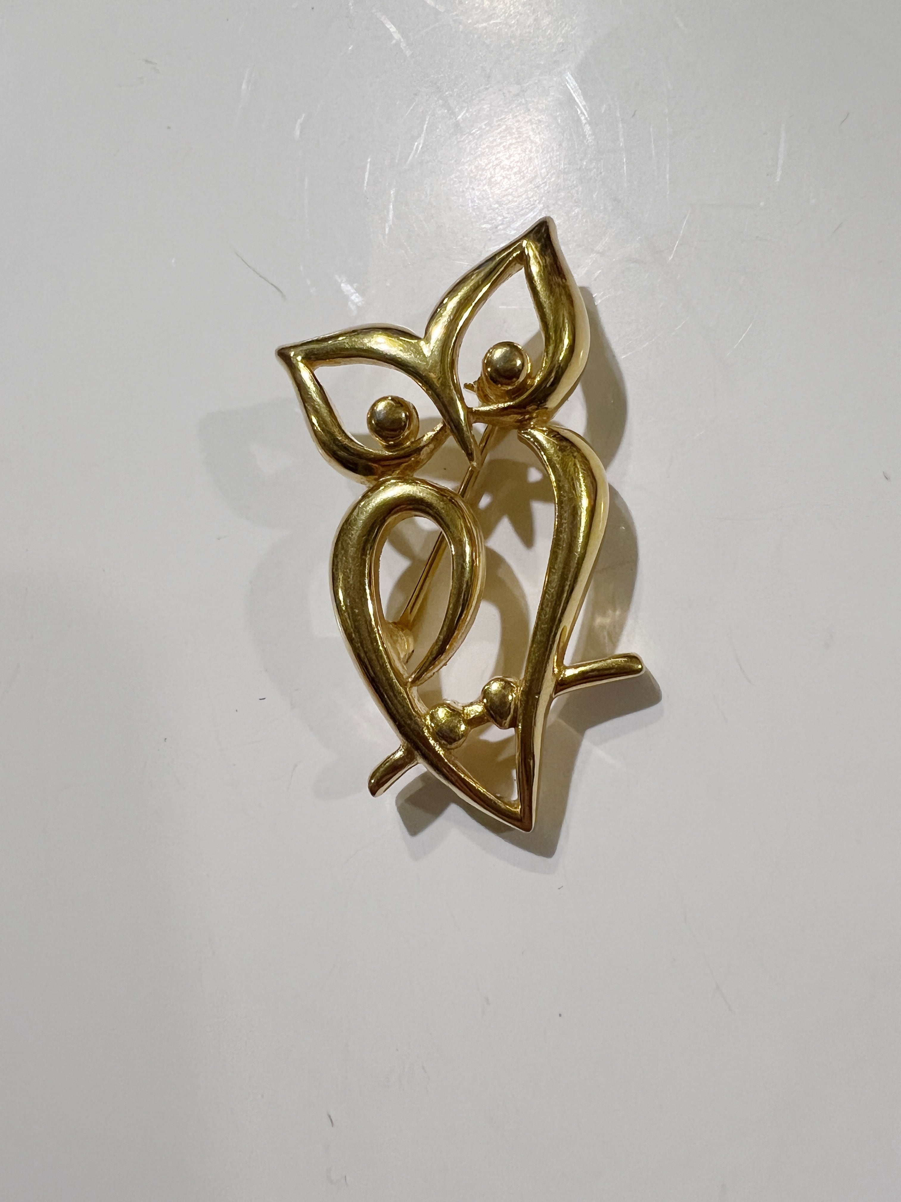 抽象的なフクロウモチーフのヴィンテージブローチ。