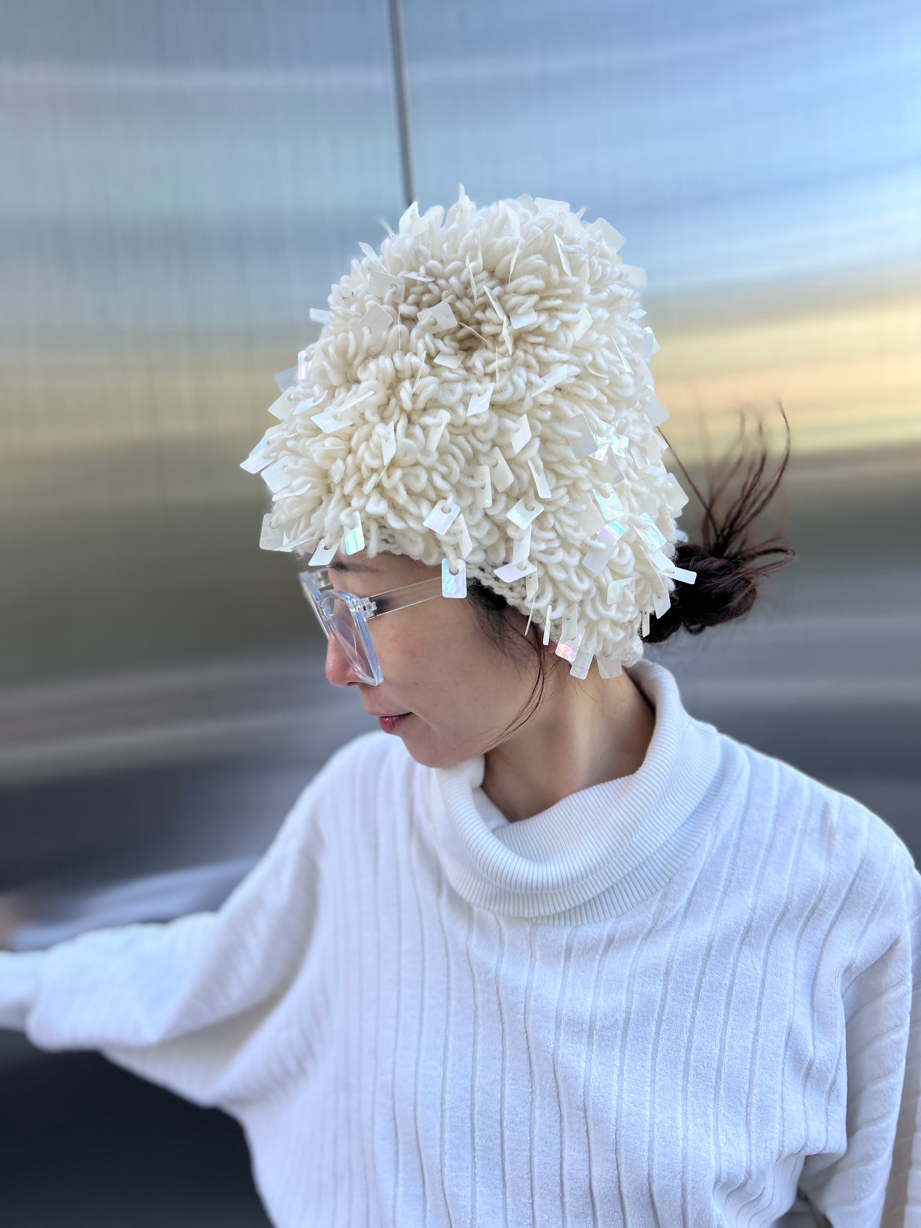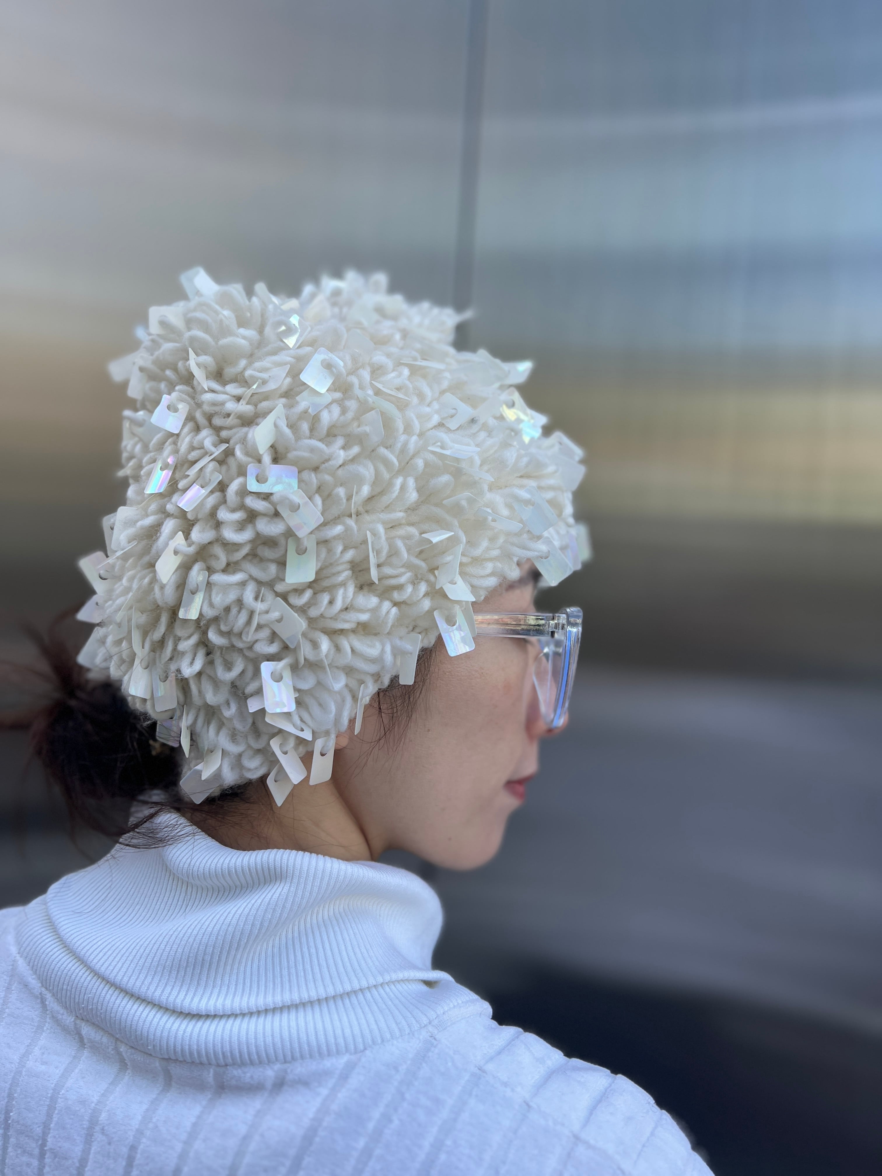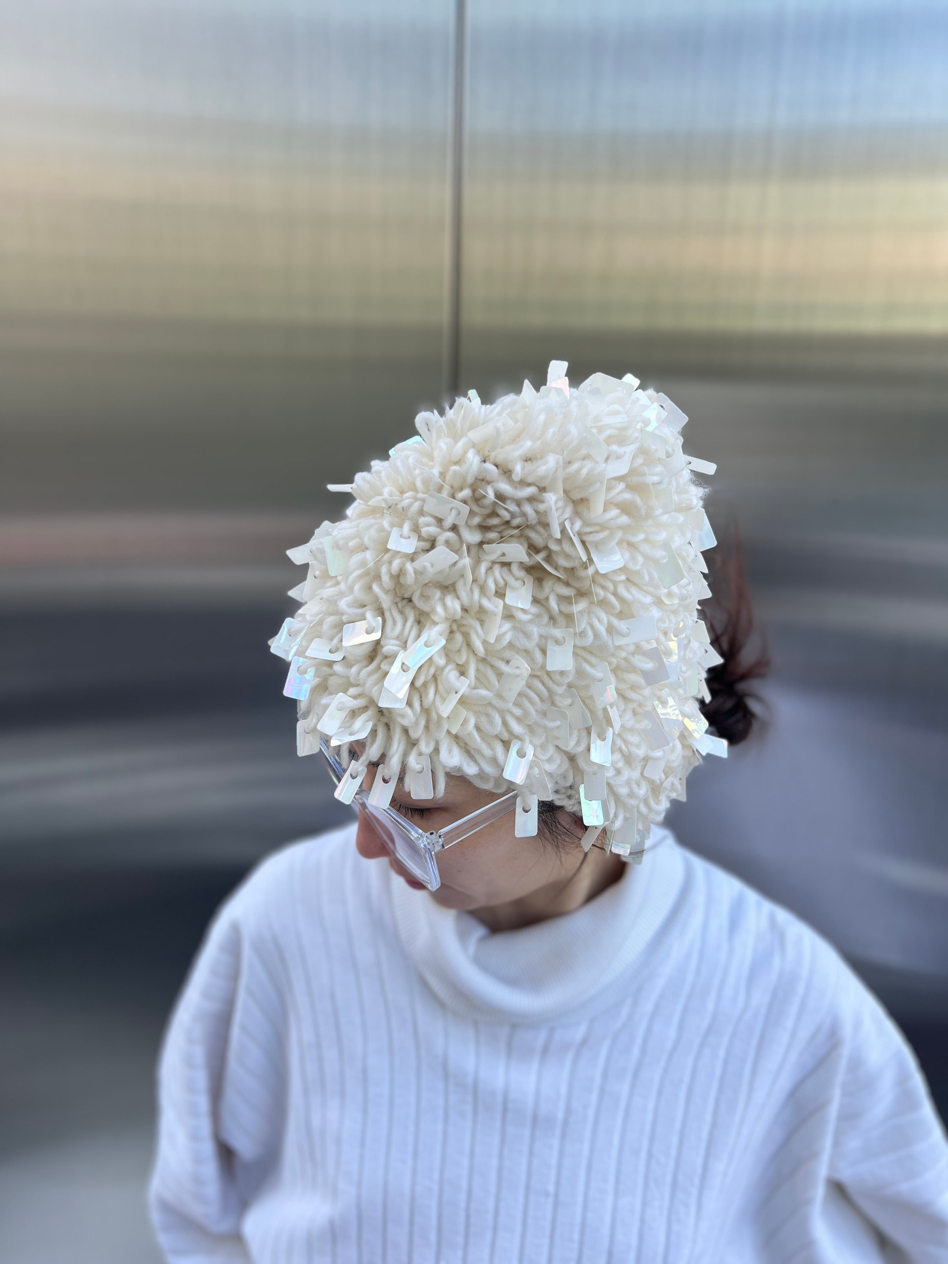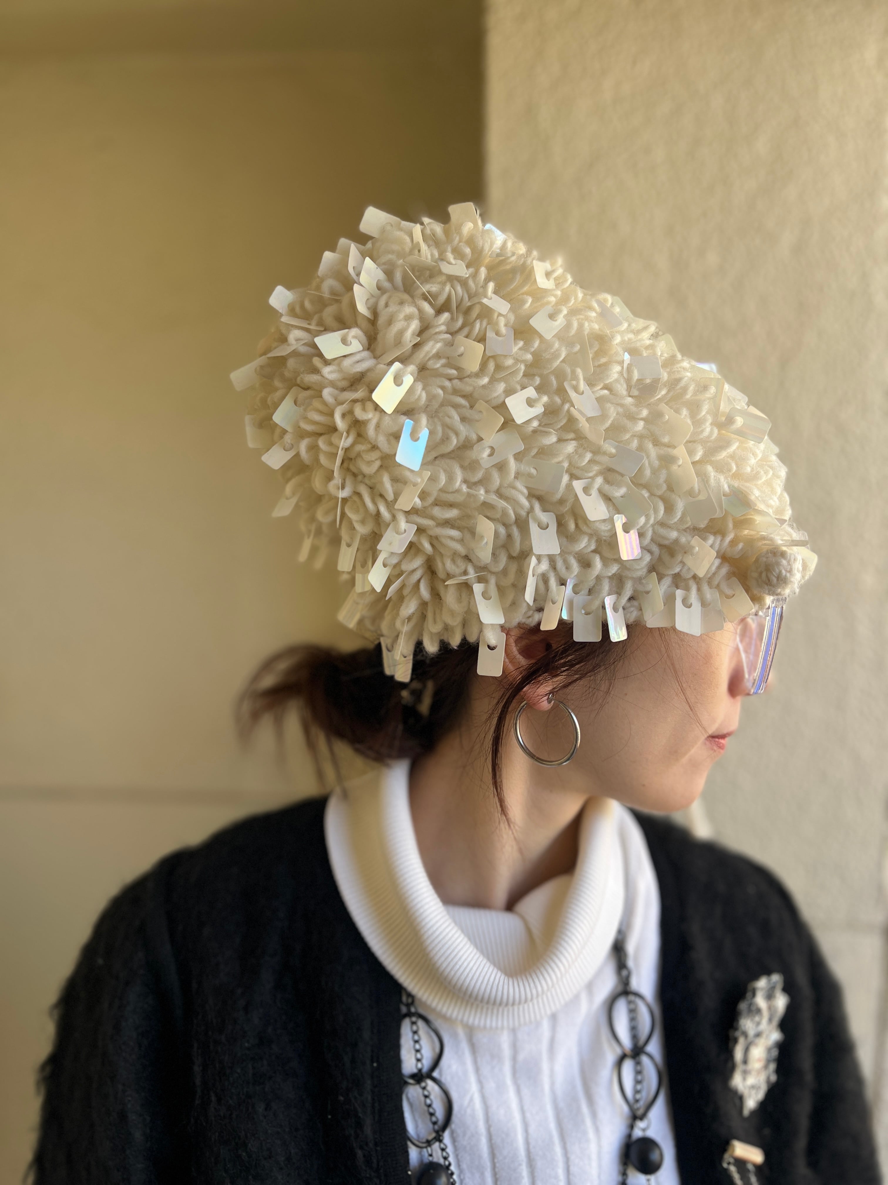工芸とモードの境界が曖昧だった時代の空気を感じさせるニットハット。