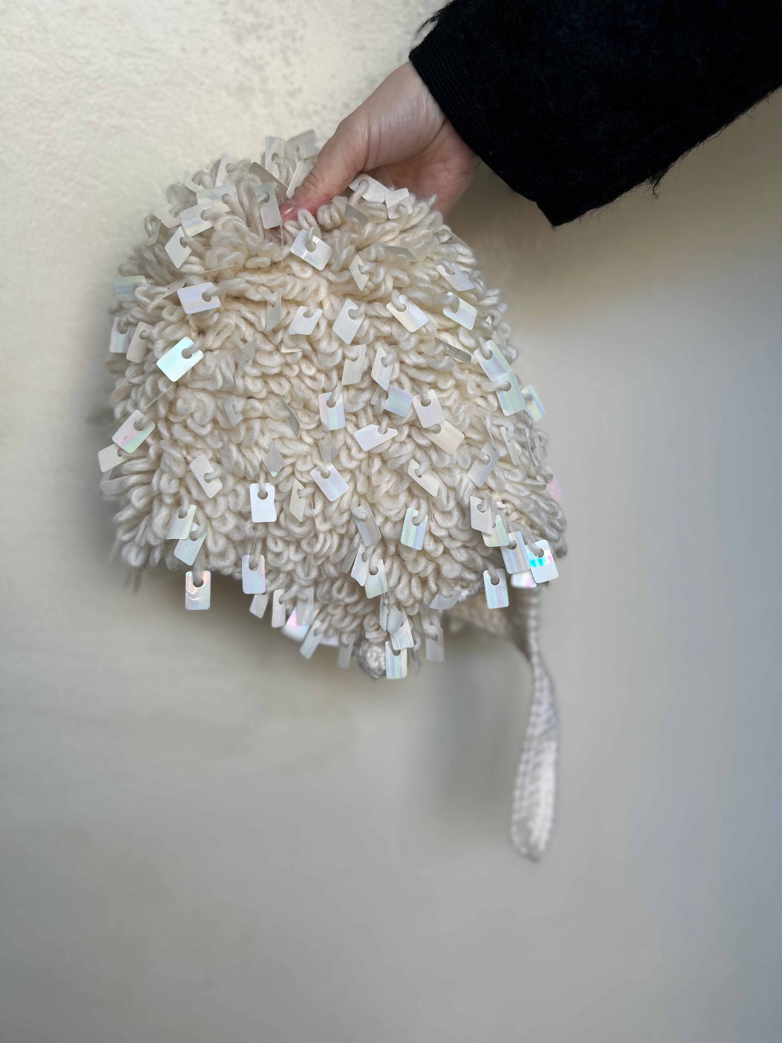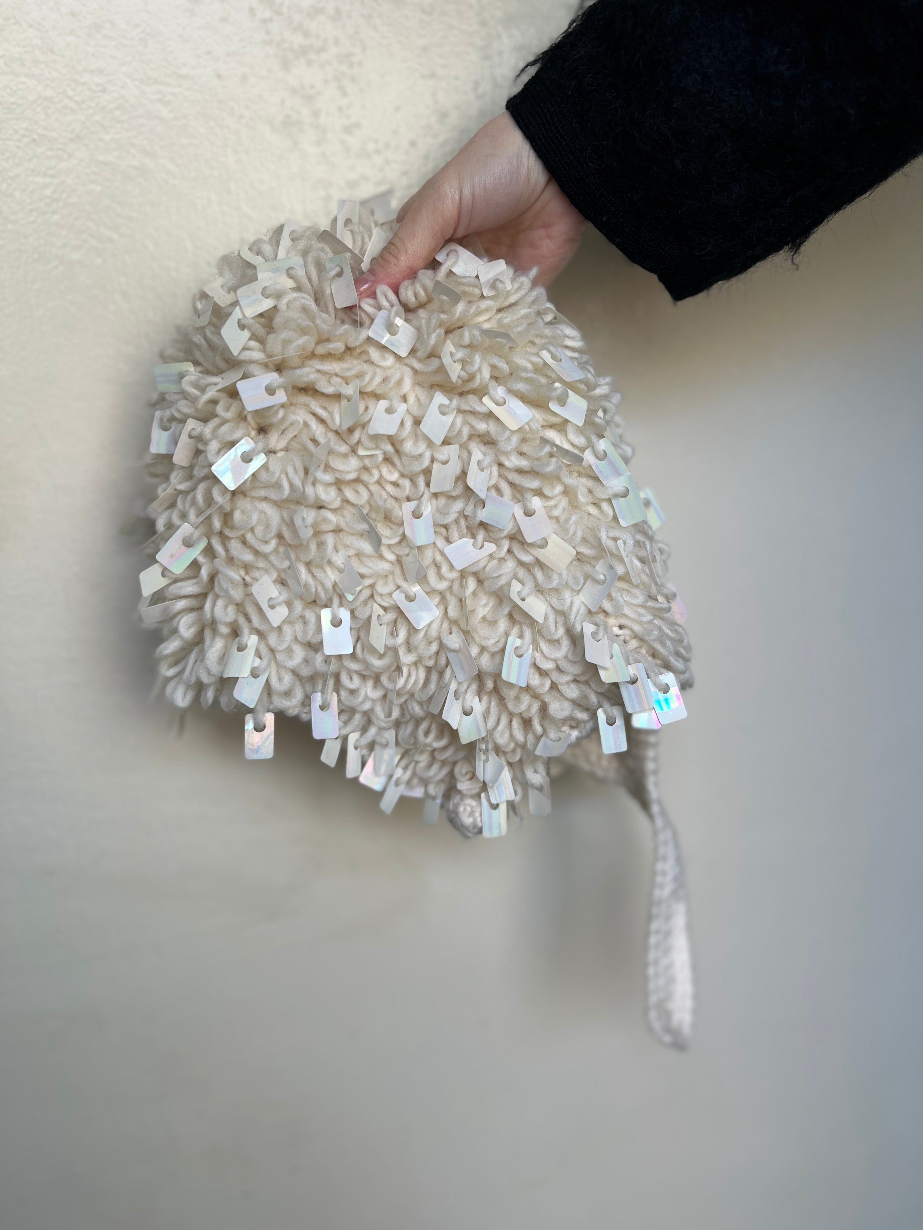 光を受けてさりげなく表情を変えるスパンコールを編み込んだ、
