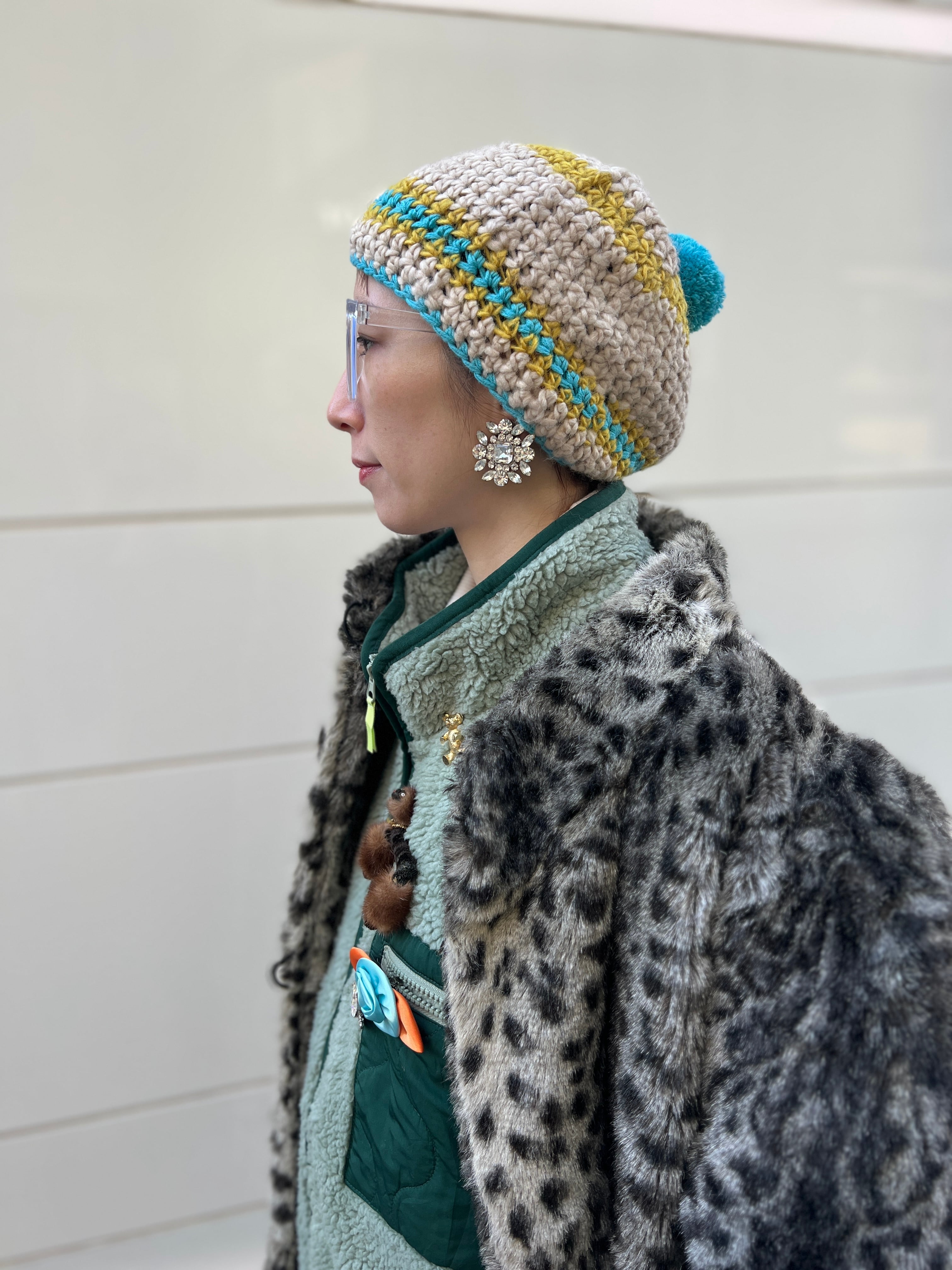 70年代後半〜80年代初頭に多く見られた、ハンドクラフトの温もりを感じるクロシェ編みニットキャップ。