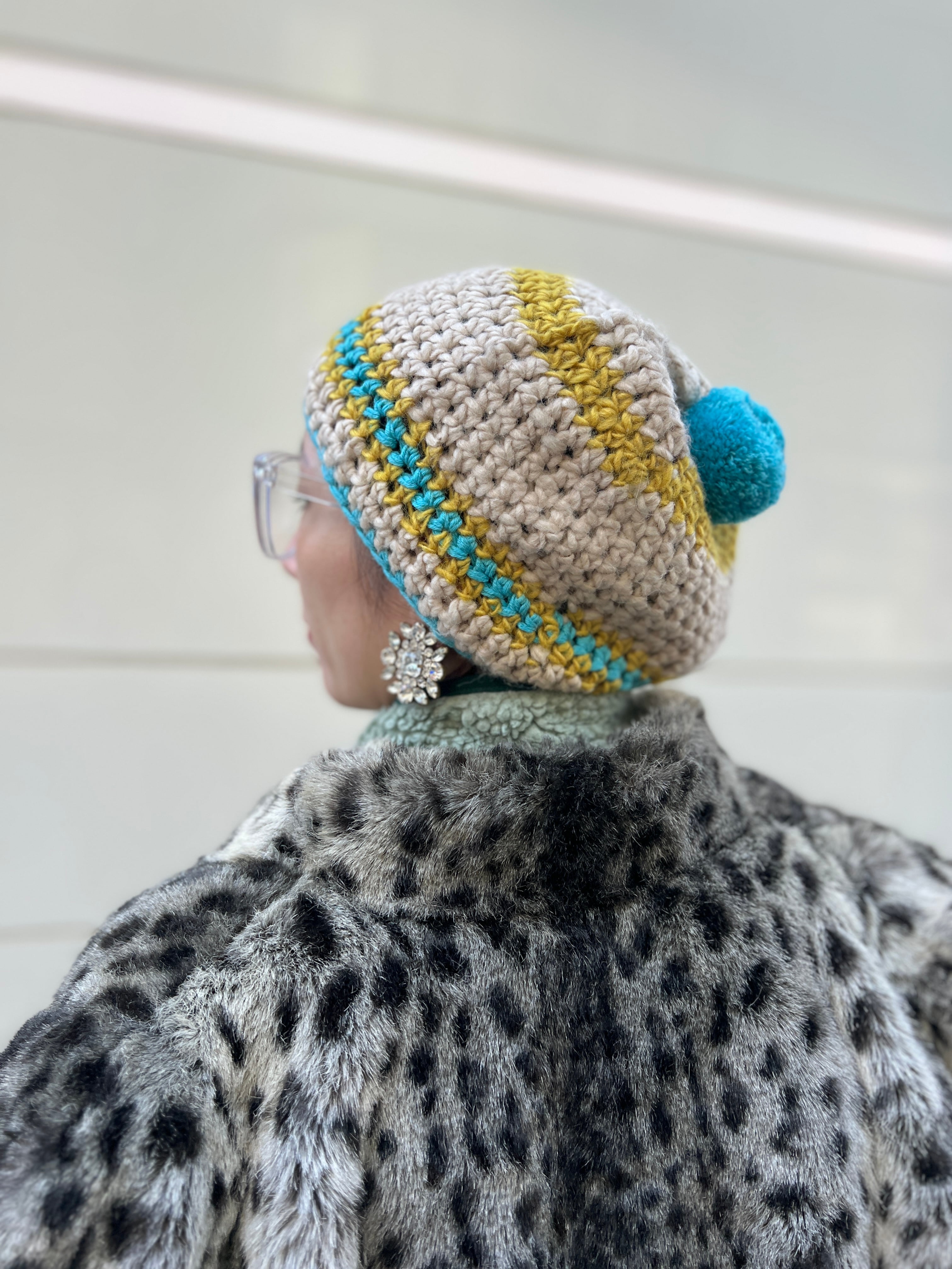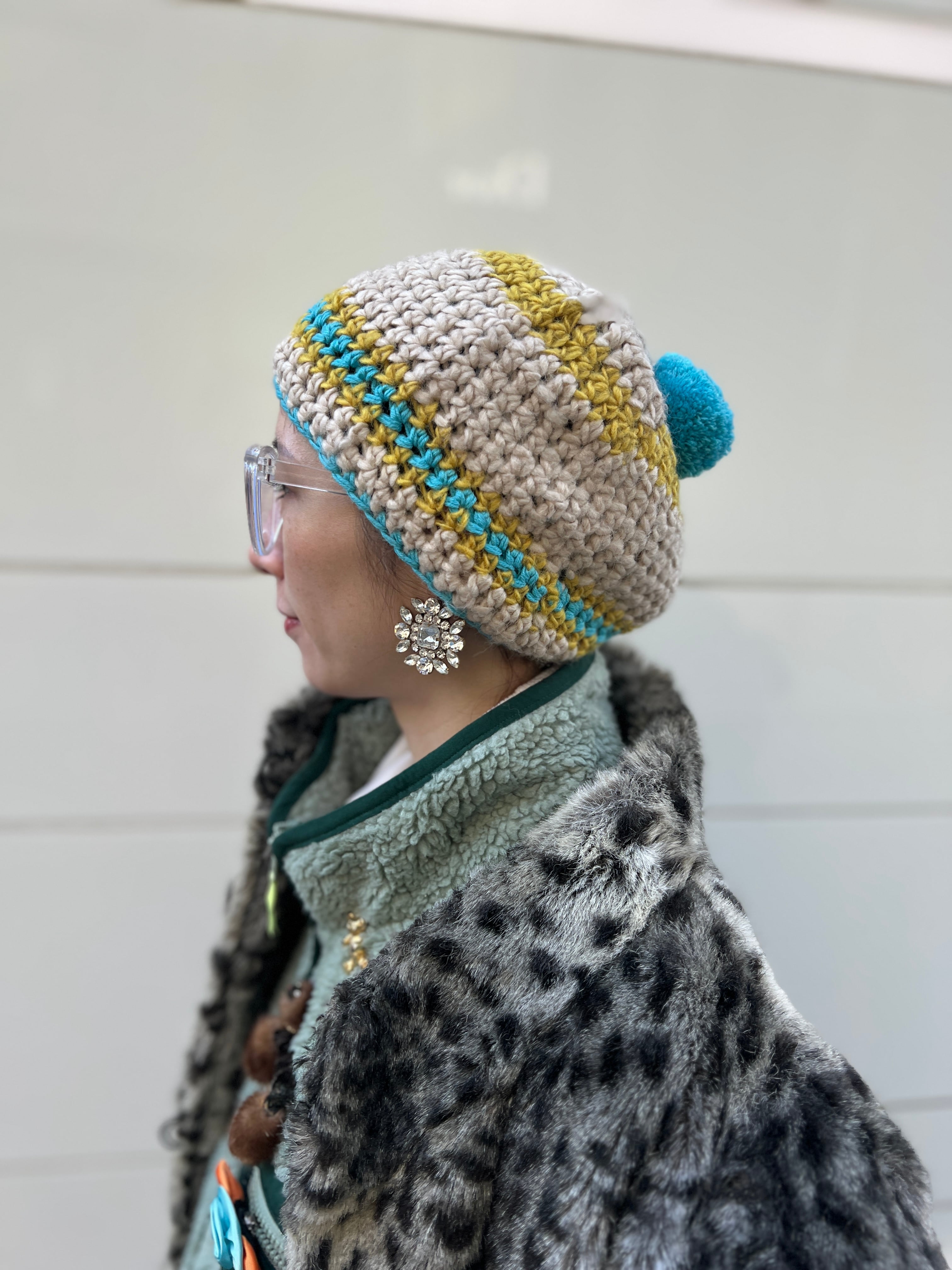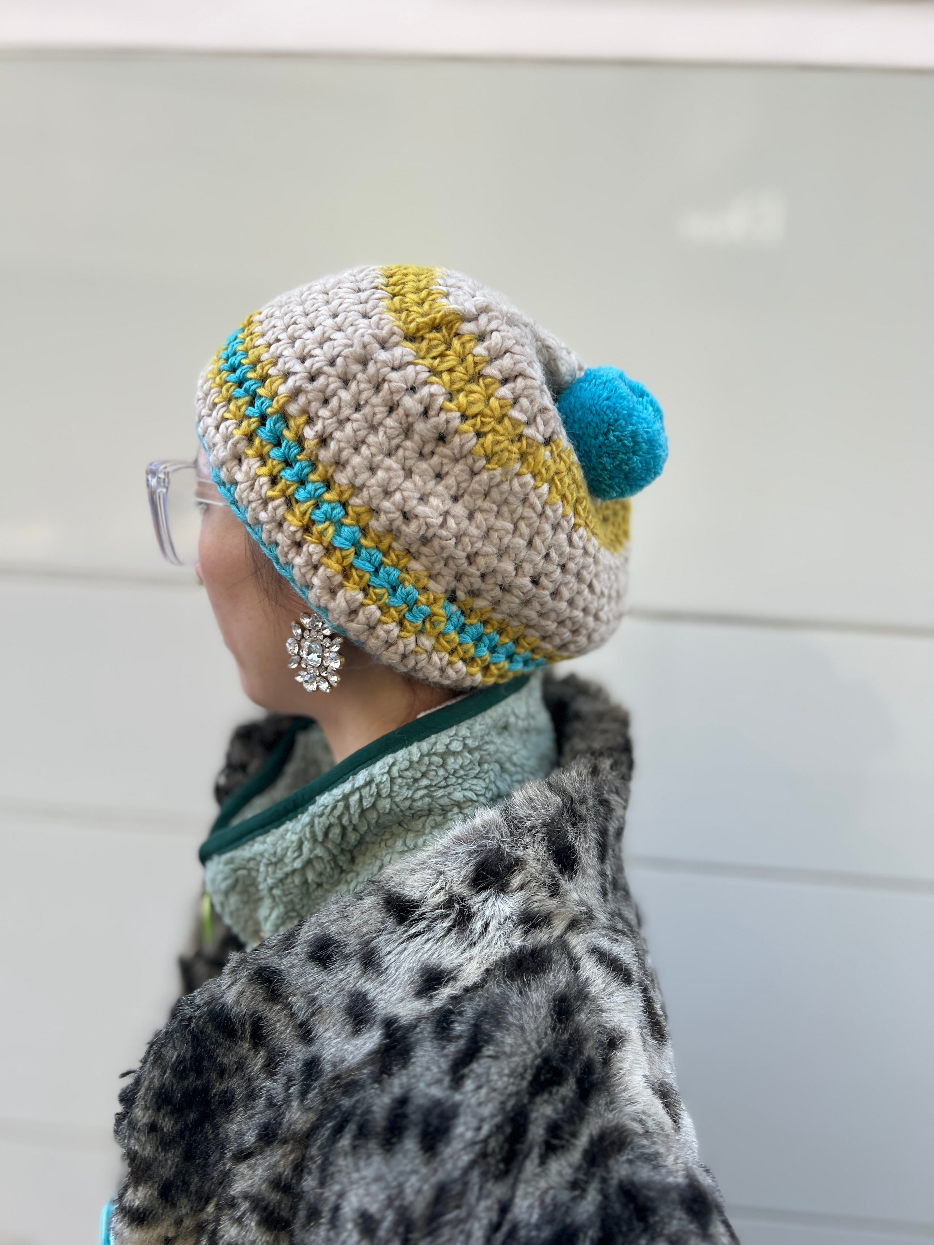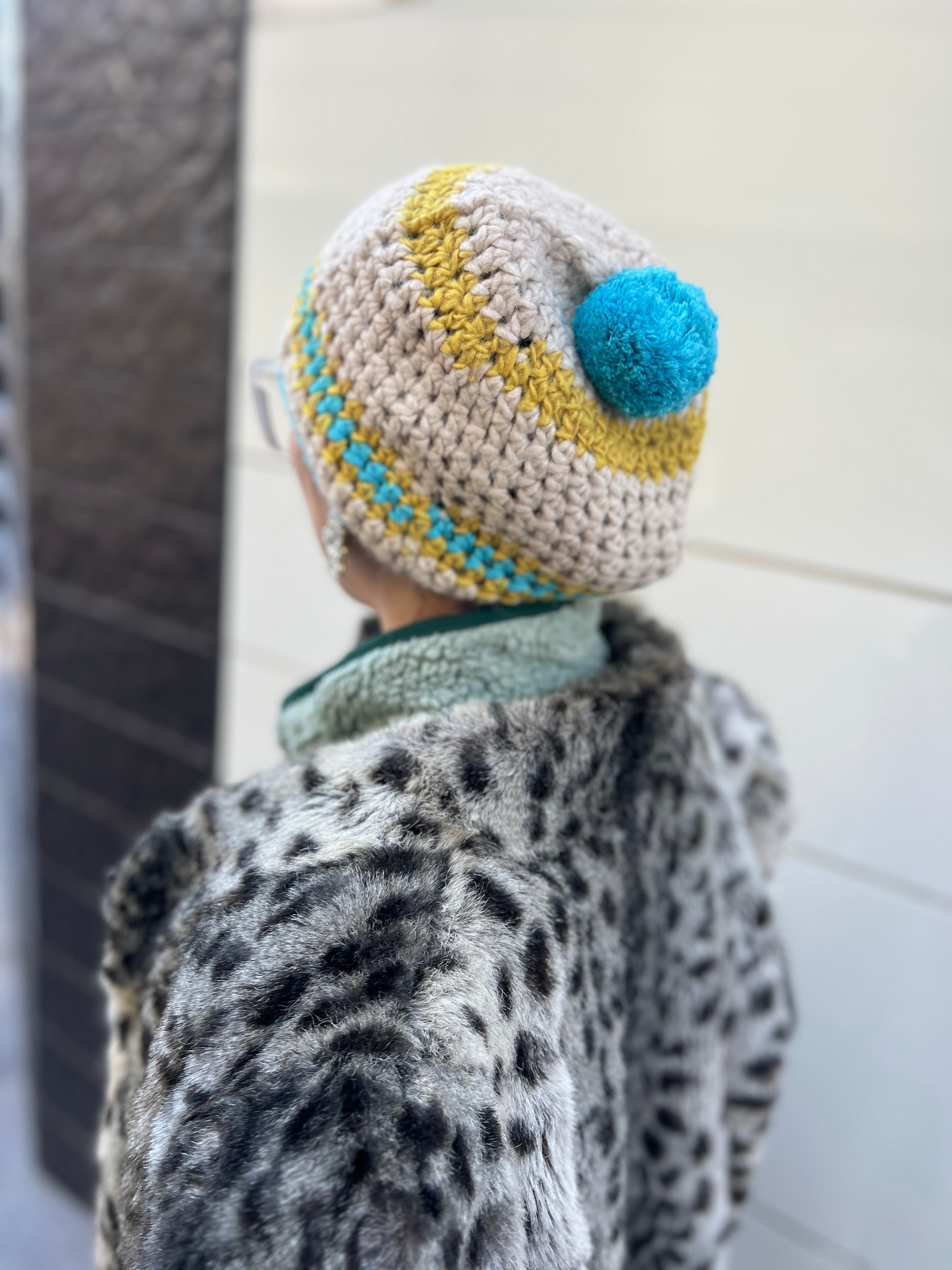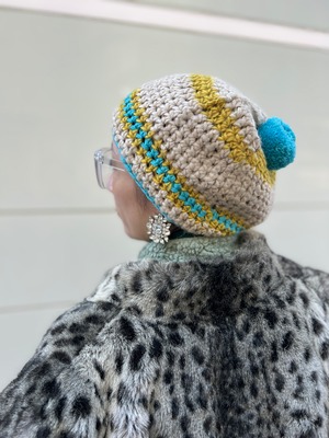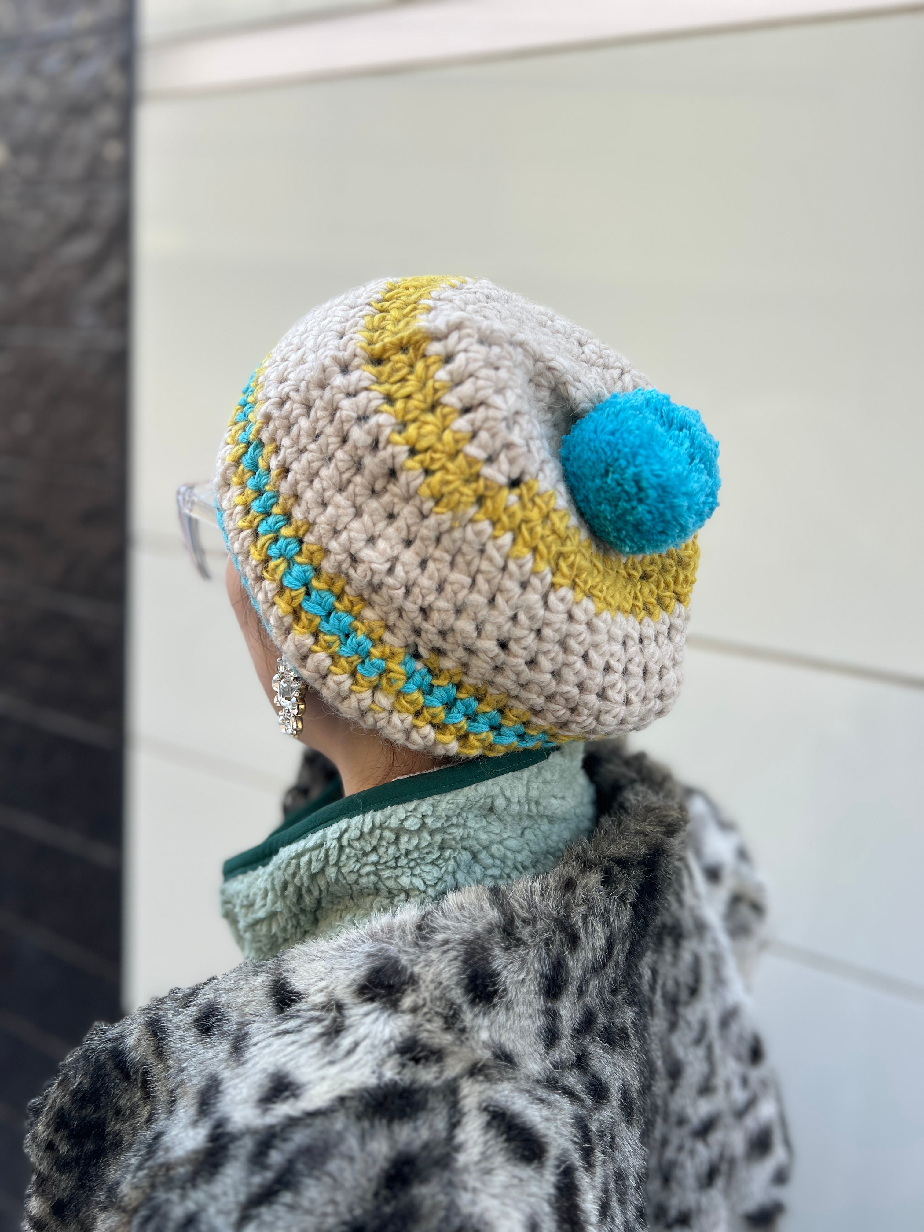 トップのボンボンも程よいボリュームで、被ったときに後ろ姿まで印象的に仕上がります。