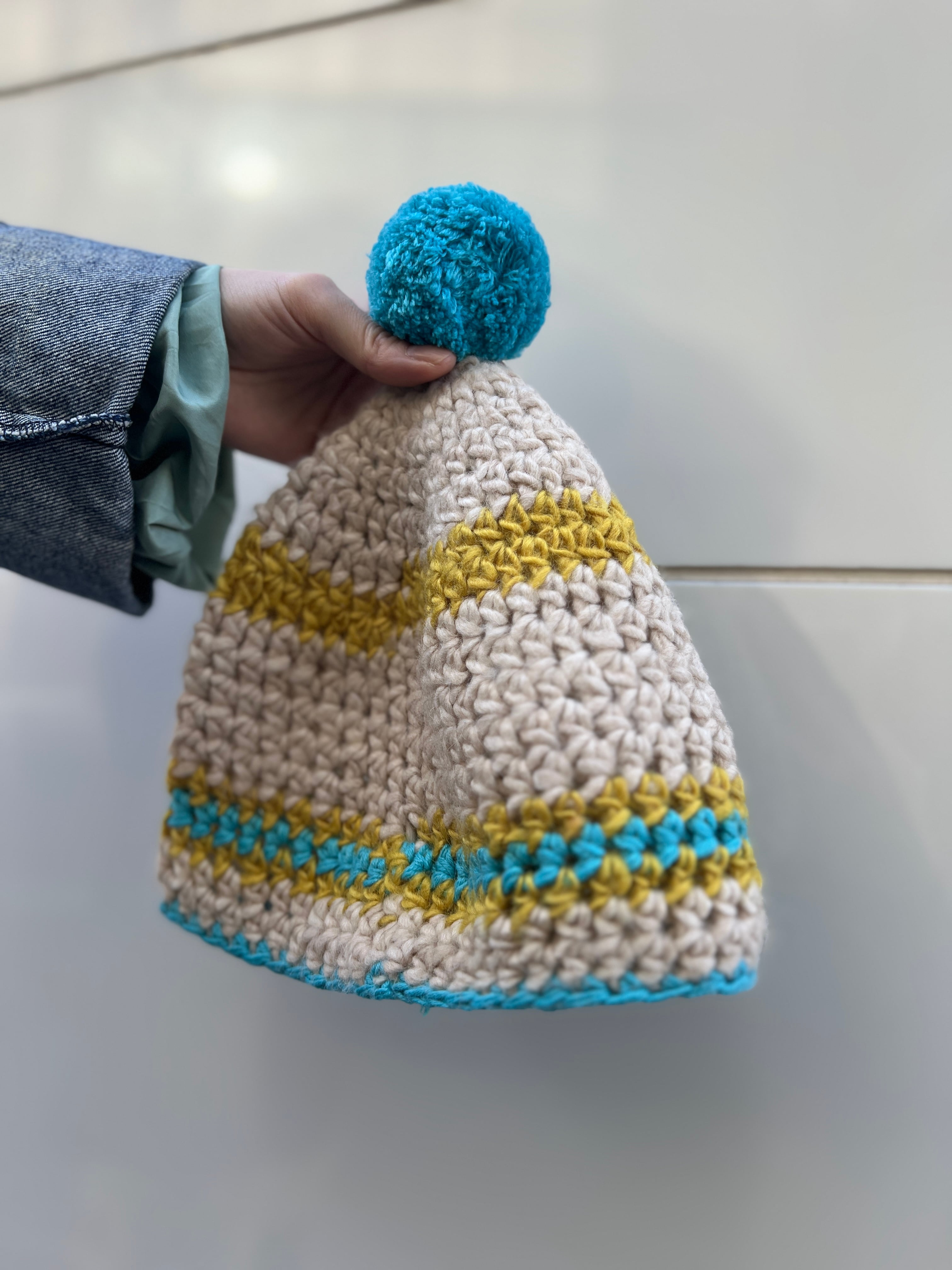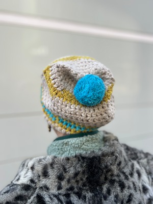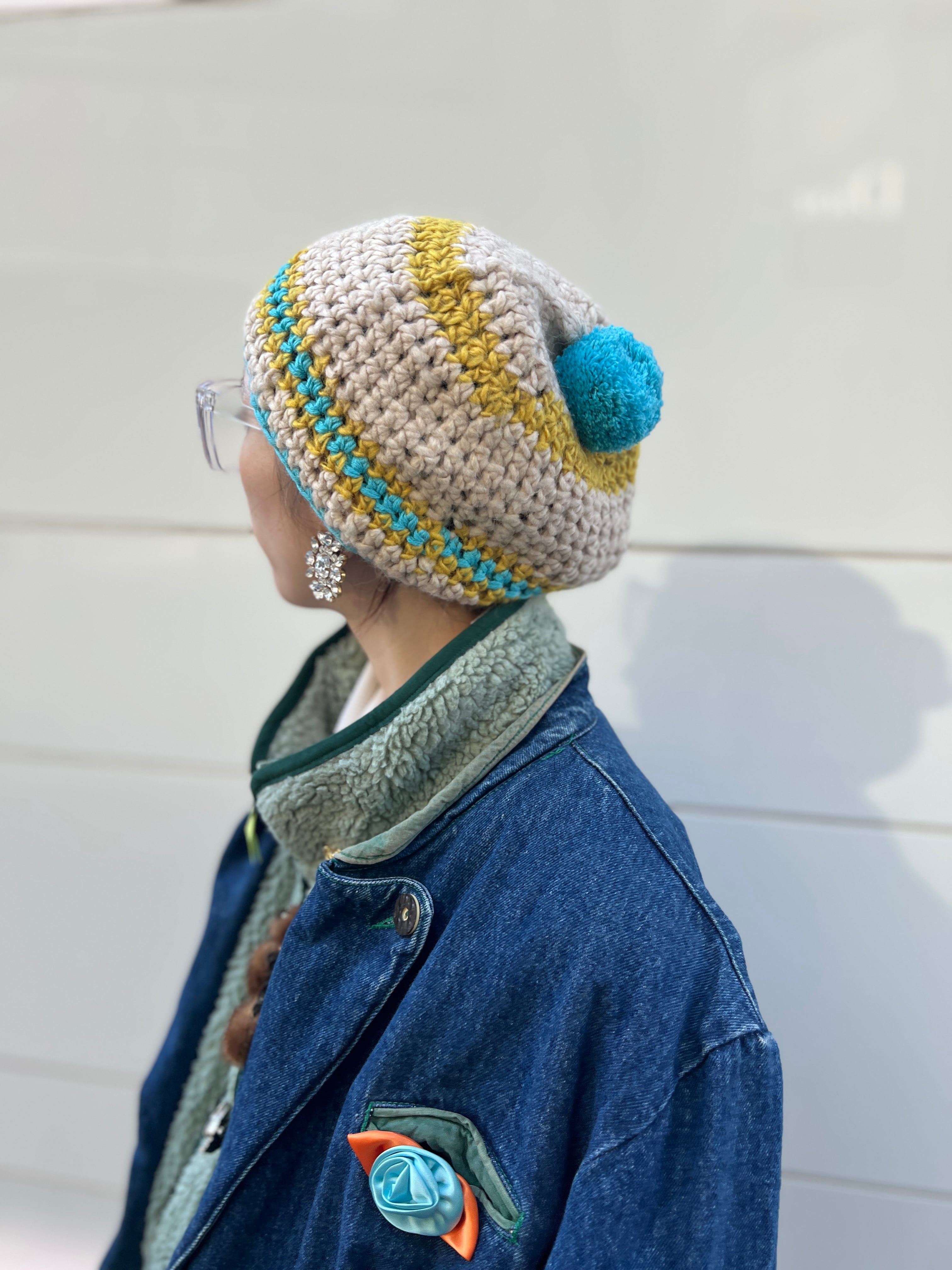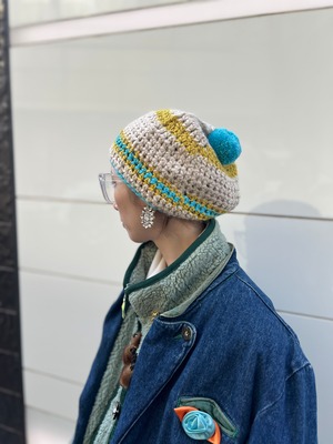 クロシェ編み ボンボンニットキャップ(70s–80s Vintage)