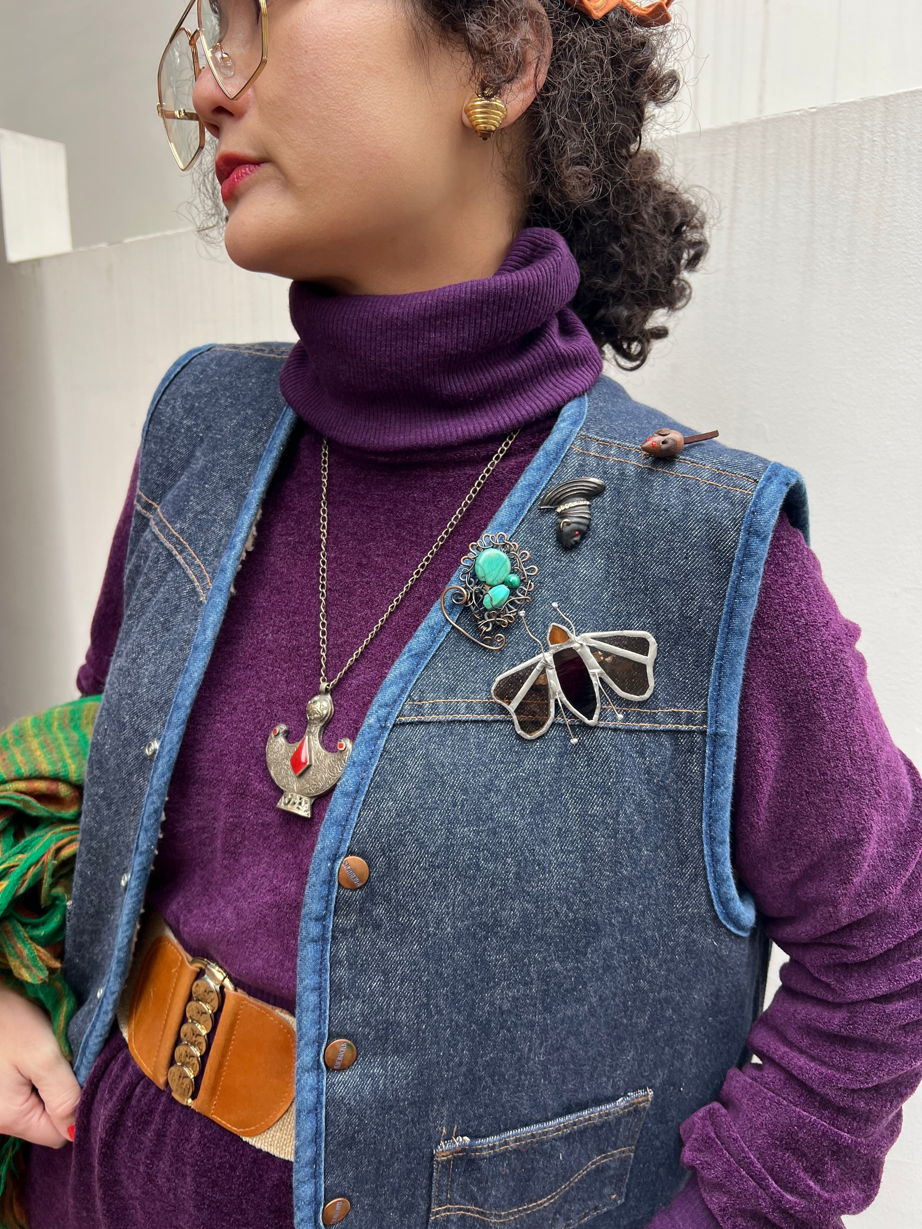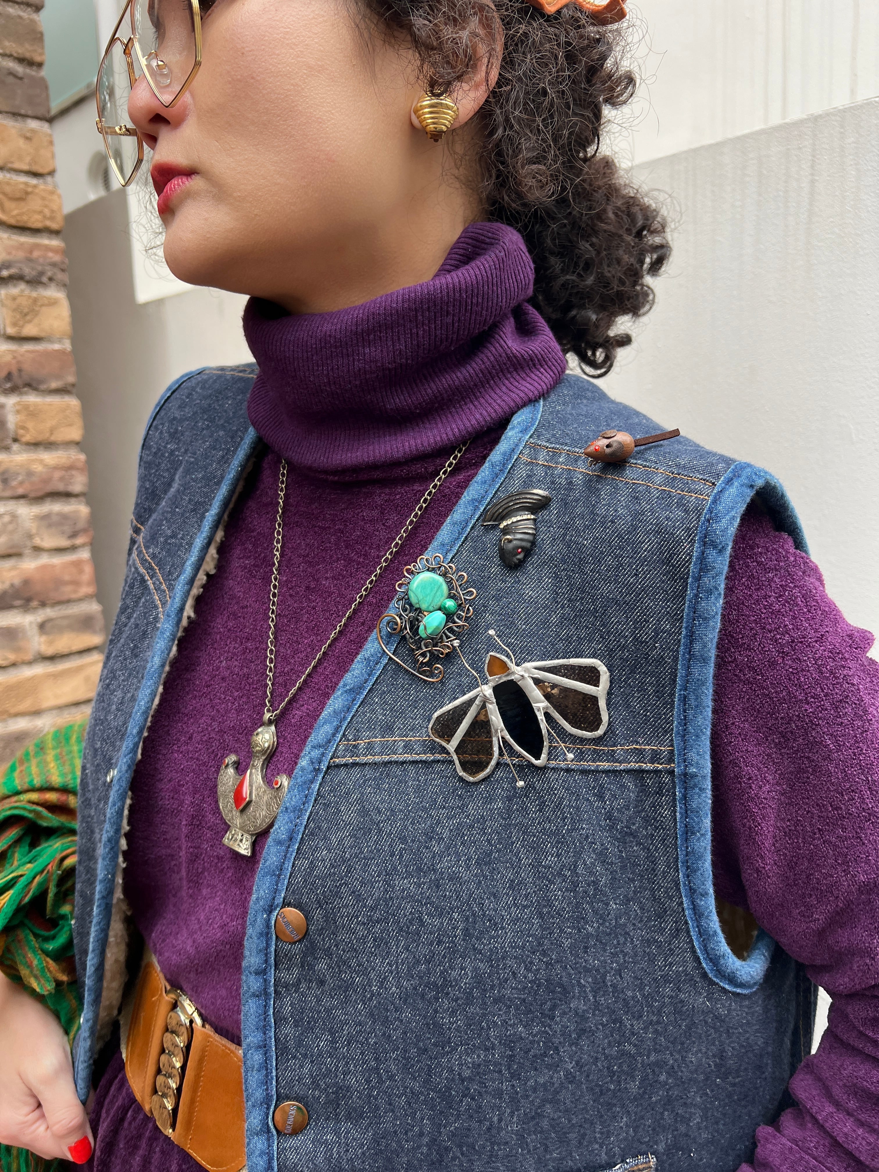 ・ブローチを重ねて、ワーク×装飾のミックススタイルに