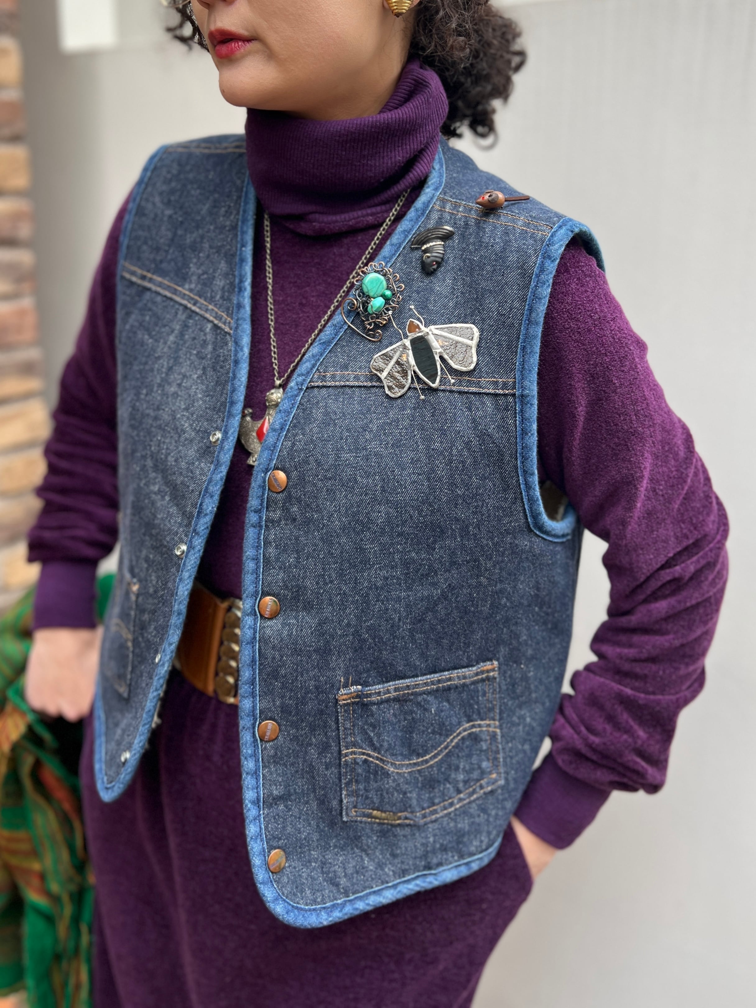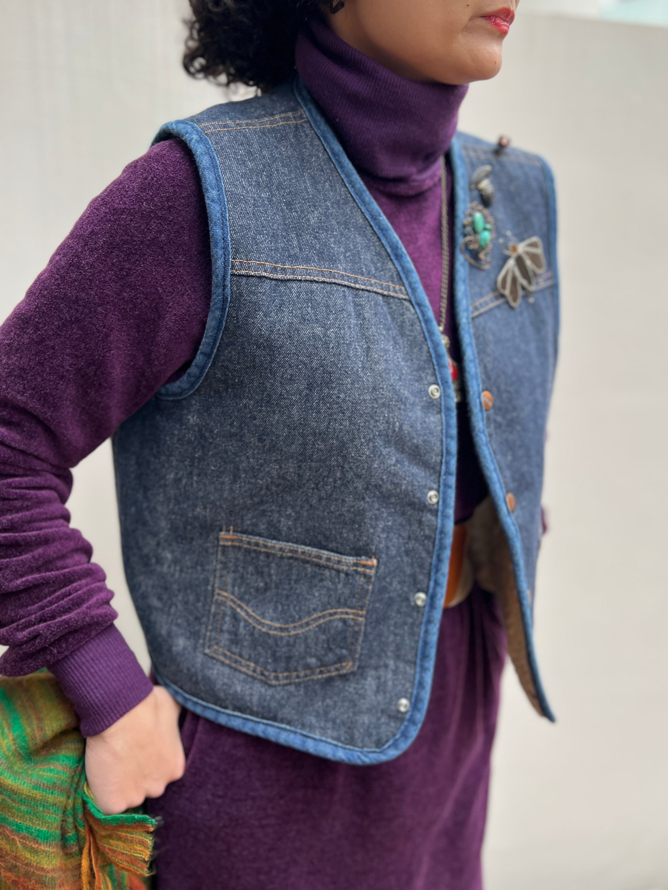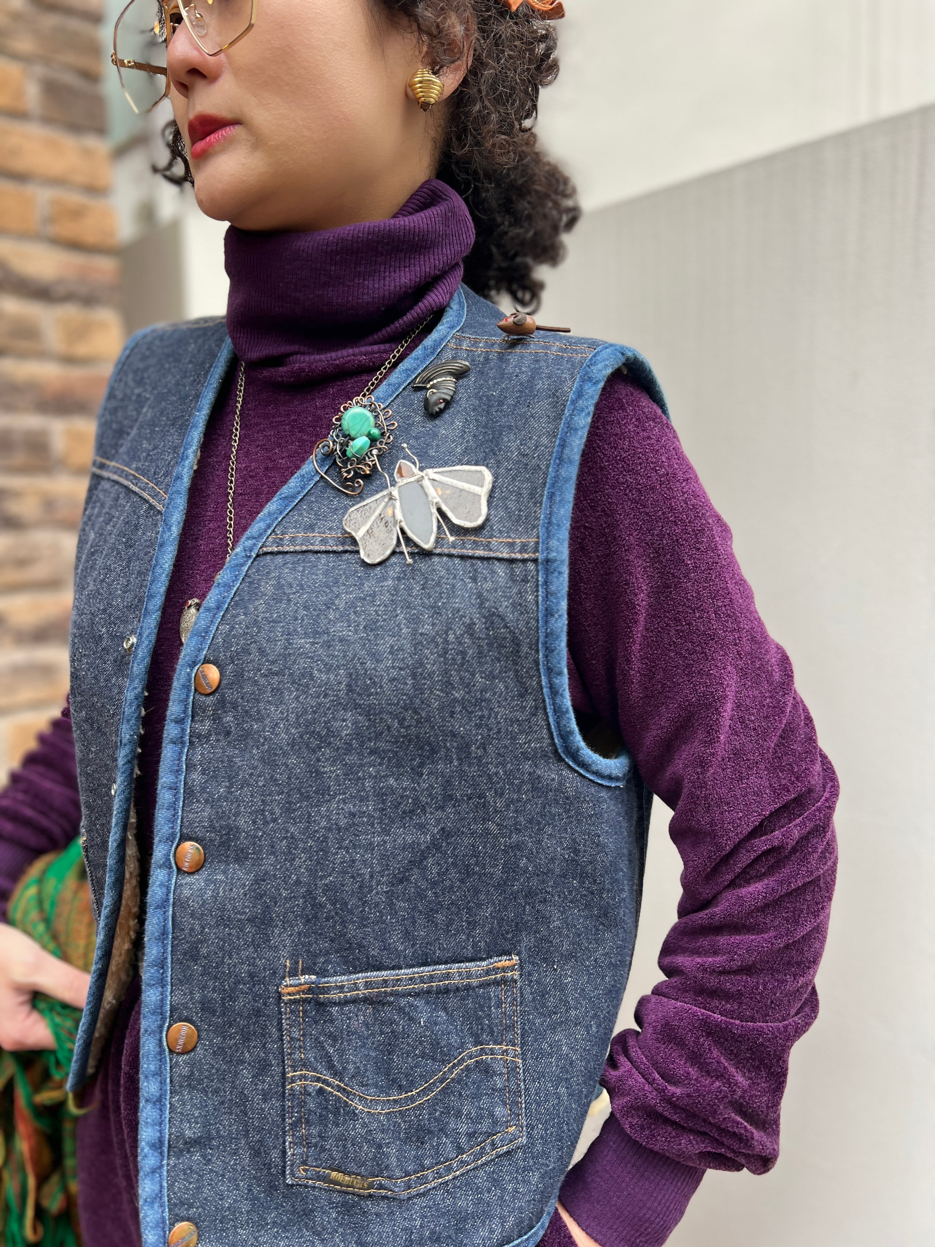 Vintage "SEARS ROEBUCKS "denim × boa vest