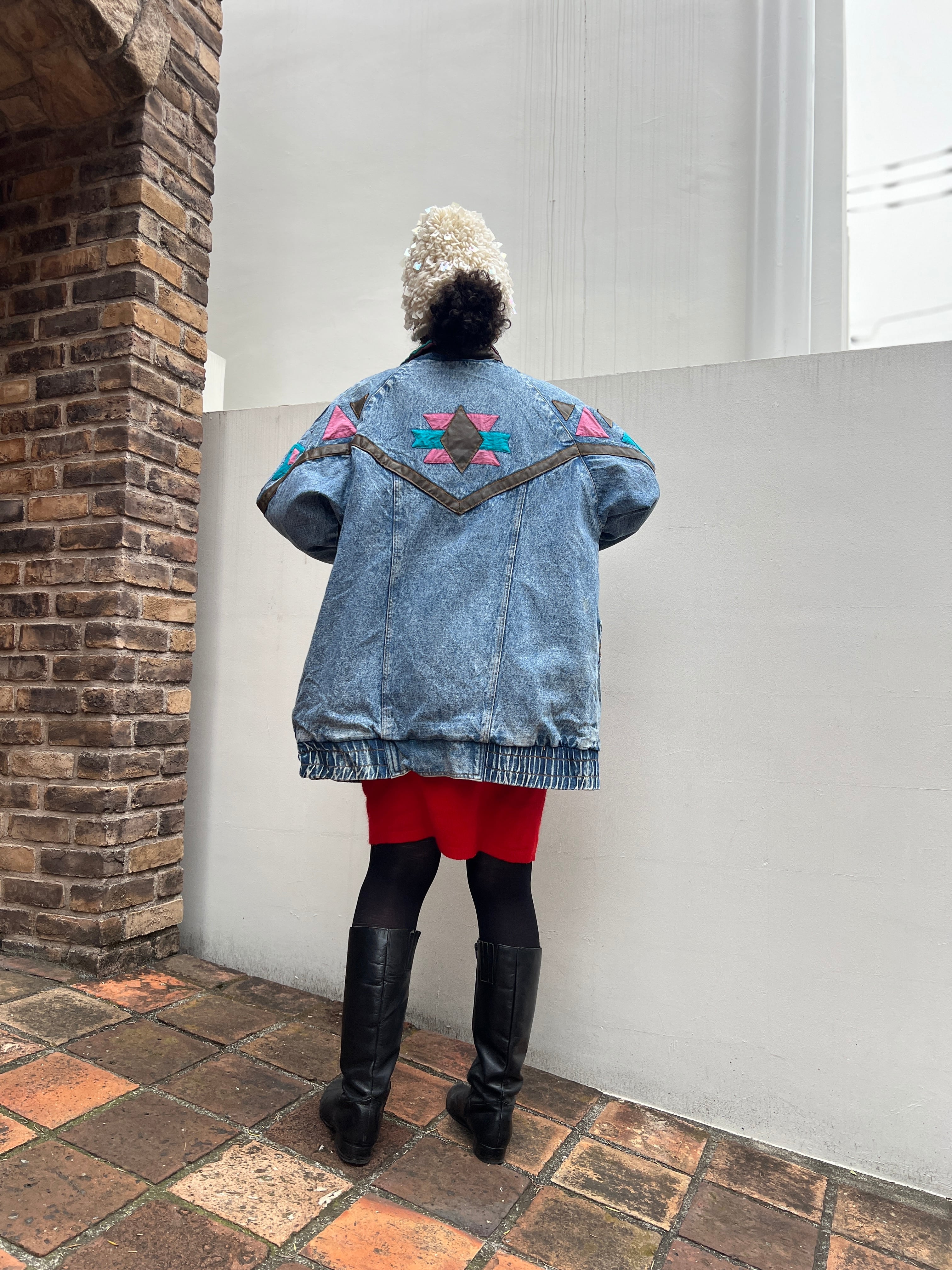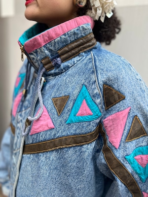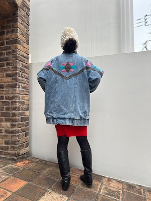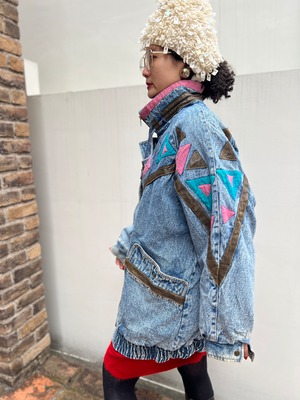 80s-90s Native Motif Geometric Design Denim Jacket