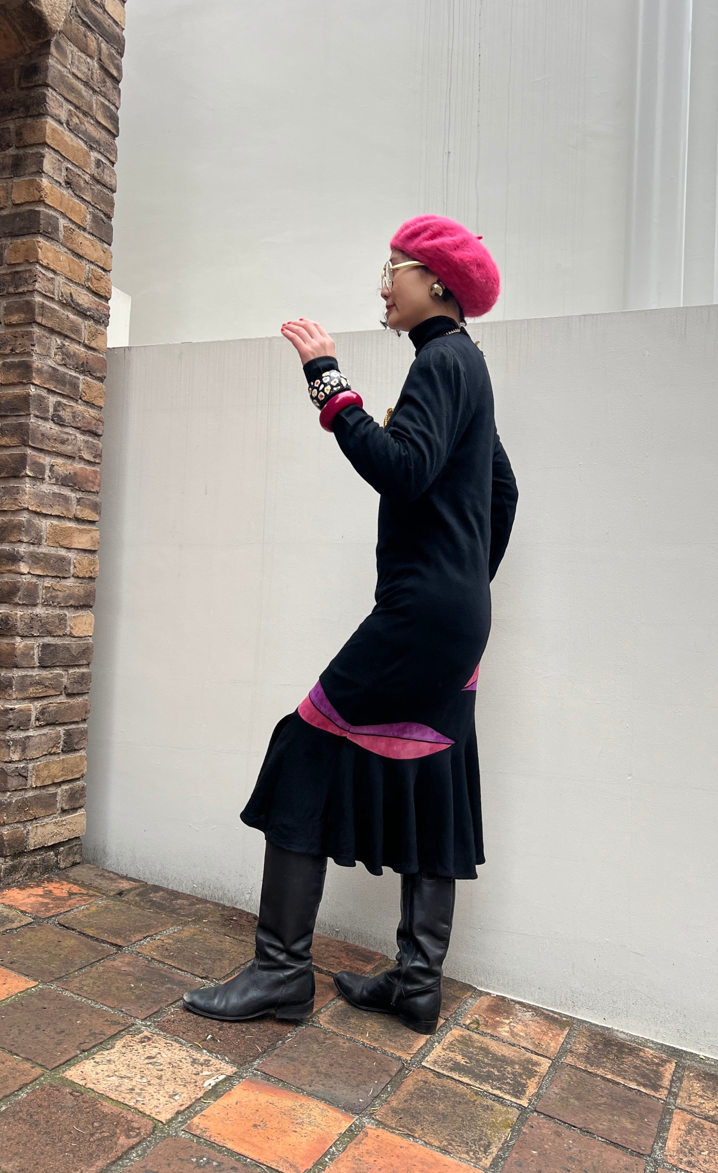 ●ロングブーツ+ベレー帽で 80sムード