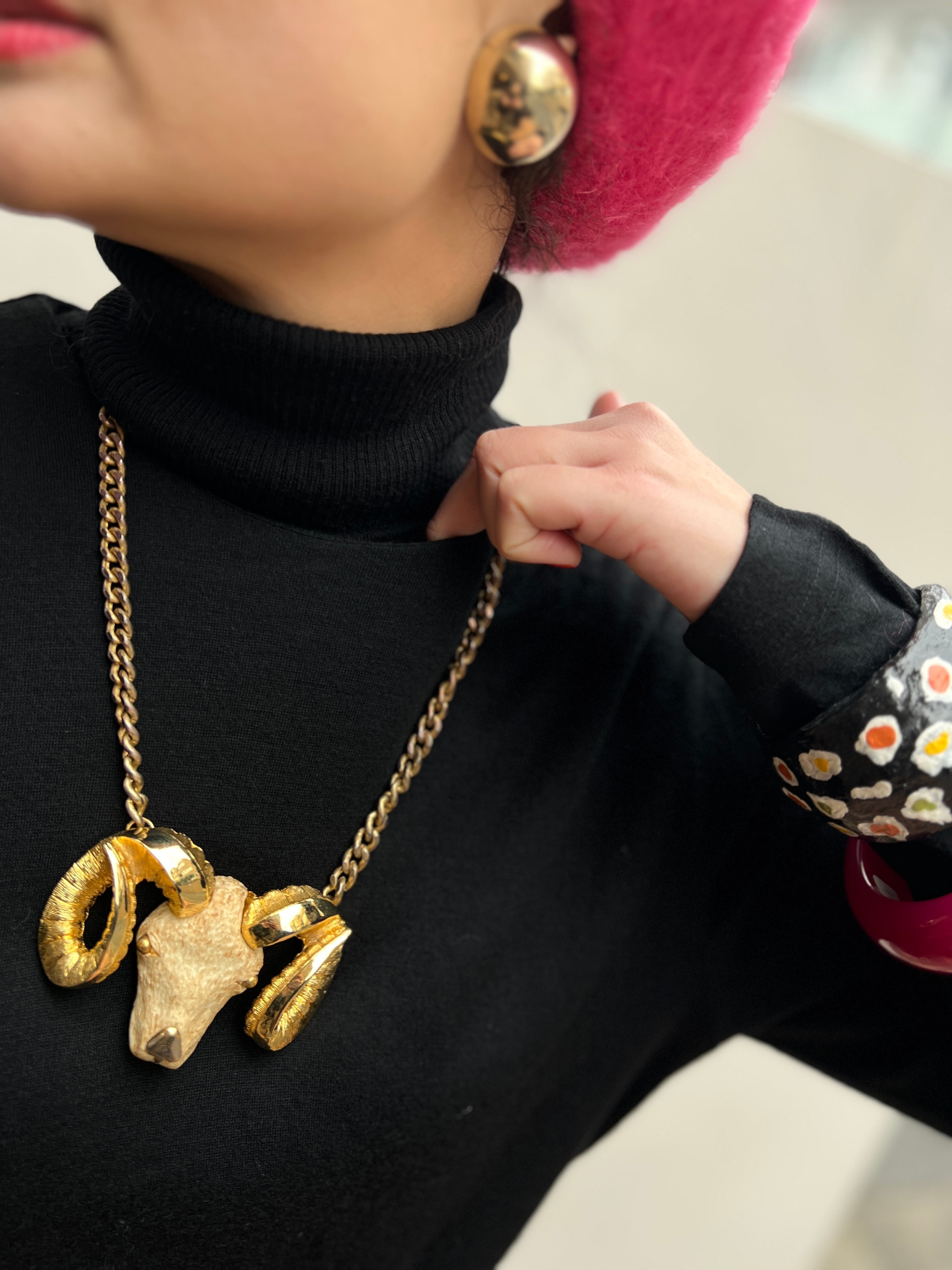 ●大ぶりネックレスを合わせて アートピース的着こなし