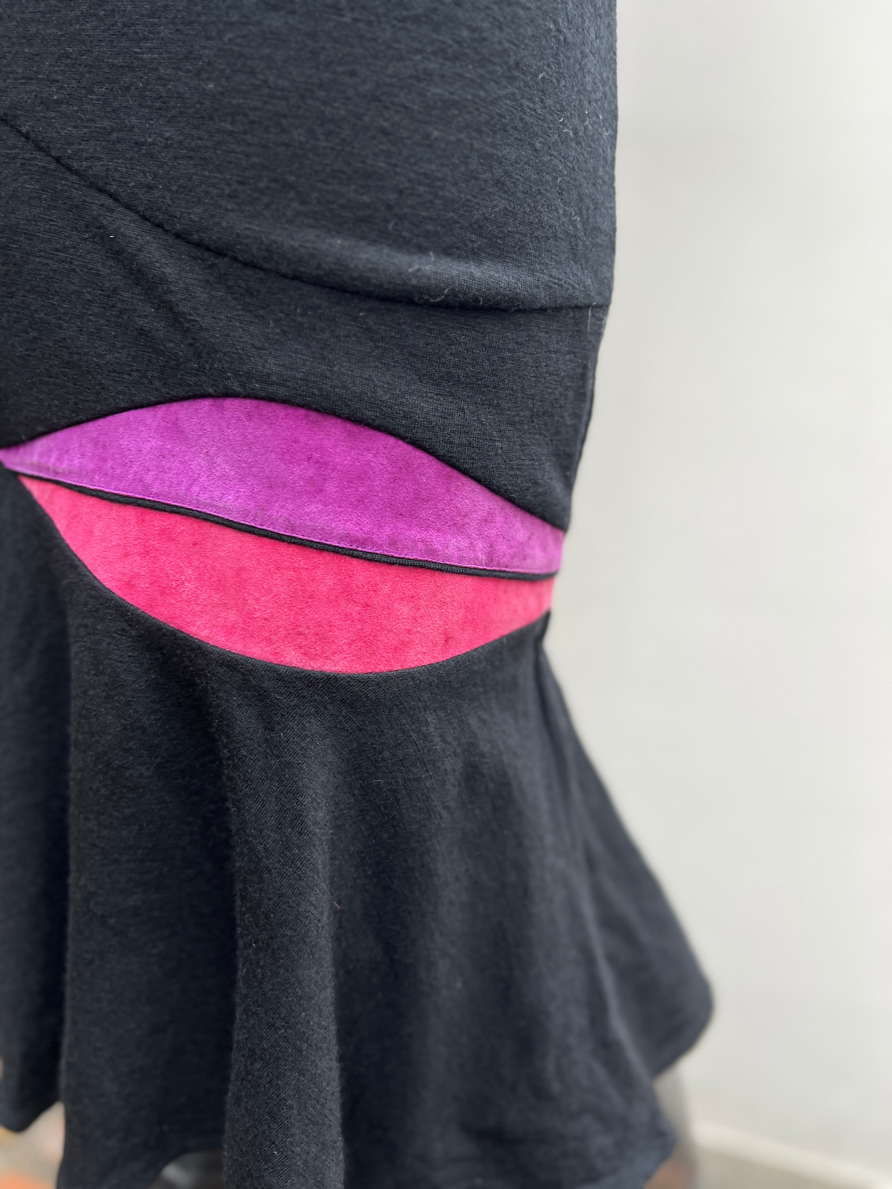 ピンク〜パープルのスウェードのカラーブロックがリズミカルに入った