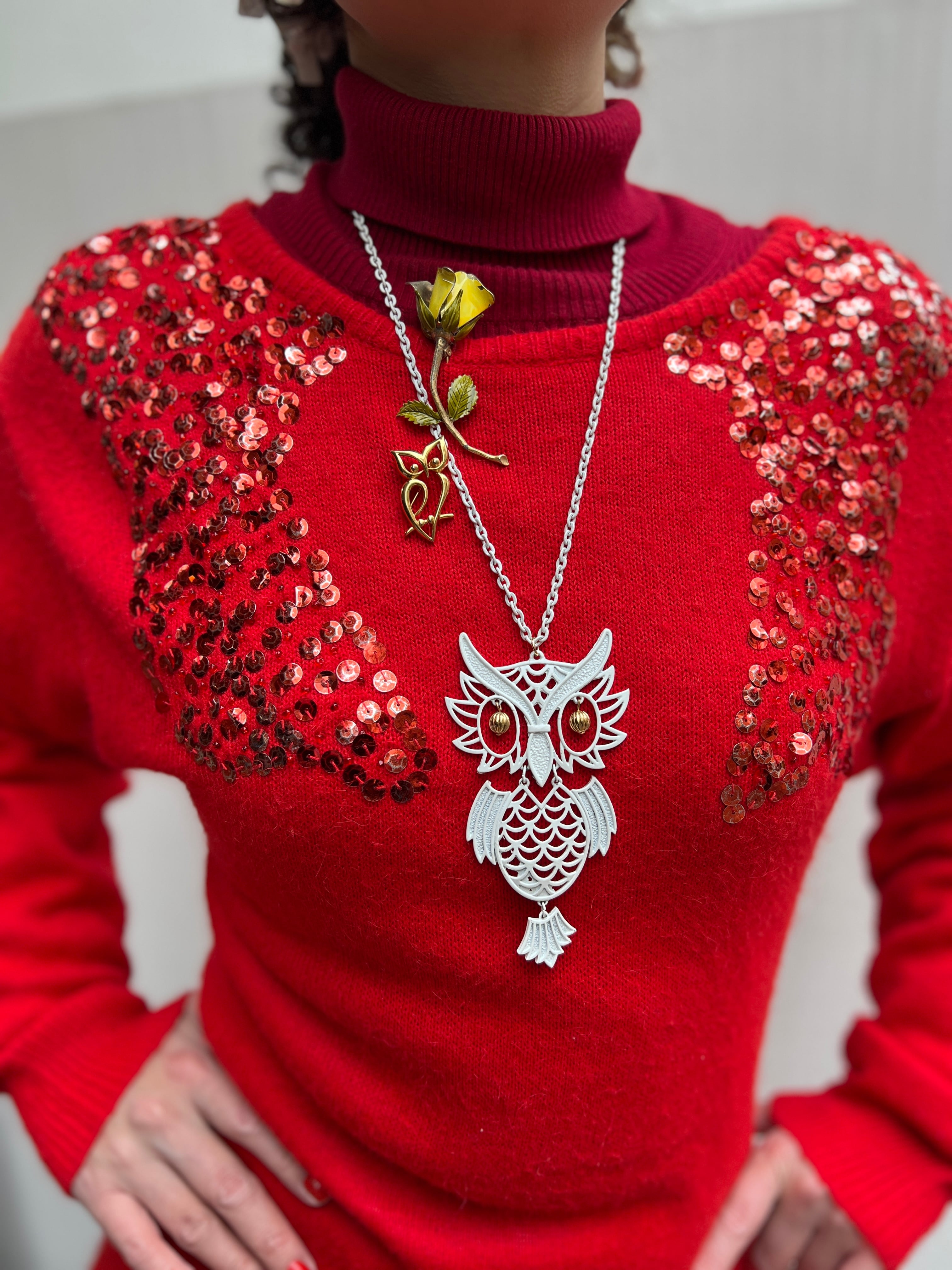 年代物のため、赤いスパンコールのコーティングが一部薄れ、シルバーっぽく見える箇所がございます。
