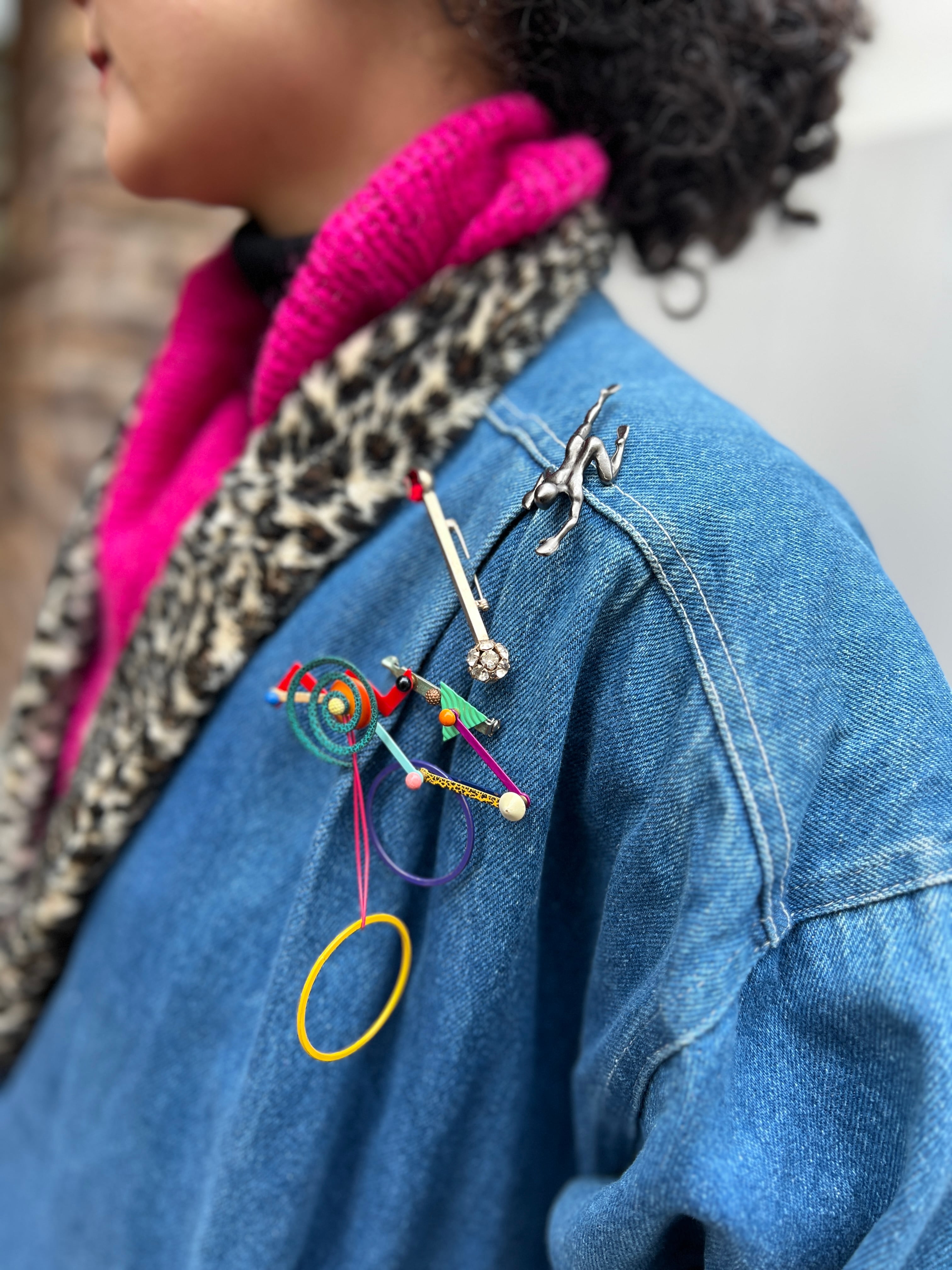 このタイプのブローチは、建築やインテリアの思想をジュエリーに落とし込むことを得意としたアーティスト/デザイナーによる作品に多く見られ、