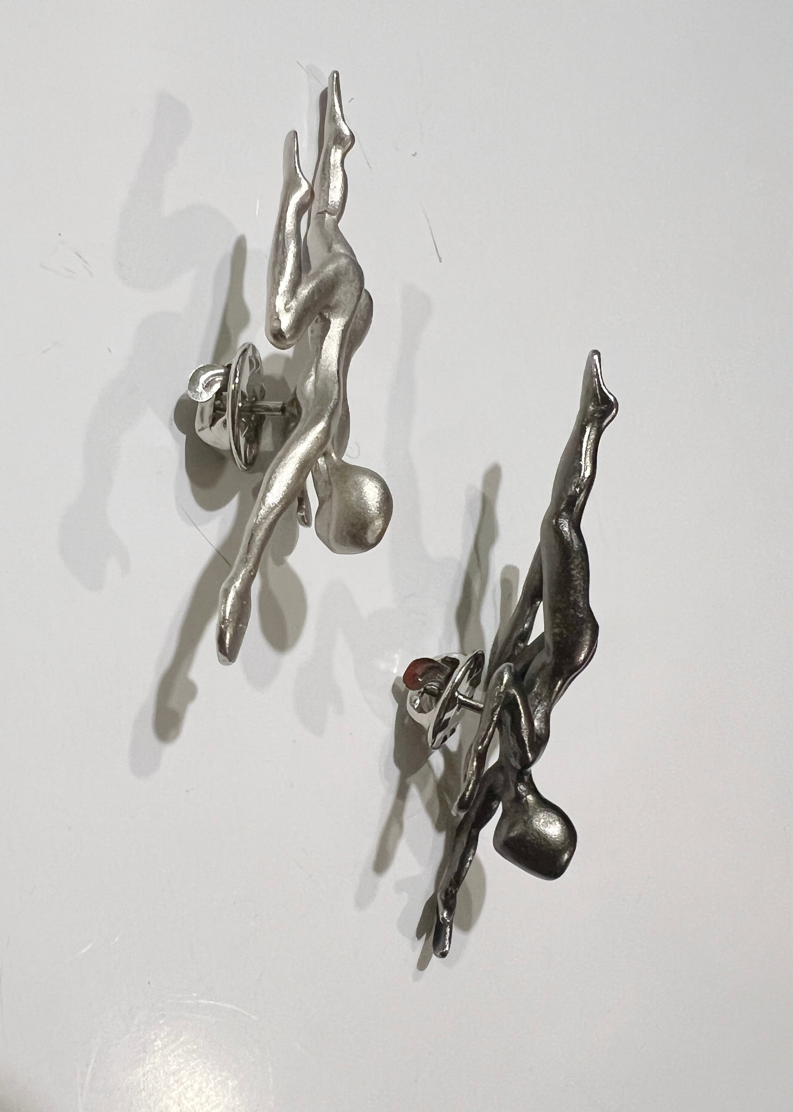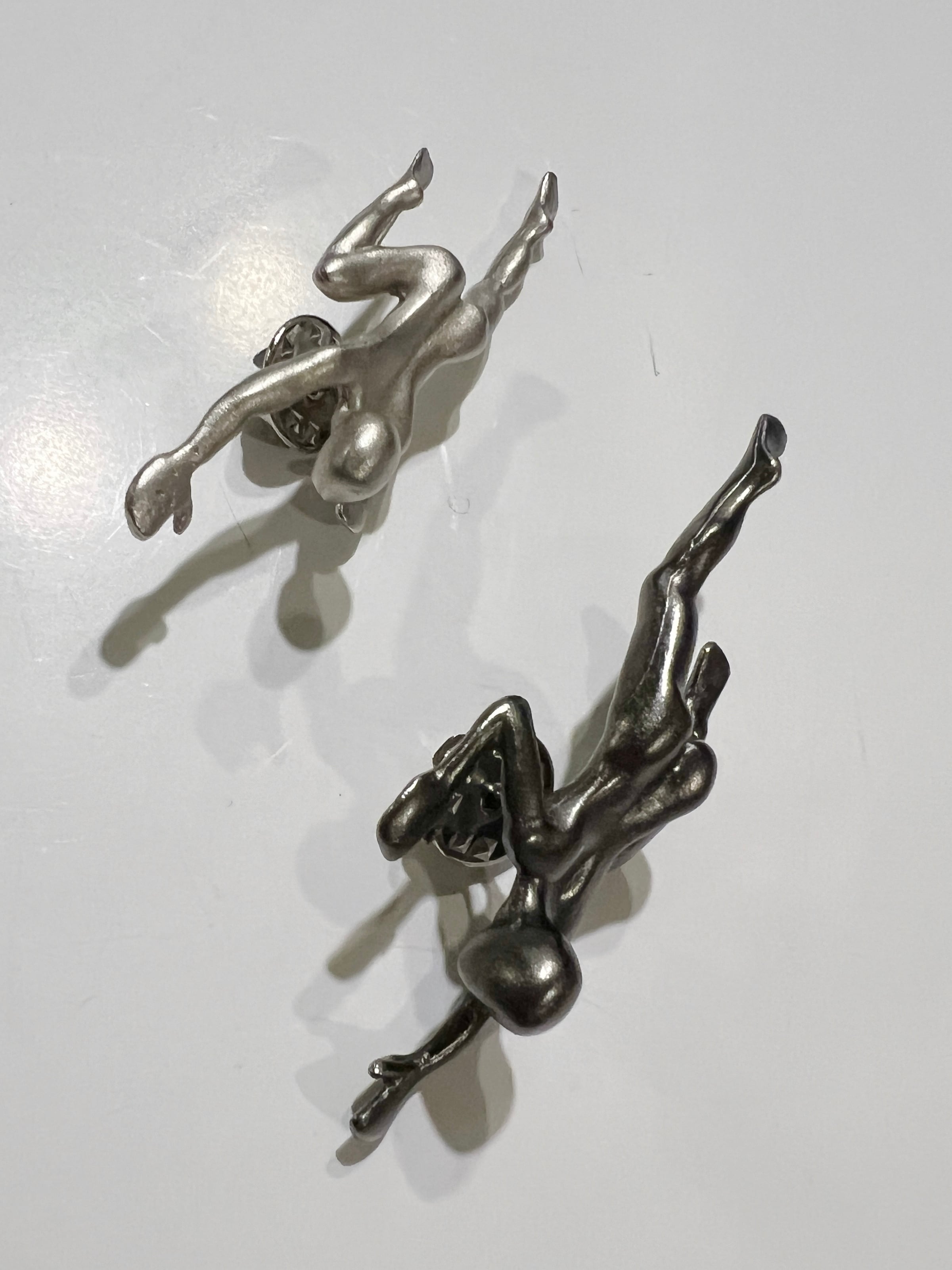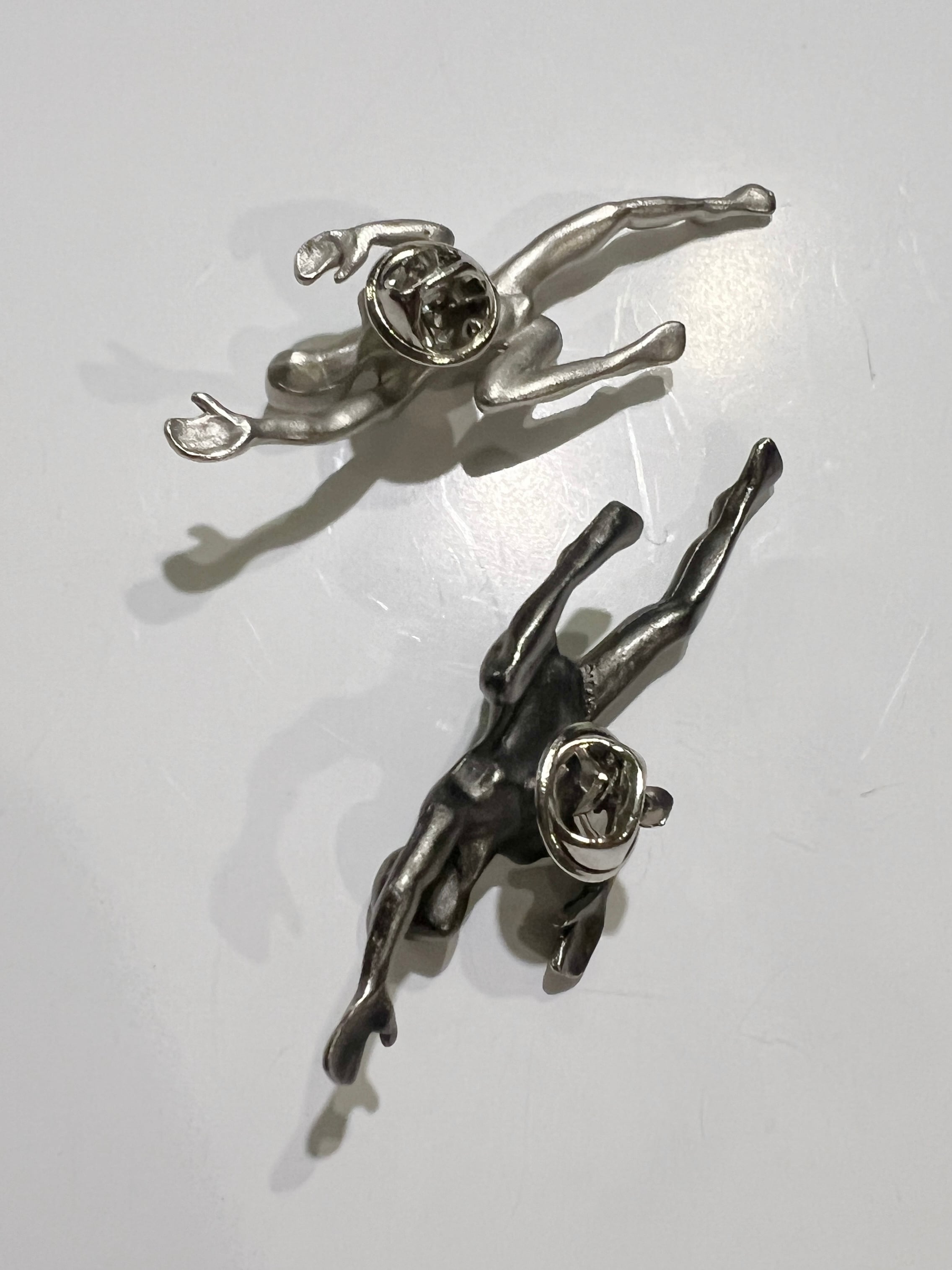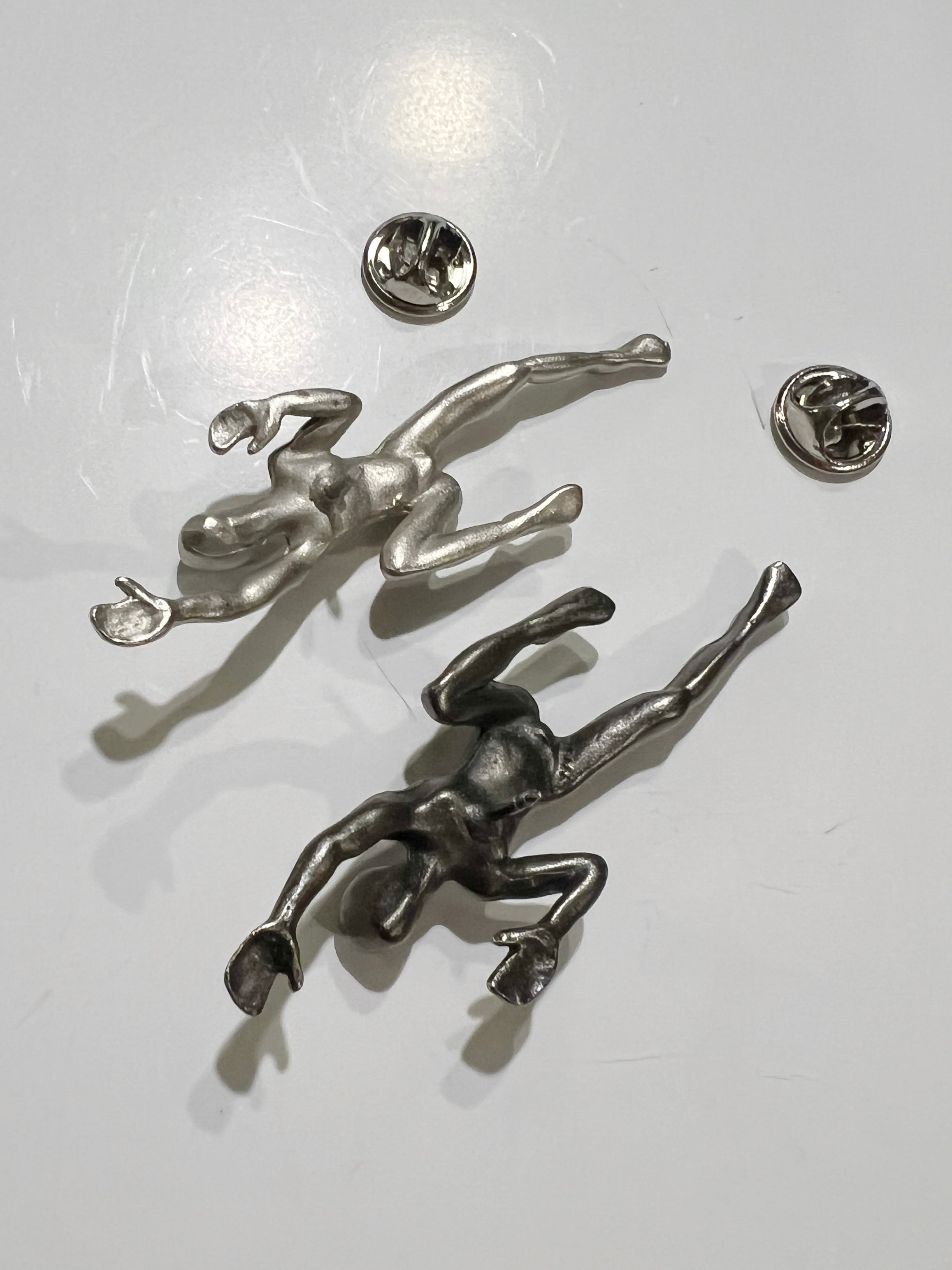 立体的な人体フィギュアモチーフのヴィンテージブローチ。