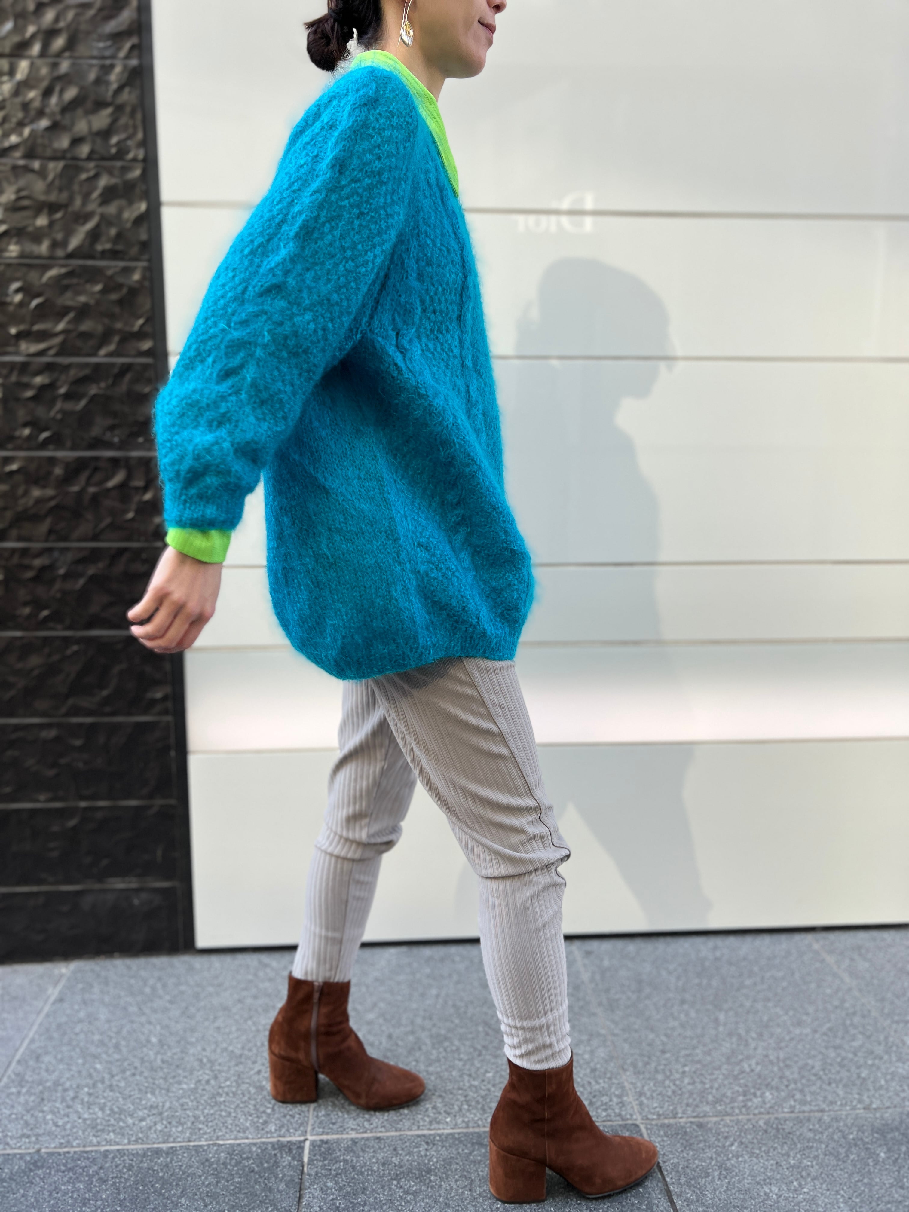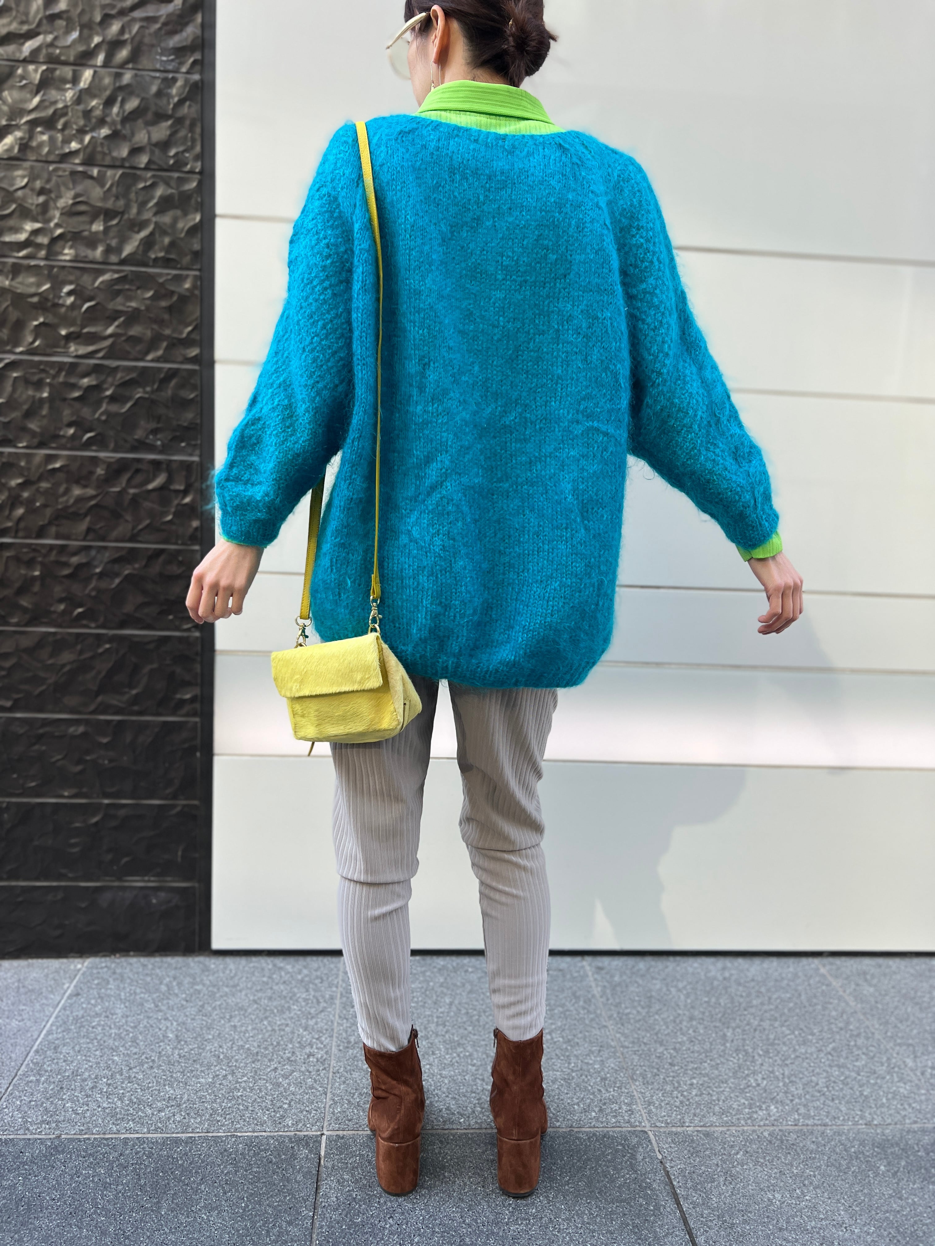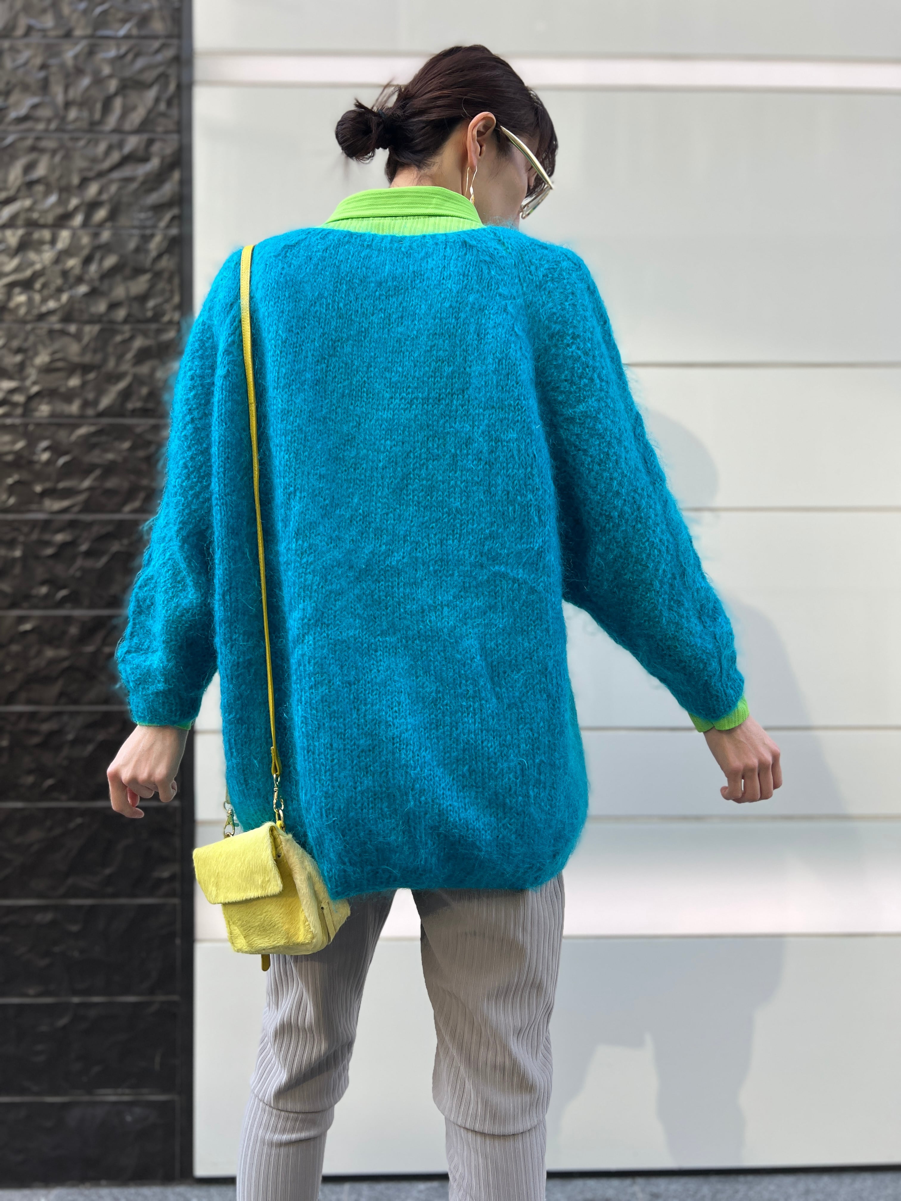 モヘア特有のふんわりとした毛足がありながら、発色はクリアで、スタイリングの主役になる一枚です。