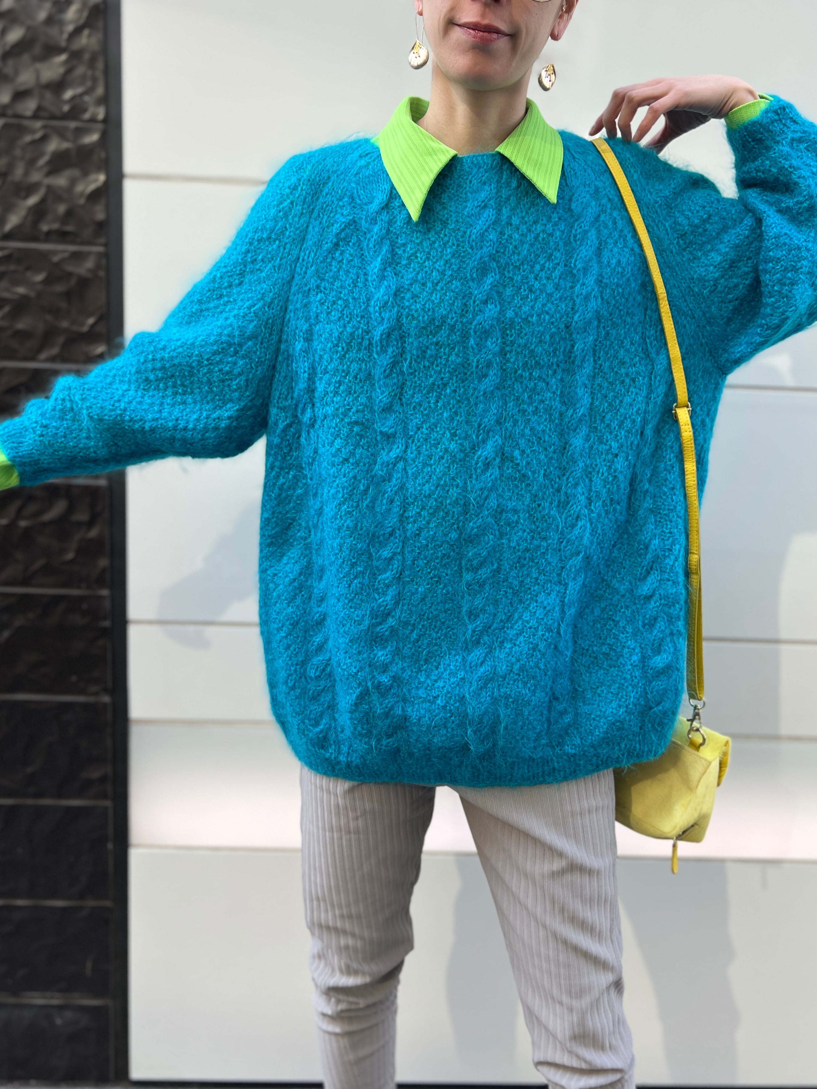 80s handmade blue mohair sweater