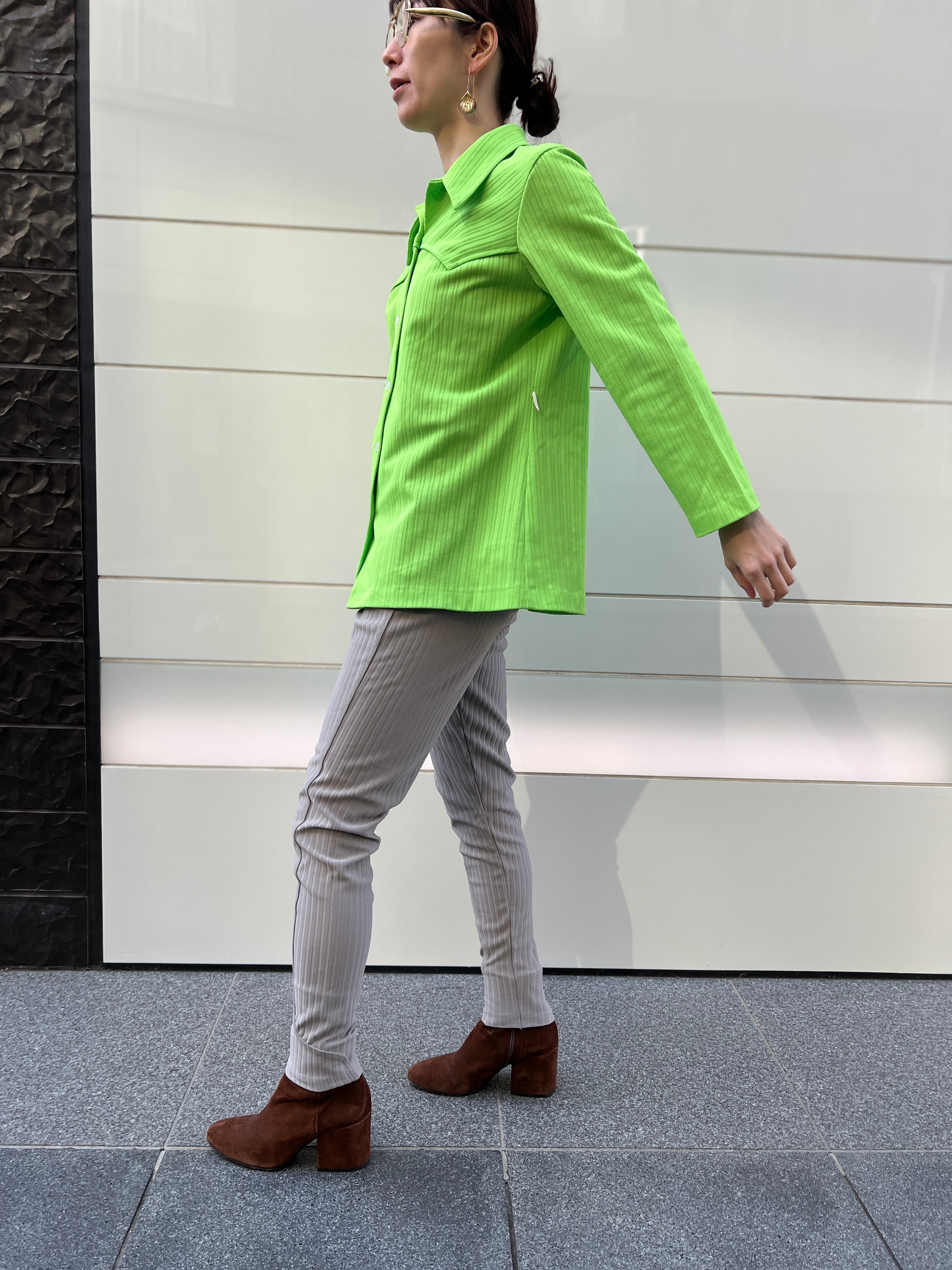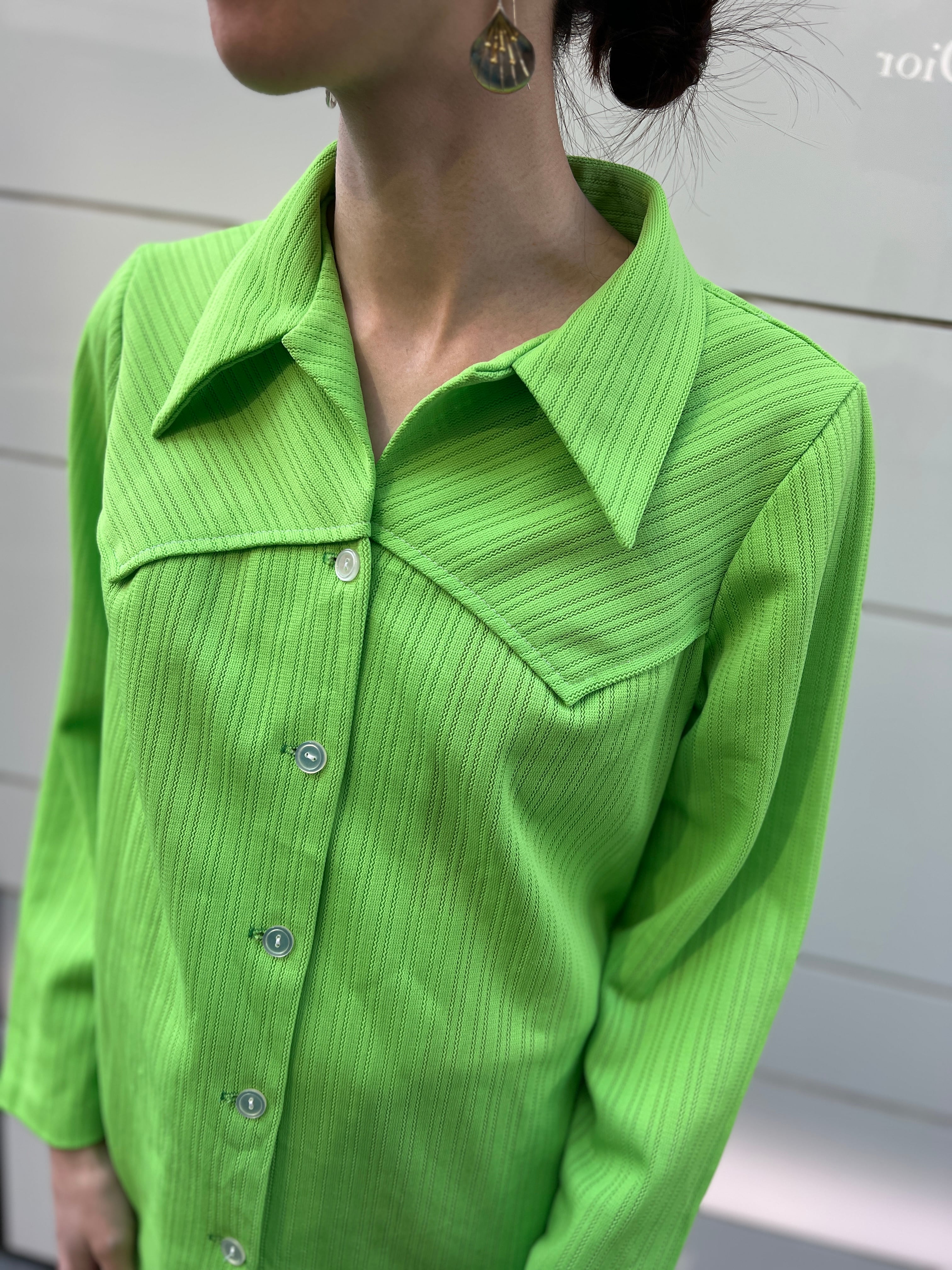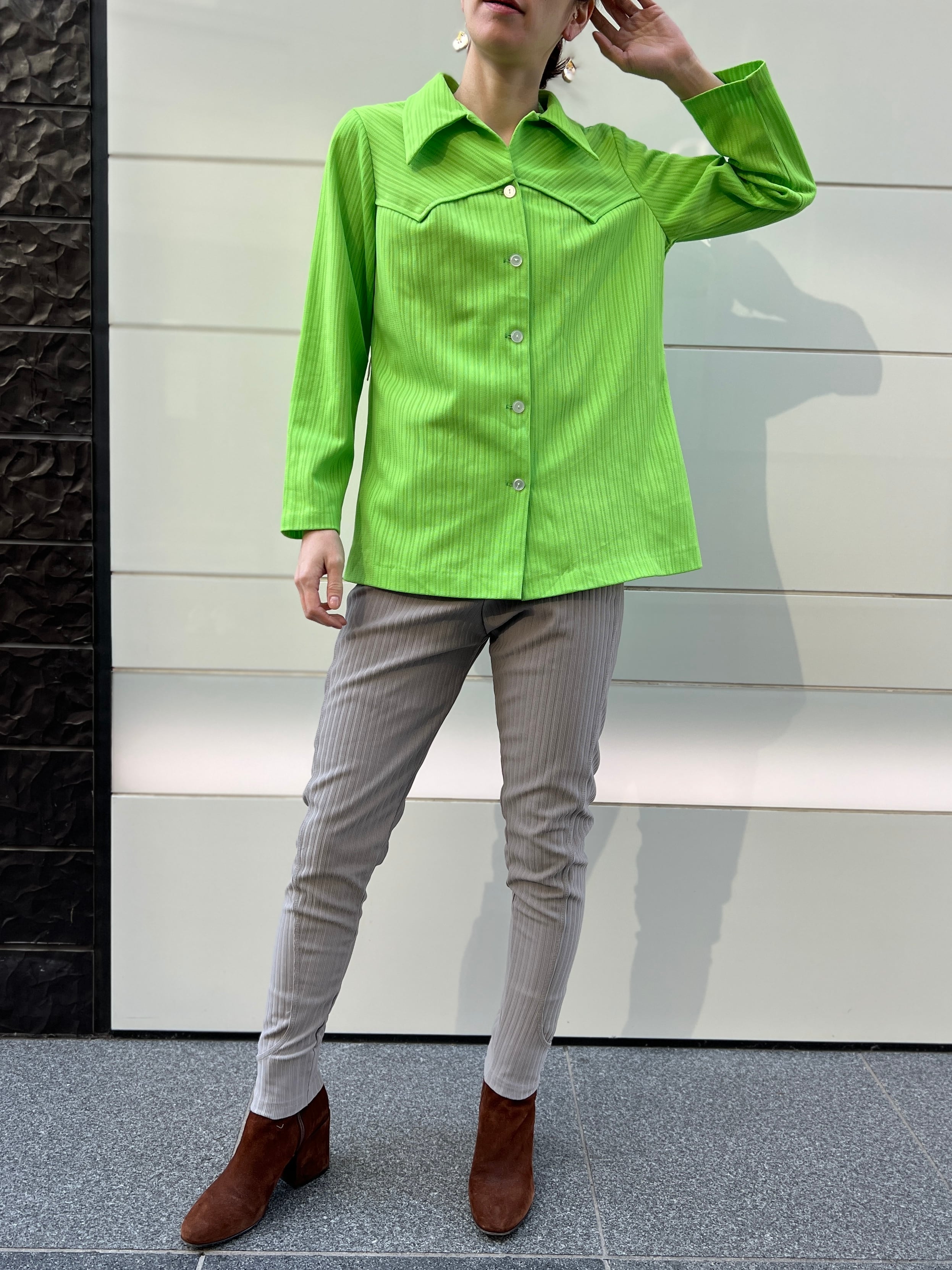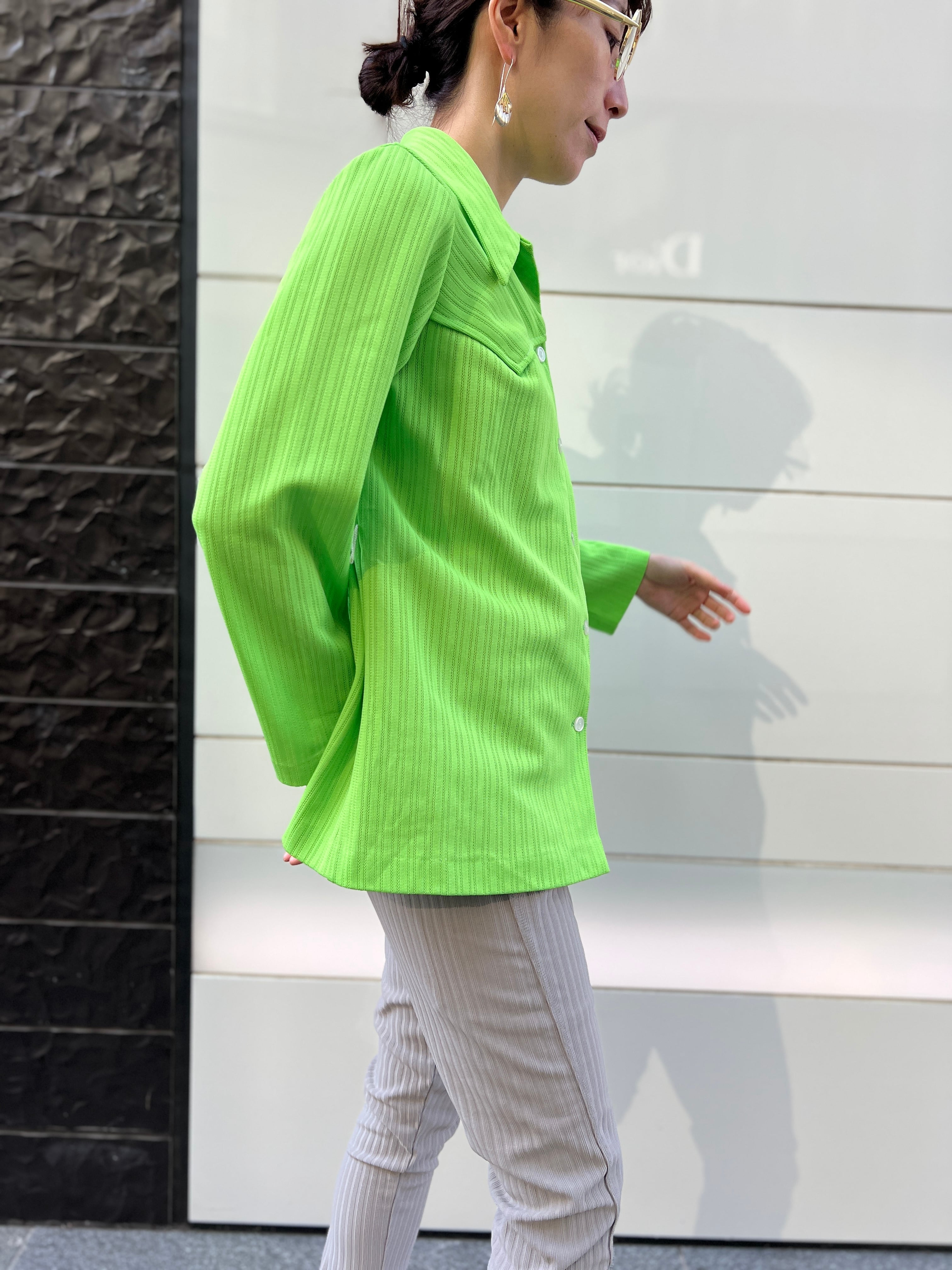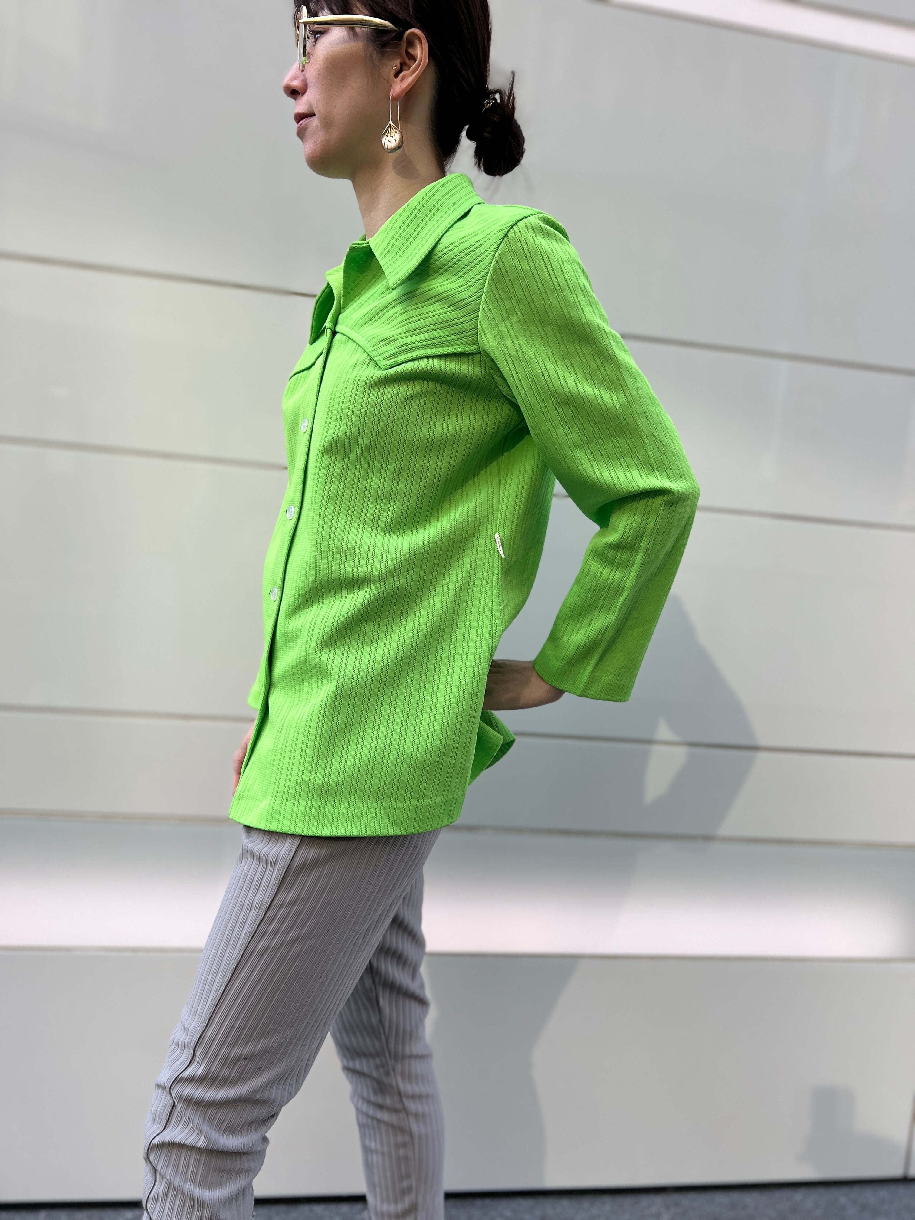 鮮やかなネオングリーンカラーが目を惹く、ヴィンテージのデザインシャツ。
