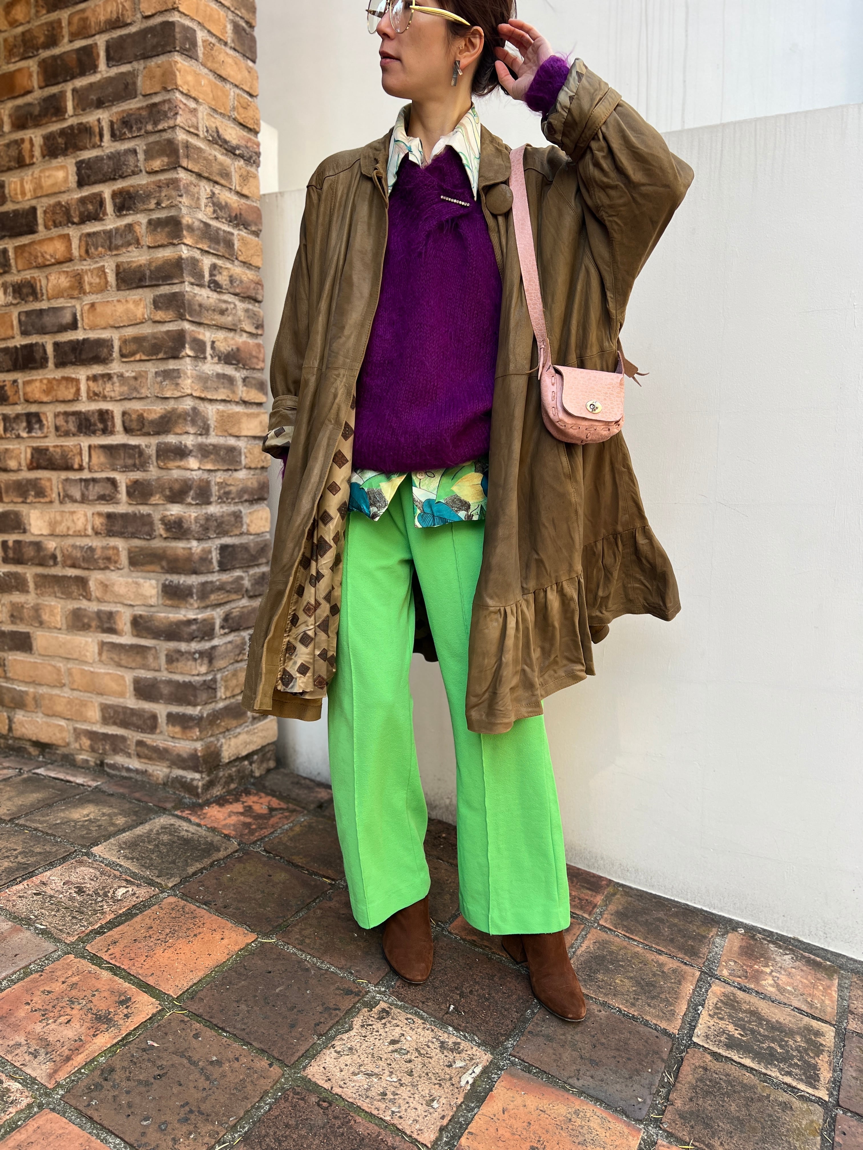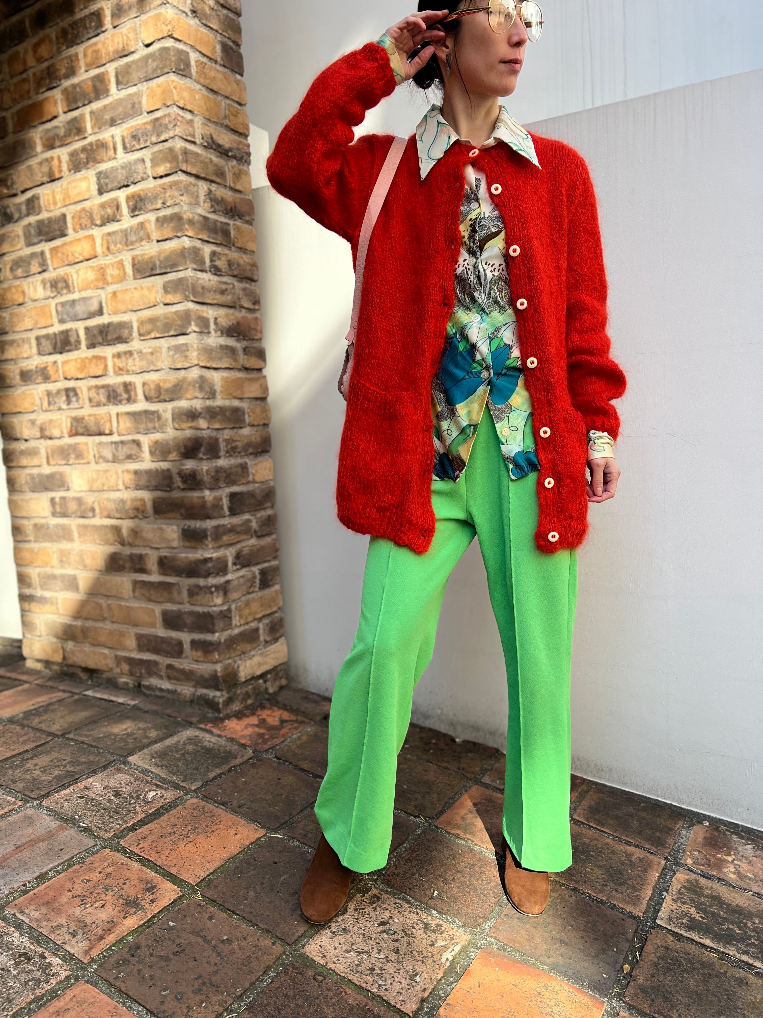 70s green poly pants ( ヴィンテージ 黄緑 ポリ パンツ )