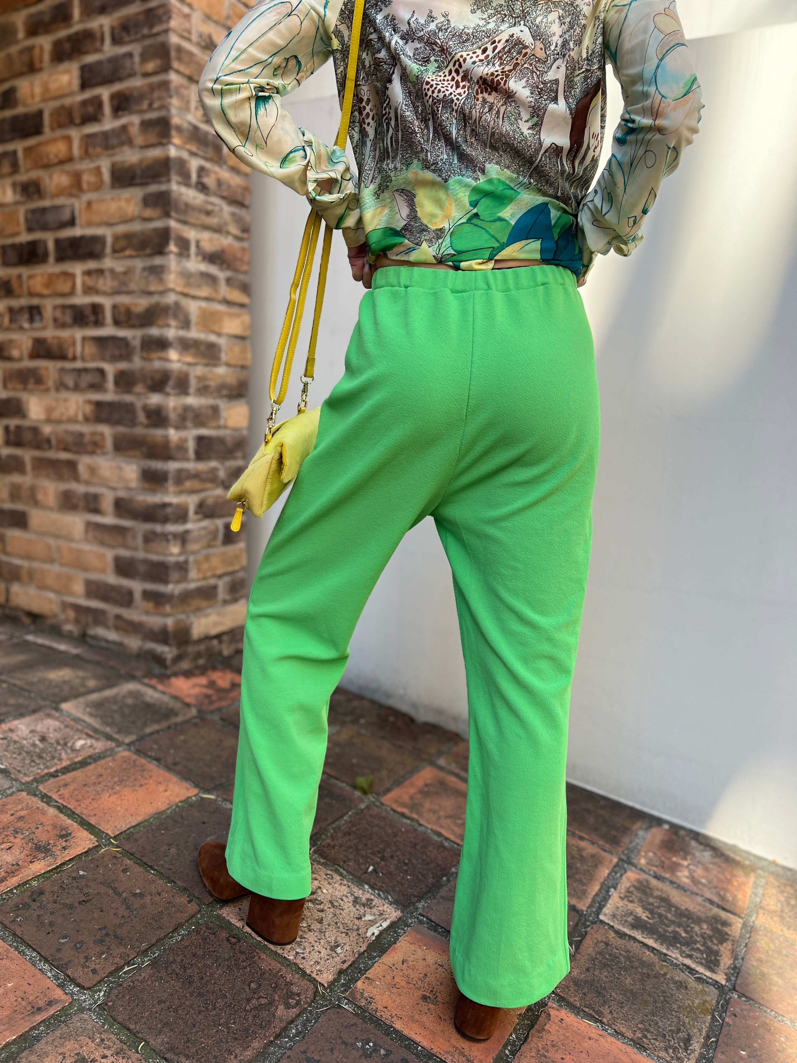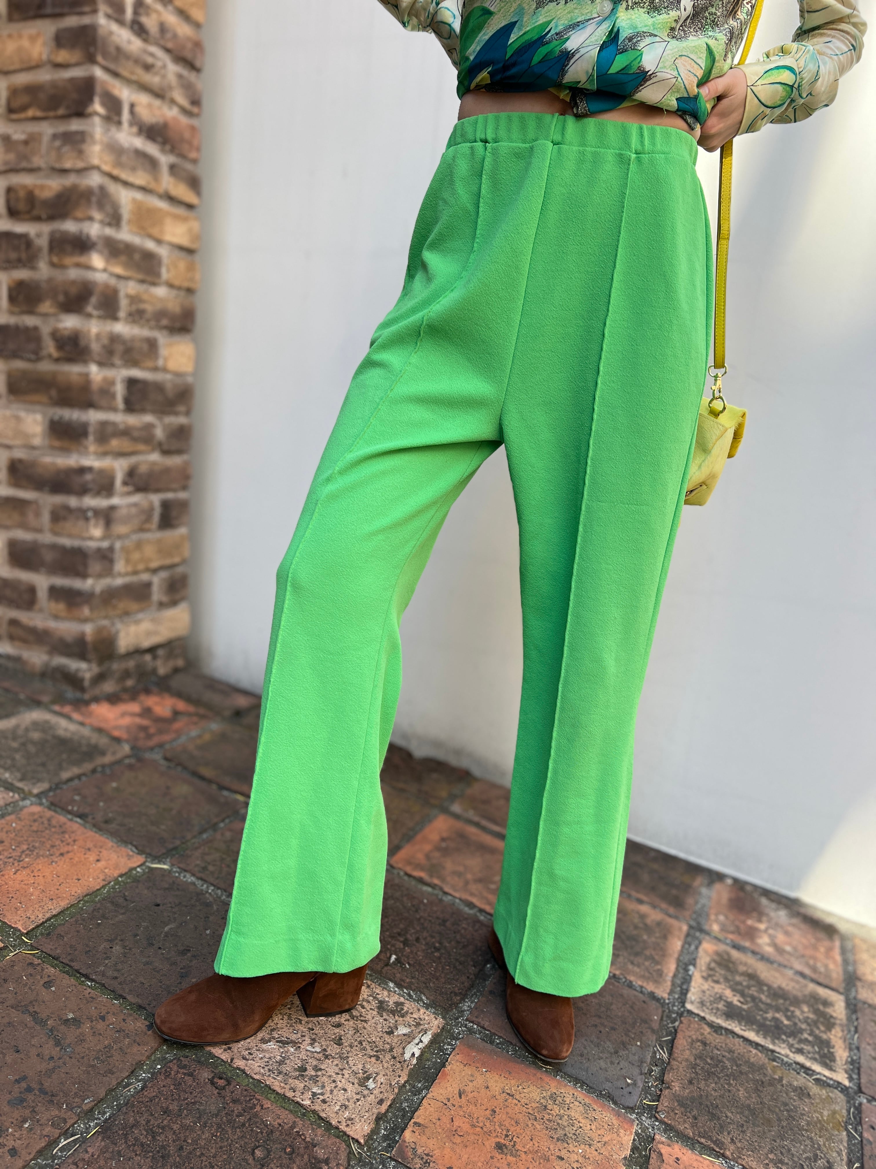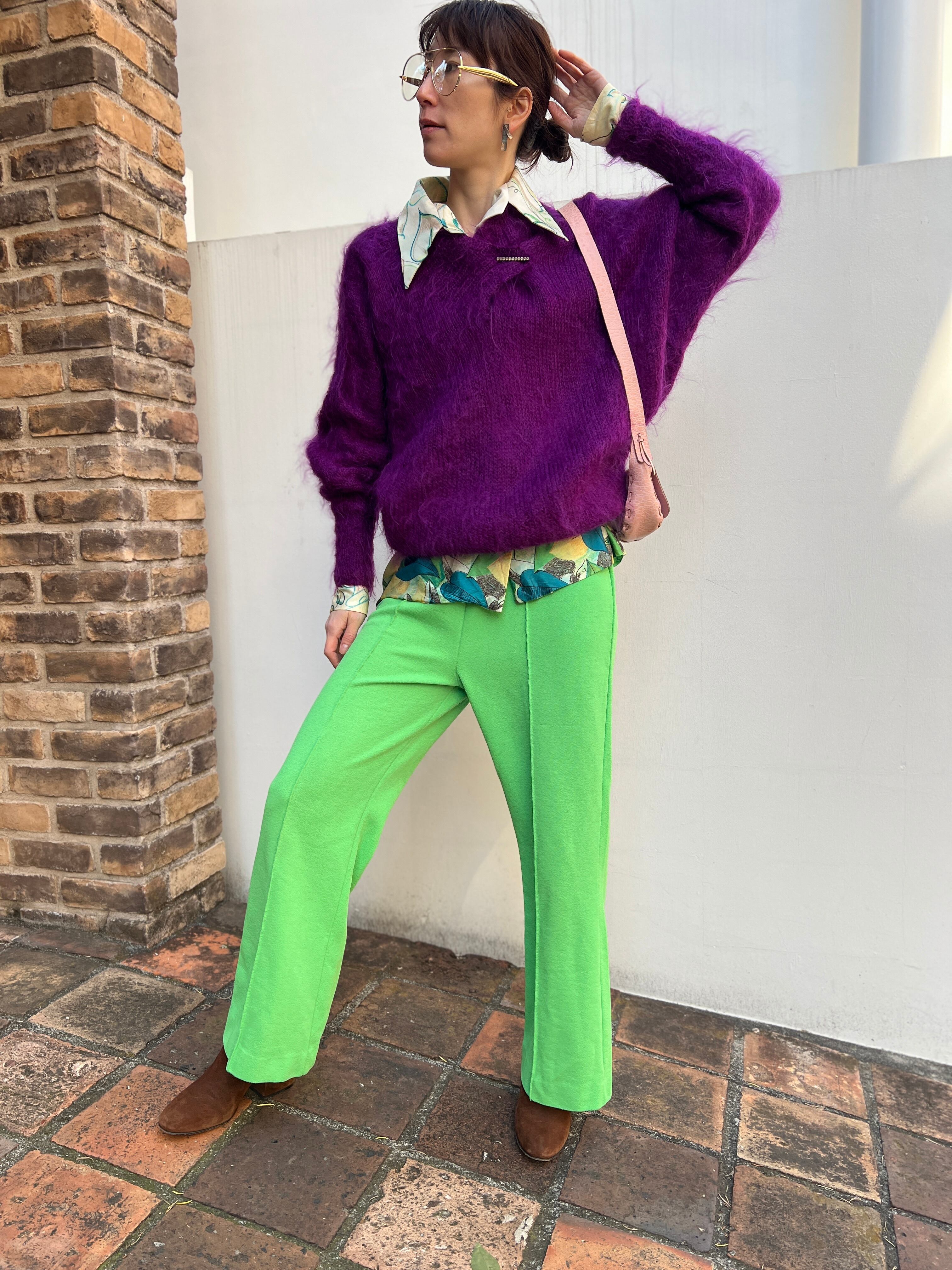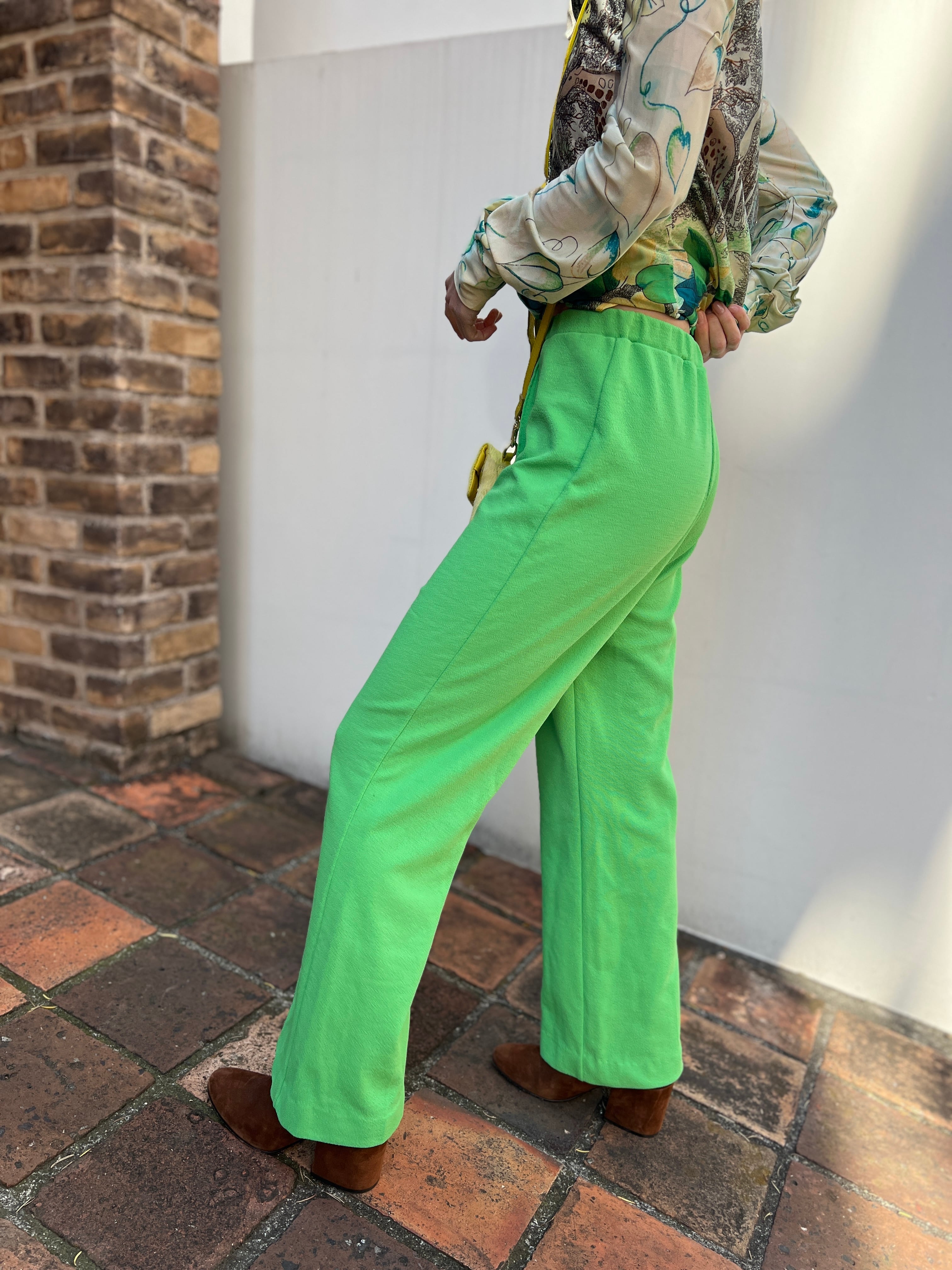 目を惹く鮮やかなグリーンカラーが印象的な、ヴィンテージのストレートパンツ。