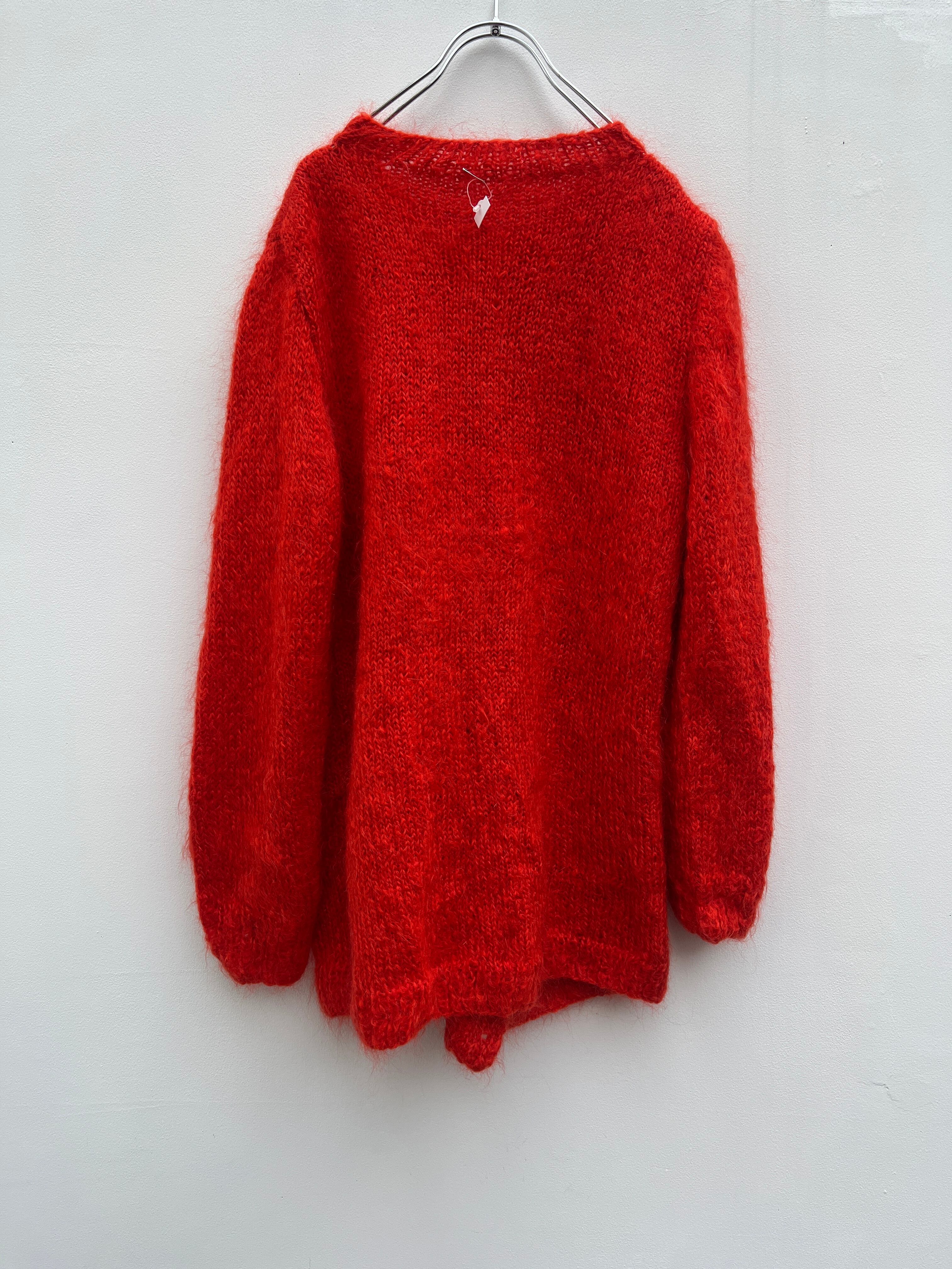 ヴィンテージ ハンドメイド 朱赤 モヘアニットカーディガン