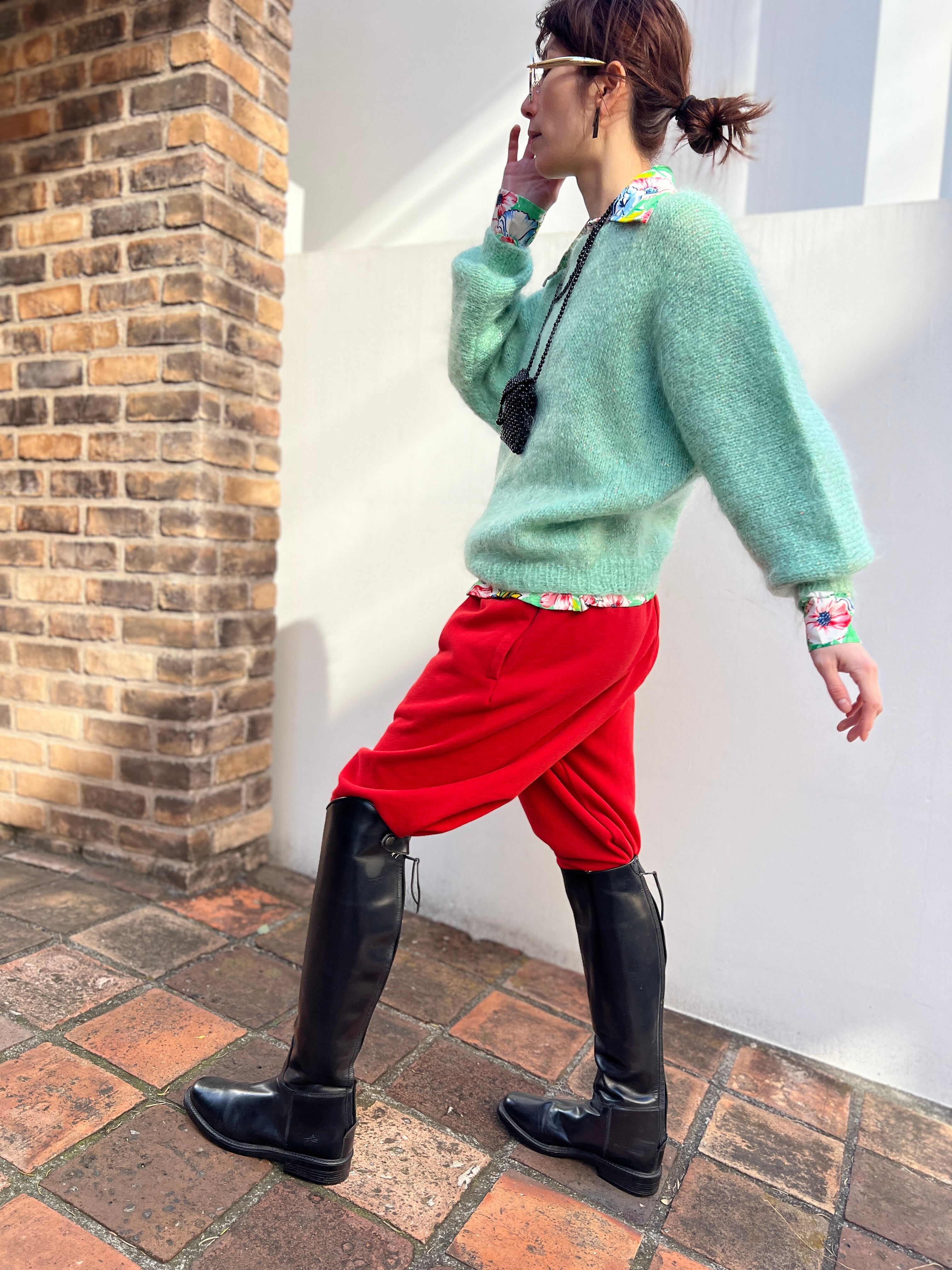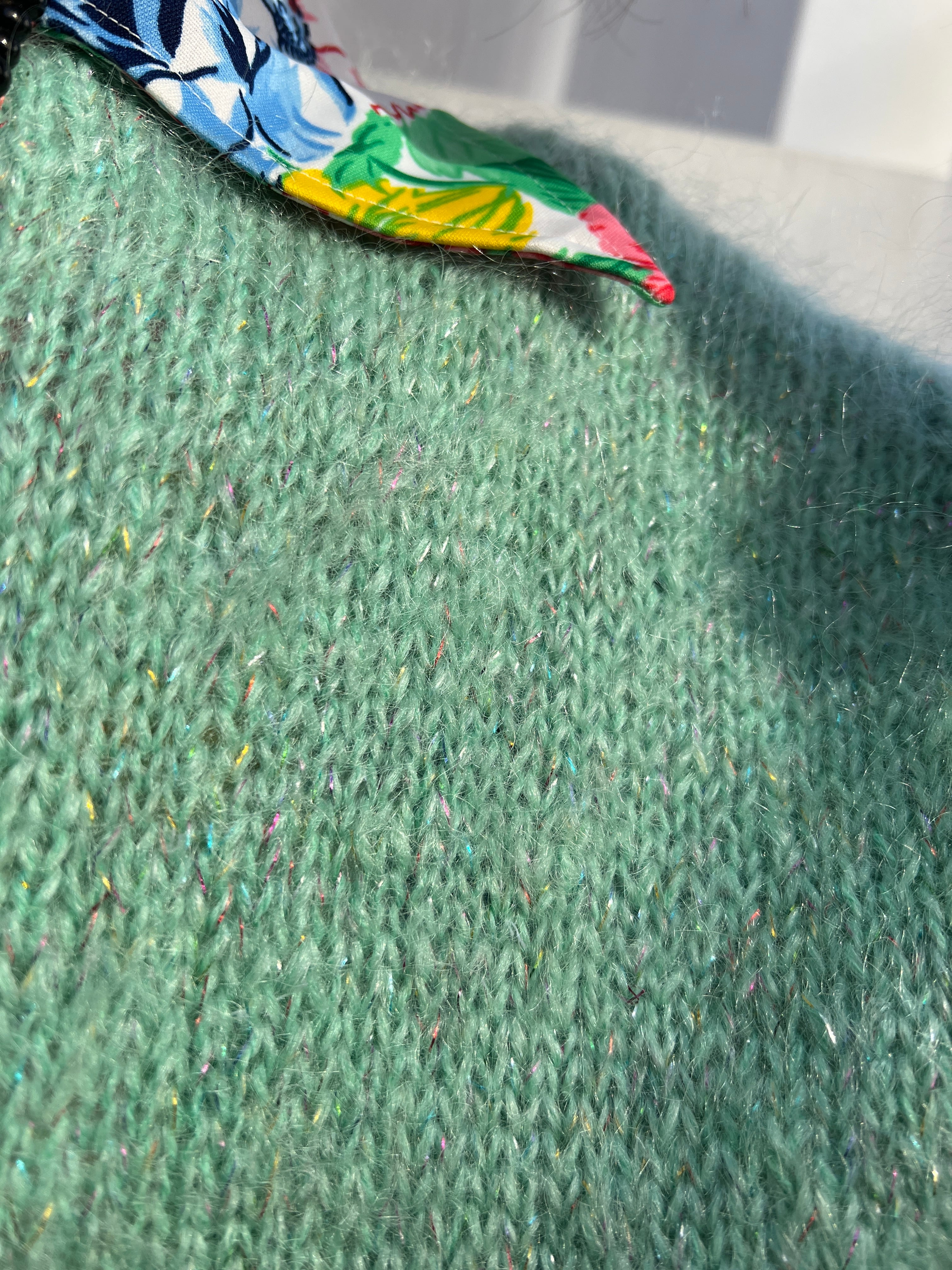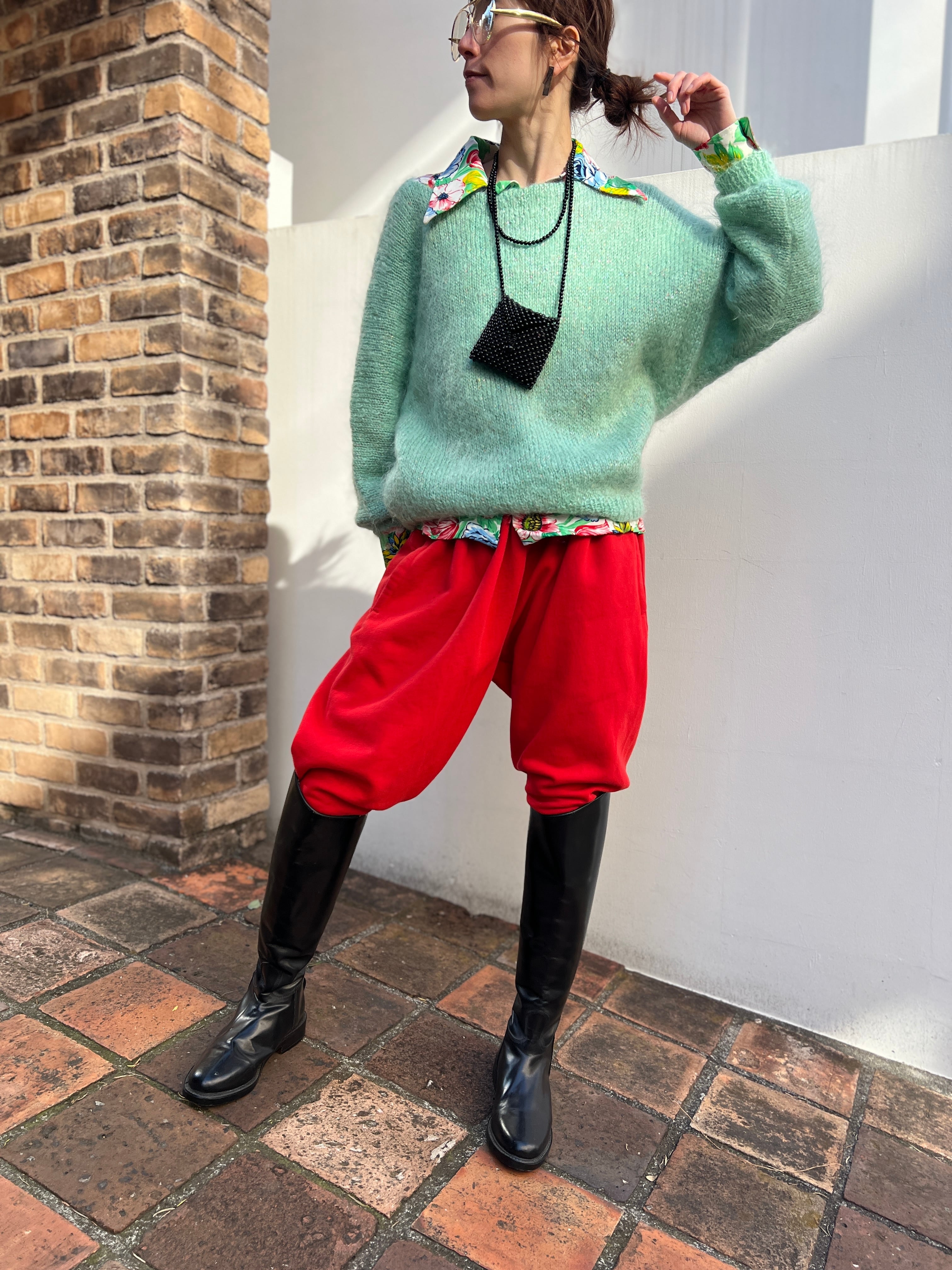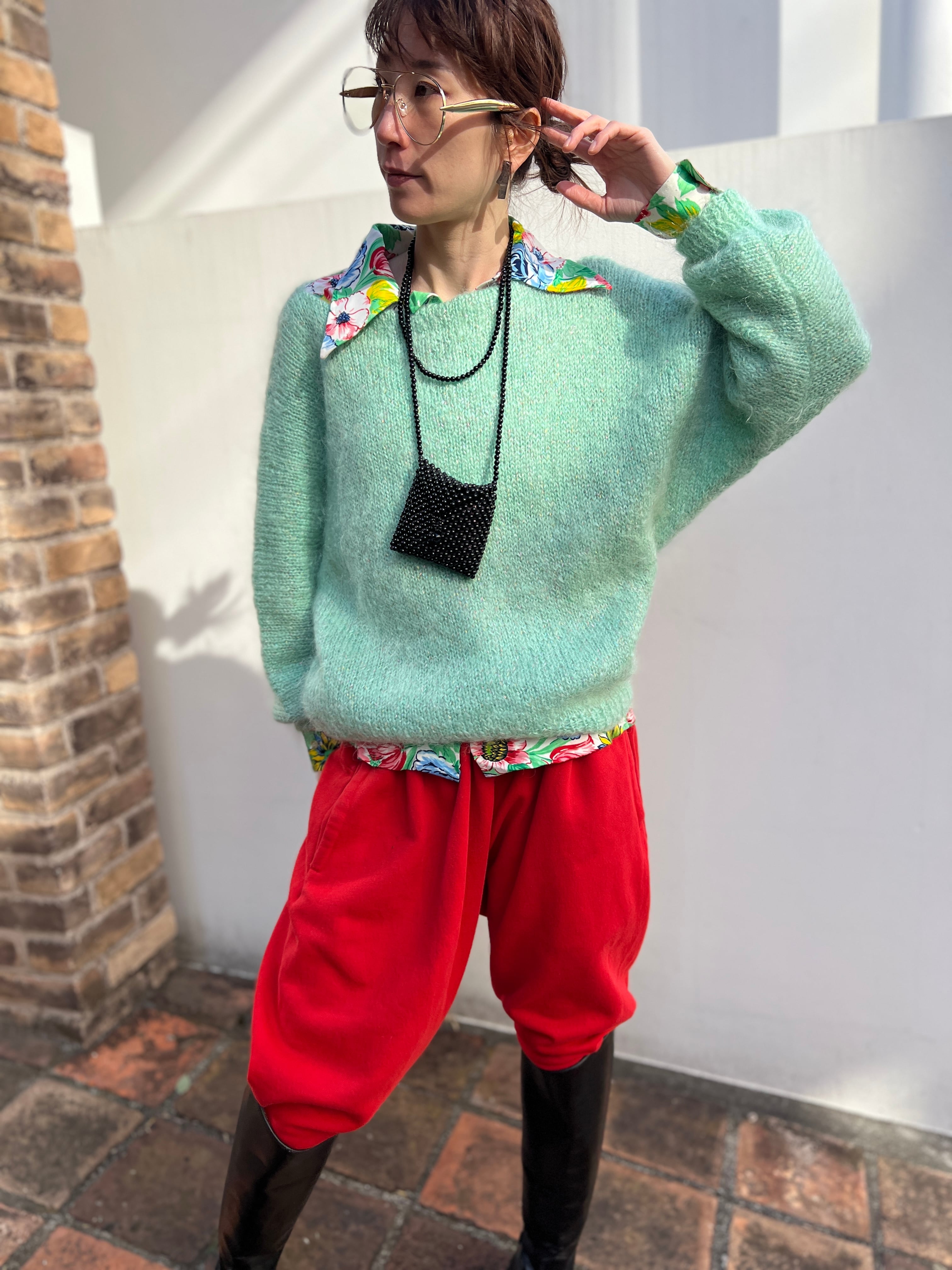 ふんわりとした毛足と、ミントグリーンの柔らかな発色が魅力のヴィンテージ・モヘア混ニット。