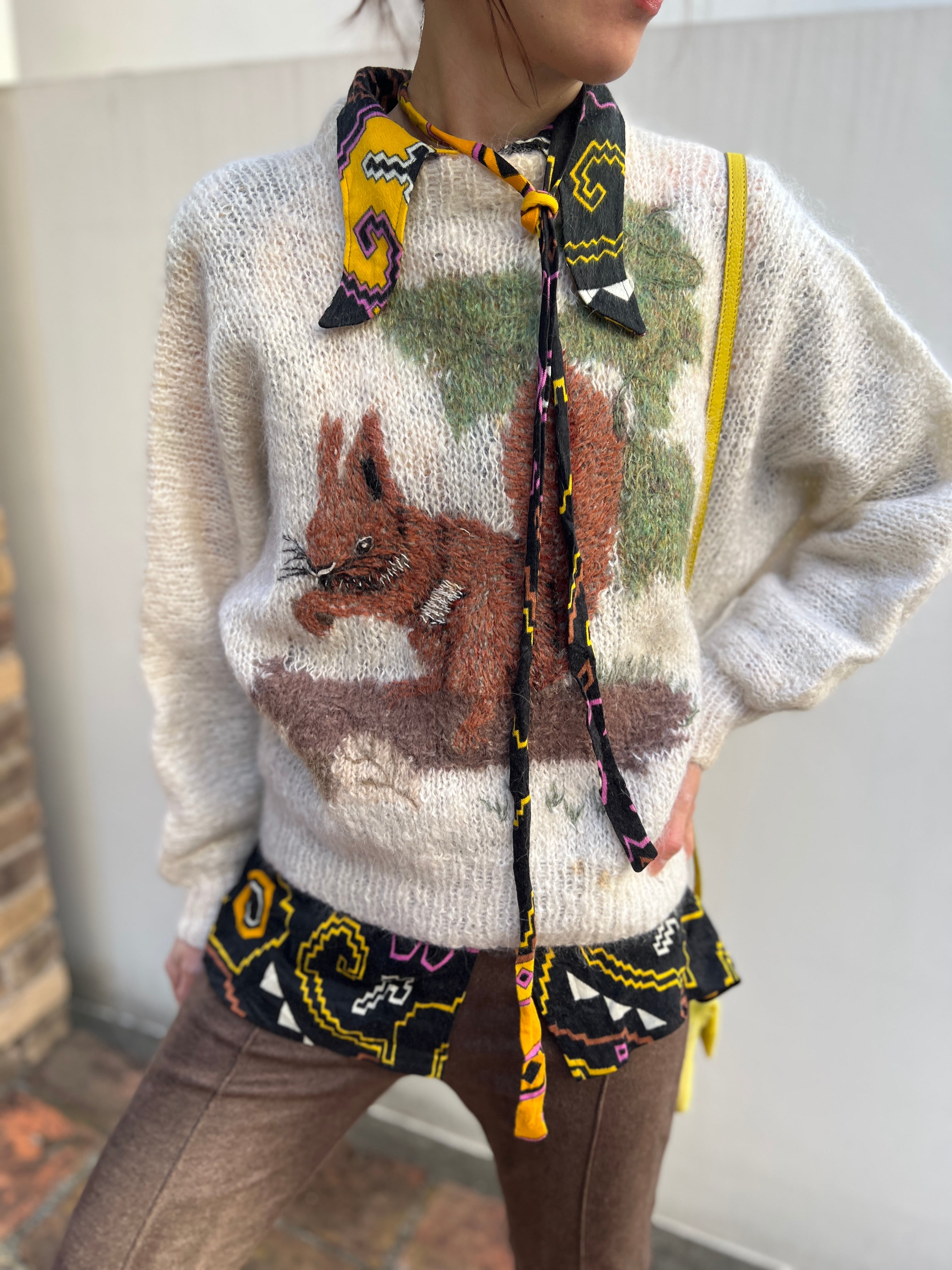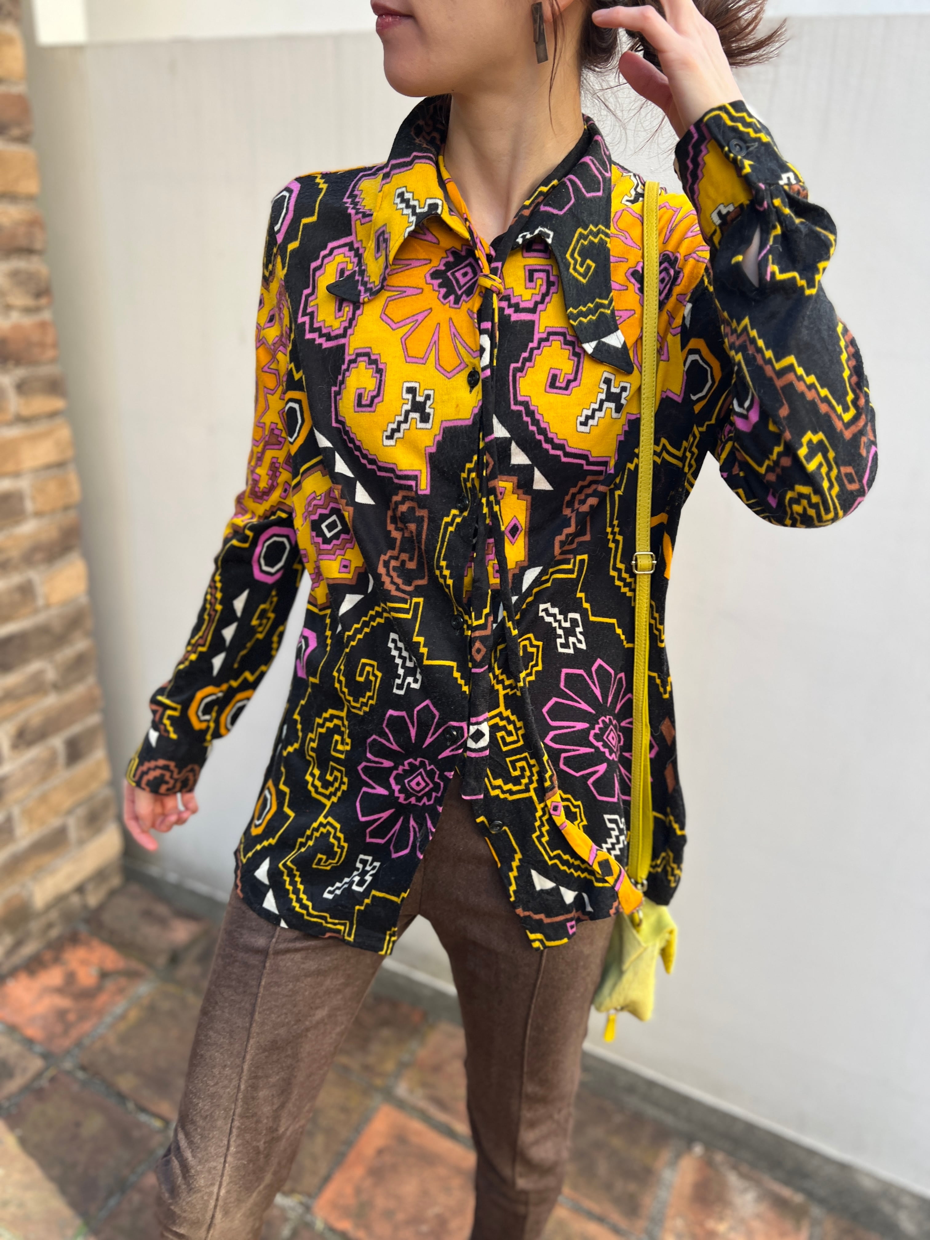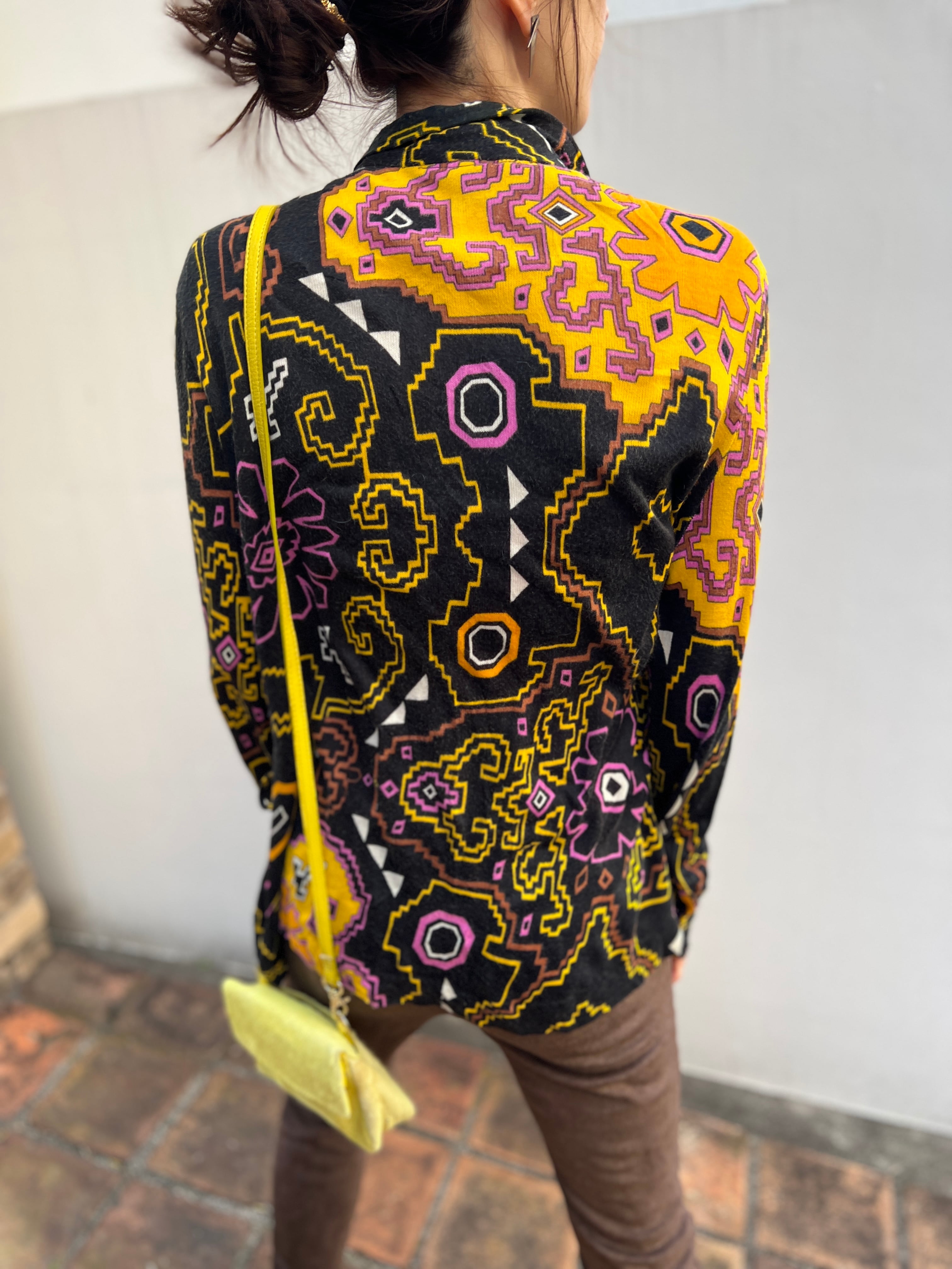 70〜80年代頃 幾何学×フラワーモチーフが印象的なアクリルニットシャツ。