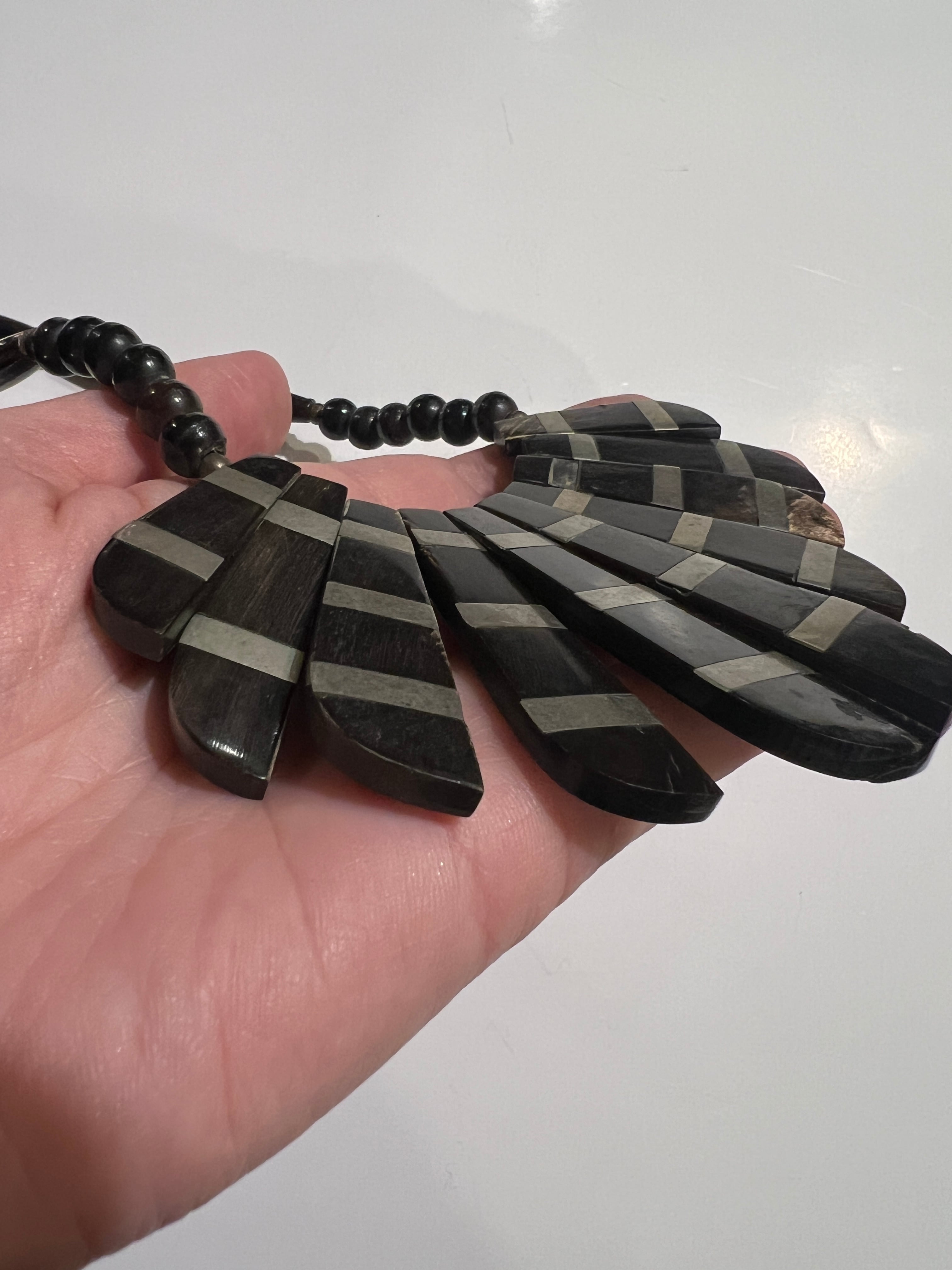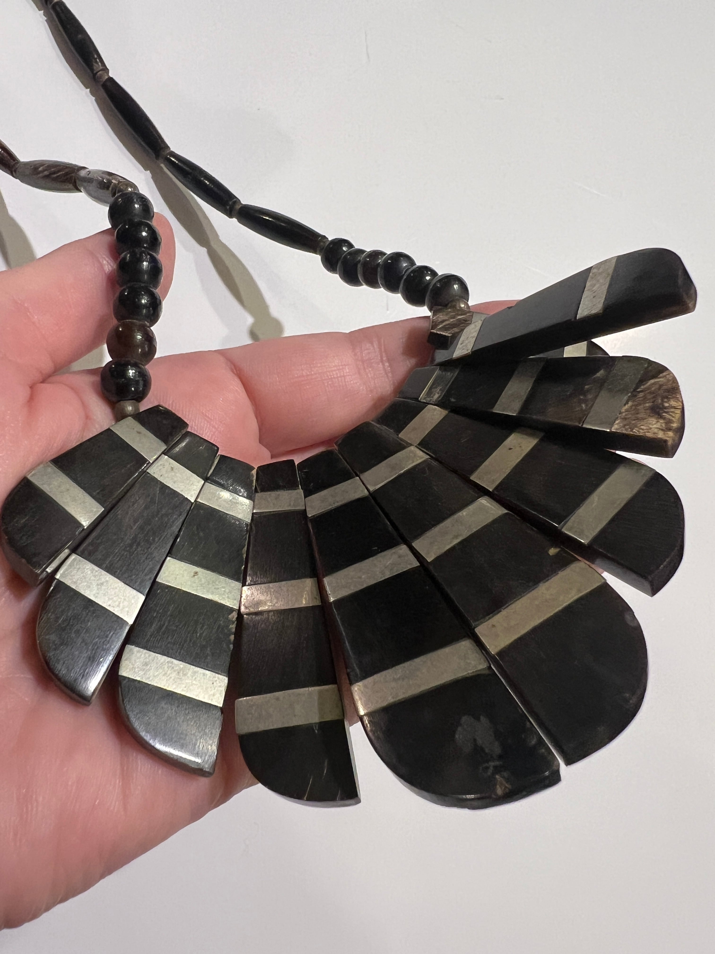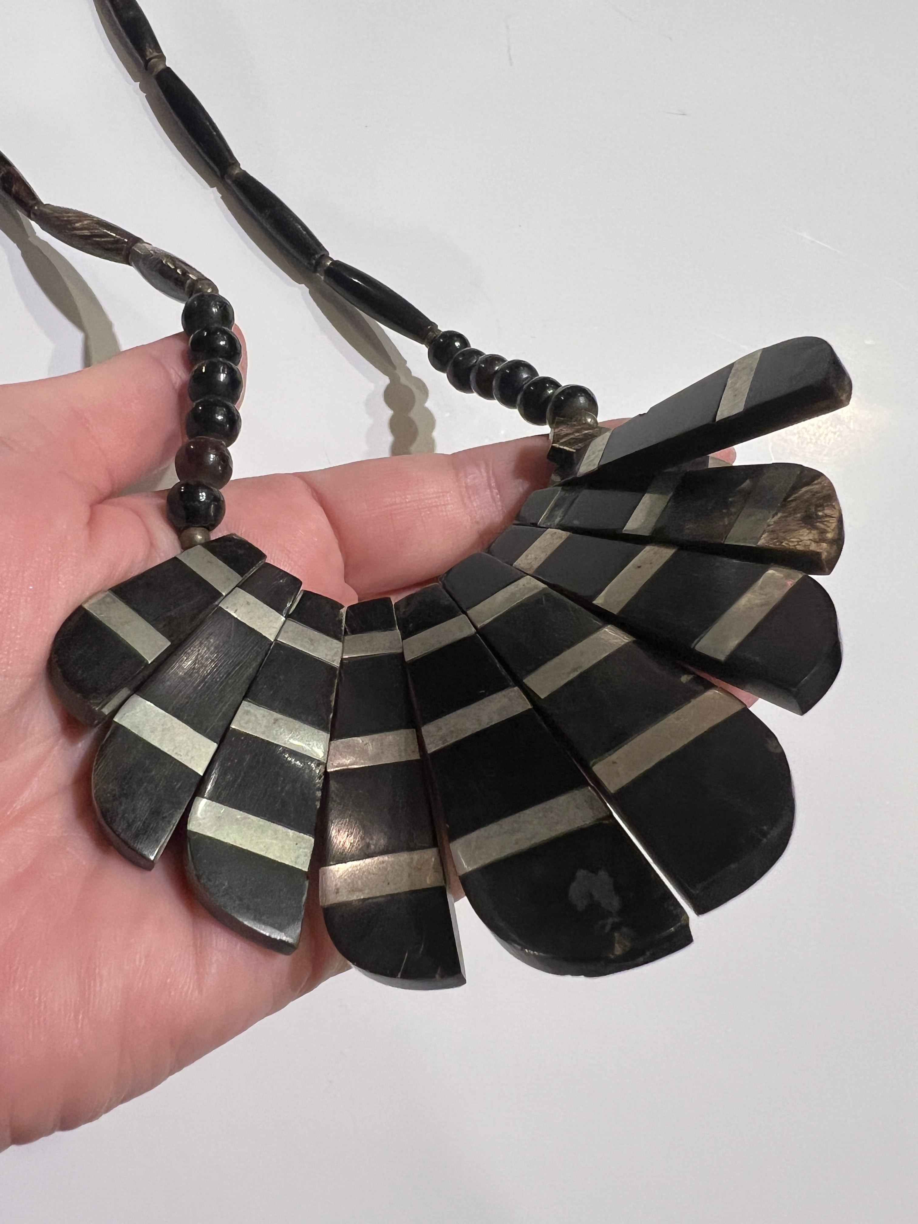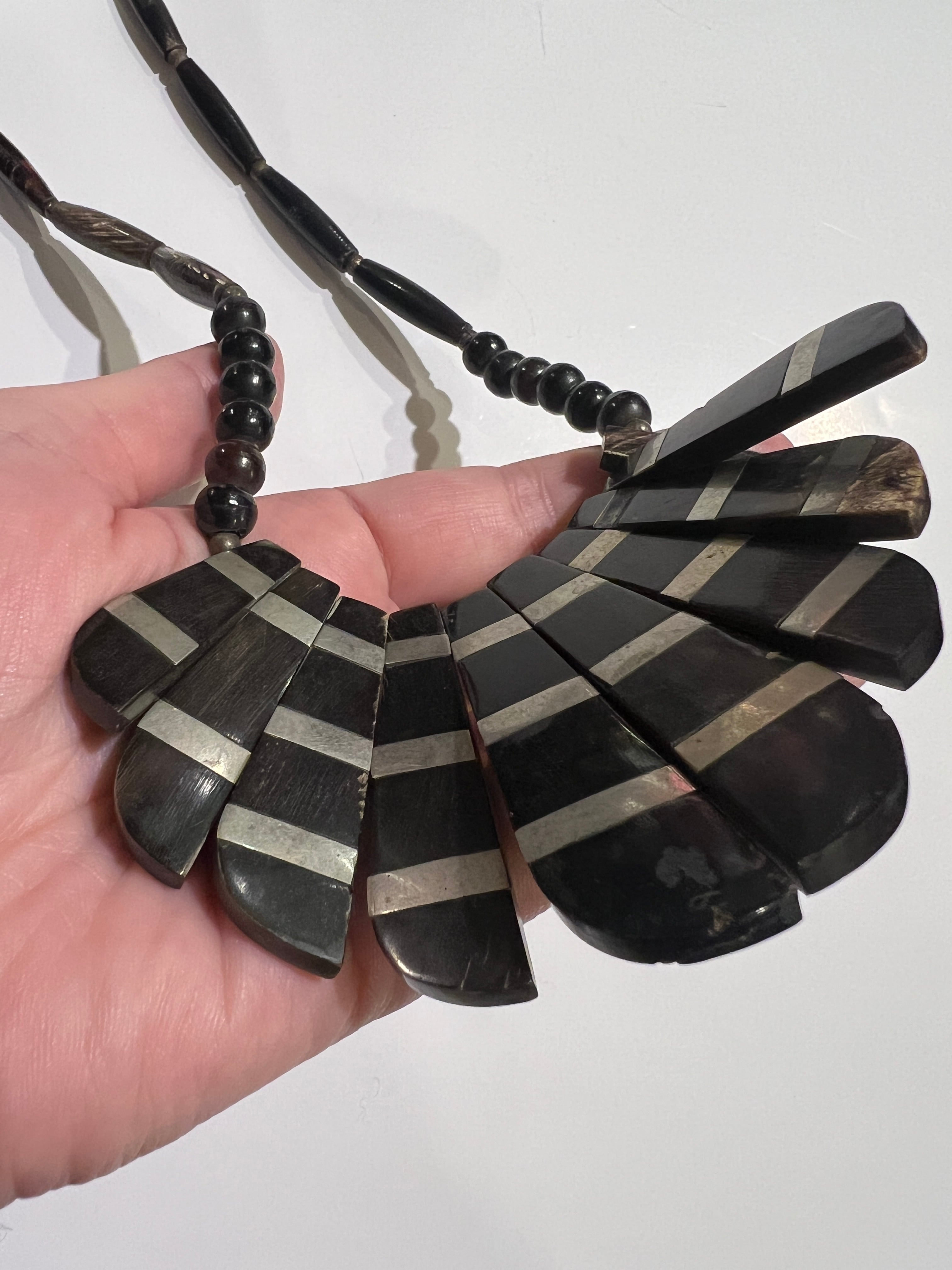 Vintage tribal black × silver horn necklace