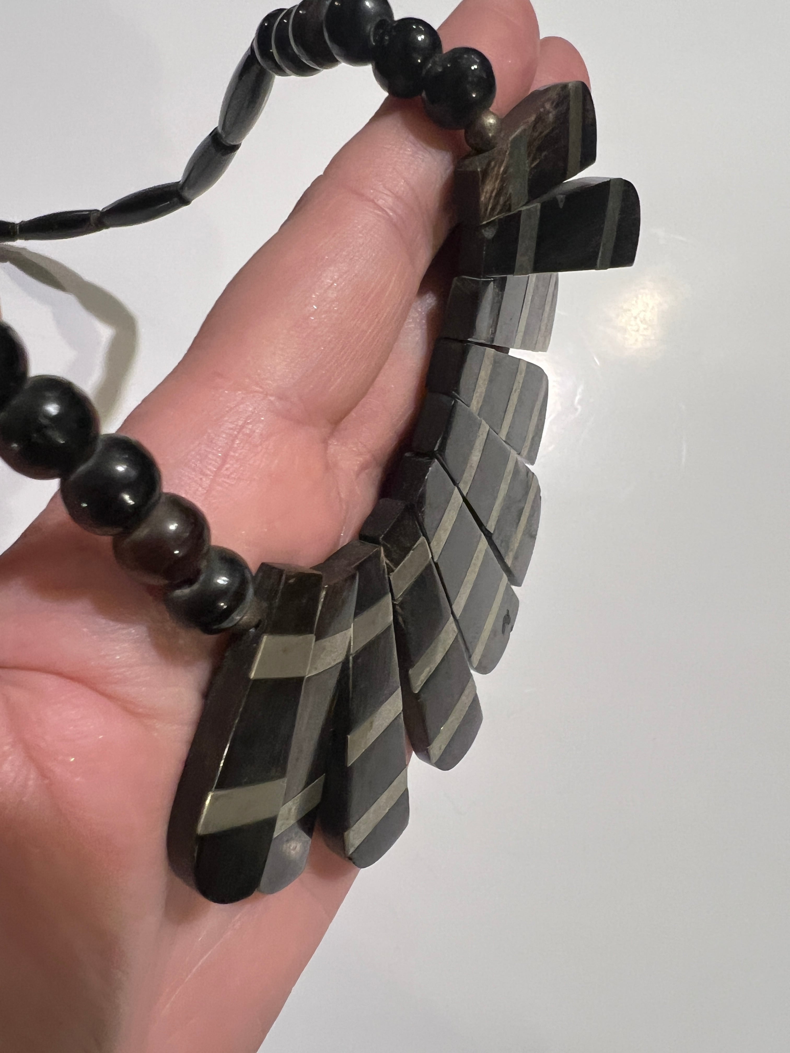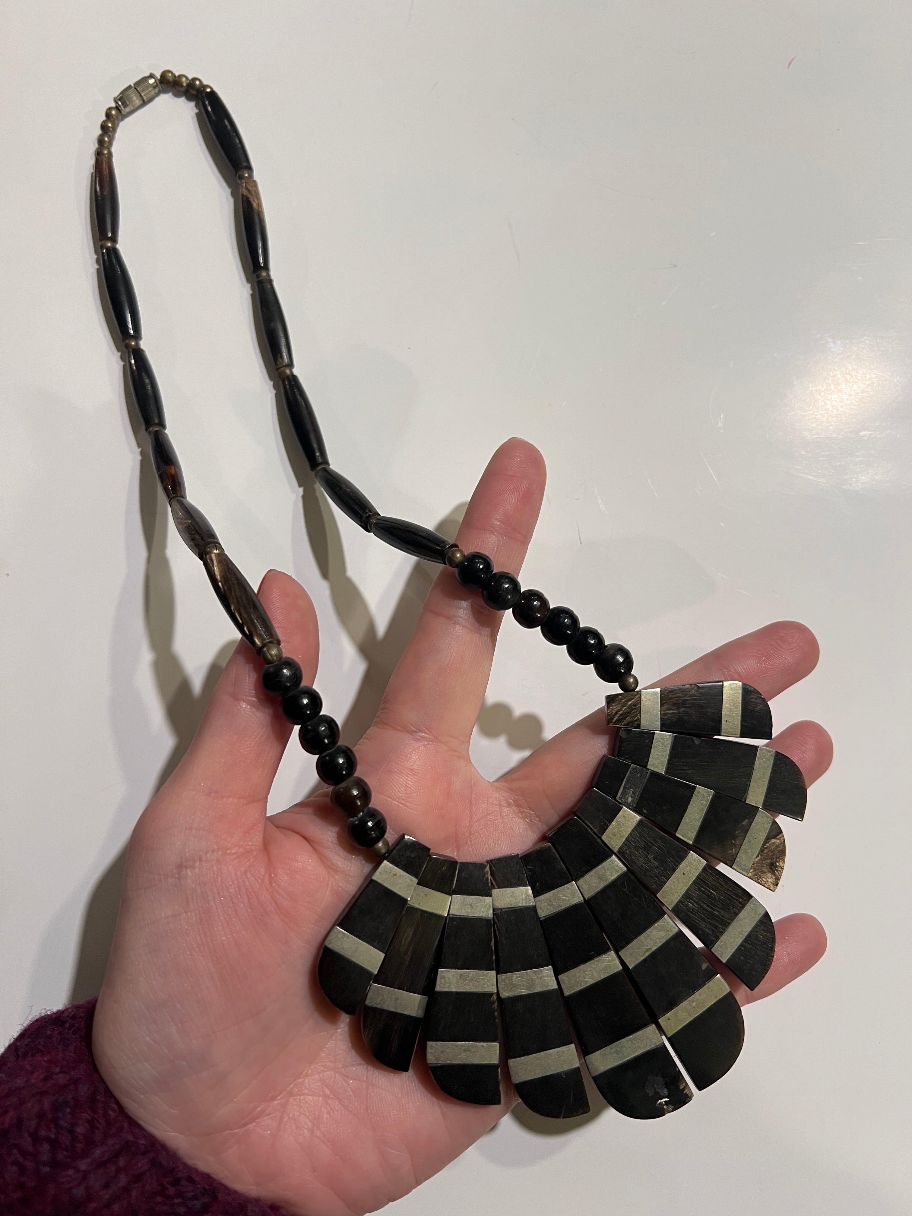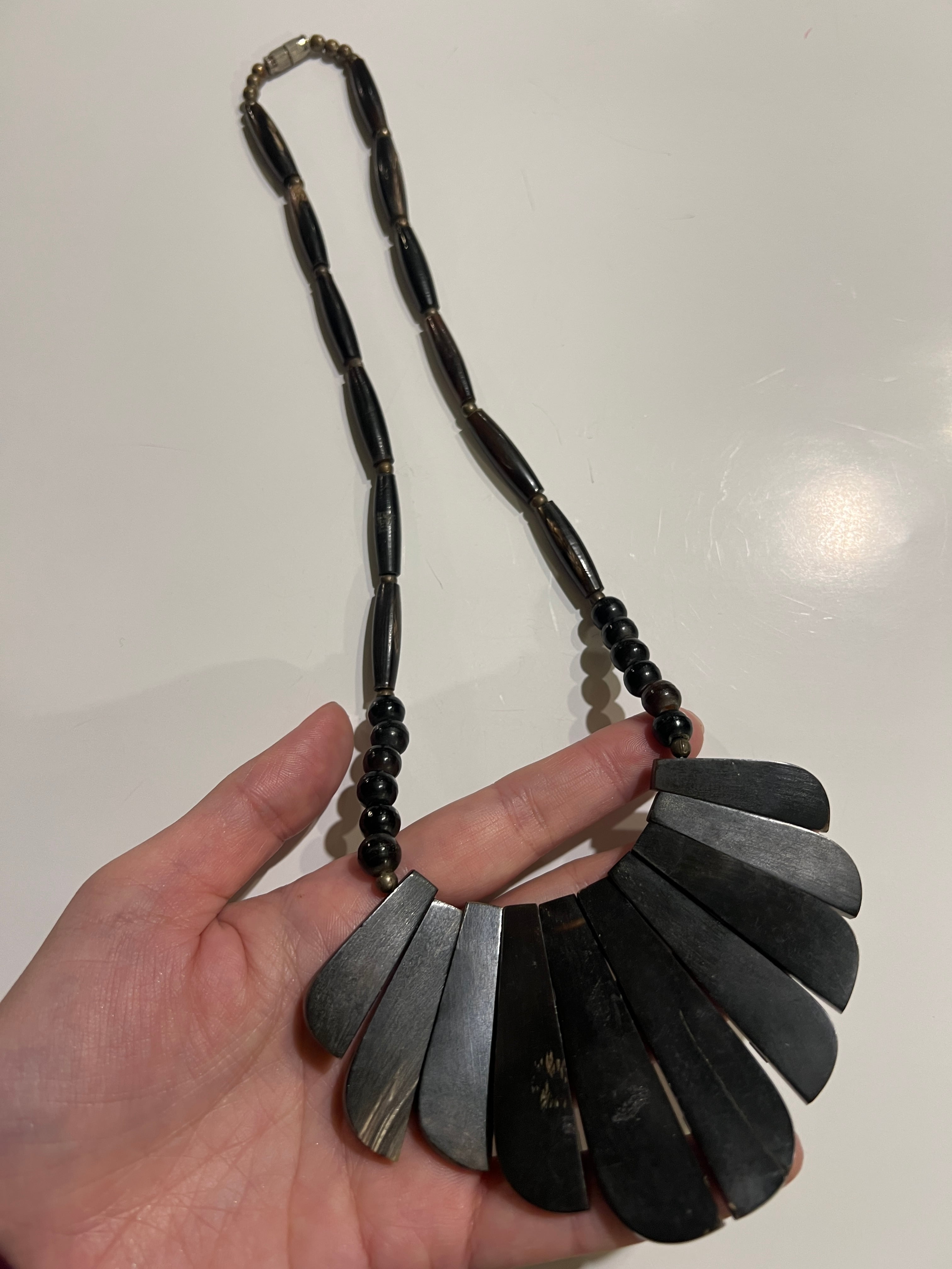 Vintage tribal black × silver horn necklace