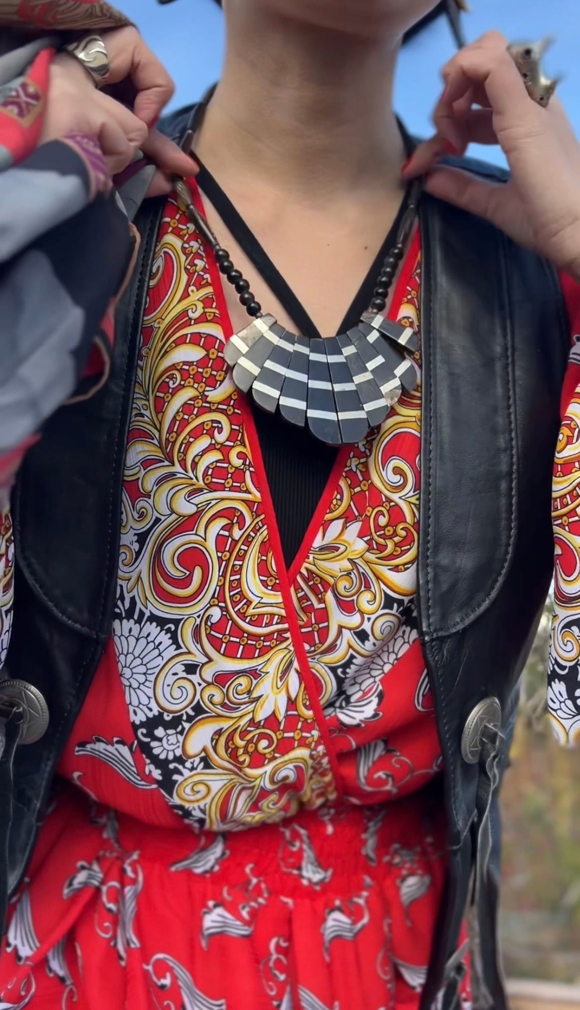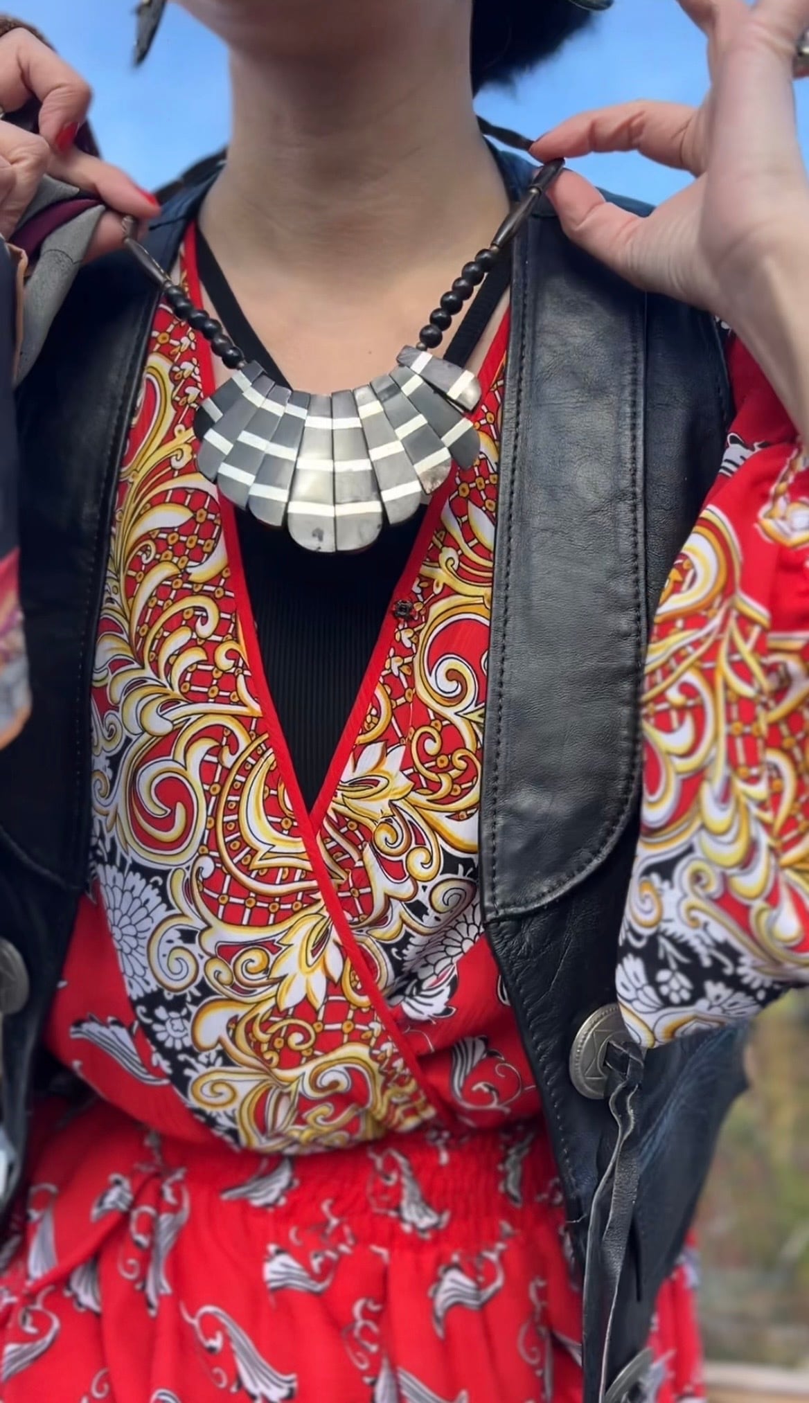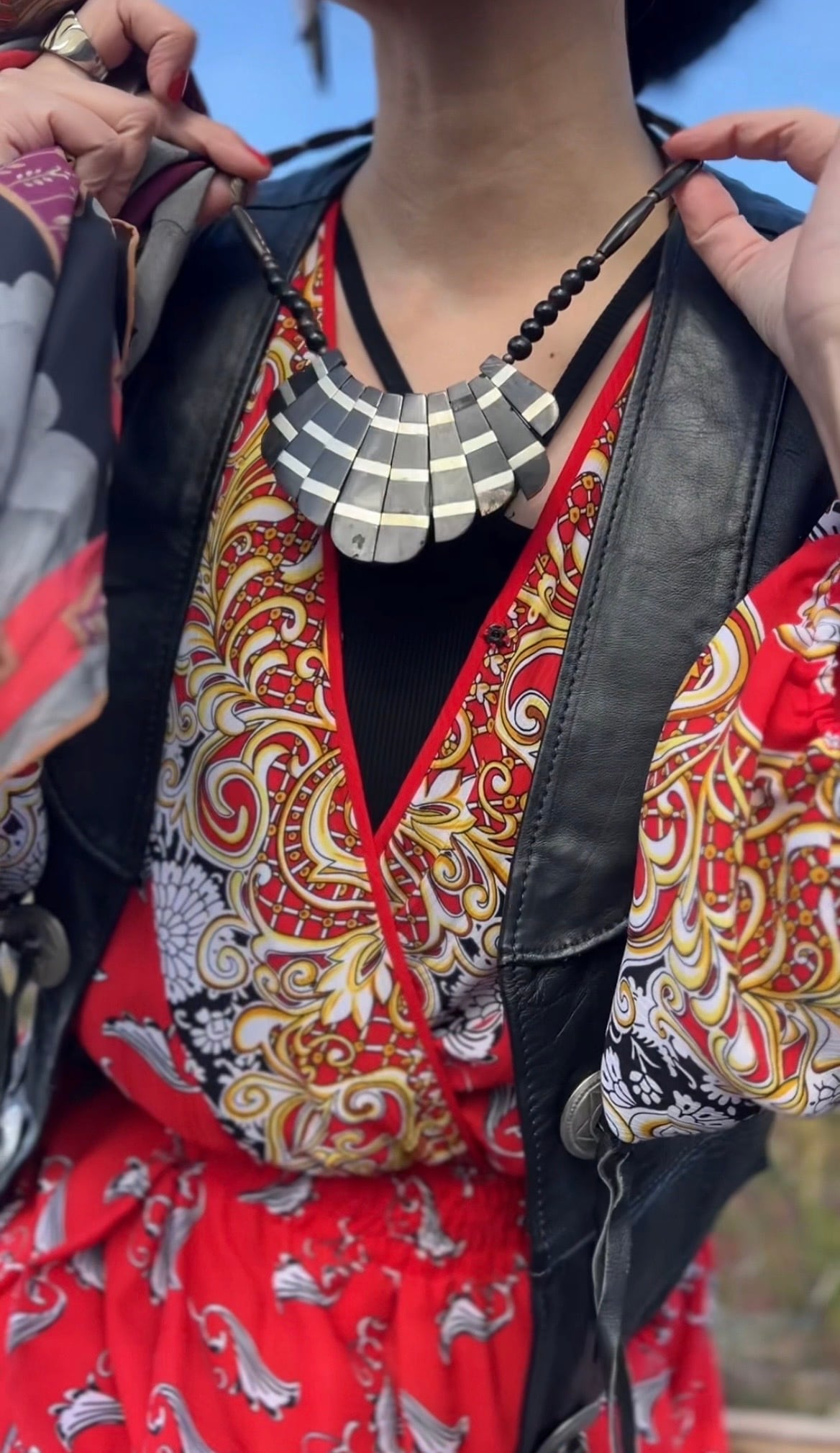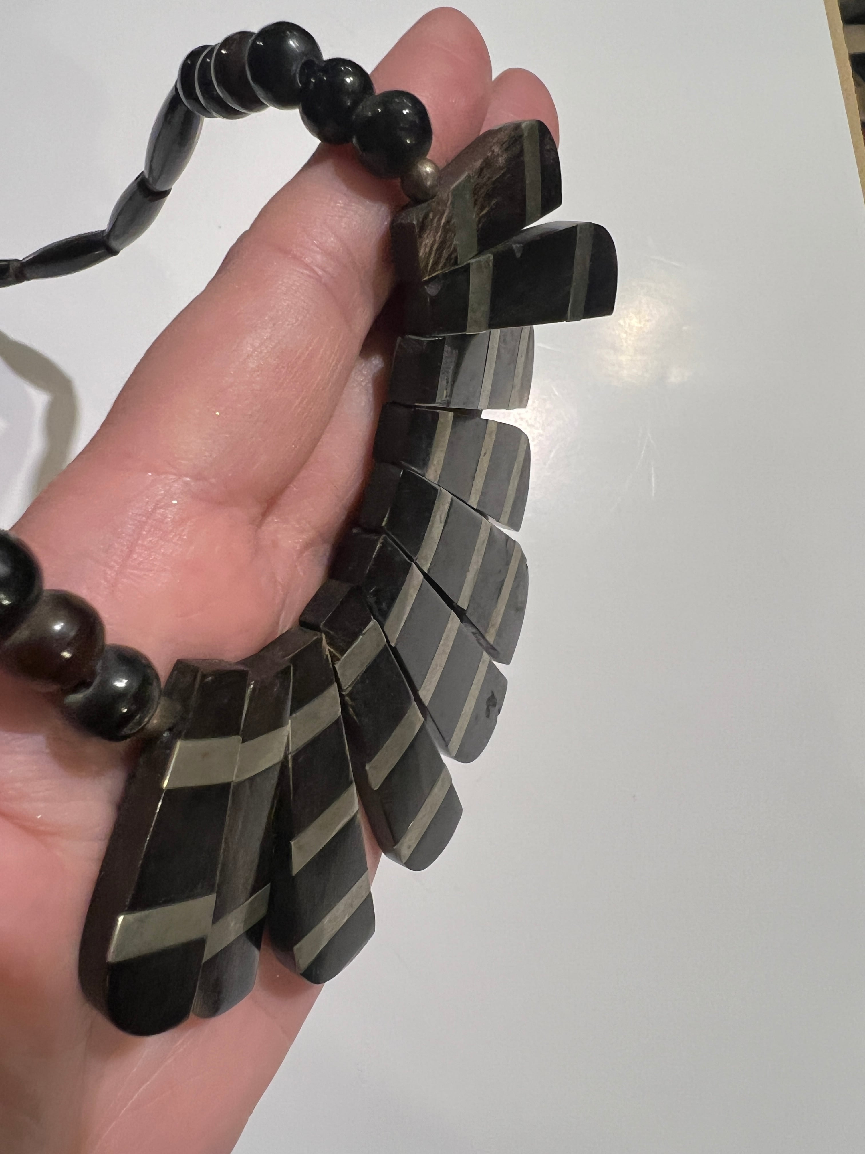 Vintage tribal black × silver horn necklace