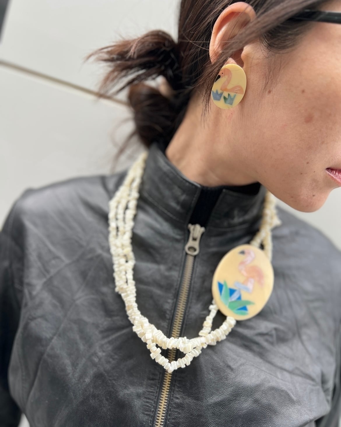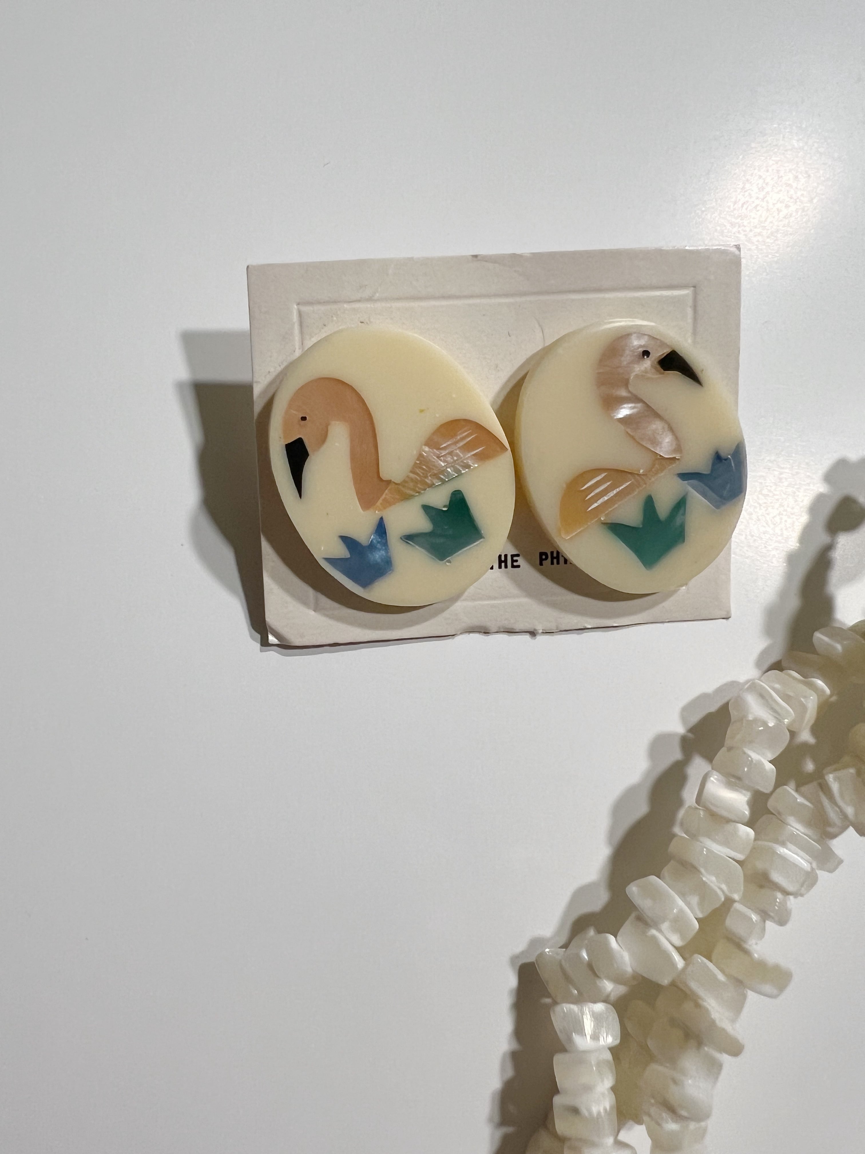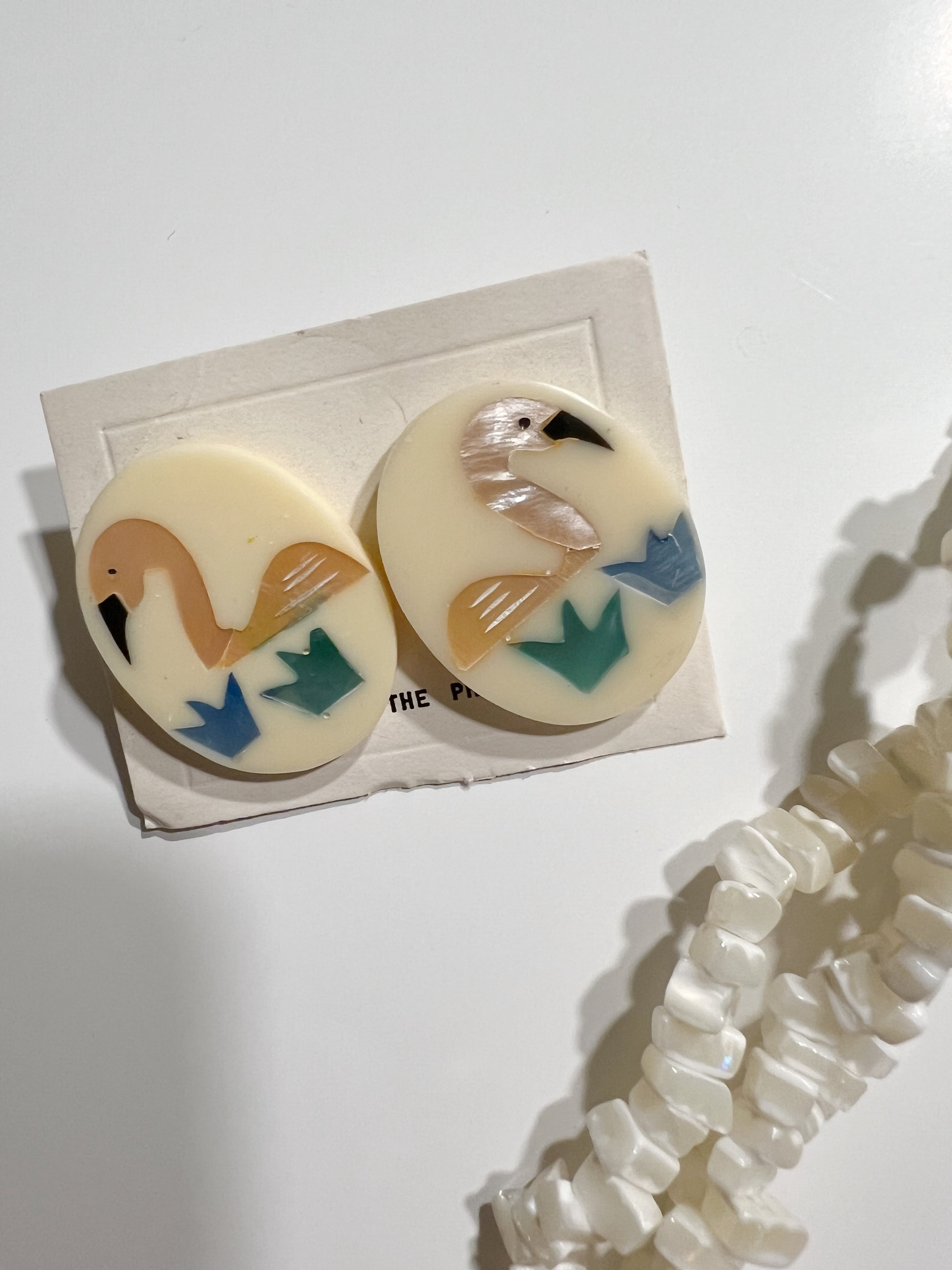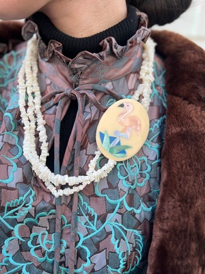 Dead stock 80s designer's Flamingo Necklace & pierced earrings ( 未使用 デザイナーズ フラミンゴ ネックレス × ピアス )