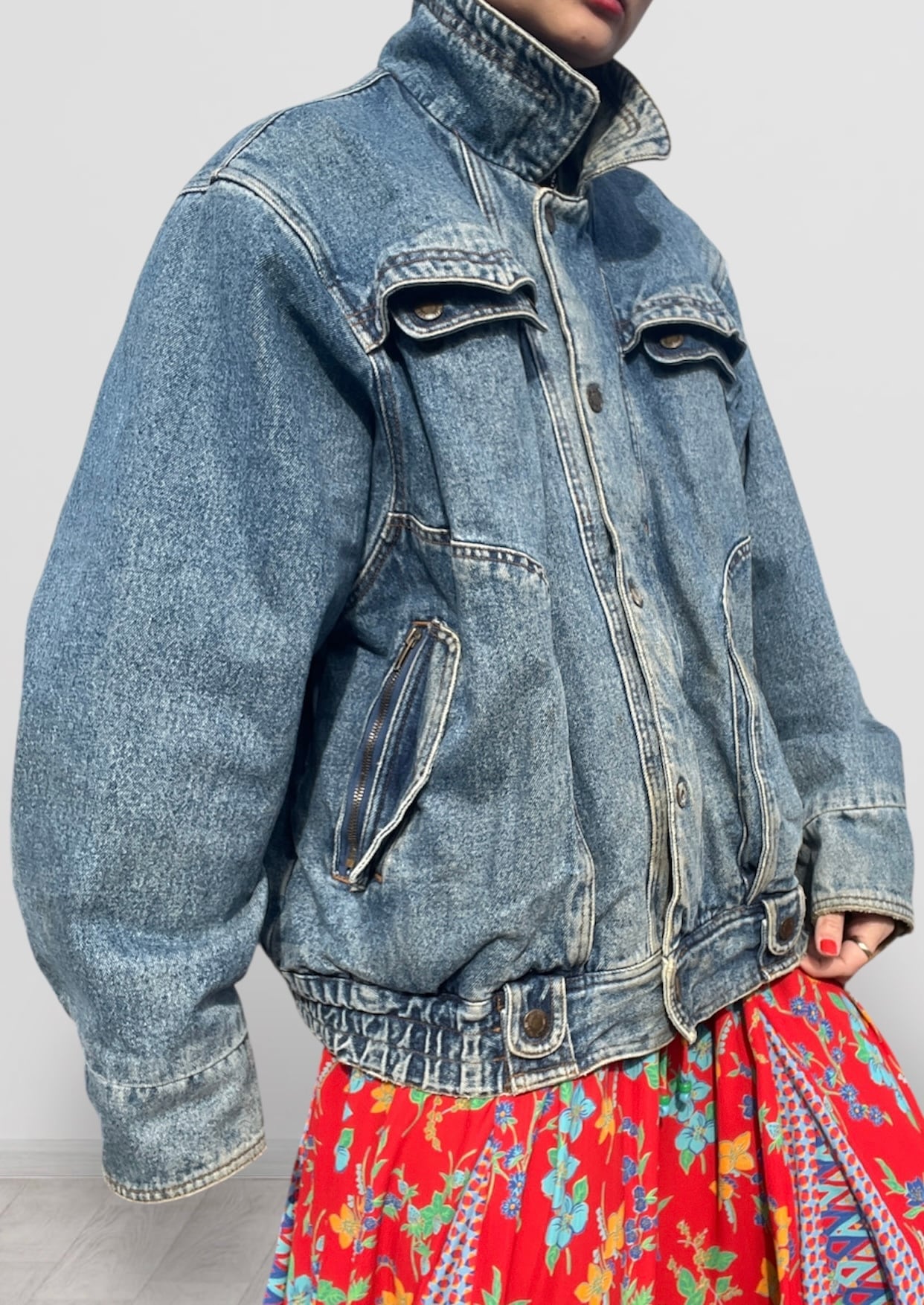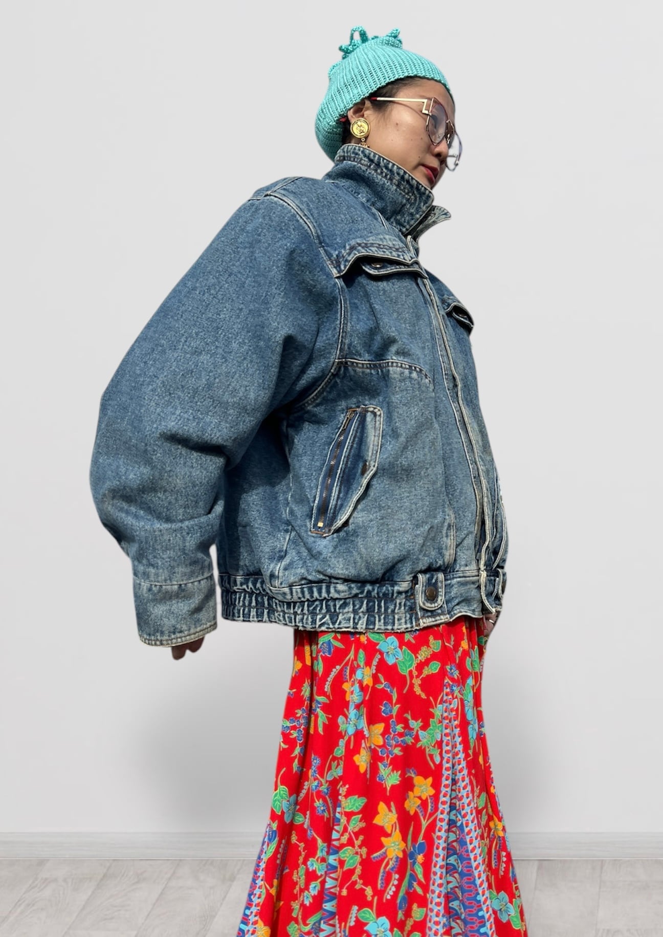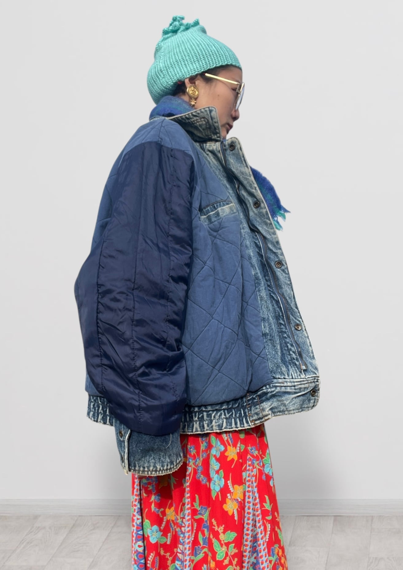 中がしっかりとした キルティング仕様で、冬はコート感覚で着られるヴィンテージデニムジャケット。