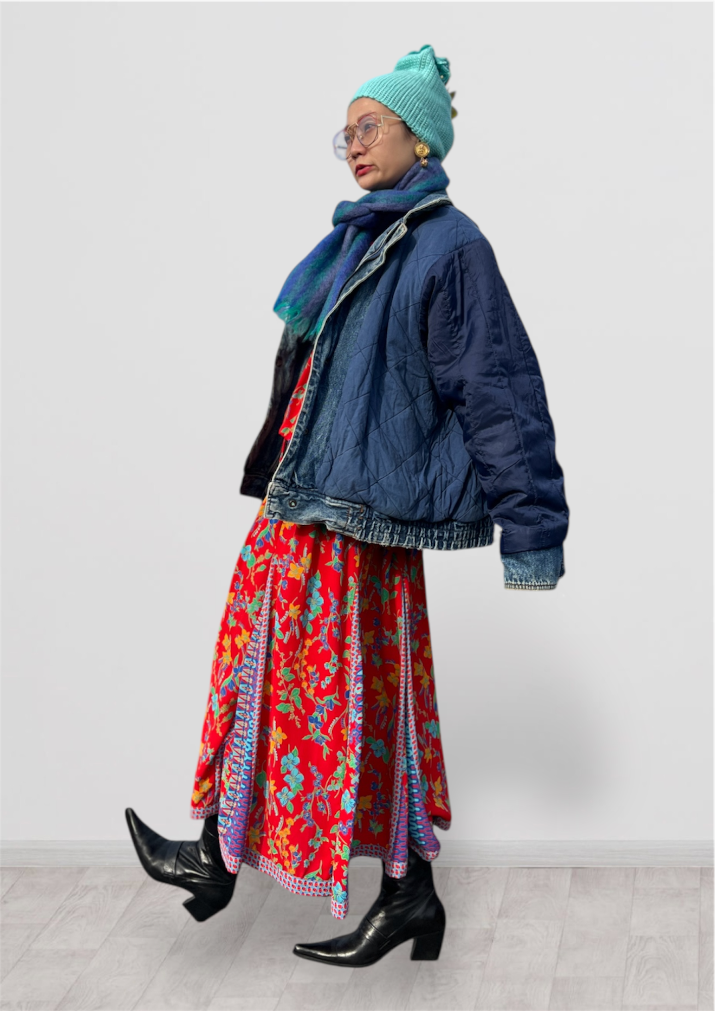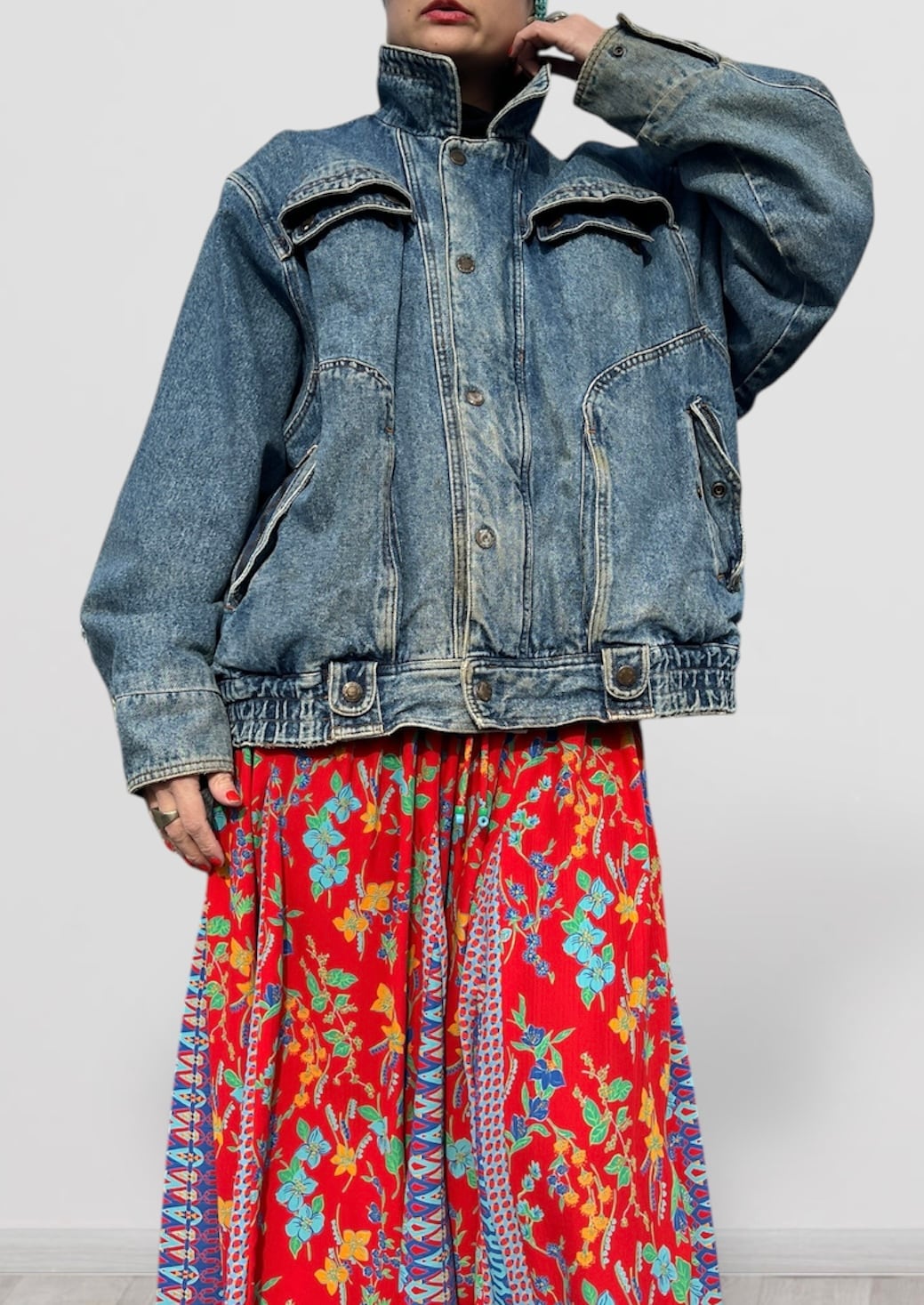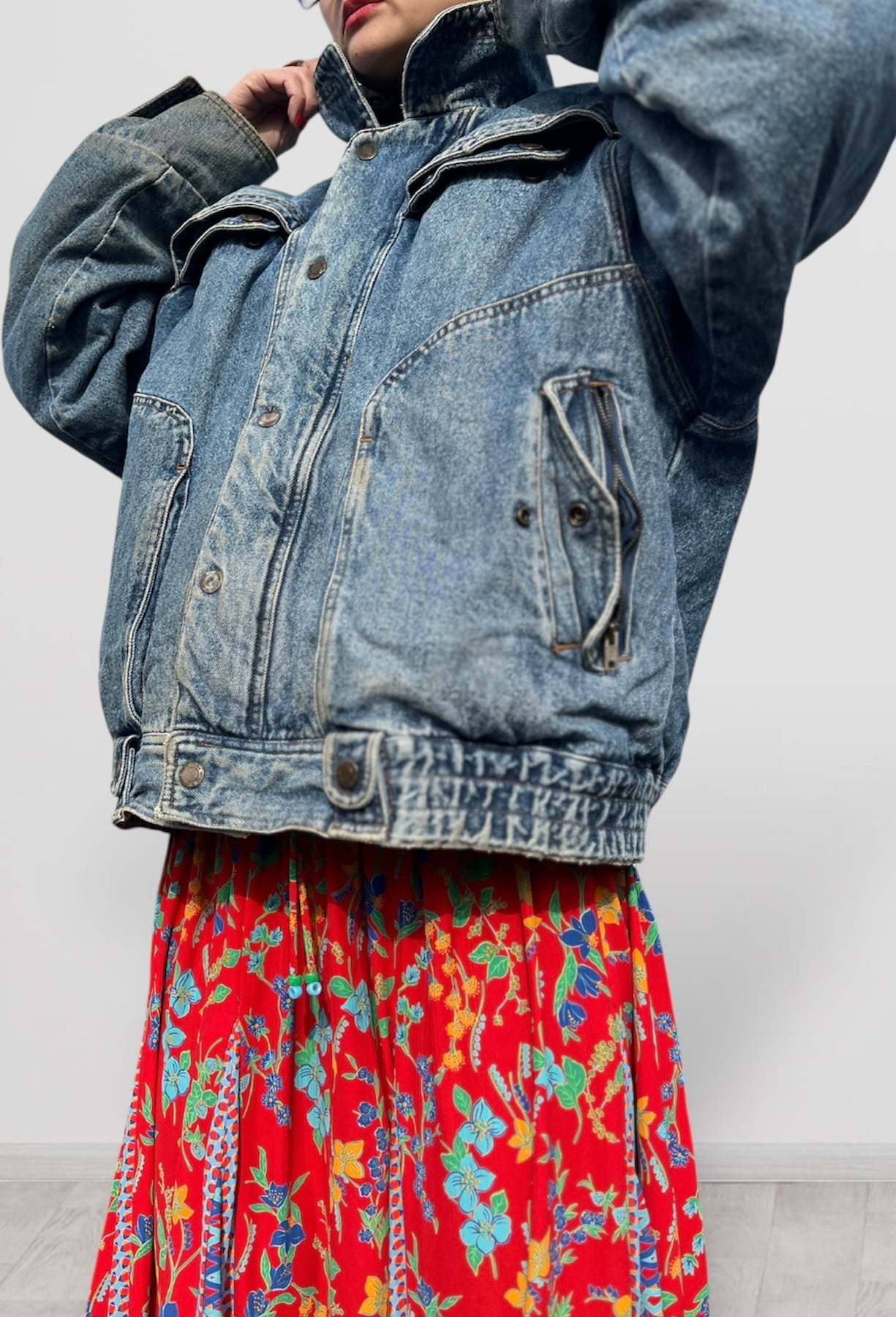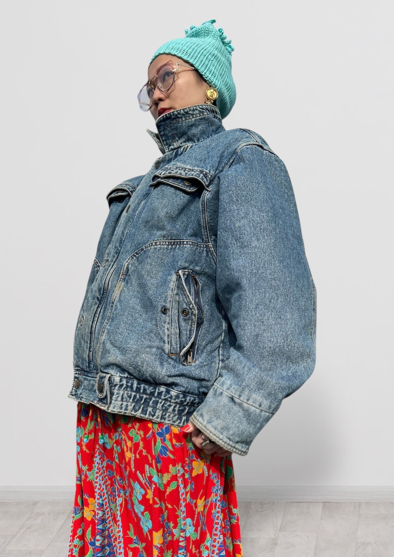 中がしっかりとした キルティング仕様で、冬はコート感覚で着られるヴィンテージデニムジャケット。