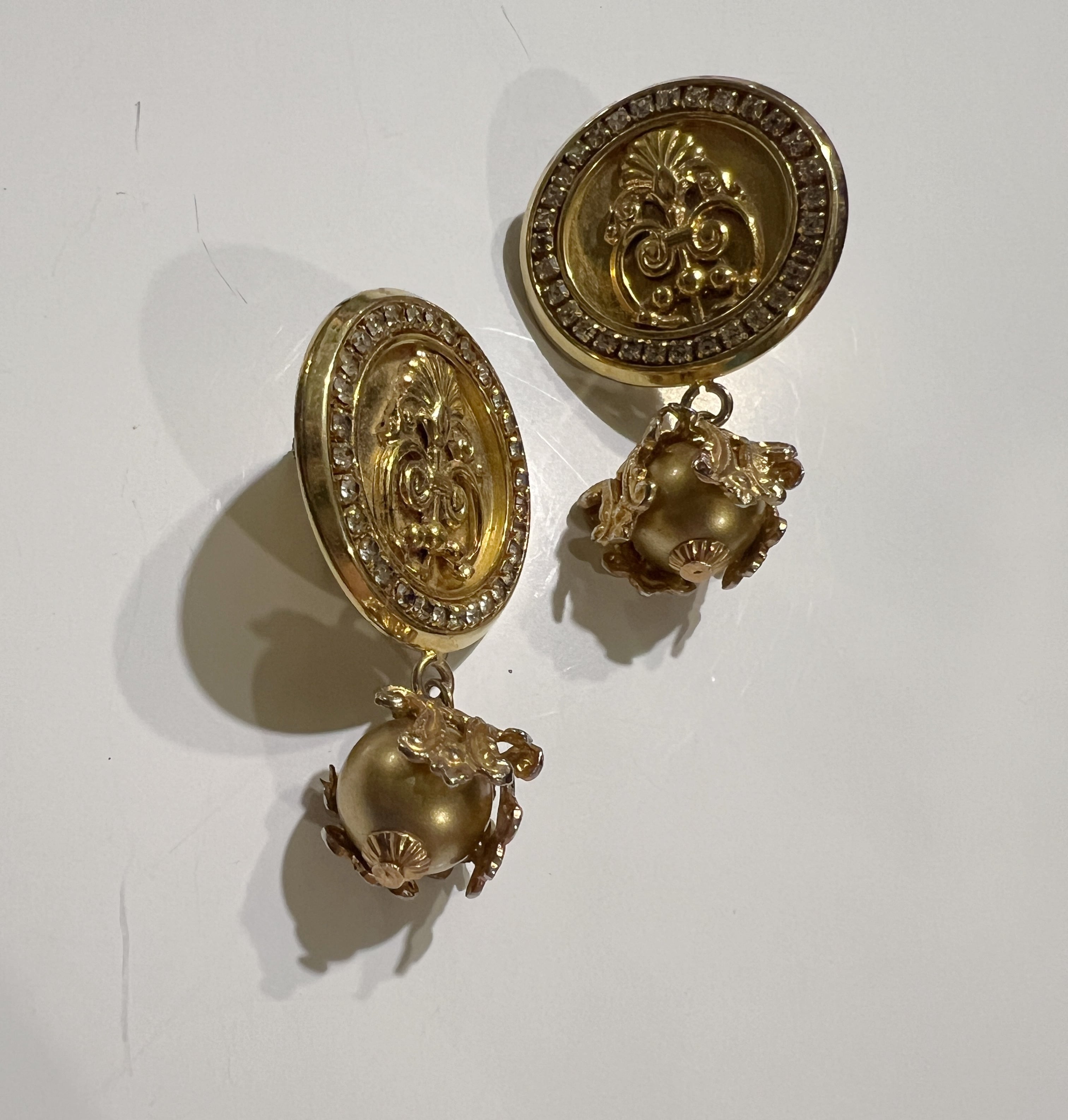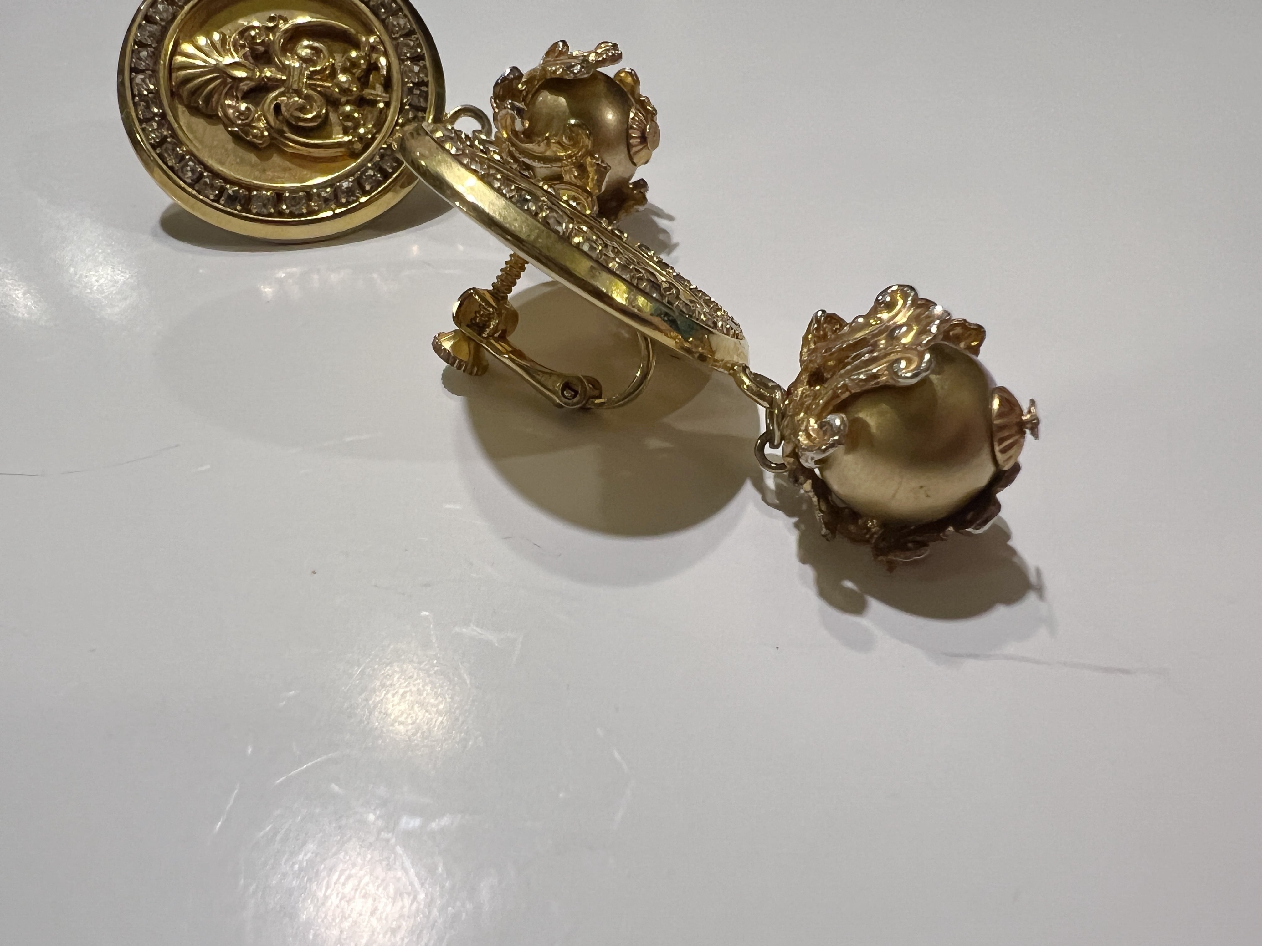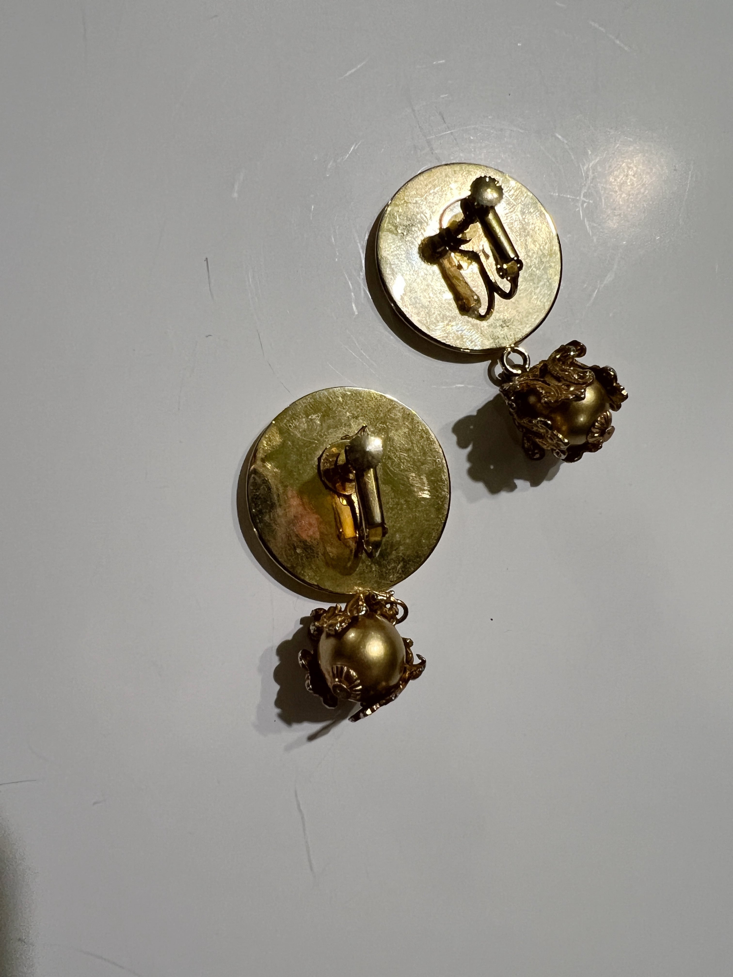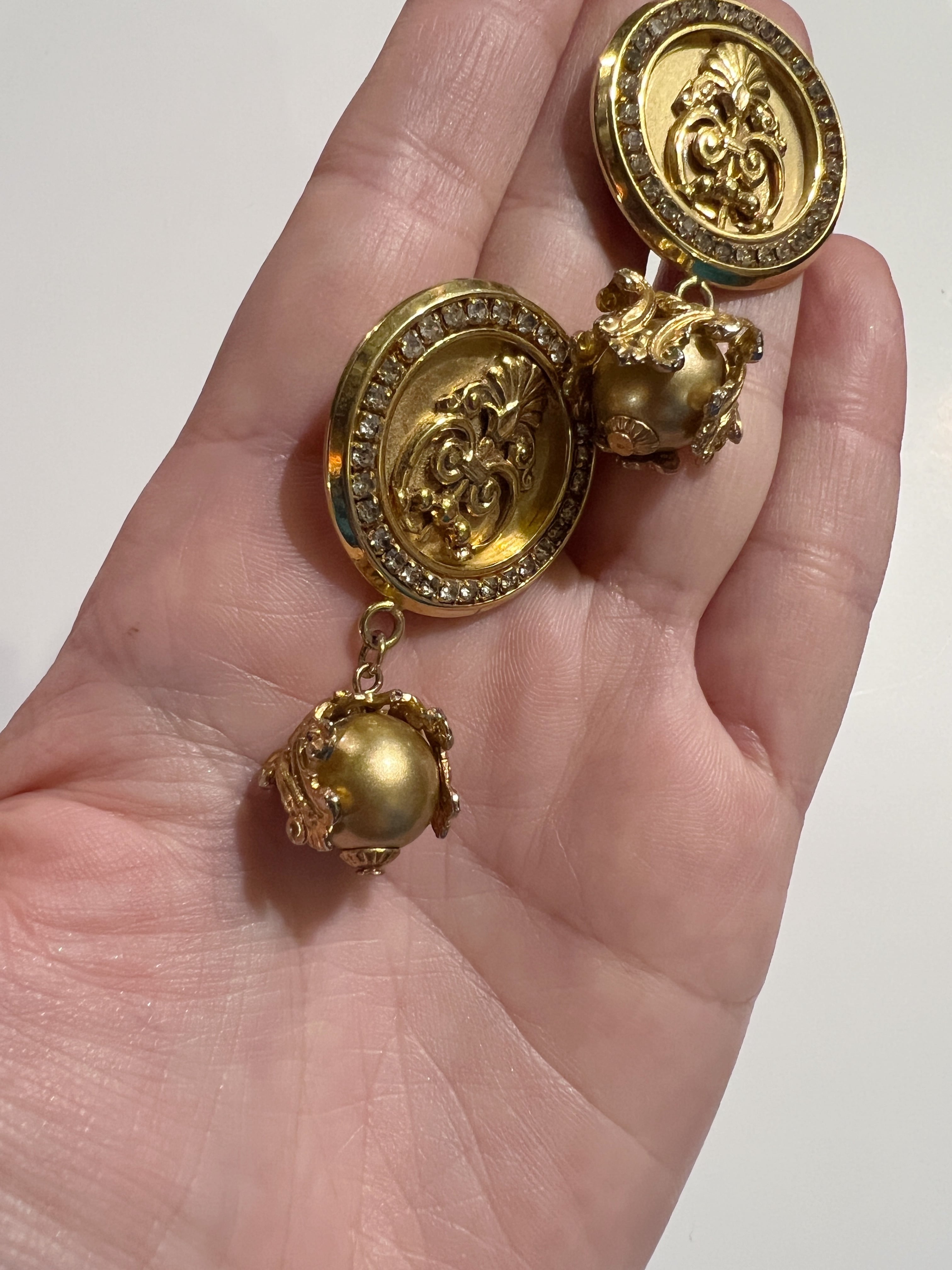 80s -90s Ornament Medallion & Baroque Pearl Drop Earrings