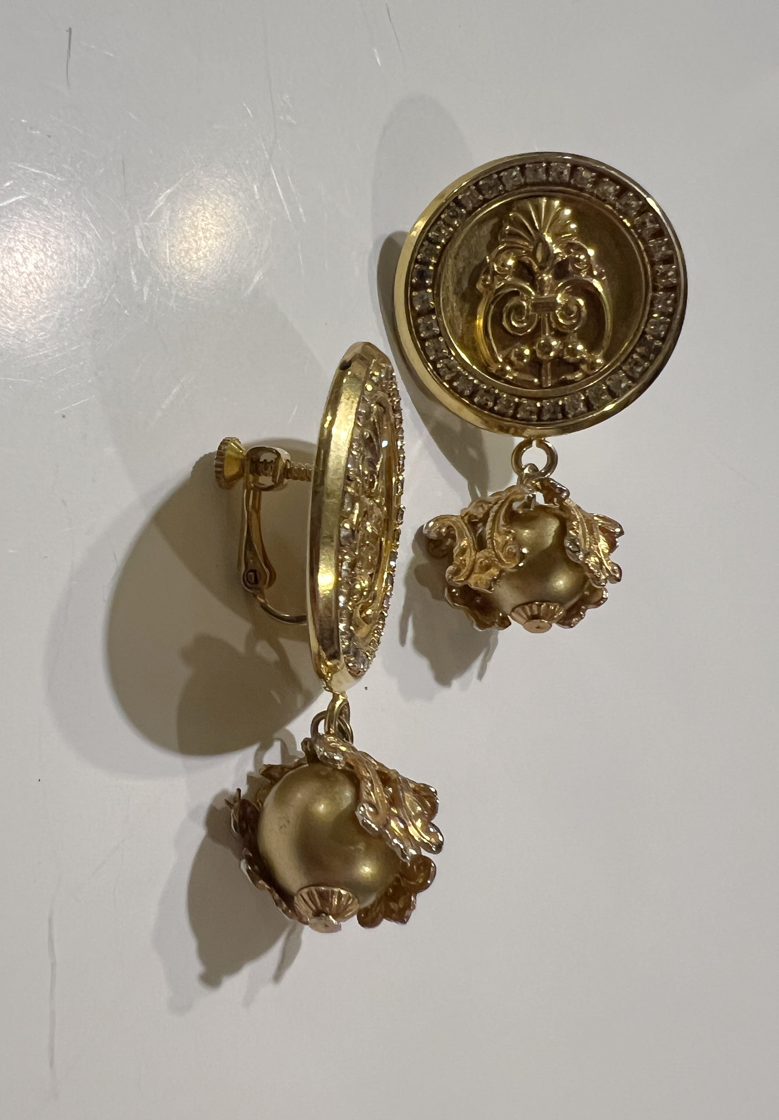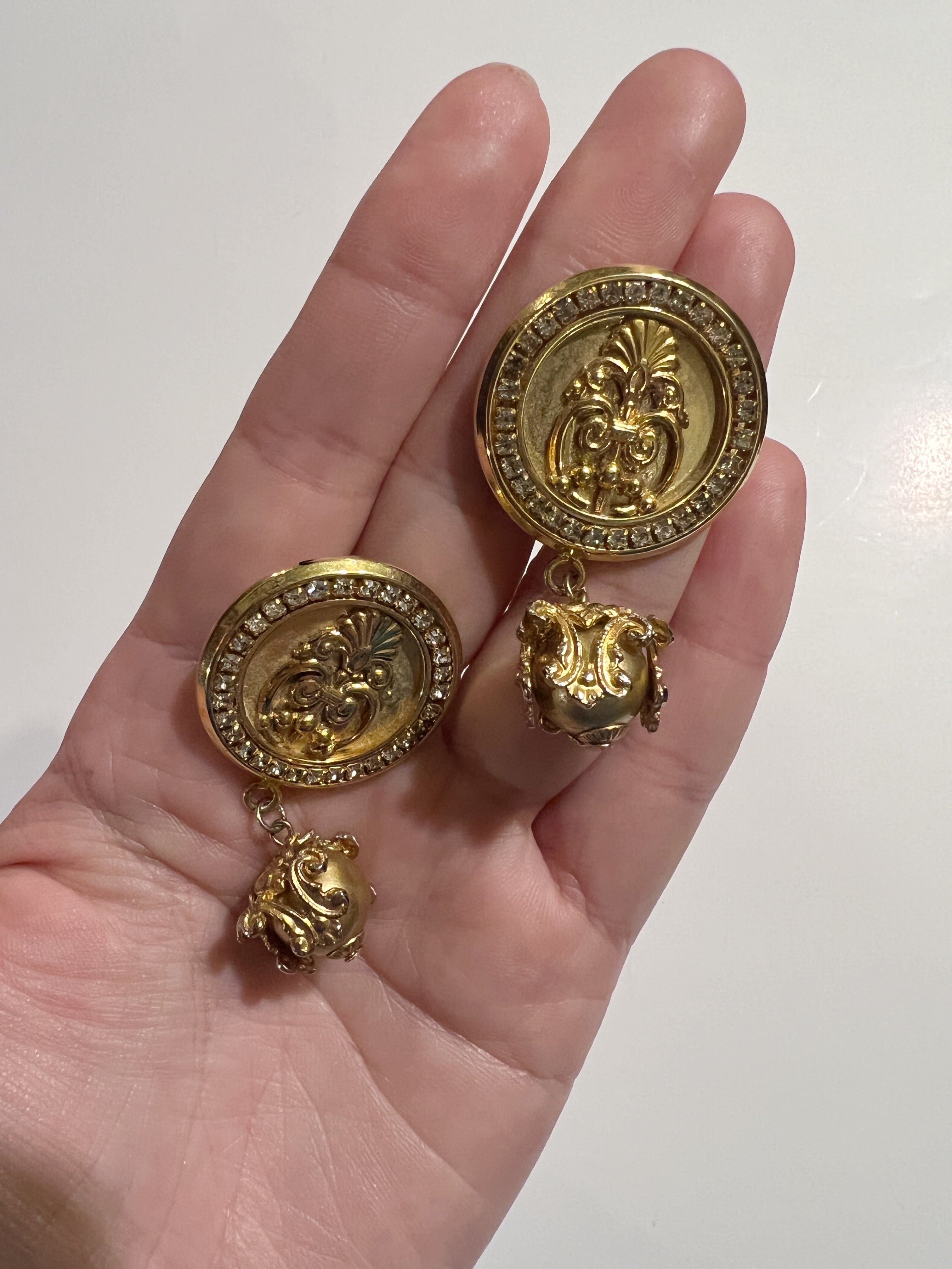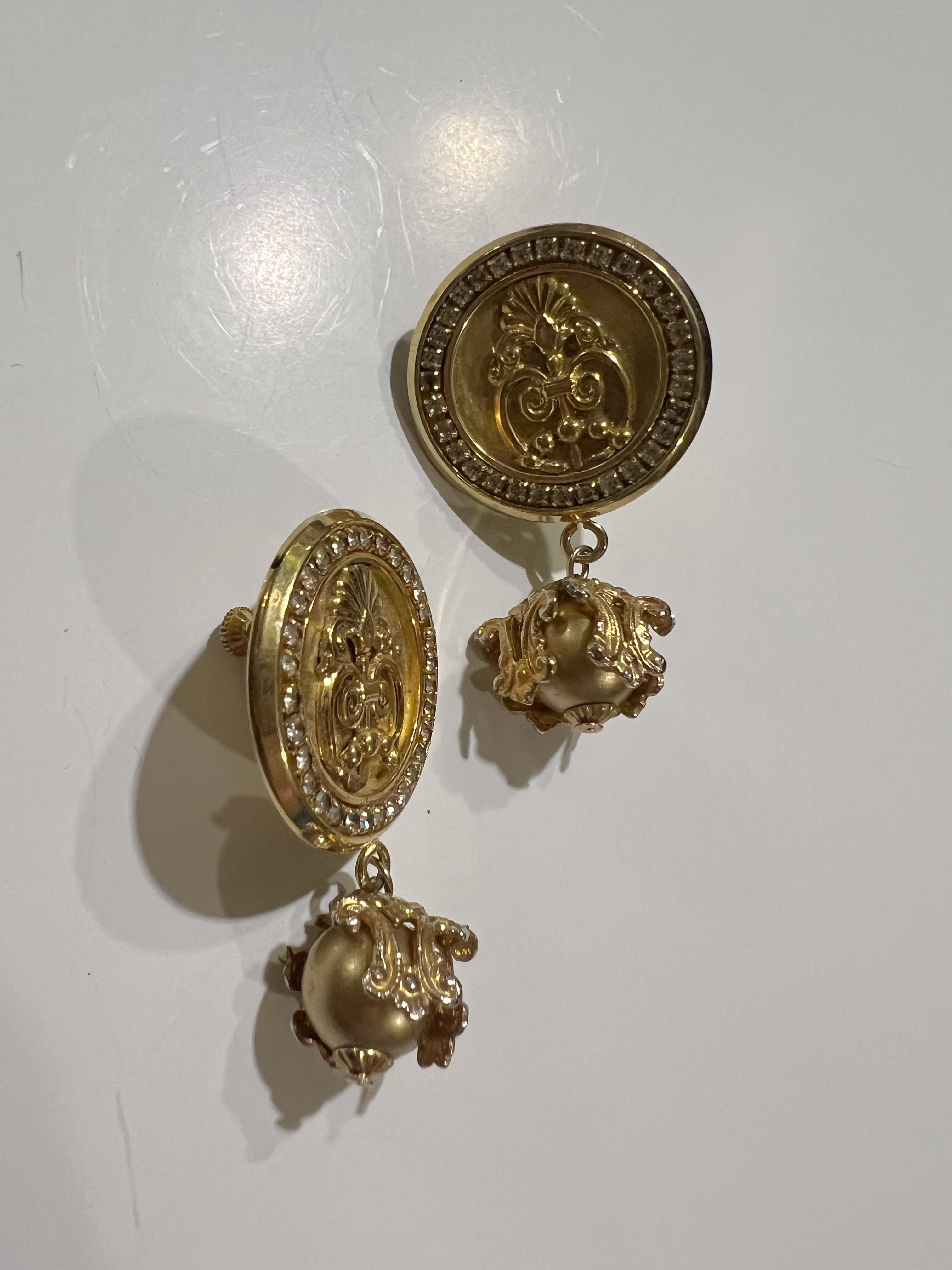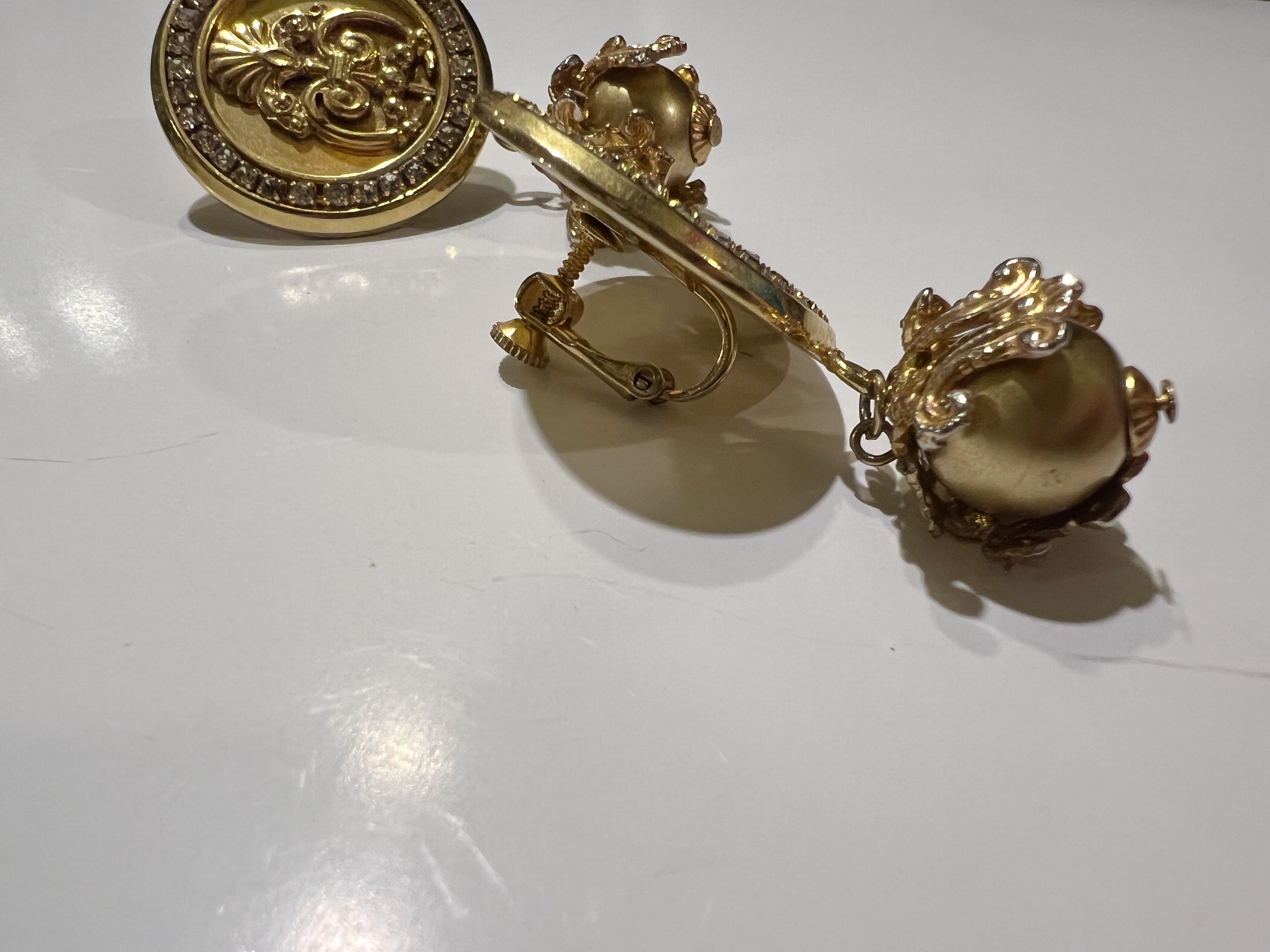 80s -90s Ornament Medallion & Baroque Pearl Drop Earrings