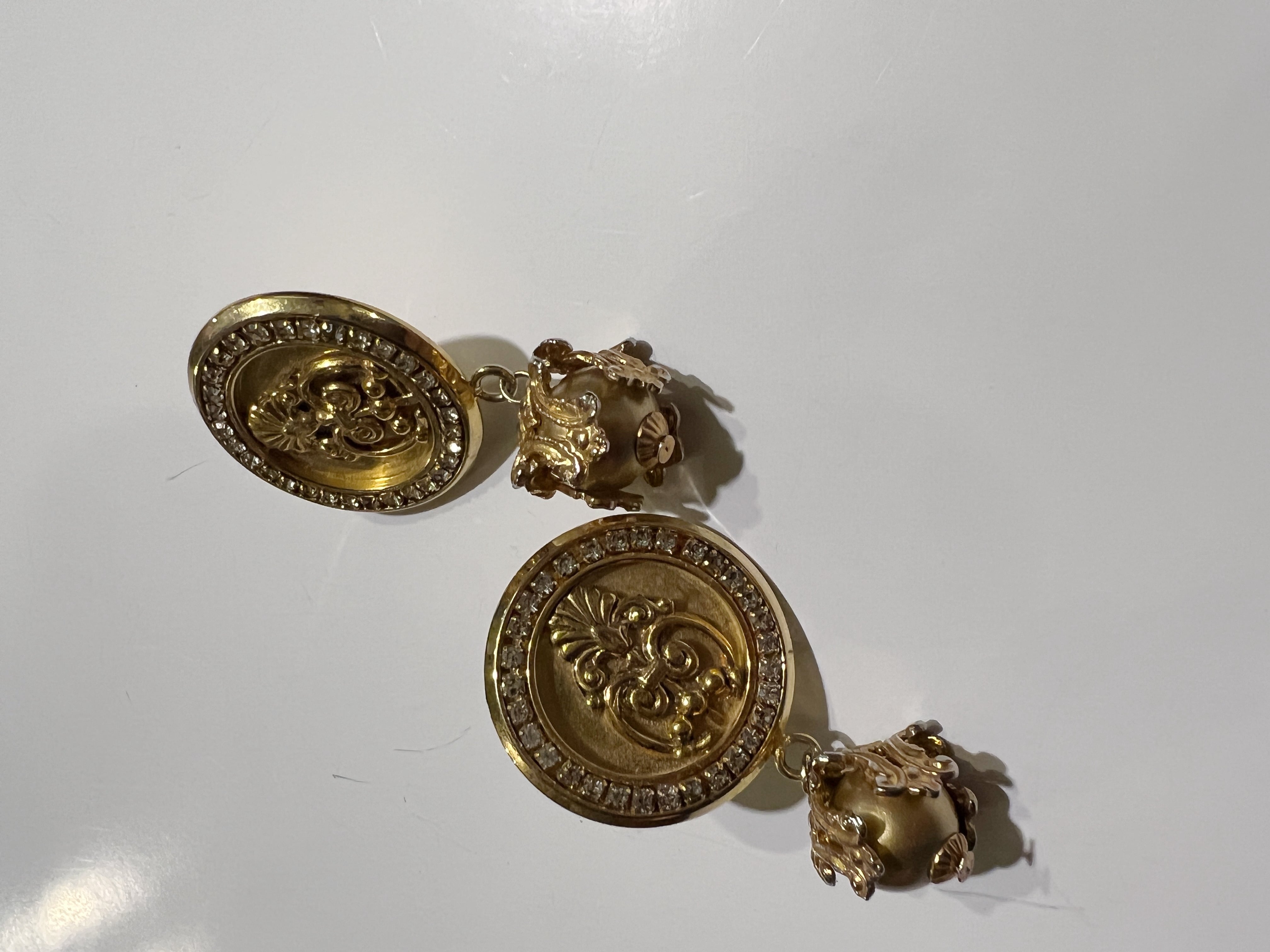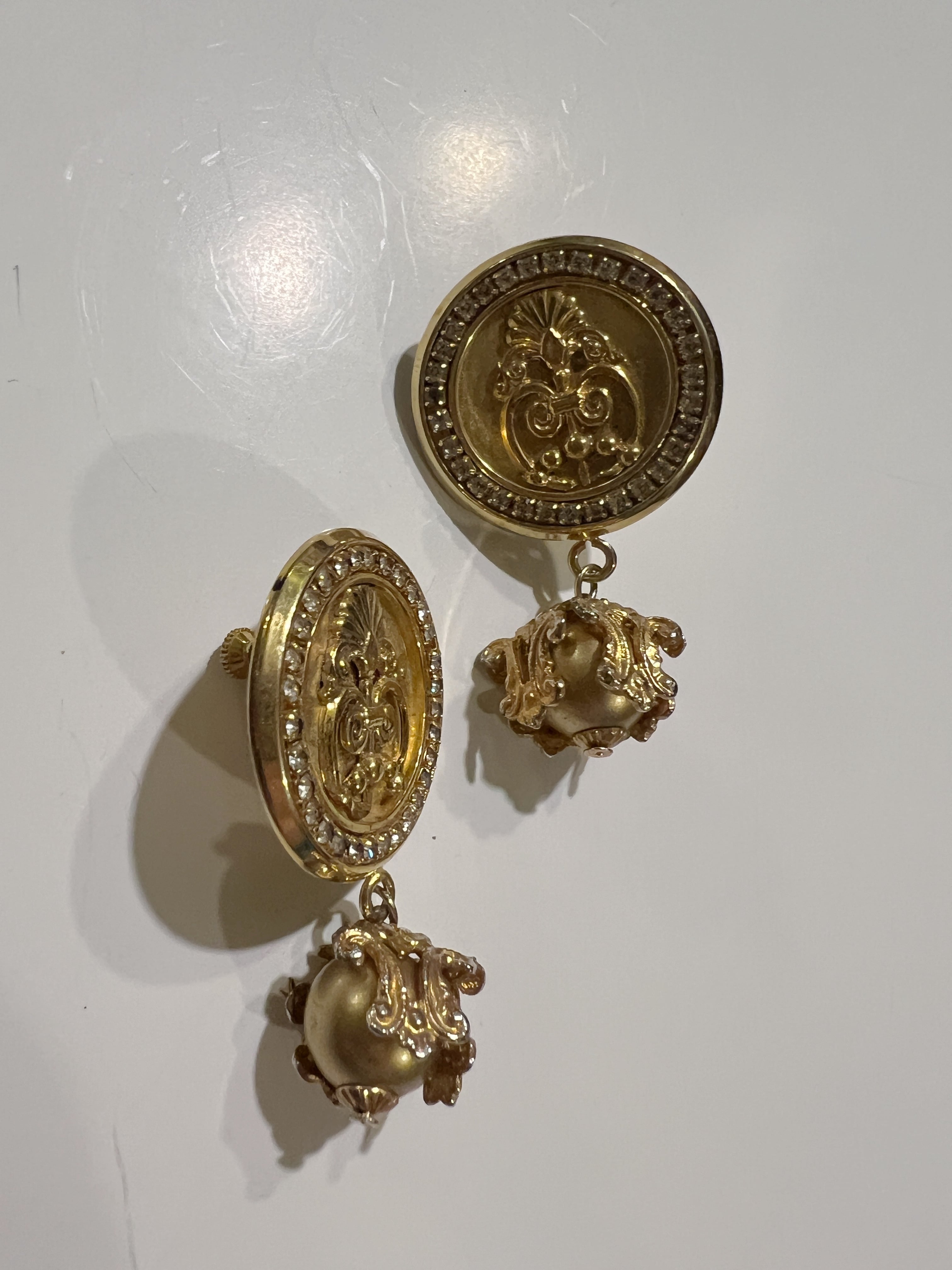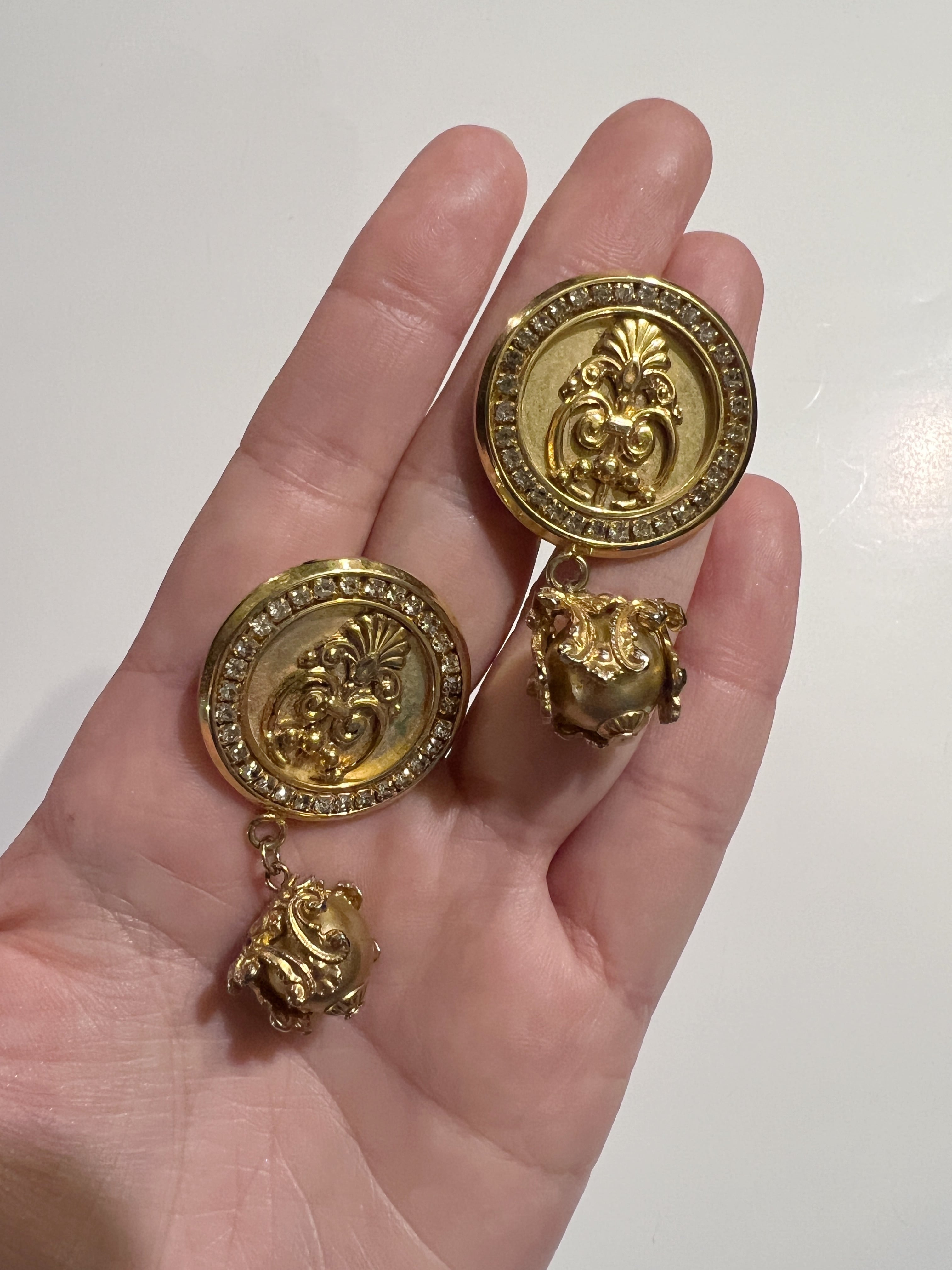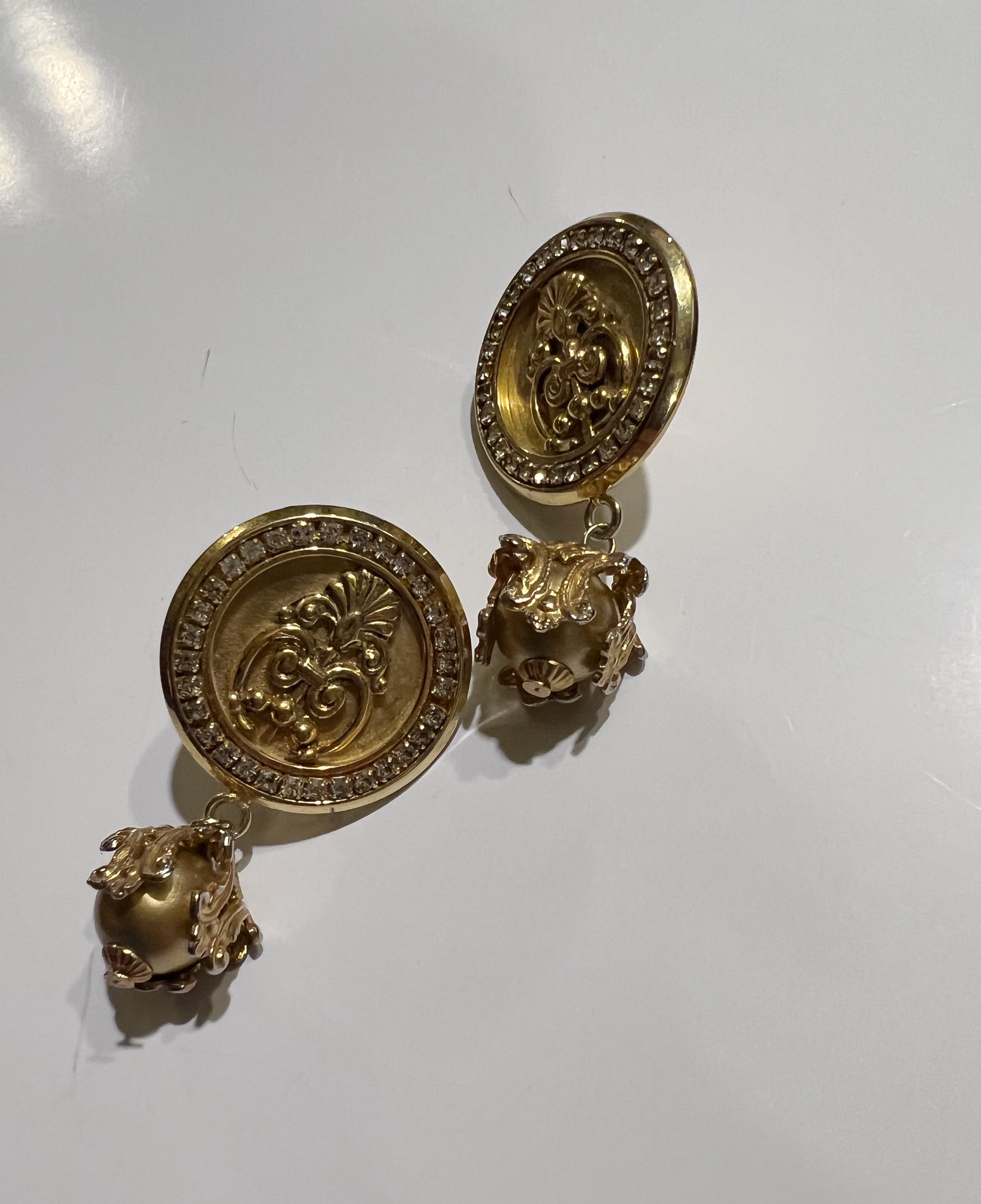 80s -90s Ornament Medallion & Baroque Pearl Drop Earrings