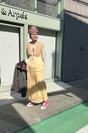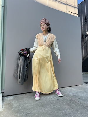 柔らかなシャンパンイエローが美しいヴィンテージドレス。