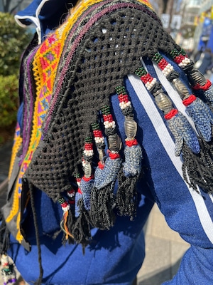 壁飾りとしてはもちろん、スタイリングに取り入れるとシンプルな服に重ねるだけで唯一無二のレイヤーが完成します。