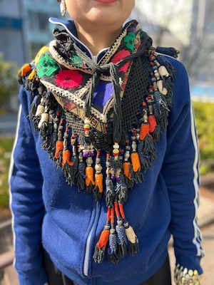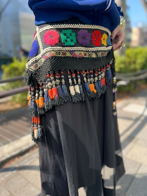 ★special★ Vintage Uzbekistan Black floral tassel × embroidery decoration