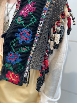 ★special★ Vintage Uzbekistan black floral corduroytassel decoration